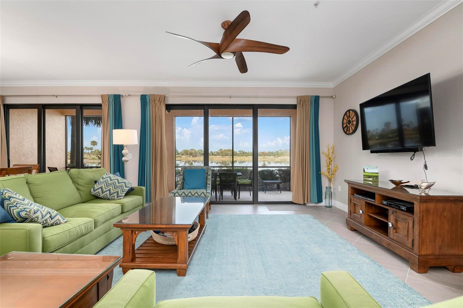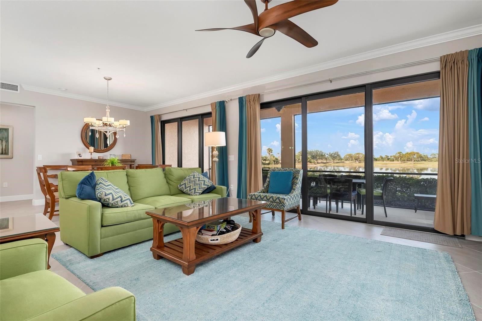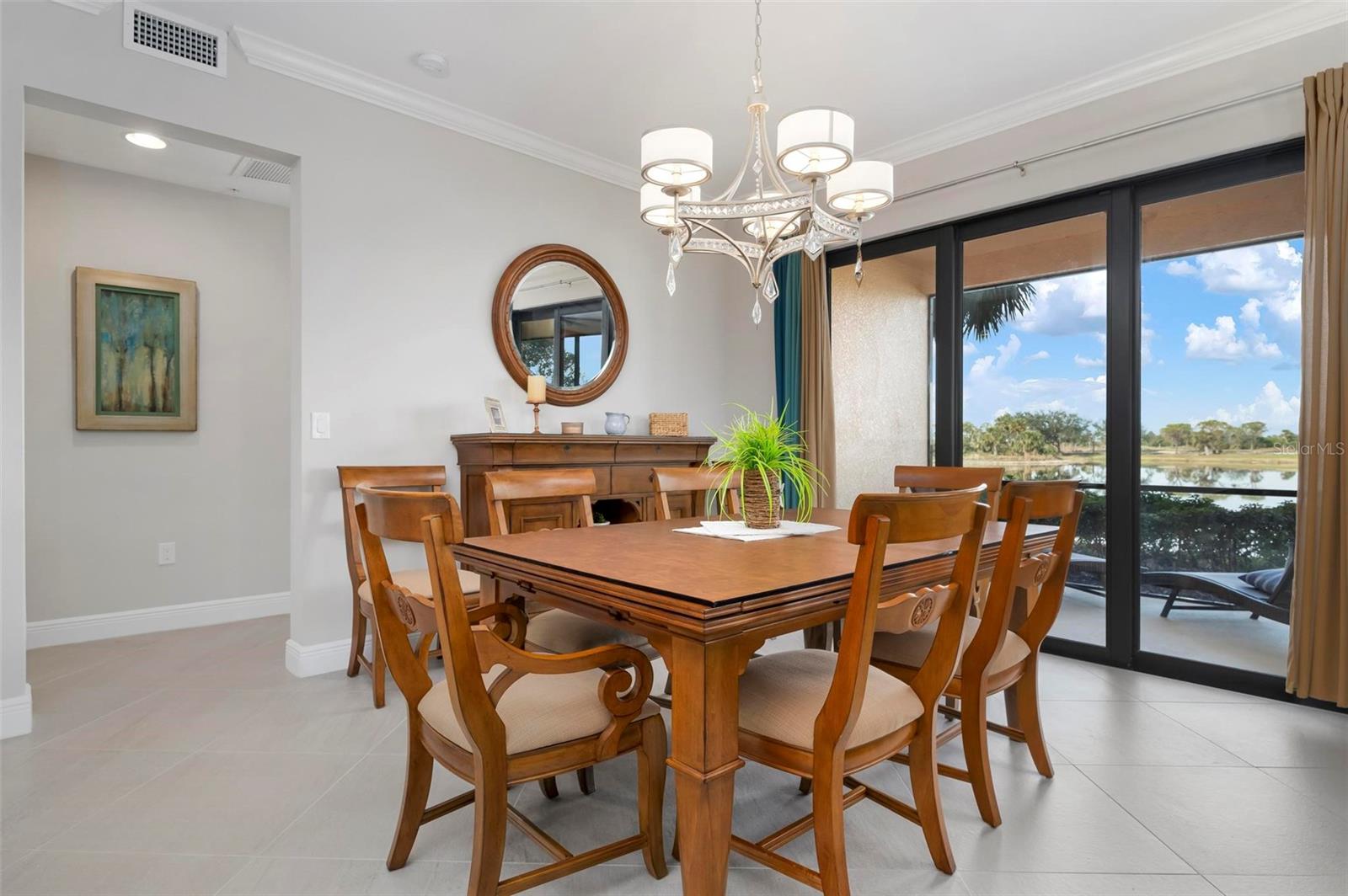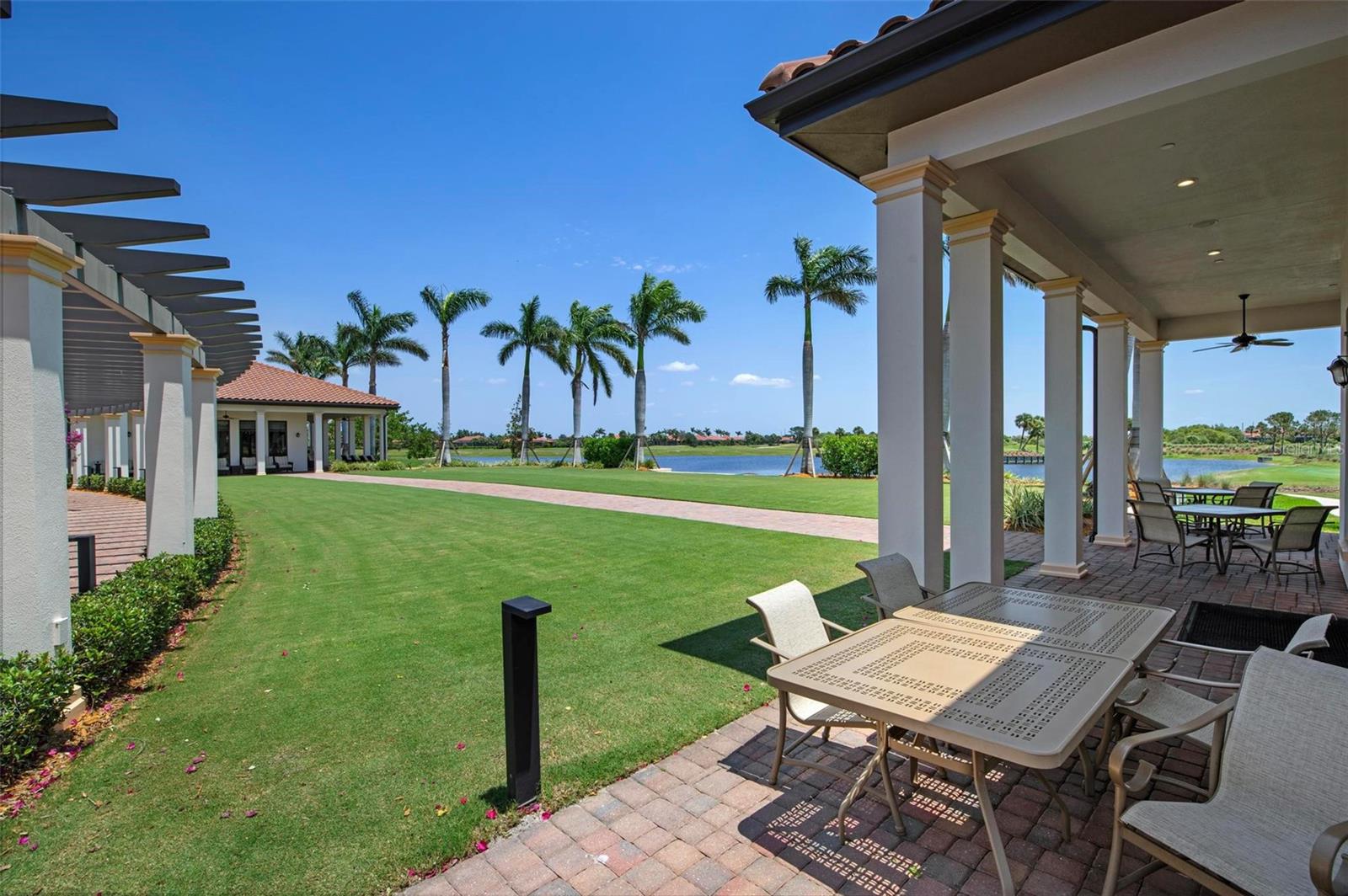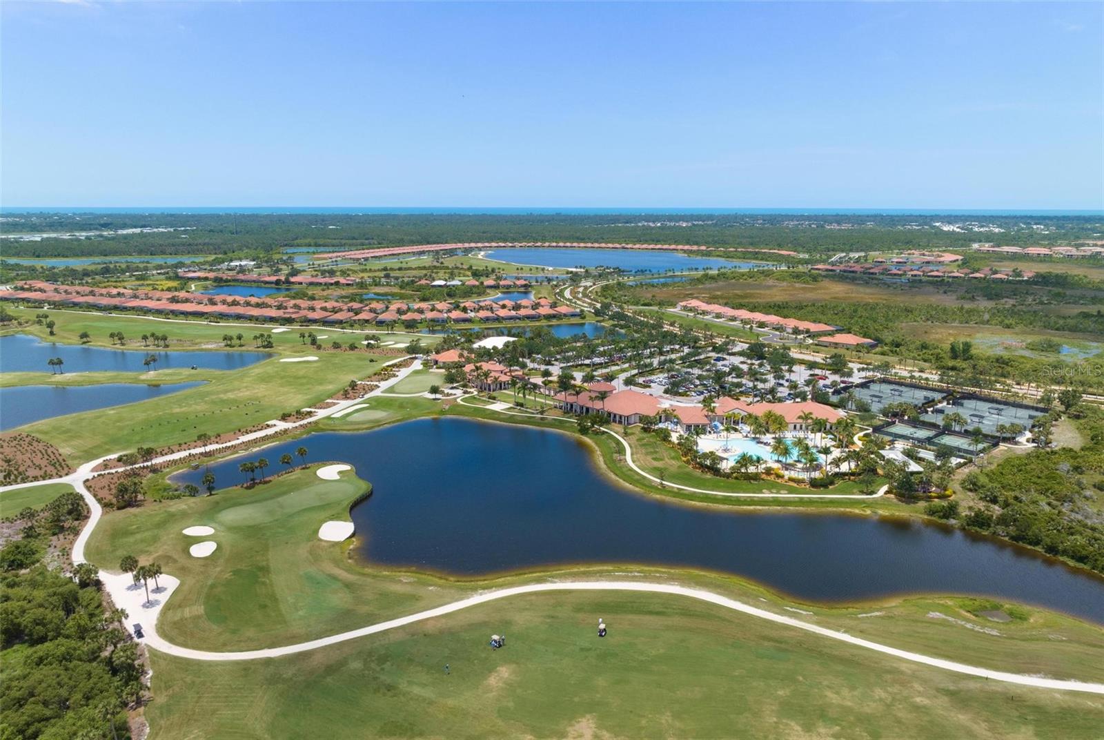 Welcome to maintenance free living! This stunning 2 bedroom plus den, 2 bathroom, first floor condo offers breathtaking water and golf course views, creating a serene and picturesque backdrop for everyday living. With 2 deeded golf memberships you'll enjoy unlimited access to premier fairways! This condo is designed with a bright and open floor plan and is flooded with natural light enhancing its spacious feel. This open floor plan features elegant finishes, and tasteful accents making it a perfect blend of comfort and sophistication. The split floor plan provides privacy for both owners and guests. The den can be utilized as a third bedroom. Enjoy your meals in the dinette area, at the breakfast bar or out on the screened lanai. It is here you will take in the colors of nightly sunsets! Along with the two car garage, there is a spacious laundry room as well as a large storage closet in addition to the kitchen pantry. Sarasota National offers an abundance of amenities including an onsite spa, fitness center with trainers, resort style pool, restaurant, coffee shop, tennis courts, pickleball and a dog park to name a few. Whether you end a busy day overlooking the water and sunset or are entertaining in the airy living space, this condo provides a luxurious retreat for golf enthusiasts and those who appreciate upscale living.