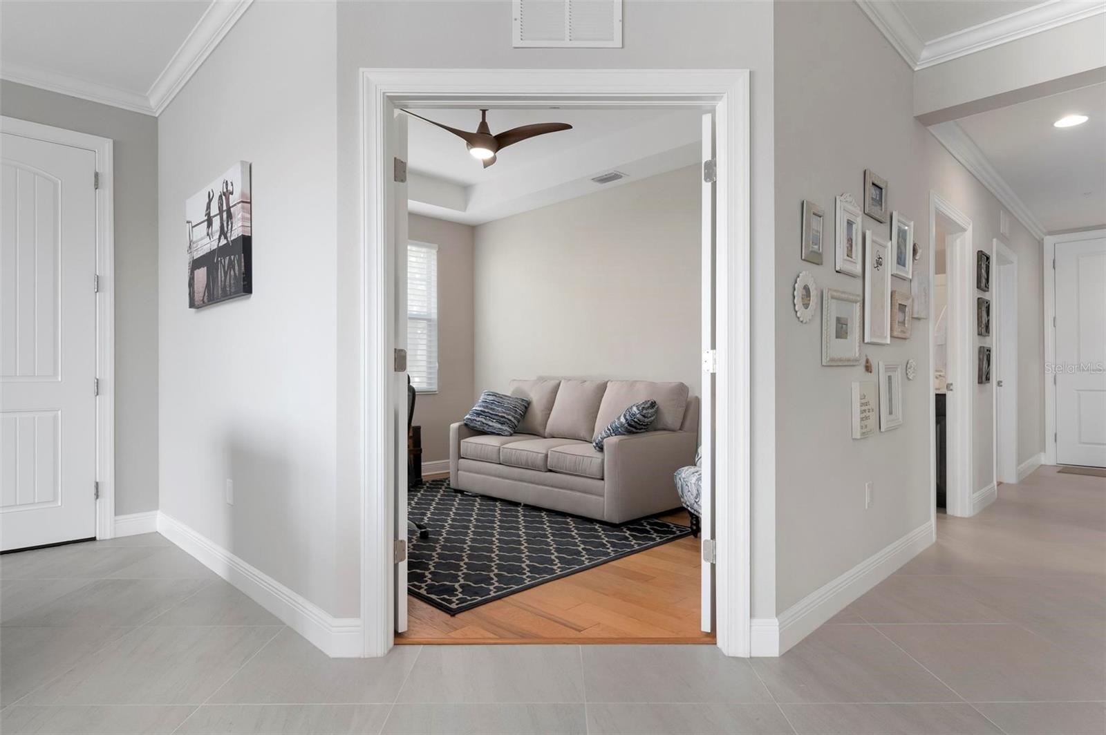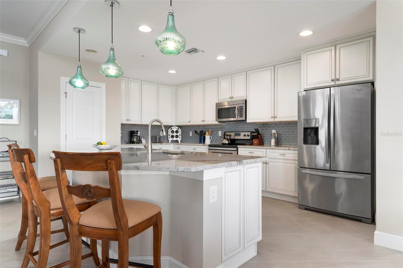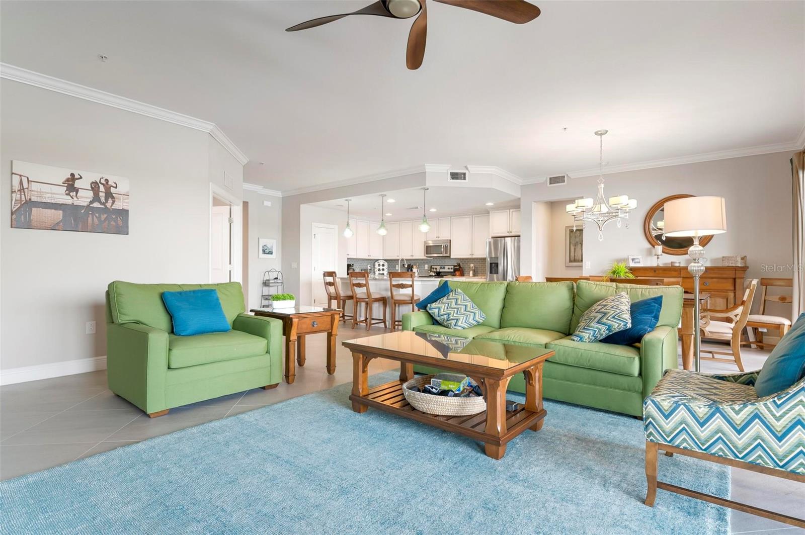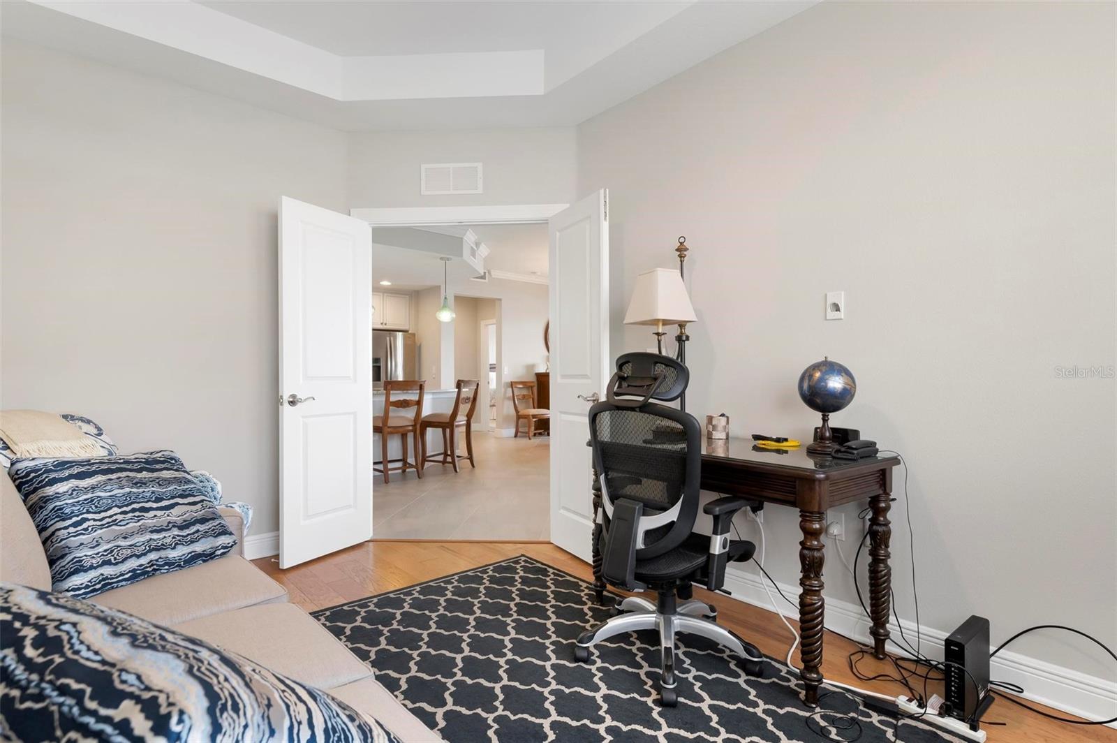 Welcome to maintenance free living! This stunning 2 bedroom plus den, 2 bathroom, first floor condo offers breathtaking water and golf course views, creating a serene and picturesque backdrop for everyday living. With 2 deeded golf memberships you'll enjoy unlimited access to premier fairways! This condo is designed with a bright and open floor plan and is flooded with natural light enhancing its spacious feel. This open floor plan features elegant finishes, and tasteful accents making it a perfect blend of comfort and sophistication. The split floor plan provides privacy for both owners and guests. The den can be utilized as a third bedroom. Enjoy your meals in the dinette area, at the breakfast bar or out on the screened lanai. It is here you will take in the colors of nightly sunsets! Along with the two car garage, there is a spacious laundry room as well as a large storage closet in addition to the kitchen pantry. Sarasota National offers an abundance of amenities including an onsite spa, fitness center with trainers, resort style pool, restaurant, coffee shop, tennis courts, pickleball and a dog park to name a few. Whether you end a busy day overlooking the water and sunset or are entertaining in the airy living space, this condo provides a luxurious retreat for golf enthusiasts and those who appreciate upscale living.
