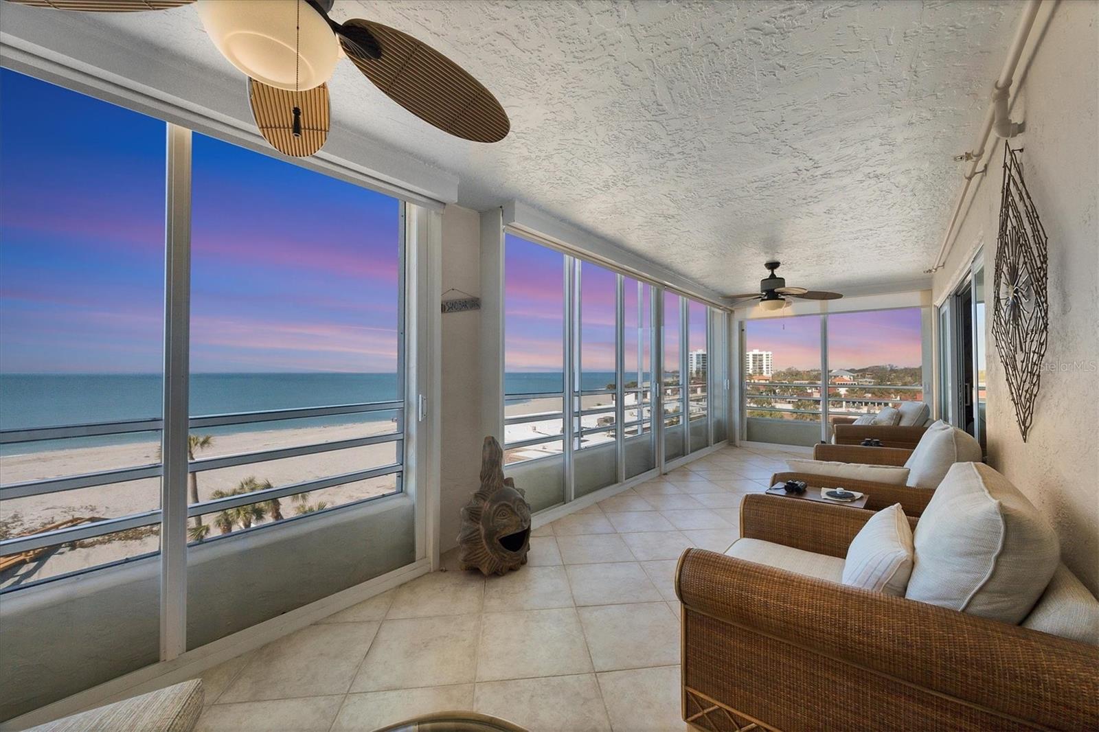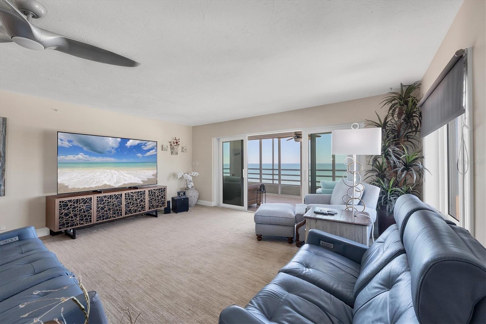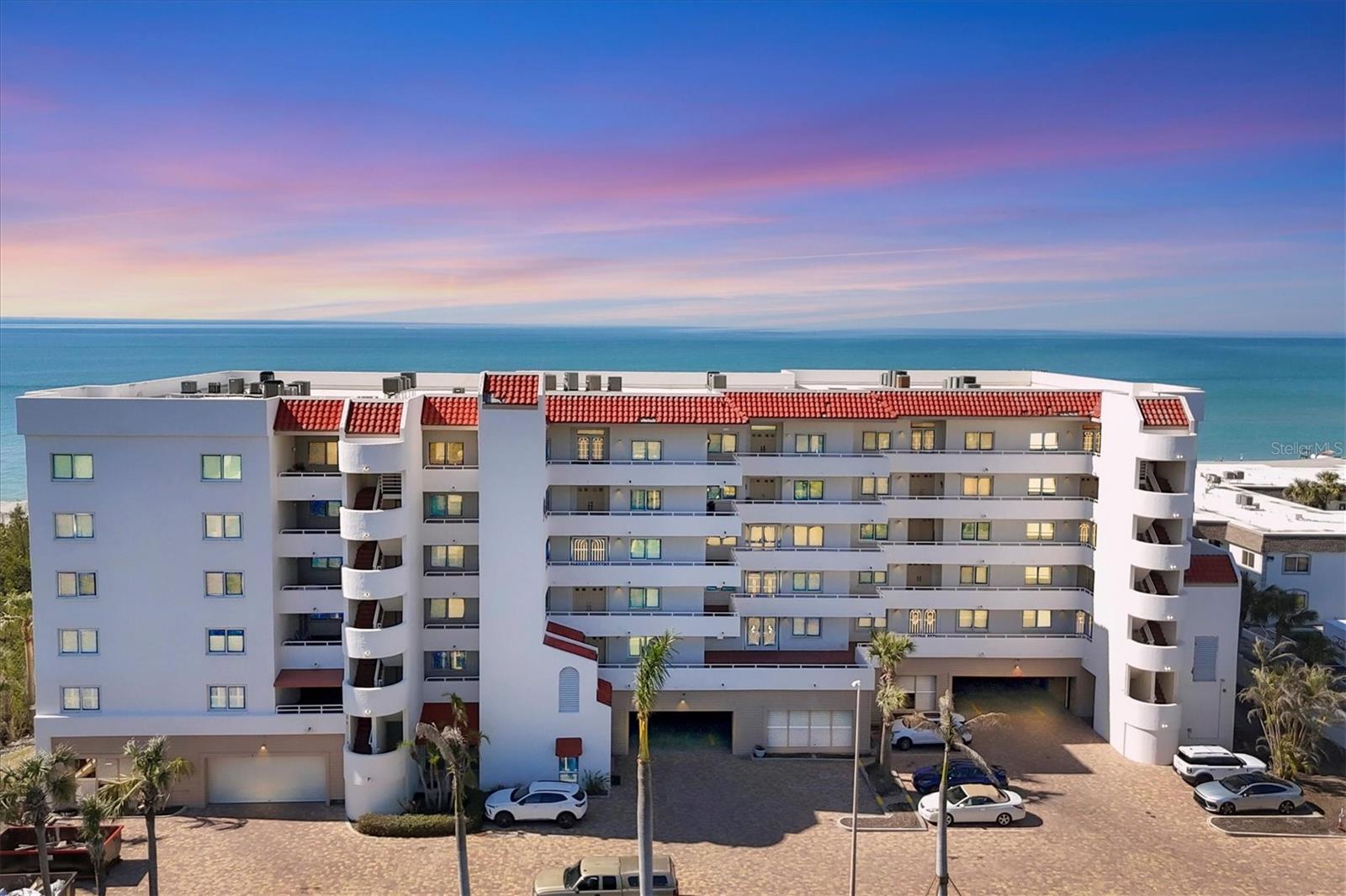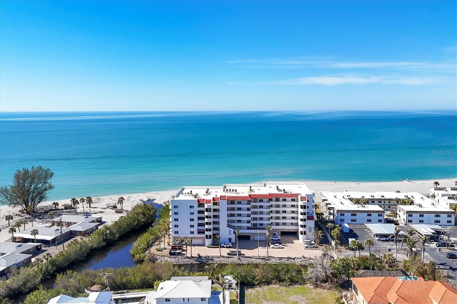 RARELY AVAILABLE. Welcome to Island Shores, a private and secluded beachfront mid-rise with breathtaking panoramic views and a quiet location. This updated CORNER UNIT includes 3 bedrooms, 2 and a half bathrooms, an additional office/den space which could serve as a 4th bedroom, and is coming FURNISHED. The property has been meticulously maintained and is one of largest condos on Venice Beach, and it’s a very short list. Boasting with a ton of features such as a 30-foot enclosed Florida room which stretches along the front giving you perfect views of the private beach and gulf, two open air side balconies that offers views of the city, upgraded hurricane impact glass windows and doors throughout, Trane air conditioning system, Bosch tankless water heater, front loading washer and dryer, completely remodeled bathrooms, large walk-in closets, updated tile flooring, massive hidden walk-in pantry, built in bar cabinets with additional sink, island pendant lighting in kitchen, double front entry doors, newer appliances, very tasteful done high-end furnishings, and the list goes on. The well-manicured community is unique and offers both a secured garage space for residents and an abundance of parking for guests. The large clubhouse includes a kitchen, gathering room, dining room, guest suites available for nightly rentals, a fitness room, a heated pool, and your own private beach access. Conveniently located just a walk away from shopping, entertainment, restaurants, golfing, marinas, and Historic Downtown Venice. This perfect location just cannot be beat. Only private showings available, call and schedule your appointment today, this will not last long!