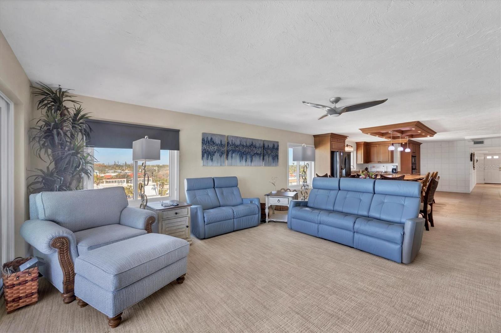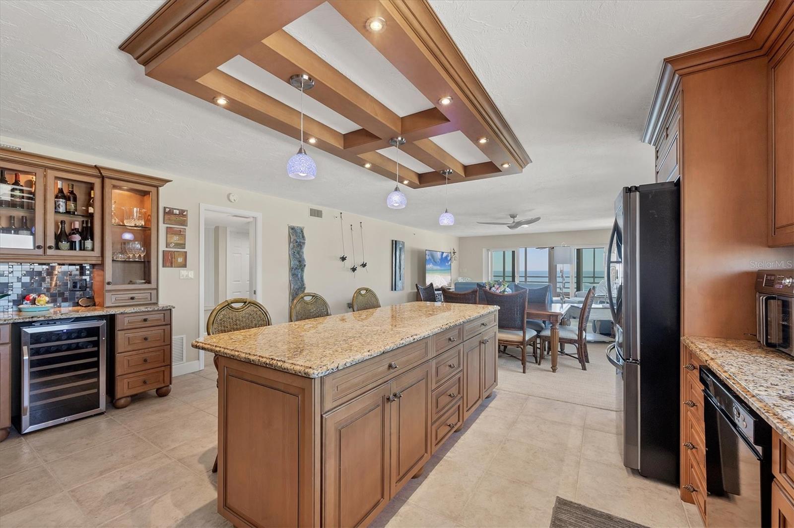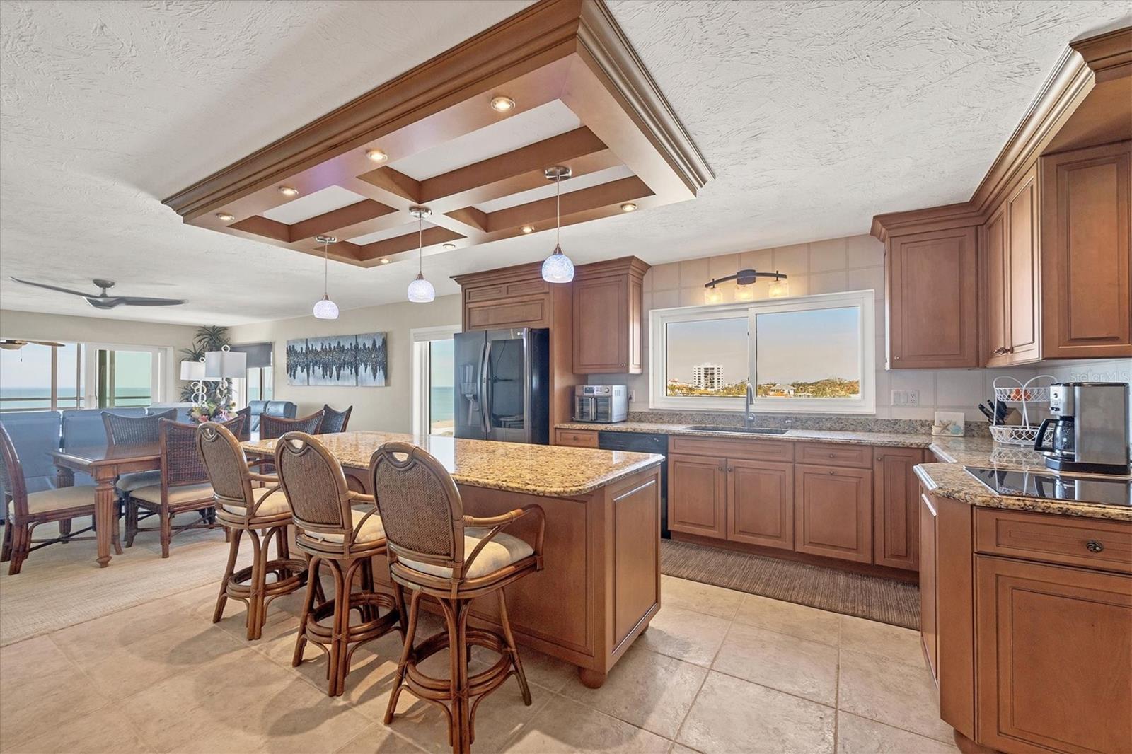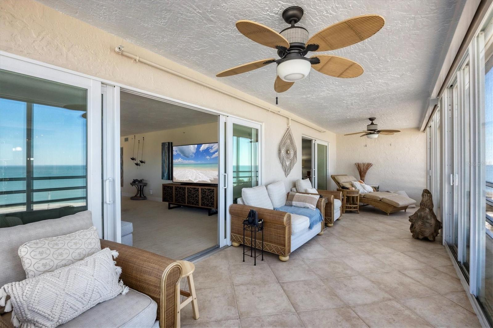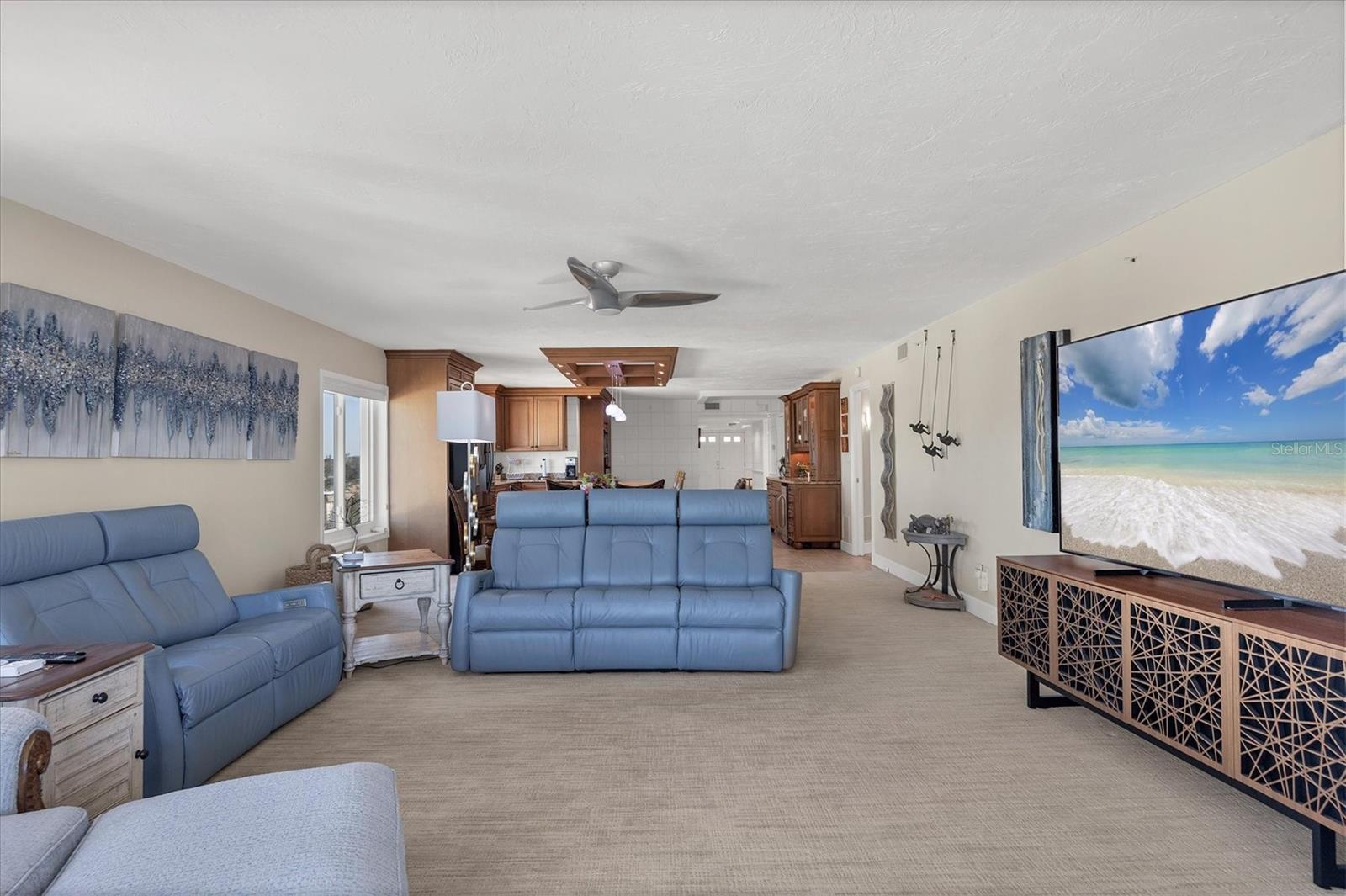 RARELY AVAILABLE. Welcome to Island Shores, a private and secluded beachfront mid-rise with breathtaking panoramic views and a quiet location. This updated CORNER UNIT includes 3 bedrooms, 2 and a half bathrooms, an additional office/den space which could serve as a 4th bedroom, and is coming FURNISHED. The property has been meticulously maintained and is one of largest condos on Venice Beach, and it’s a very short list. Boasting with a ton of features such as a 30-foot enclosed Florida room which stretches along the front giving you perfect views of the private beach and gulf, two open air side balconies that offers views of the city, upgraded hurricane impact glass windows and doors throughout, Trane air conditioning system, Bosch tankless water heater, front loading washer and dryer, completely remodeled bathrooms, large walk-in closets, updated tile flooring, massive hidden walk-in pantry, built in bar cabinets with additional sink, island pendant lighting in kitchen, double front entry doors, newer appliances, very tasteful done high-end furnishings, and the list goes on. The well-manicured community is unique and offers both a secured garage space for residents and an abundance of parking for guests. The large clubhouse includes a kitchen, gathering room, dining room, guest suites available for nightly rentals, a fitness room, a heated pool, and your own private beach access. Conveniently located just a walk away from shopping, entertainment, restaurants, golfing, marinas, and Historic Downtown Venice. This perfect location just cannot be beat. Only private showings available, call and schedule your appointment today, this will not last long!