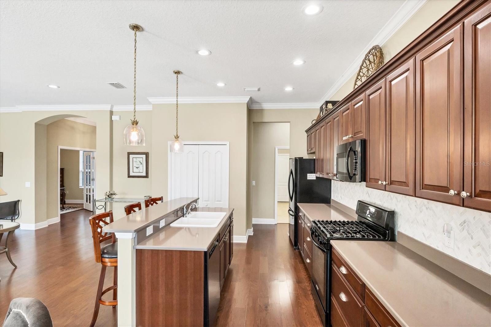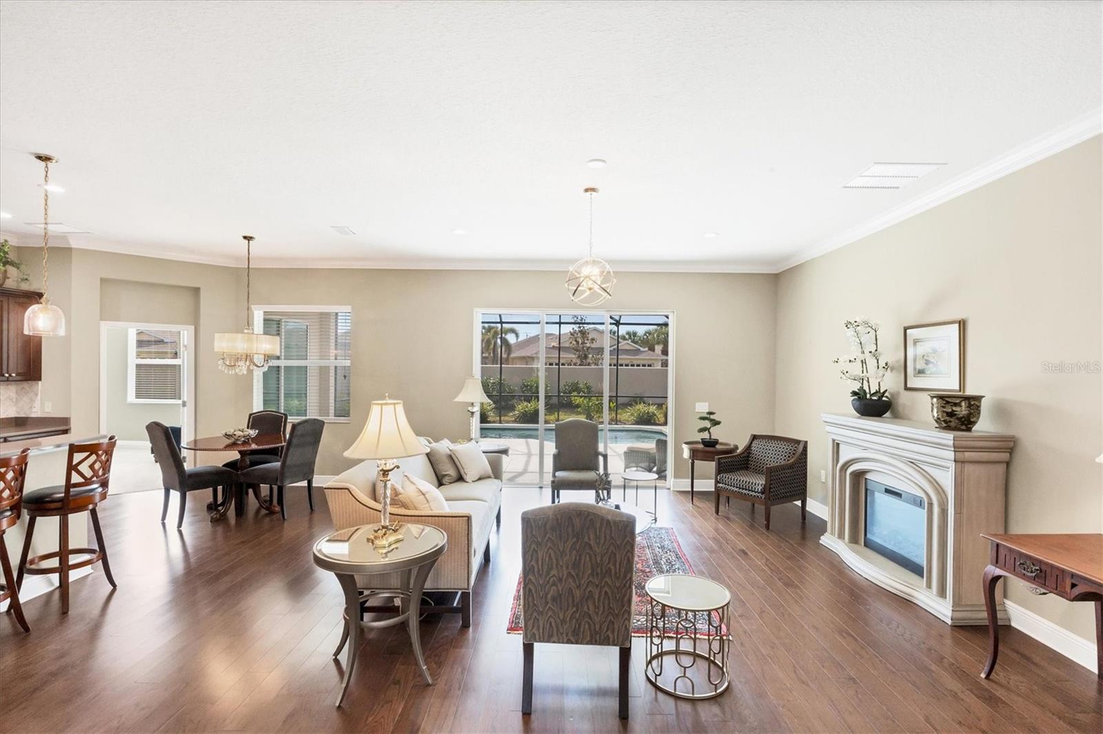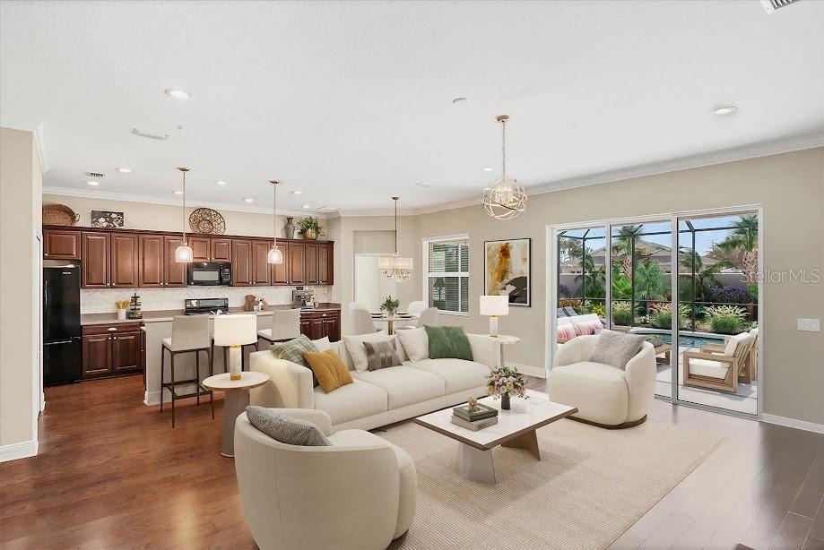 HURRY in to see this SPECTACULAR HOME!! Modified Stonebridge floor plan offers 3BD/2BA/Den/Bonus room and 2 car garage. Private pool with Southern exposure. Open great room floor plan combines living room, kitchen, and breakfast nook. Kitchen offers wood cabinets, Corian counters, tile backsplash, pendant lighting, and extra recessed lighting. Wood laminate flooring throughout main areas with carpets in bedrooms. Crown molding, updated lighting and fixtures. Separate office and dining room Extra Bonus room can accommodate any number of possibilities. Split bedroom with master on one side and guests on the other for privacy. Spacious master with en suite bath. Master bath offers dual sinks, walk in shower, and garden tub. 3D WALK THROUGH AT : https://my.matterport.com/show/?m=sgAbcZTscaR Sawgrass is a hidden gem of 54 acres of preserves, lakes, and golf course located in the middle of Venice just minutes away from Venice Beach, Downtown Venice, shopping, theaters, restaurants, highways, airports, and so much more. Very sociable neighborhood offering Updated Clubhouse, fitness center, tennis/pickleball courts, surrounded by 9 holes of the Ted Mcantis designed Waterford Golf Course. Golf membership is NOT required. Optional through Waterford Golf Club. LOW HOA FEES. NO CDD. See it today and start living your Florida lifestyle.
