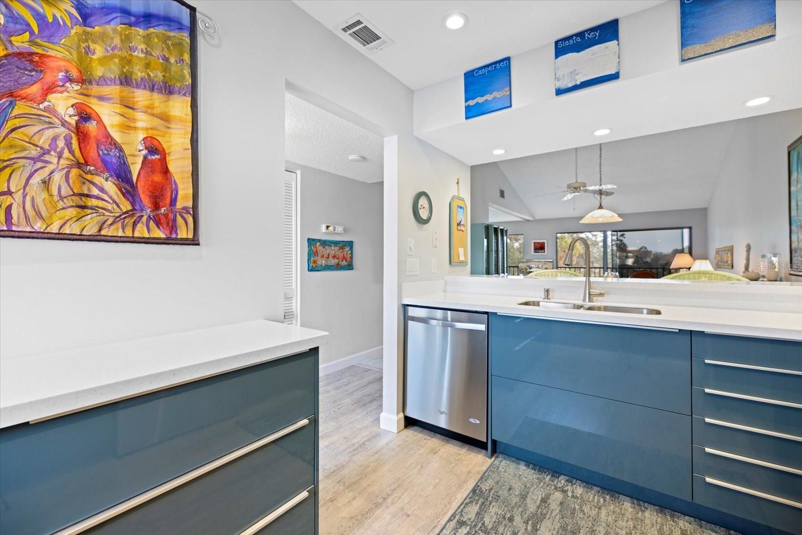 Discover Your Carefree Coastal Retreat! Step into this stunning, updated 2-bedroom, 2-bathroom second-floor condo in the vibrant Bird Bay Village community. With unobstructed views of the former Hawks Run Golf Course, this light-filled retreat combines modern comforts with the laid-back Florida lifestyle. Vaulted ceilings create a spacious, open feel, while the luxury vinyl flooring adds a sleek and durable touch. The updated kitchen is a chef’s delight, featuring stainless steel appliances, modern cabinets, and quartz countertops. Both bathrooms have been thoughtfully renovated, offering fresh, stylish finishes for your comfort. The second bedroom is currently set up as a den, complete with built-in closet space, making it a versatile space for guests, a home office, or a hobby room. The expansive screened lanai is perfect for sipping your morning coffee or enjoying evening breezes, with additional storage and a convenient laundry area tucked away. Resort-Style Living at Its Best Bird Bay Village is more than a community—it’s a lifestyle. With two pools, including a Junior Olympic-sized option for laps or lounging, tennis and pickleball courts, a fully equipped fitness center, and a clubhouse for social gatherings, you’ll never run out of activities. Nature lovers will enjoy the completed boardwalk overlooking Roberts Bay, perfect for sunsets and tranquil views. For outdoor enthusiasts, the Legacy Trail is right outside the community, offering miles of scenic biking and walking paths. Located just minutes from Venice Beach and historic Downtown Venice, you’ll have easy access to charming boutiques, delicious dining options, and world-famous Gulf Coast sunsets. This condo is truly move-in ready—all that’s missing is you! Whether you’re looking for a second home, planning to retire or just want to have your forever home in the warm Florida sunshine, this amenity-rich haven offers everything you need to live your best life. Schedule your private showing today and discover why every day feels like a vacation in Bird Bay Village!