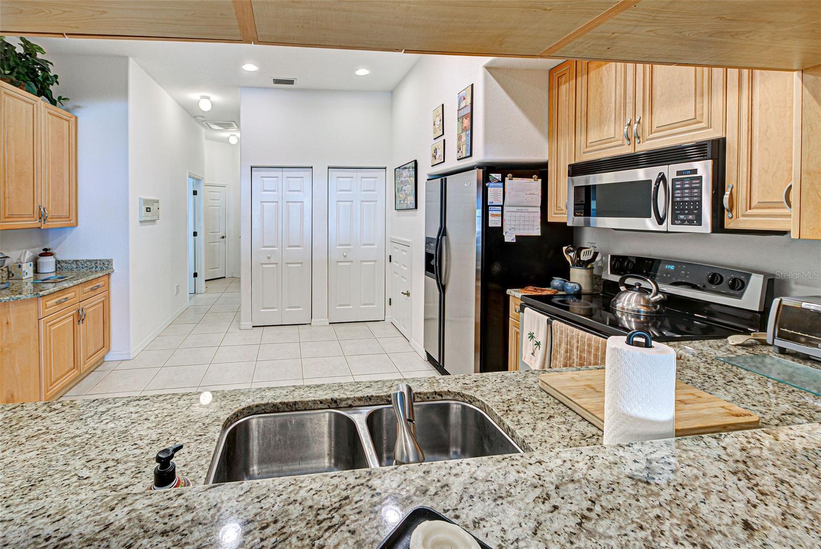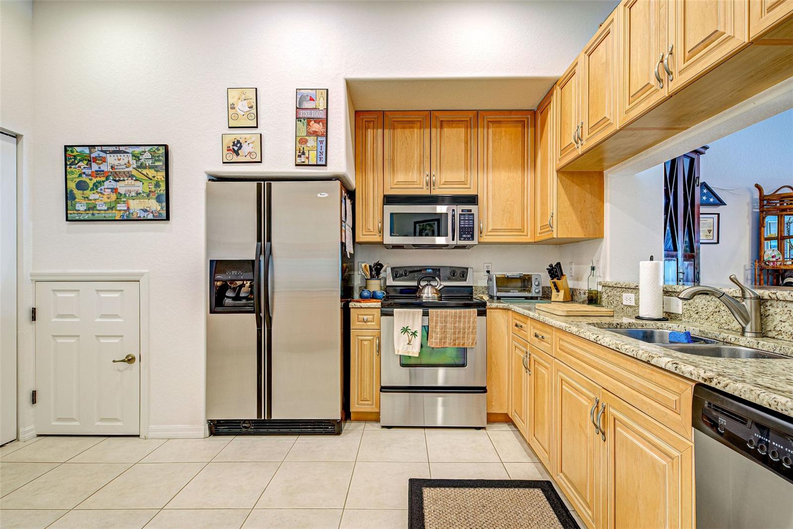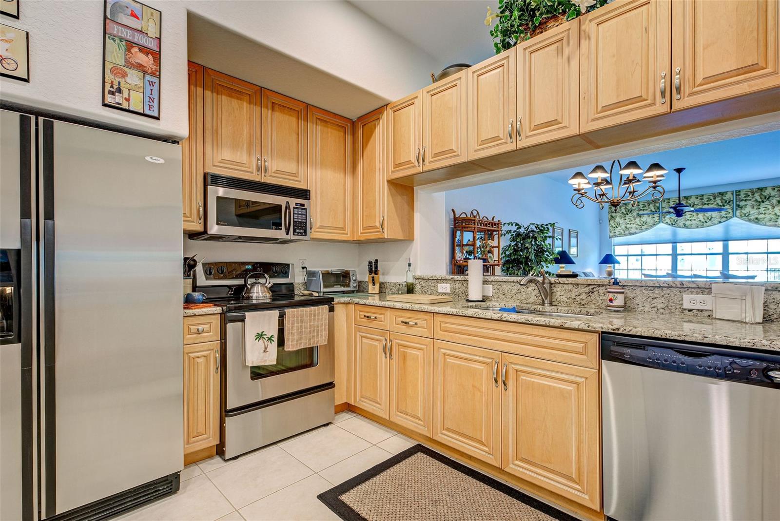 Discover this fabulous TURNKEY first-floor originally one of the models! This condo has upgraded cabinets and upgraded countertops. Come see these 2 bedrooms, 2 bath Triano condo with attached garage which features a view of the pool, waterfalls, and the beautiful clubhouse! This unit boasts upgraded kitchen cabinets with granite countertops—perfect for entertaining family and guests. The stackable washer and dryer are conveniently located in their own closet. Recent improvements include a **NEW TILE ROOF**, **NEW GUTTERS**, and **NEW EXTERIOR PAINT** in 2024. HOA REDUCED TO $576.66 MONTHLY! Triano is a very unique community with 108 condominiums, lush landscaping, a garden walk with waterfalls, beautiful pool, fitness center and clubhouse. Convenient to downtown Venice, beautiful beaches, shopping, restaurants, golfing, Legacy Trail, Fox Lea Farm, Cool Today Park, Sarasota and so much more! Make an appointment to see this condo ASAP!