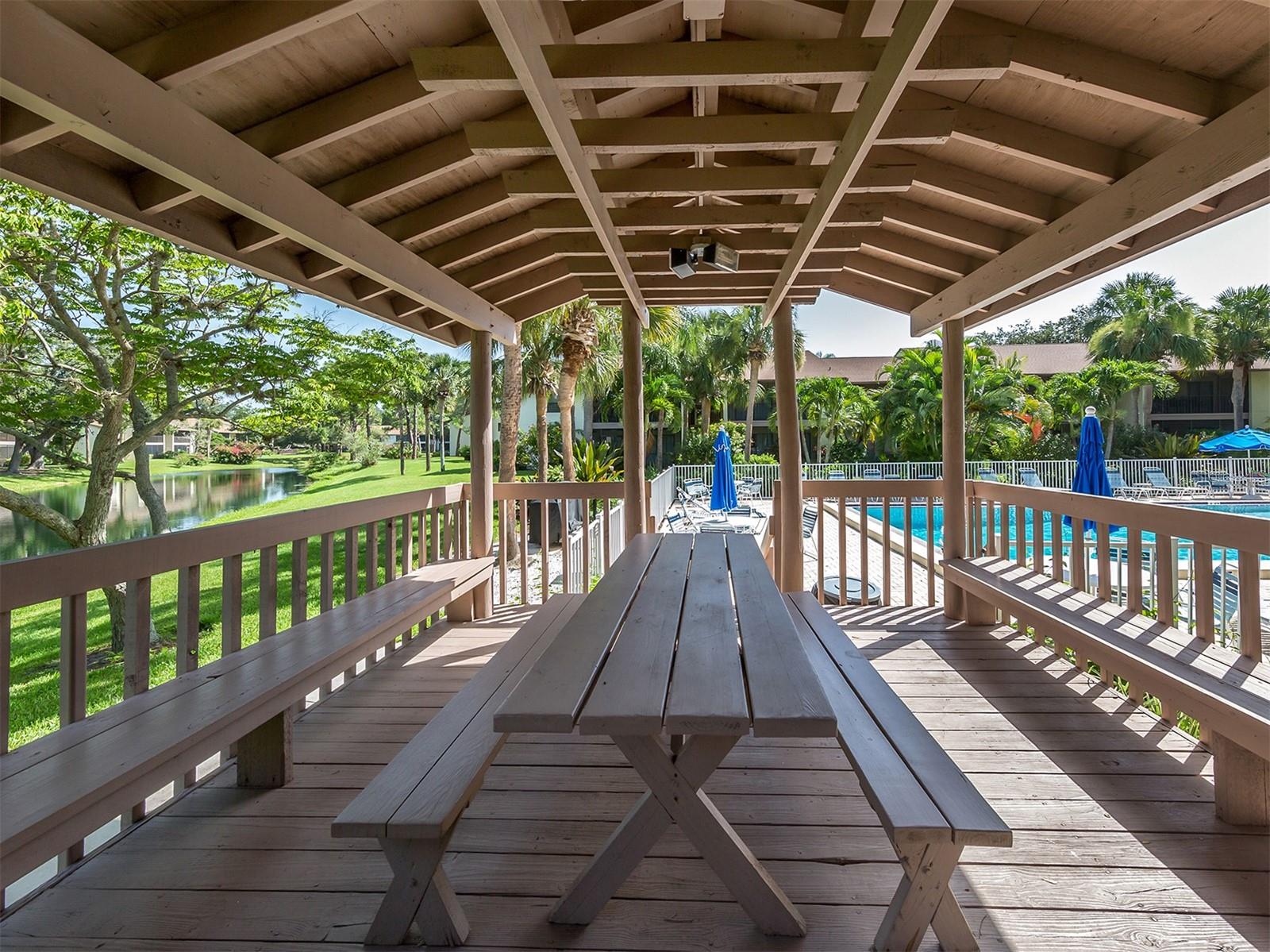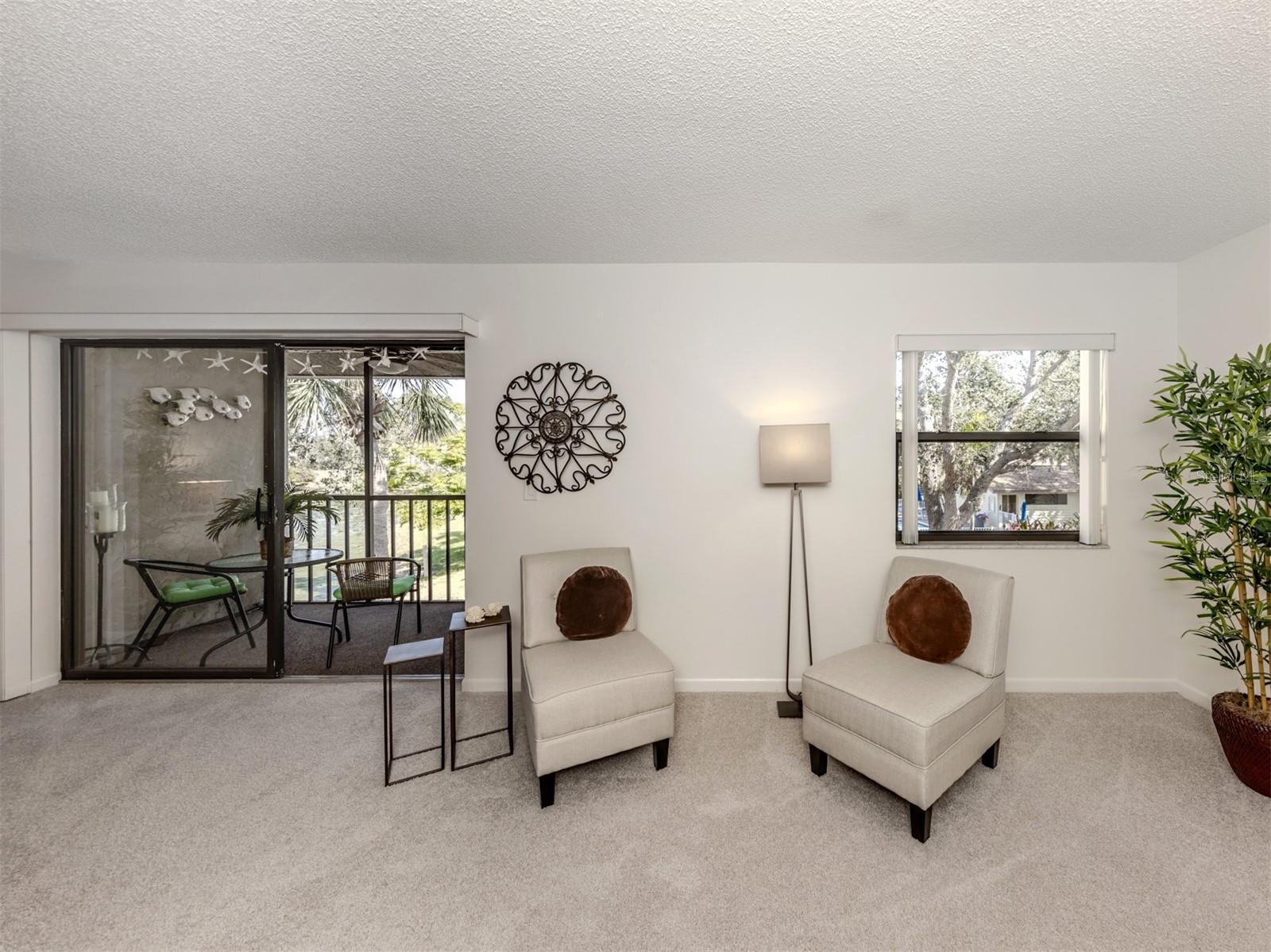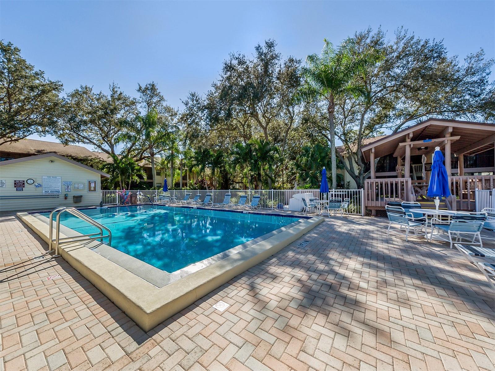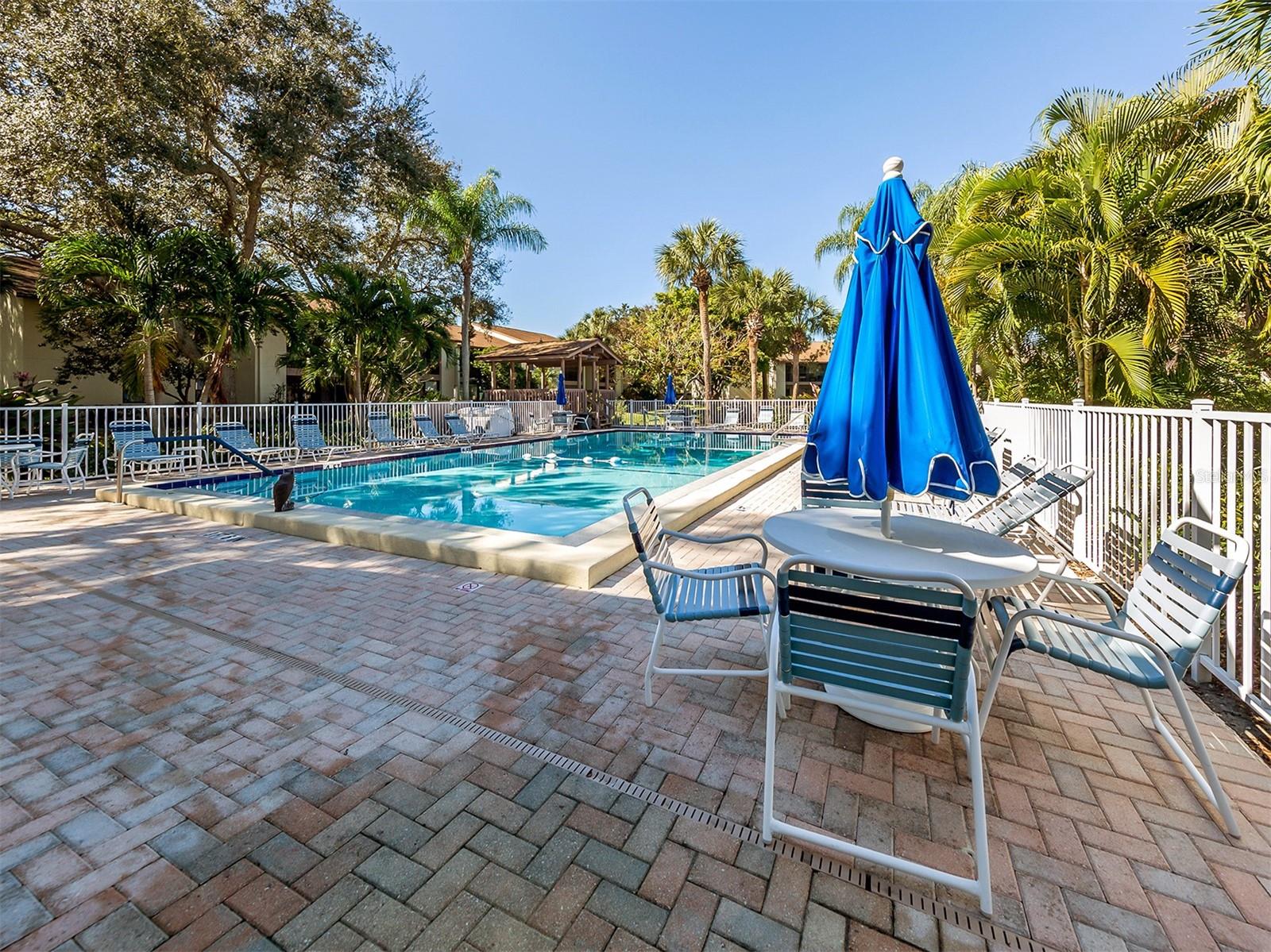 AMAZING PRICE REDUCTION. Come see TODAY! Location, location, location! Want to be oh so close to Venice Island boutique shopping and fine dining? Close to both Venice and Nokomis Beaches? In search of an affordable HOA, in a PET FRIENDLY ASSOCIATION with a multitude of amenities and sociable neighbors? This Bird Bay Village condominium is the answer! Priced to sell, and offered TURNKEY FURNISHED with minor exceptions, this pristine end-unit condominium, in flood zone ‘X’, is ideally located in the coveted, well-run PHASE V of Bird Bay Village boasting one of the lowest HOA's, block construction, and not requiring any structural analysis studies. With a versatile bonus room as a possible third bedroom, office, or den, this two-bedroom, two-bathroom home provides an open sunlit layout with spacious living and dining area. Enjoy stunning views, morning, noon, or night from your balcony overlooking both the heated, private Phase V pool and nearby lake. A modern kitchen features new quartz countertops, designer backsplash, and breakfast bar. A large primary bedroom includes updated ensuite bath, walk-in closet, and attic storage with pull-down ladder. A well-sized second bedroom, also with walk-in closet, and a living room pull-out sofa provide overnight accommodations for six or more. Not short on storage or convenience, additional space for your extra items is found just steps from your front door in an assigned exterior closet. And a lanai utility closet is complete with a brand-new washer and dryer! But convenience doesn't stop here – a designated covered parking space is located mere feet from the unit. More recent upgrades include a freshly painted interior, new carpeting, water heater, lanai screening, stylish ceiling fans and baths. Bird Bay Village, located next to the Legacy Trail with miles of scenic walking and biking to Venice Island and Sarasota, is a pet-friendly, sociable community with an active Club House, Junior Olympic Pool, Gym, Library, Pickleball, Tennis, Bocce and Shuffleboard Courts, Meeting Rooms and On-Site Manager. With its prime location, modern updates, and resort-like amenities this condominium is waiting for you to make it yours. Come home to Bird Bay Village - where neighbors become friends!