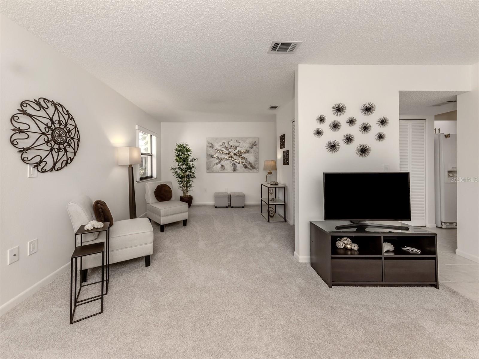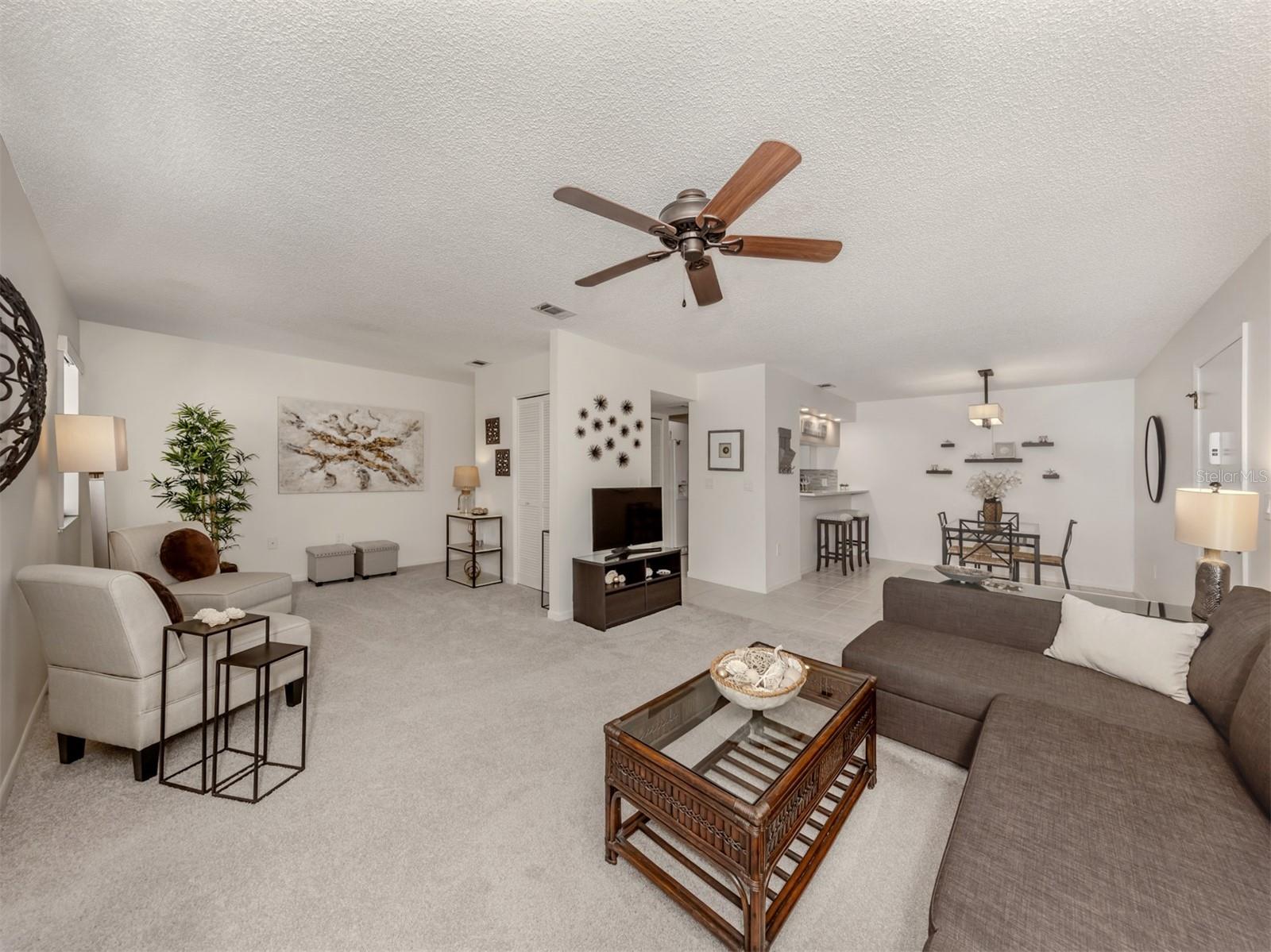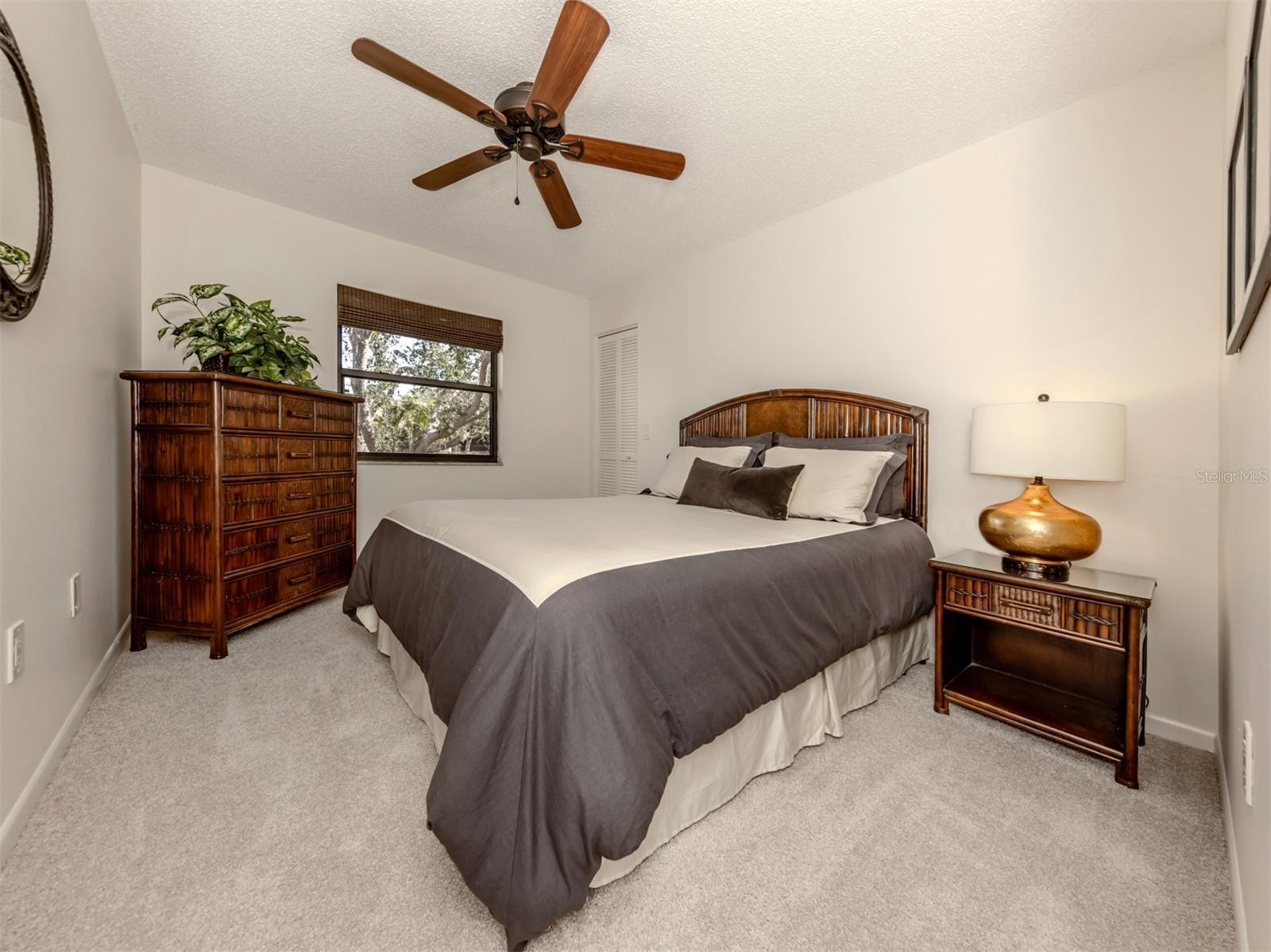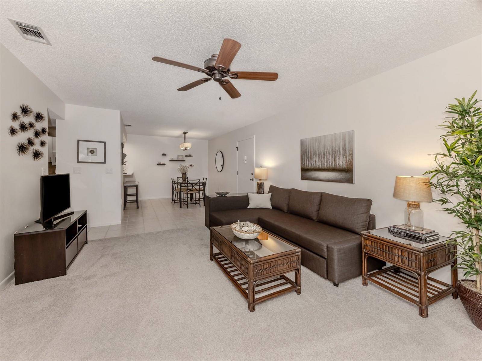 AMAZING PRICE REDUCTION. Come see TODAY! Location, location, location! Want to be oh so close to Venice Island boutique shopping and fine dining? Close to both Venice and Nokomis Beaches? In search of an affordable HOA, in a PET FRIENDLY ASSOCIATION with a multitude of amenities and sociable neighbors? This Bird Bay Village condominium is the answer! Priced to sell, and offered TURNKEY FURNISHED with minor exceptions, this pristine end-unit condominium, in flood zone ‘X’, is ideally located in the coveted, well-run PHASE V of Bird Bay Village boasting one of the lowest HOA's, block construction, and not requiring any structural analysis studies. With a versatile bonus room as a possible third bedroom, office, or den, this two-bedroom, two-bathroom home provides an open sunlit layout with spacious living and dining area. Enjoy stunning views, morning, noon, or night from your balcony overlooking both the heated, private Phase V pool and nearby lake. A modern kitchen features new quartz countertops, designer backsplash, and breakfast bar. A large primary bedroom includes updated ensuite bath, walk-in closet, and attic storage with pull-down ladder. A well-sized second bedroom, also with walk-in closet, and a living room pull-out sofa provide overnight accommodations for six or more. Not short on storage or convenience, additional space for your extra items is found just steps from your front door in an assigned exterior closet. And a lanai utility closet is complete with a brand-new washer and dryer! But convenience doesn't stop here – a designated covered parking space is located mere feet from the unit. More recent upgrades include a freshly painted interior, new carpeting, water heater, lanai screening, stylish ceiling fans and baths. Bird Bay Village, located next to the Legacy Trail with miles of scenic walking and biking to Venice Island and Sarasota, is a pet-friendly, sociable community with an active Club House, Junior Olympic Pool, Gym, Library, Pickleball, Tennis, Bocce and Shuffleboard Courts, Meeting Rooms and On-Site Manager. With its prime location, modern updates, and resort-like amenities this condominium is waiting for you to make it yours. Come home to Bird Bay Village - where neighbors become friends!