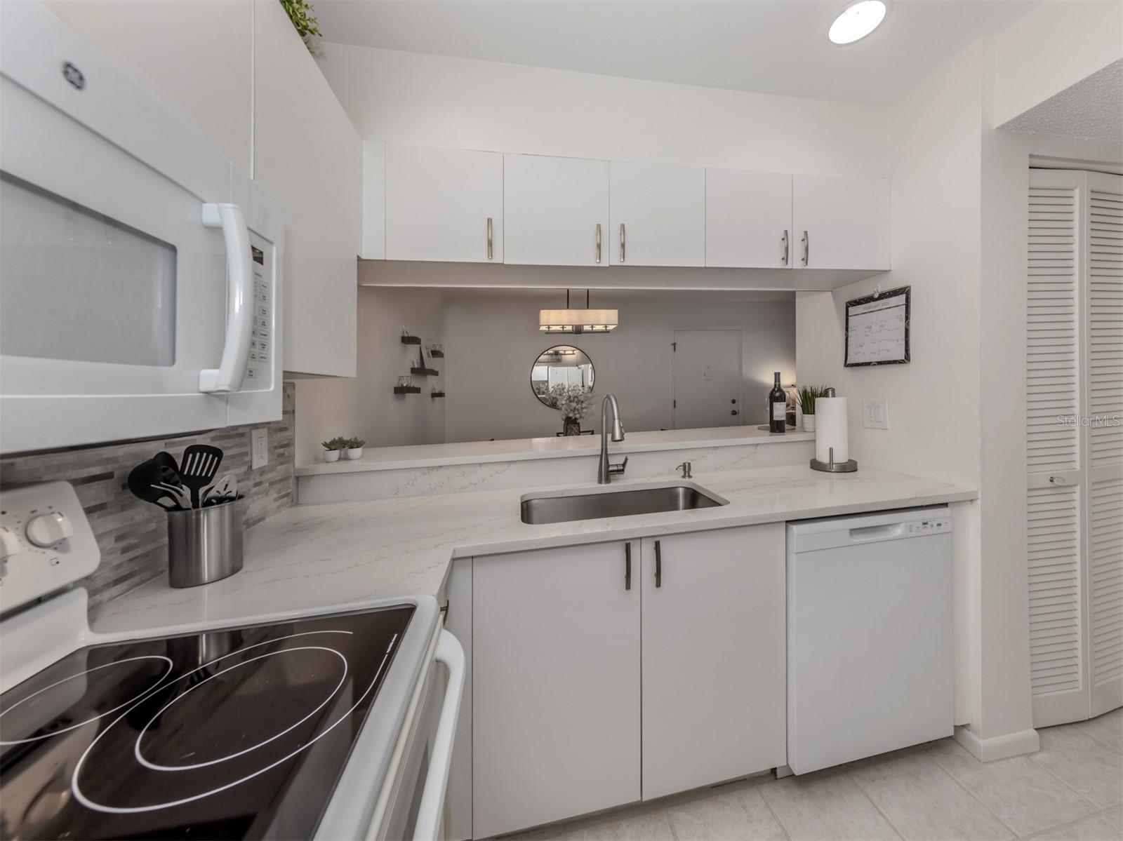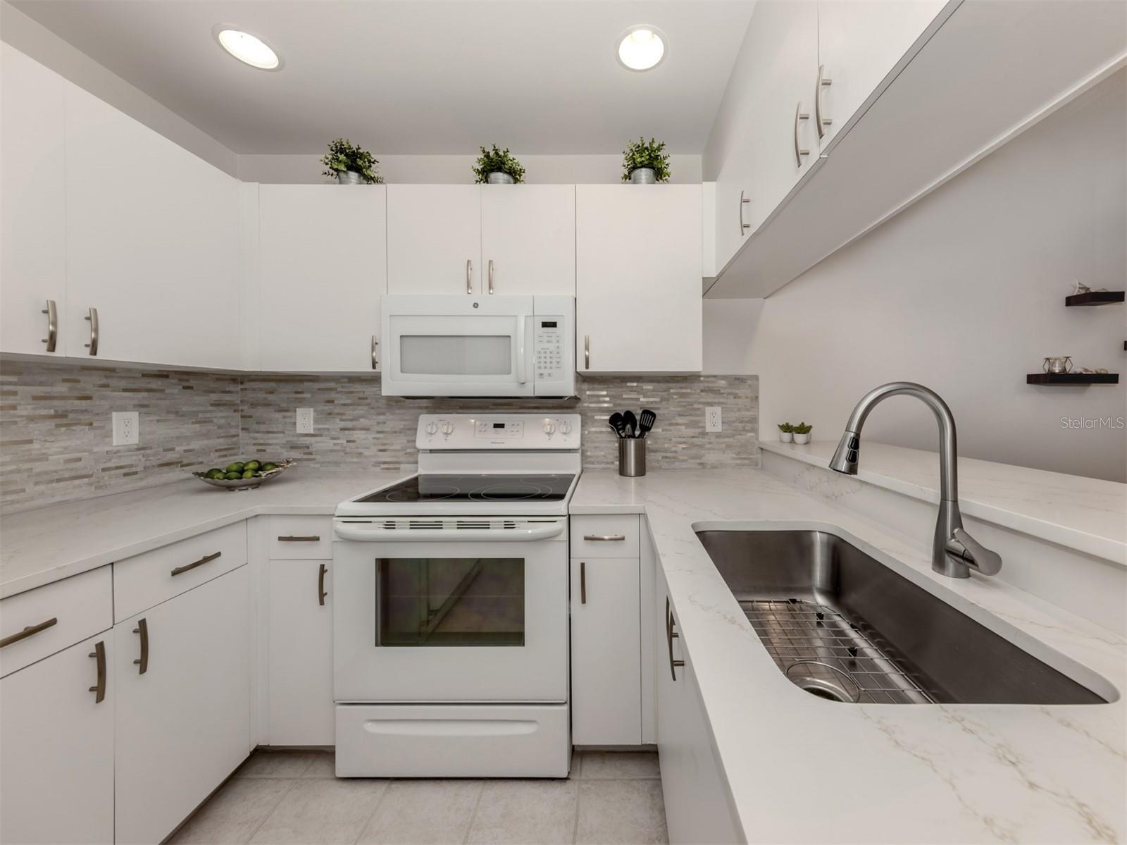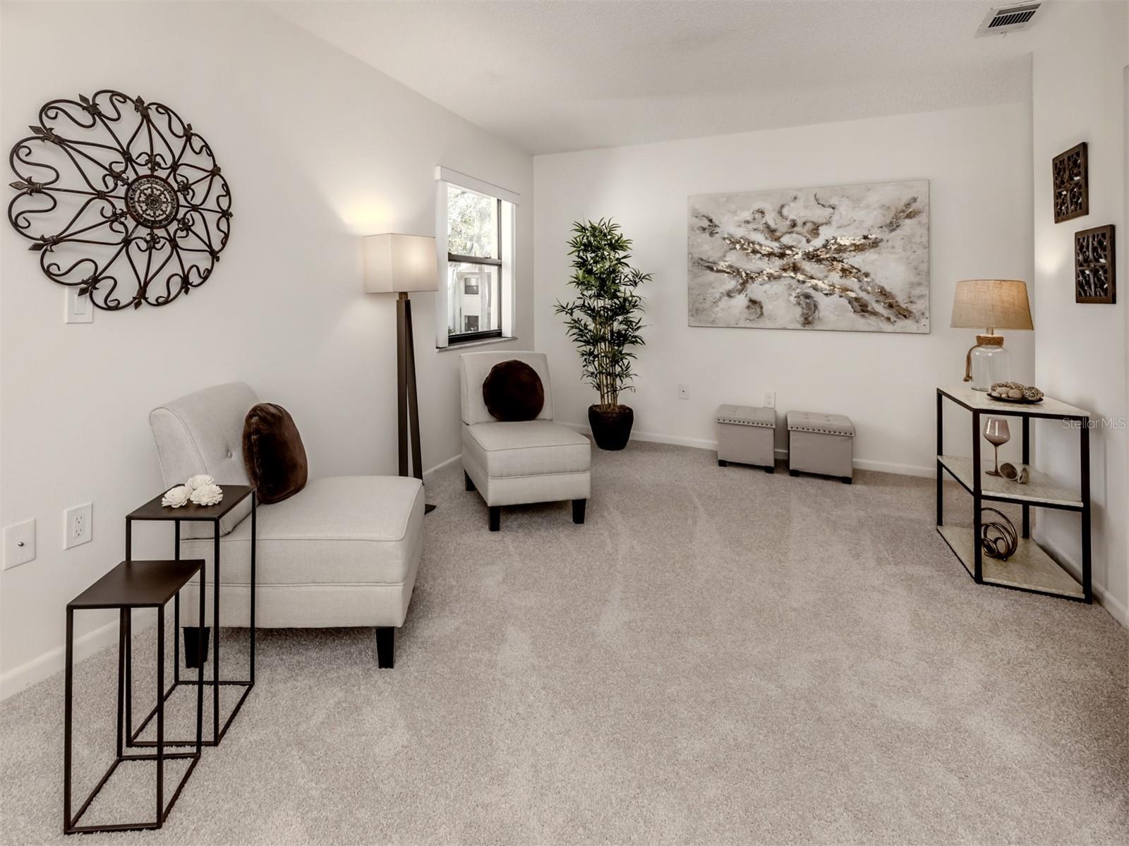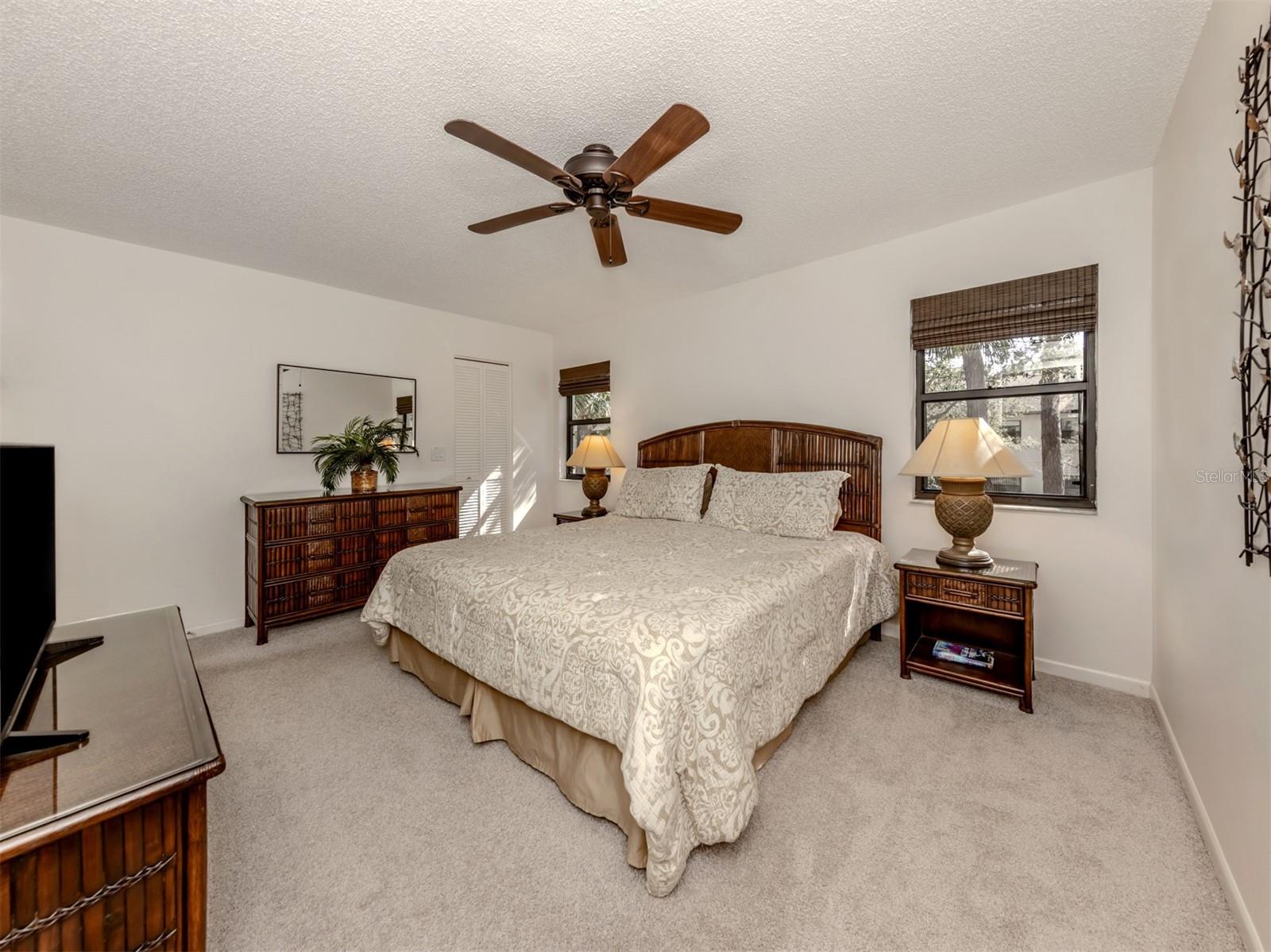 AMAZING PRICE REDUCTION. Come see TODAY! Location, location, location! Want to be oh so close to Venice Island boutique shopping and fine dining? Close to both Venice and Nokomis Beaches? In search of an affordable HOA, in a PET FRIENDLY ASSOCIATION with a multitude of amenities and sociable neighbors? This Bird Bay Village condominium is the answer! Priced to sell, and offered TURNKEY FURNISHED with minor exceptions, this pristine end-unit condominium, in flood zone ‘X’, is ideally located in the coveted, well-run PHASE V of Bird Bay Village boasting one of the lowest HOA's, block construction, and not requiring any structural analysis studies. With a versatile bonus room as a possible third bedroom, office, or den, this two-bedroom, two-bathroom home provides an open sunlit layout with spacious living and dining area. Enjoy stunning views, morning, noon, or night from your balcony overlooking both the heated, private Phase V pool and nearby lake. A modern kitchen features new quartz countertops, designer backsplash, and breakfast bar. A large primary bedroom includes updated ensuite bath, walk-in closet, and attic storage with pull-down ladder. A well-sized second bedroom, also with walk-in closet, and a living room pull-out sofa provide overnight accommodations for six or more. Not short on storage or convenience, additional space for your extra items is found just steps from your front door in an assigned exterior closet. And a lanai utility closet is complete with a brand-new washer and dryer! But convenience doesn't stop here – a designated covered parking space is located mere feet from the unit. More recent upgrades include a freshly painted interior, new carpeting, water heater, lanai screening, stylish ceiling fans and baths. Bird Bay Village, located next to the Legacy Trail with miles of scenic walking and biking to Venice Island and Sarasota, is a pet-friendly, sociable community with an active Club House, Junior Olympic Pool, Gym, Library, Pickleball, Tennis, Bocce and Shuffleboard Courts, Meeting Rooms and On-Site Manager. With its prime location, modern updates, and resort-like amenities this condominium is waiting for you to make it yours. Come home to Bird Bay Village - where neighbors become friends!