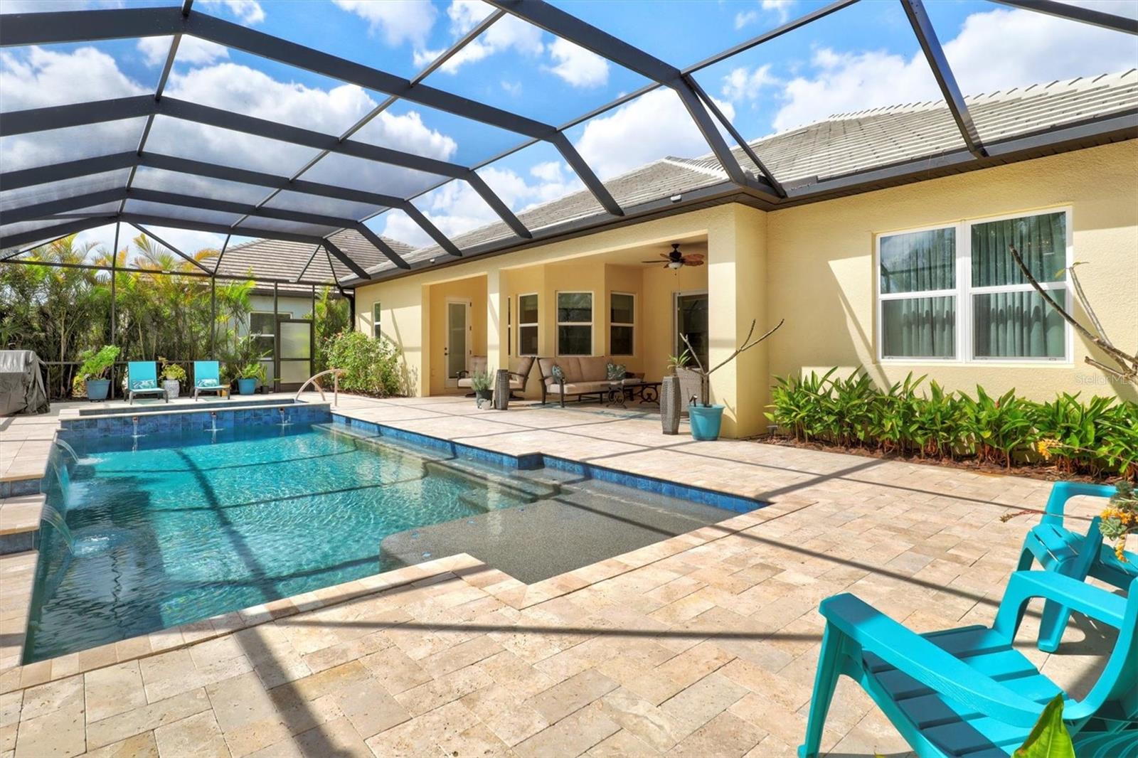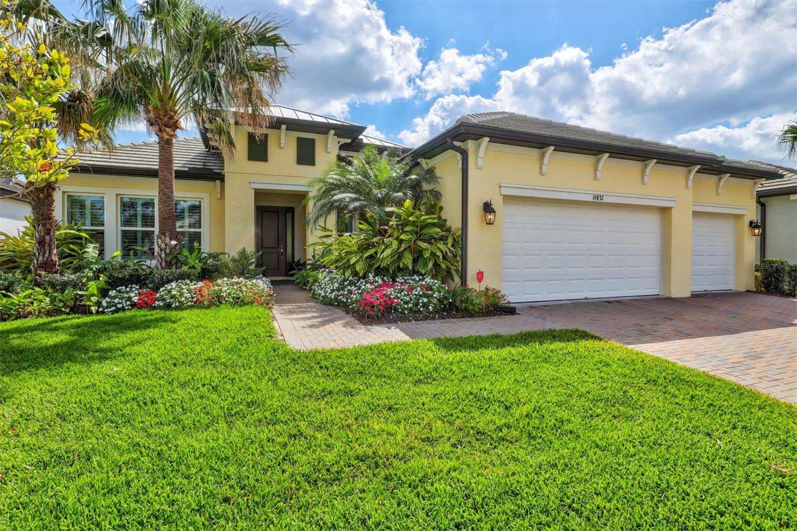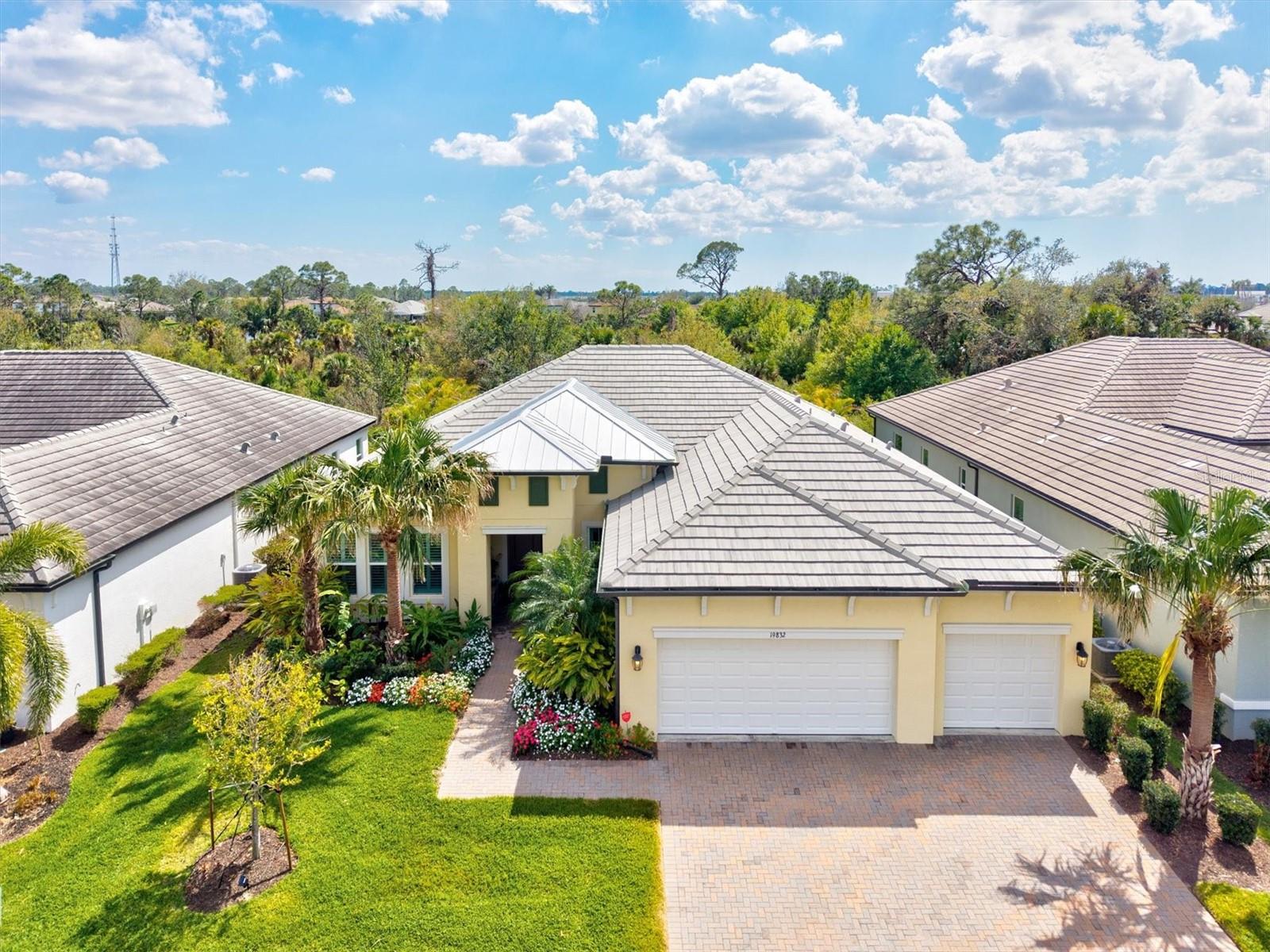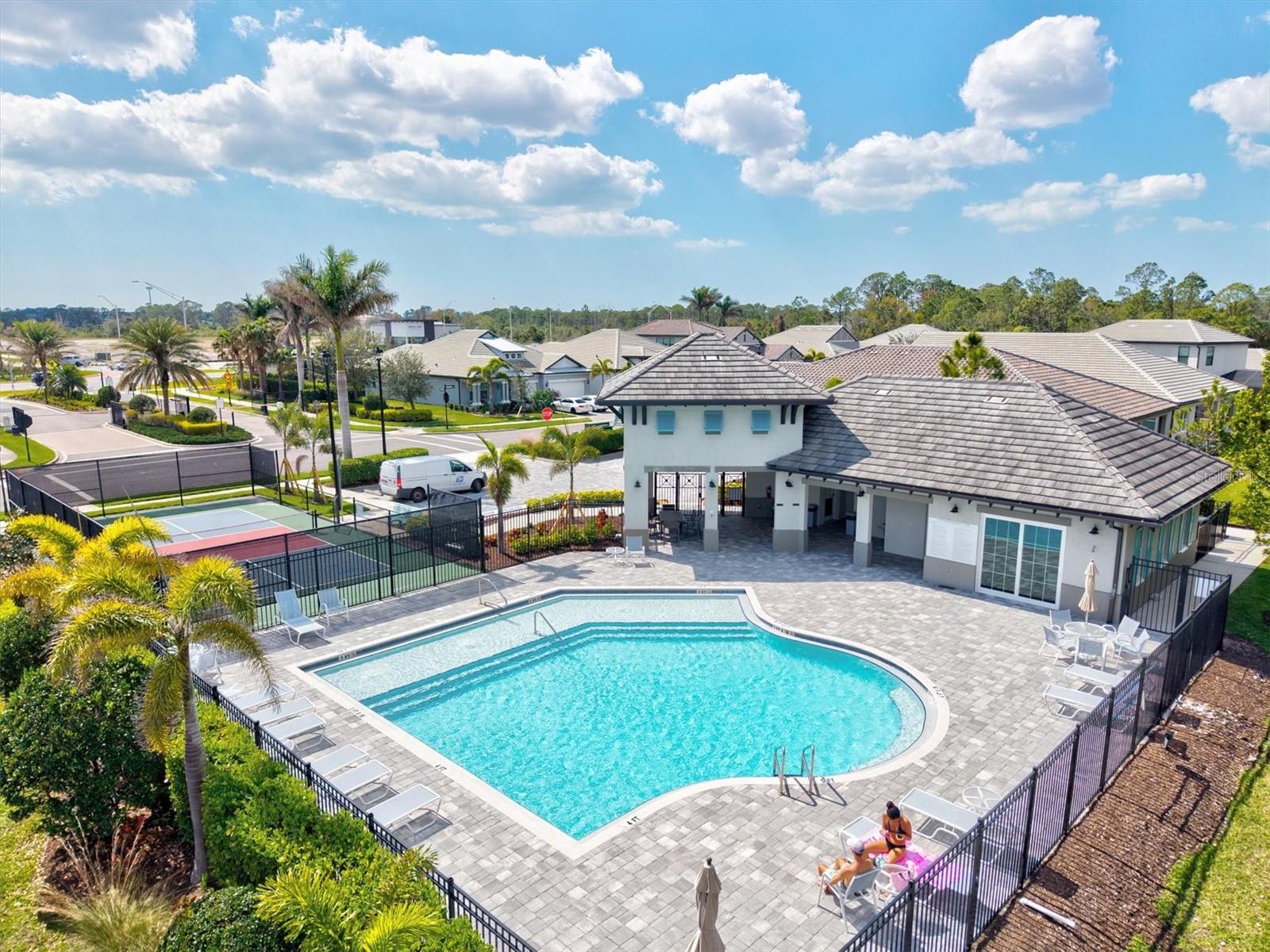 Nestled in the sought-after Oasis community within Wellen Park, this stunning executive home effortlessly combines elegance, luxury, and tranquility. As you approach 19832 Bridgetown Loop, the home's striking curb appeal immediately catches the eye, with a paver driveway and lead walk framed by lush tropical landscaping. Upon entering, the expansive great room greets you with soaring ceilings, oversized tile flooring, custom window treatments, and elegant baseboards and crown molding add the perfect finishing touches. Both the living room and dining room feature tray ceilings and large sliding glass doors open to an exceptional outdoor living space. The custom 37’x15’ saltwater pool and spa is large and luxurious, boasting three waterfalls, a sun shelf, two seating ledges, LED lighting, and an oversized spa with cascading aqua spouts. The covered lanai with outdoor kitchen prep and the full-length pool cage, all adorned with travertine stone pavers, offers ample space for relaxation. The gourmet kitchen, thoughtfully expanded by the current owners, is every chef's dream. Featuring high-end GE Profile appliances, including an induction cooktop, convection oven, convection microwave, and a quiet 45db dishwasher, the kitchen is designed to impress. A spacious LG French door refrigerator complements the extensive upgrades, which include expanded cabinetry with wine cooler, quartz countertops, custom lighting, pull-out shelves, a large corner pantry, and a beautiful new backsplash making it perfect for both everyday meals and entertaining guests. Every corner of this home showcases thoughtful custom details. The three private bedrooms offer a resort-like experience with elegant chandeliers, plush carpeting, and custom window treatments. The owner's suite is a true retreat, featuring a tray ceiling, dual walk-in closets with California Closet systems, and a spa-like bath with a frameless glass walk-in shower, dual vanities with pull-out shelves, new quartz countertops, and a linen closet. Two guest bedrooms each feature adjacent bathrooms, and the current owners thoughtfully added a door to one bedroom providing a convenient connection to the pool bath, creating an available en-suite for guests. This home offers a private den with engineered hardwood floors, French doors, a tray ceiling, and six windows that flood this space with natural light. An additional task room with custom built-ins can serve as a home office, homework station, craft room, or even a pet area. The laundry room is nicely upgraded with cabinets, a sink, and a washer and dryer surround. The spacious 3-car garage with epoxy floors and built-in shelving provides ample space for vehicles and storage. Rest easy knowing this home is equipped with impact glass windows and doors and sits above the high-risk floodplain. Oasis is an intimate, established community in the heart of Wellen Park, an active and thriving area. The neighborhood features 136 luxurious homes with wider lots and tile roofs, with exceptional amenities including a community pool, clubhouse, pickleball court, and private gated access to Blue Heron Park, offering two miles of walking trails and two dog parks. Located just minutes from Downtown Wellen Park, the Atlanta Braves Spring Training stadium, and a wide range of dining and shopping options, this location provides the perfect balance of convenience and luxury. Take a closer look at 19832 Bridgetown Loop – your personal “Oasis” in Wellen Park awaits!