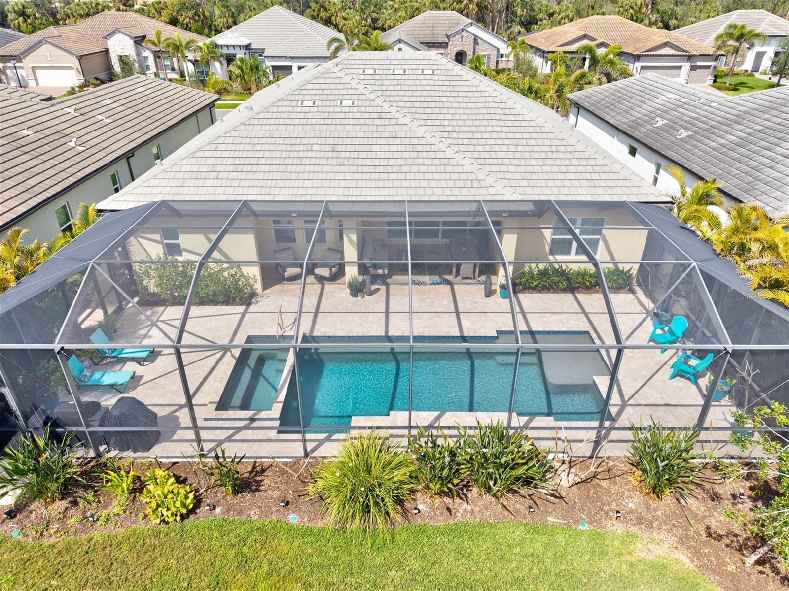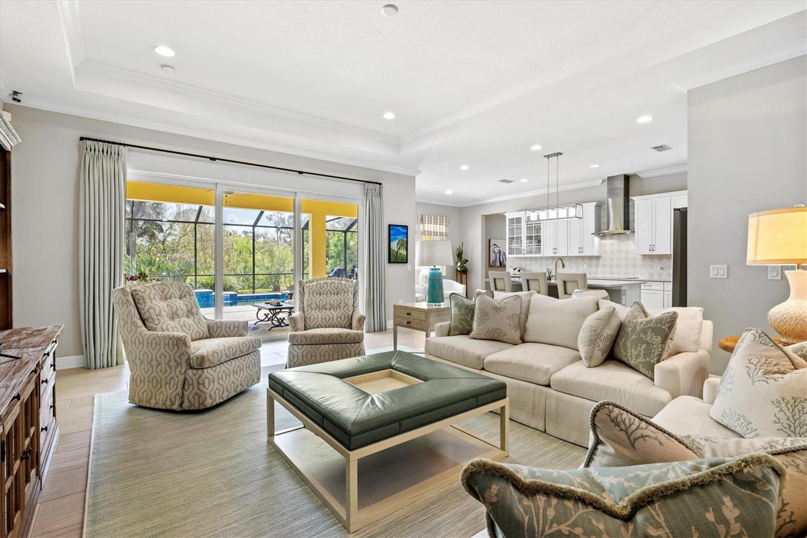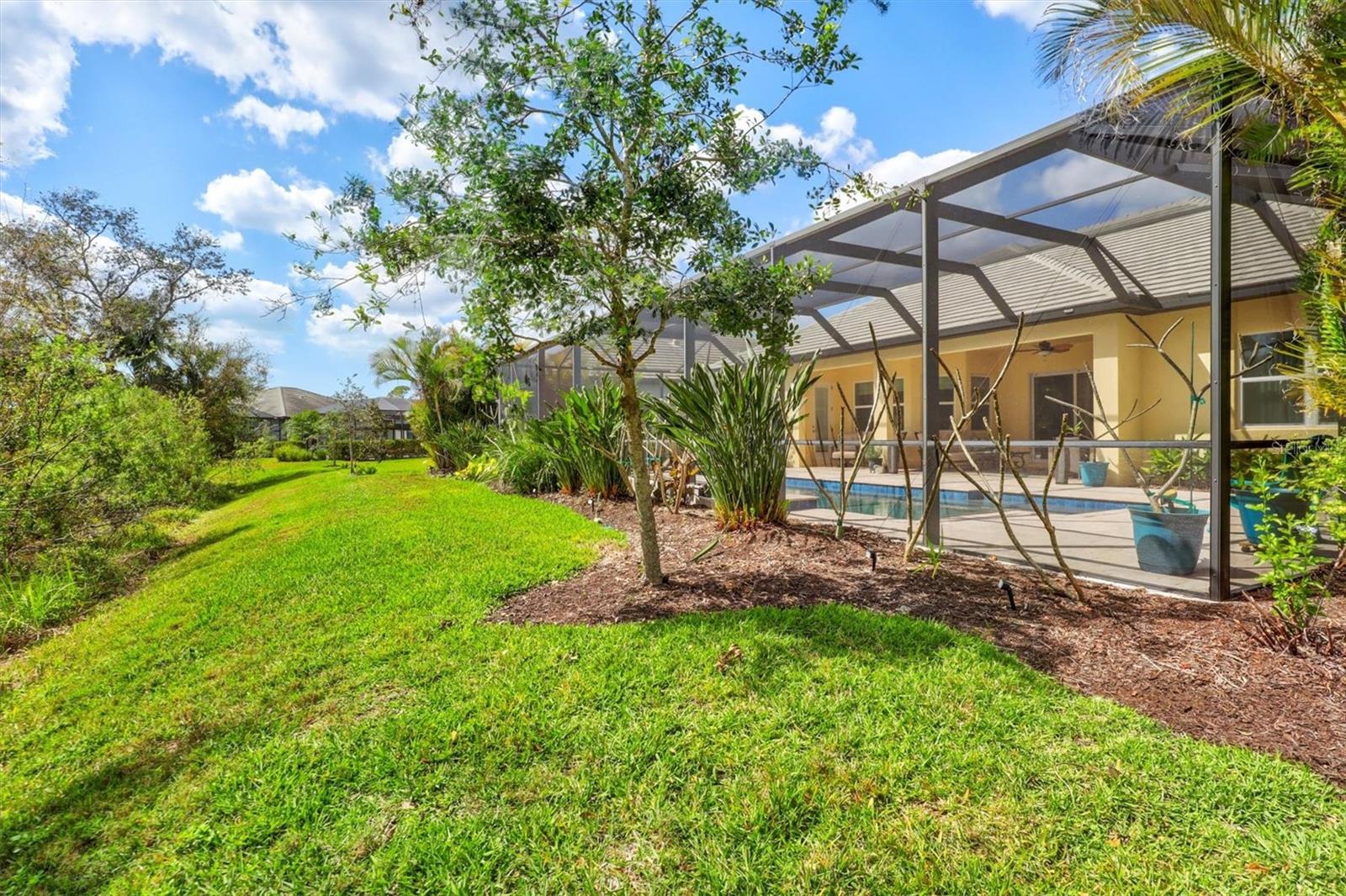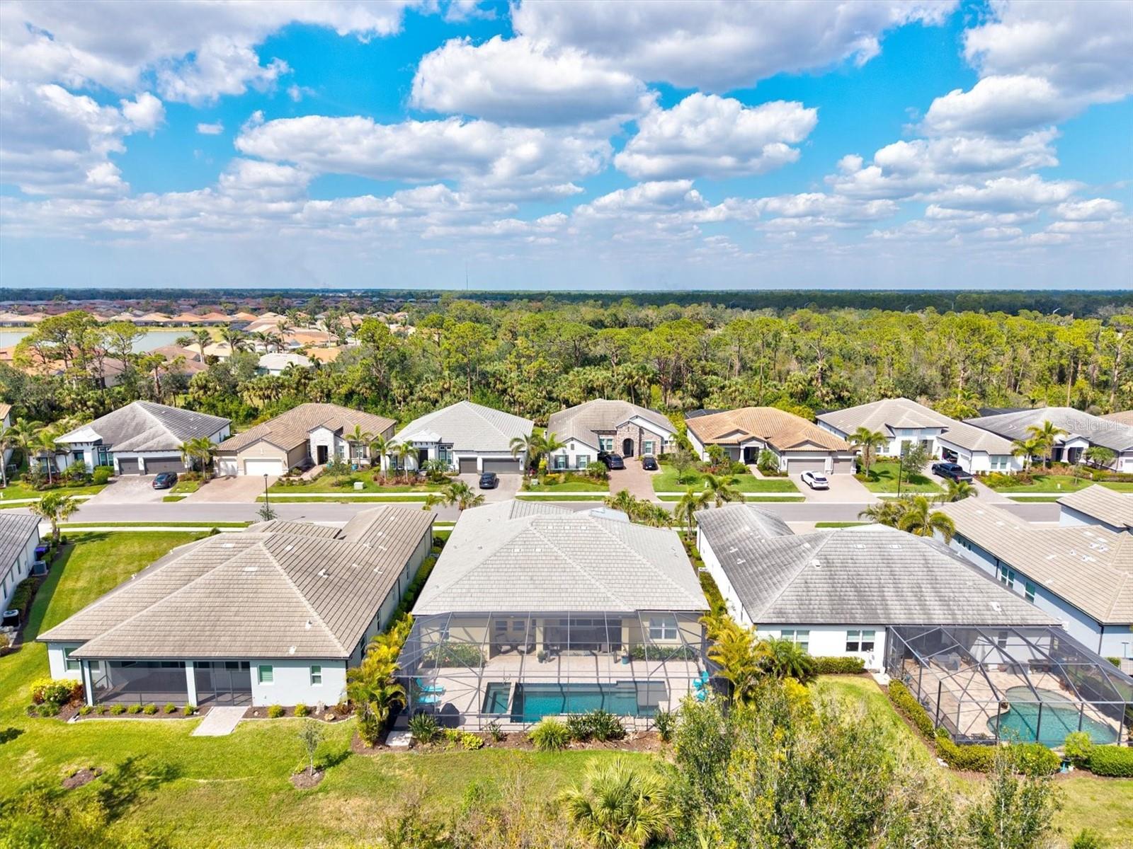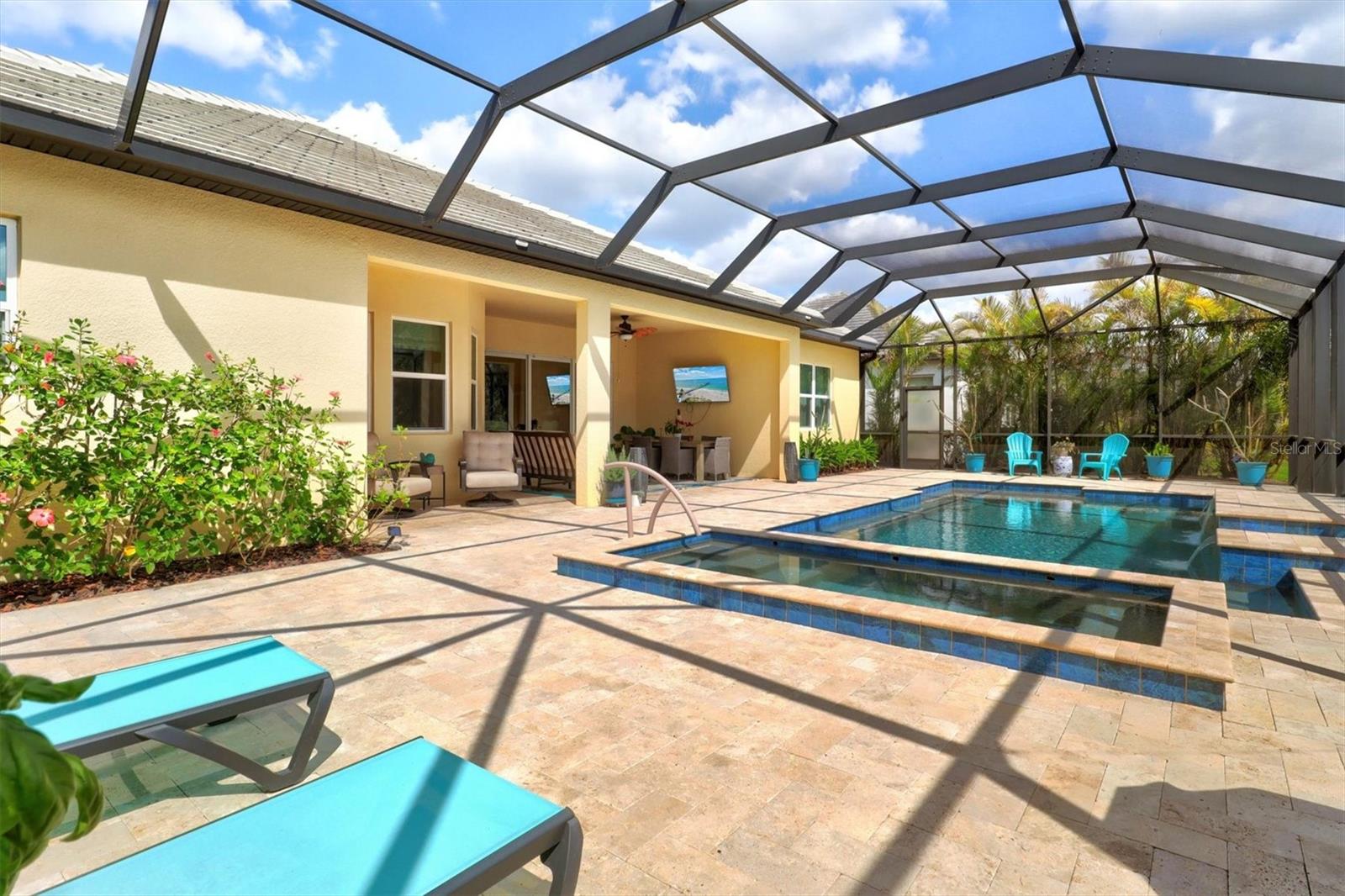 Nestled in the sought-after Oasis community within Wellen Park, this stunning executive home effortlessly combines elegance, luxury, and tranquility. As you approach 19832 Bridgetown Loop, the home's striking curb appeal immediately catches the eye, with a paver driveway and lead walk framed by lush tropical landscaping. Upon entering, the expansive great room greets you with soaring ceilings, oversized tile flooring, custom window treatments, and elegant baseboards and crown molding add the perfect finishing touches. Both the living room and dining room feature tray ceilings and large sliding glass doors open to an exceptional outdoor living space. The custom 37’x15’ saltwater pool and spa is large and luxurious, boasting three waterfalls, a sun shelf, two seating ledges, LED lighting, and an oversized spa with cascading aqua spouts. The covered lanai with outdoor kitchen prep and the full-length pool cage, all adorned with travertine stone pavers, offers ample space for relaxation. The gourmet kitchen, thoughtfully expanded by the current owners, is every chef's dream. Featuring high-end GE Profile appliances, including an induction cooktop, convection oven, convection microwave, and a quiet 45db dishwasher, the kitchen is designed to impress. A spacious LG French door refrigerator complements the extensive upgrades, which include expanded cabinetry with wine cooler, quartz countertops, custom lighting, pull-out shelves, a large corner pantry, and a beautiful new backsplash making it perfect for both everyday meals and entertaining guests. Every corner of this home showcases thoughtful custom details. The three private bedrooms offer a resort-like experience with elegant chandeliers, plush carpeting, and custom window treatments. The owner's suite is a true retreat, featuring a tray ceiling, dual walk-in closets with California Closet systems, and a spa-like bath with a frameless glass walk-in shower, dual vanities with pull-out shelves, new quartz countertops, and a linen closet. Two guest bedrooms each feature adjacent bathrooms, and the current owners thoughtfully added a door to one bedroom providing a convenient connection to the pool bath, creating an available en-suite for guests. This home offers a private den with engineered hardwood floors, French doors, a tray ceiling, and six windows that flood this space with natural light. An additional task room with custom built-ins can serve as a home office, homework station, craft room, or even a pet area. The laundry room is nicely upgraded with cabinets, a sink, and a washer and dryer surround. The spacious 3-car garage with epoxy floors and built-in shelving provides ample space for vehicles and storage. Rest easy knowing this home is equipped with impact glass windows and doors and sits above the high-risk floodplain. Oasis is an intimate, established community in the heart of Wellen Park, an active and thriving area. The neighborhood features 136 luxurious homes with wider lots and tile roofs, with exceptional amenities including a community pool, clubhouse, pickleball court, and private gated access to Blue Heron Park, offering two miles of walking trails and two dog parks. Located just minutes from Downtown Wellen Park, the Atlanta Braves Spring Training stadium, and a wide range of dining and shopping options, this location provides the perfect balance of convenience and luxury. Take a closer look at 19832 Bridgetown Loop – your personal “Oasis” in Wellen Park awaits!