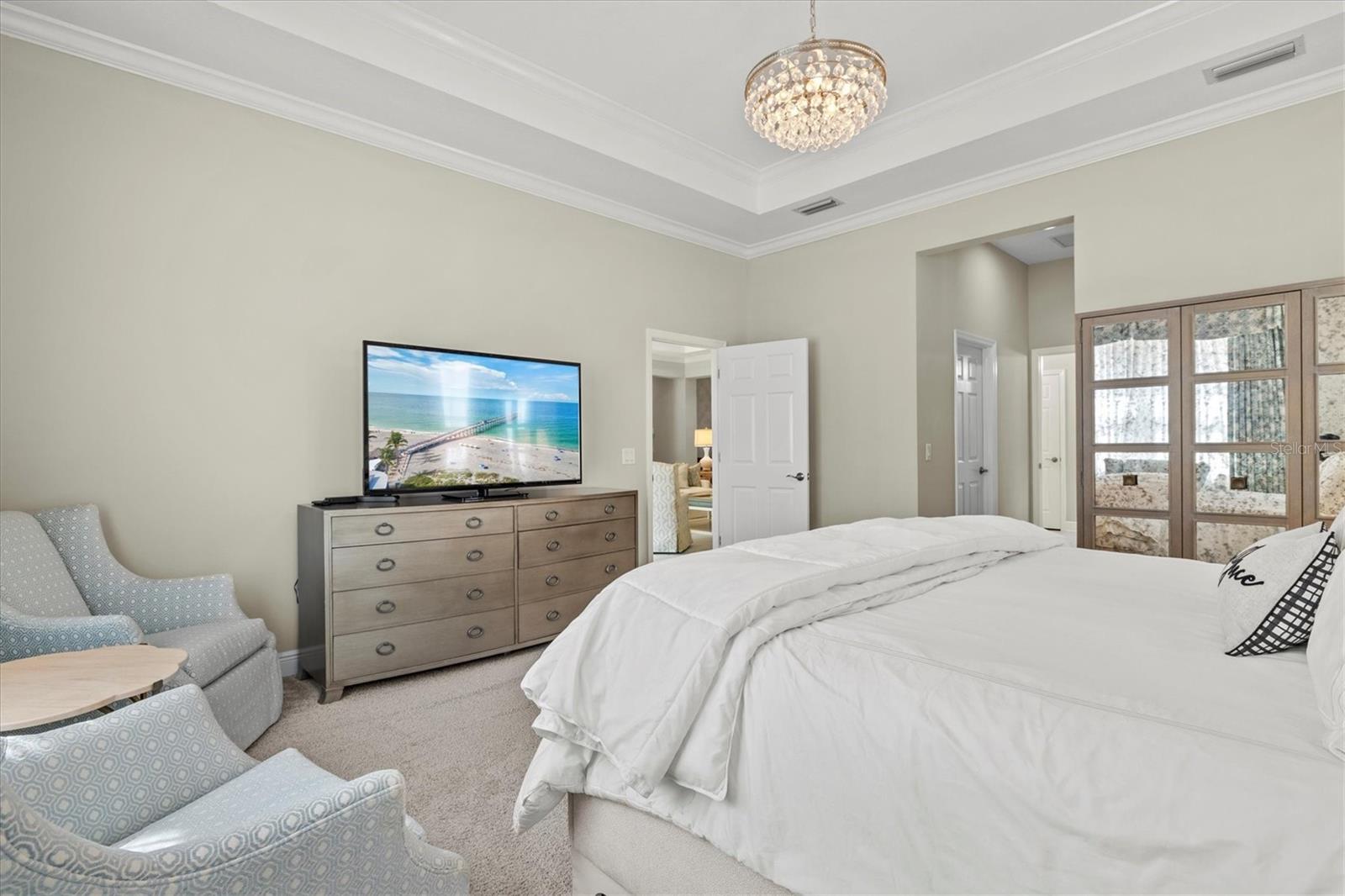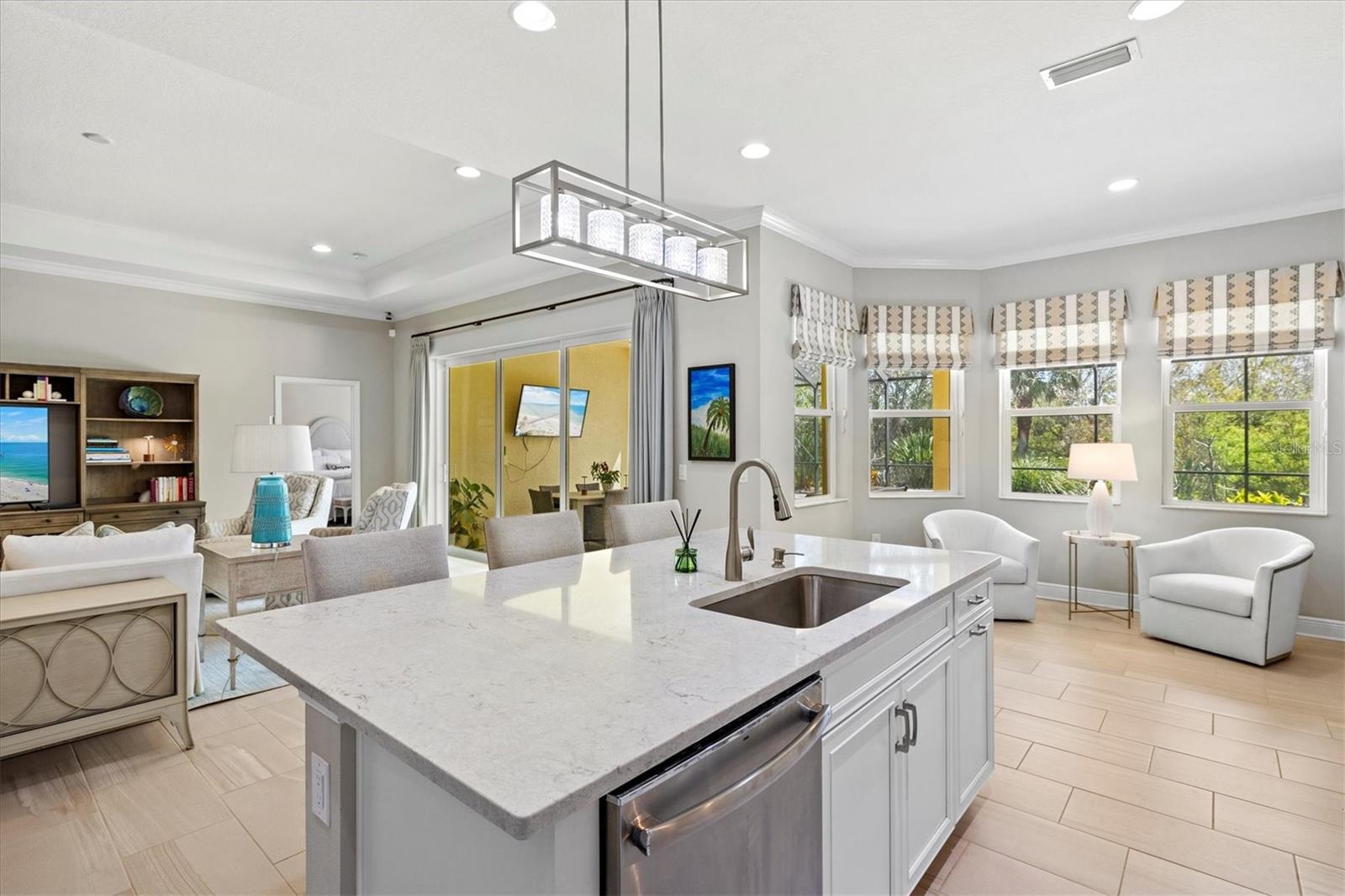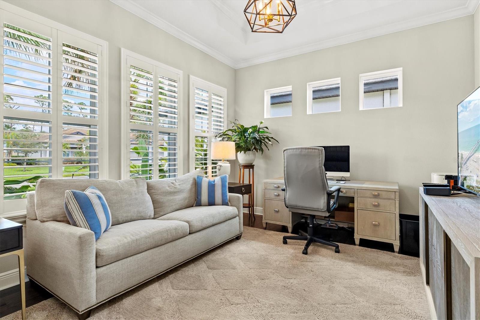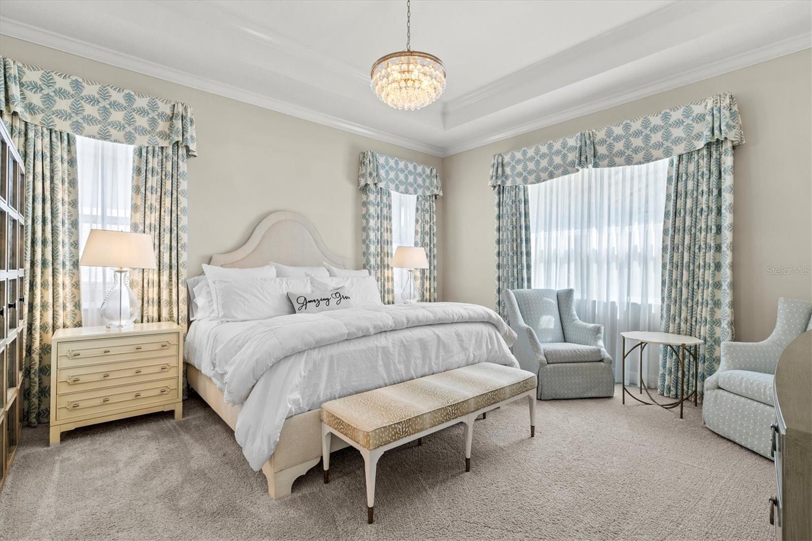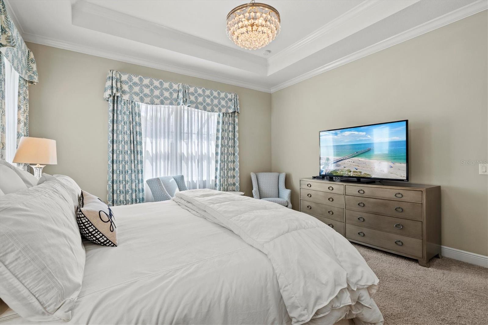 Nestled in the sought-after Oasis community within Wellen Park, this stunning executive home effortlessly combines elegance, luxury, and tranquility. As you approach 19832 Bridgetown Loop, the home's striking curb appeal immediately catches the eye, with a paver driveway and lead walk framed by lush tropical landscaping. Upon entering, the expansive great room greets you with soaring ceilings, oversized tile flooring, custom window treatments, and elegant baseboards and crown molding add the perfect finishing touches. Both the living room and dining room feature tray ceilings and large sliding glass doors open to an exceptional outdoor living space. The custom 37’x15’ saltwater pool and spa is large and luxurious, boasting three waterfalls, a sun shelf, two seating ledges, LED lighting, and an oversized spa with cascading aqua spouts. The covered lanai with outdoor kitchen prep and the full-length pool cage, all adorned with travertine stone pavers, offers ample space for relaxation. The gourmet kitchen, thoughtfully expanded by the current owners, is every chef's dream. Featuring high-end GE Profile appliances, including an induction cooktop, convection oven, convection microwave, and a quiet 45db dishwasher, the kitchen is designed to impress. A spacious LG French door refrigerator complements the extensive upgrades, which include expanded cabinetry with wine cooler, quartz countertops, custom lighting, pull-out shelves, a large corner pantry, and a beautiful new backsplash making it perfect for both everyday meals and entertaining guests. Every corner of this home showcases thoughtful custom details. The three private bedrooms offer a resort-like experience with elegant chandeliers, plush carpeting, and custom window treatments. The owner's suite is a true retreat, featuring a tray ceiling, dual walk-in closets with California Closet systems, and a spa-like bath with a frameless glass walk-in shower, dual vanities with pull-out shelves, new quartz countertops, and a linen closet. Two guest bedrooms each feature adjacent bathrooms, and the current owners thoughtfully added a door to one bedroom providing a convenient connection to the pool bath, creating an available en-suite for guests. This home offers a private den with engineered hardwood floors, French doors, a tray ceiling, and six windows that flood this space with natural light. An additional task room with custom built-ins can serve as a home office, homework station, craft room, or even a pet area. The laundry room is nicely upgraded with cabinets, a sink, and a washer and dryer surround. The spacious 3-car garage with epoxy floors and built-in shelving provides ample space for vehicles and storage. Rest easy knowing this home is equipped with impact glass windows and doors and sits above the high-risk floodplain. Oasis is an intimate, established community in the heart of Wellen Park, an active and thriving area. The neighborhood features 136 luxurious homes with wider lots and tile roofs, with exceptional amenities including a community pool, clubhouse, pickleball court, and private gated access to Blue Heron Park, offering two miles of walking trails and two dog parks. Located just minutes from Downtown Wellen Park, the Atlanta Braves Spring Training stadium, and a wide range of dining and shopping options, this location provides the perfect balance of convenience and luxury. Take a closer look at 19832 Bridgetown Loop – your personal “Oasis” in Wellen Park awaits!