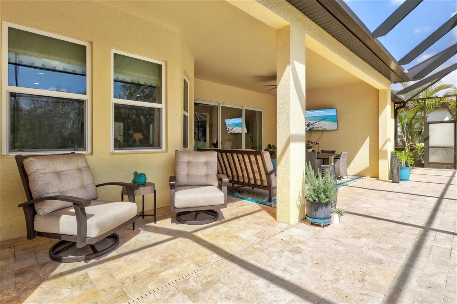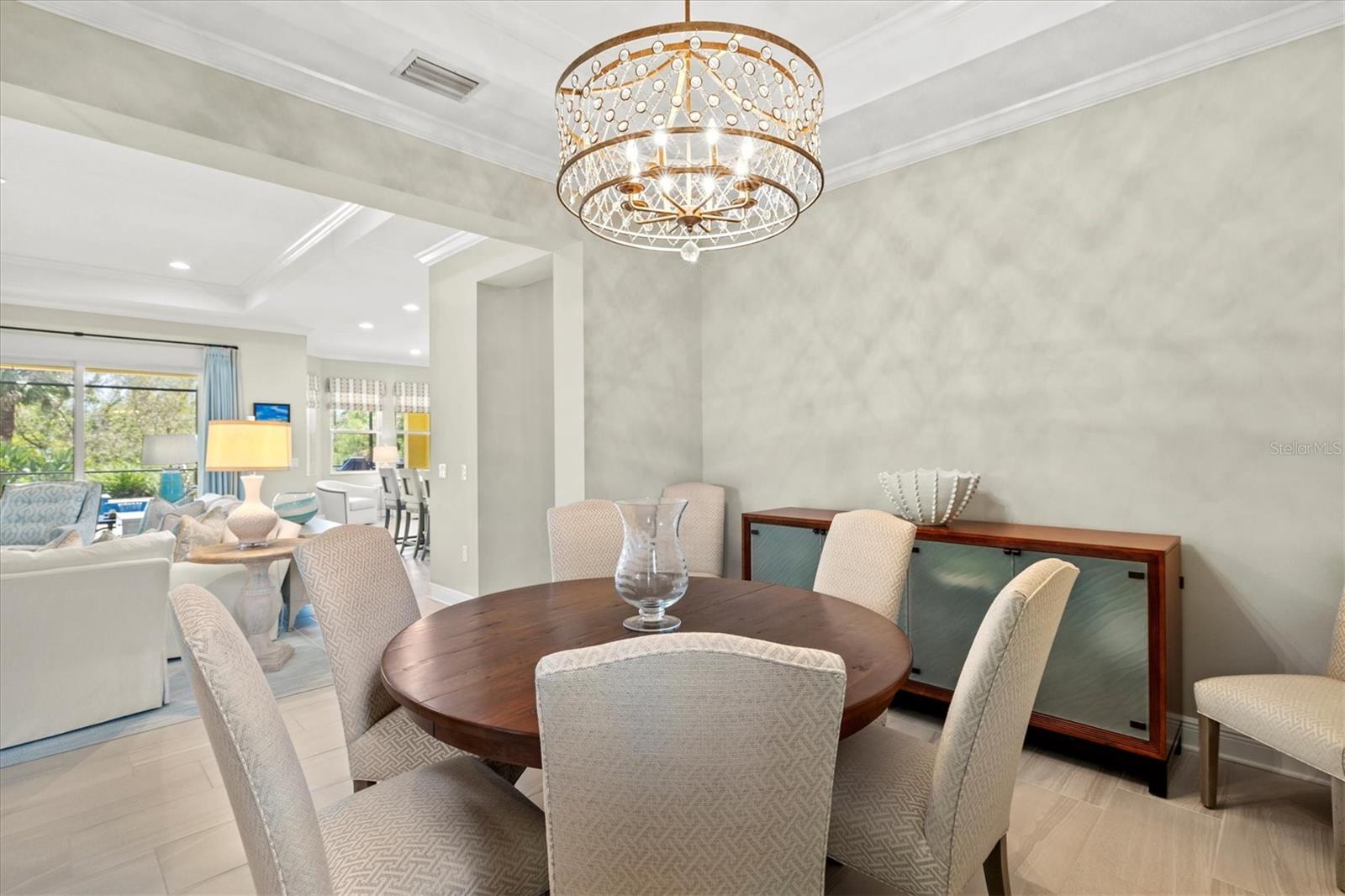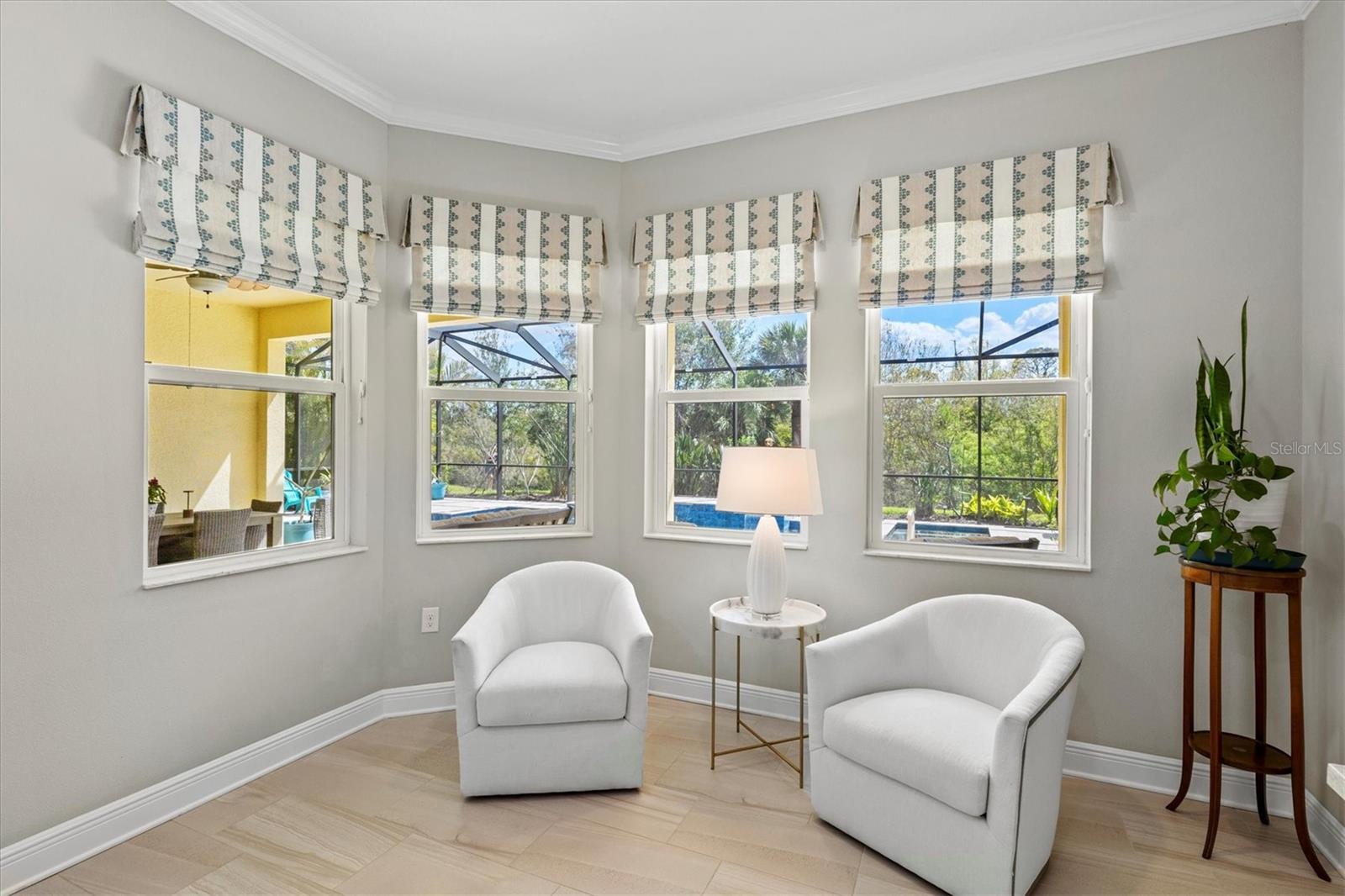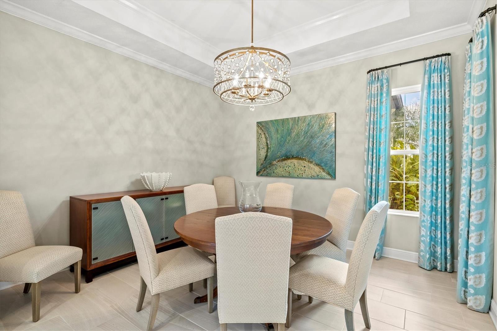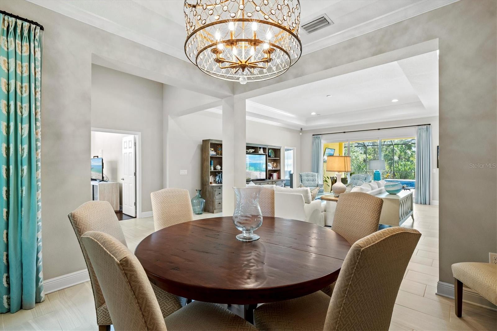 Nestled in the sought-after Oasis community within Wellen Park, this stunning executive home effortlessly combines elegance, luxury, and tranquility. As you approach 19832 Bridgetown Loop, the home's striking curb appeal immediately catches the eye, with a paver driveway and lead walk framed by lush tropical landscaping. Upon entering, the expansive great room greets you with soaring ceilings, oversized tile flooring, custom window treatments, and elegant baseboards and crown molding add the perfect finishing touches. Both the living room and dining room feature tray ceilings and large sliding glass doors open to an exceptional outdoor living space. The custom 37’x15’ saltwater pool and spa is large and luxurious, boasting three waterfalls, a sun shelf, two seating ledges, LED lighting, and an oversized spa with cascading aqua spouts. The covered lanai with outdoor kitchen prep and the full-length pool cage, all adorned with travertine stone pavers, offers ample space for relaxation. The gourmet kitchen, thoughtfully expanded by the current owners, is every chef's dream. Featuring high-end GE Profile appliances, including an induction cooktop, convection oven, convection microwave, and a quiet 45db dishwasher, the kitchen is designed to impress. A spacious LG French door refrigerator complements the extensive upgrades, which include expanded cabinetry with wine cooler, quartz countertops, custom lighting, pull-out shelves, a large corner pantry, and a beautiful new backsplash making it perfect for both everyday meals and entertaining guests. Every corner of this home showcases thoughtful custom details. The three private bedrooms offer a resort-like experience with elegant chandeliers, plush carpeting, and custom window treatments. The owner's suite is a true retreat, featuring a tray ceiling, dual walk-in closets with California Closet systems, and a spa-like bath with a frameless glass walk-in shower, dual vanities with pull-out shelves, new quartz countertops, and a linen closet. Two guest bedrooms each feature adjacent bathrooms, and the current owners thoughtfully added a door to one bedroom providing a convenient connection to the pool bath, creating an available en-suite for guests. This home offers a private den with engineered hardwood floors, French doors, a tray ceiling, and six windows that flood this space with natural light. An additional task room with custom built-ins can serve as a home office, homework station, craft room, or even a pet area. The laundry room is nicely upgraded with cabinets, a sink, and a washer and dryer surround. The spacious 3-car garage with epoxy floors and built-in shelving provides ample space for vehicles and storage. Rest easy knowing this home is equipped with impact glass windows and doors and sits above the high-risk floodplain. Oasis is an intimate, established community in the heart of Wellen Park, an active and thriving area. The neighborhood features 136 luxurious homes with wider lots and tile roofs, with exceptional amenities including a community pool, clubhouse, pickleball court, and private gated access to Blue Heron Park, offering two miles of walking trails and two dog parks. Located just minutes from Downtown Wellen Park, the Atlanta Braves Spring Training stadium, and a wide range of dining and shopping options, this location provides the perfect balance of convenience and luxury. Take a closer look at 19832 Bridgetown Loop – your personal “Oasis” in Wellen Park awaits!