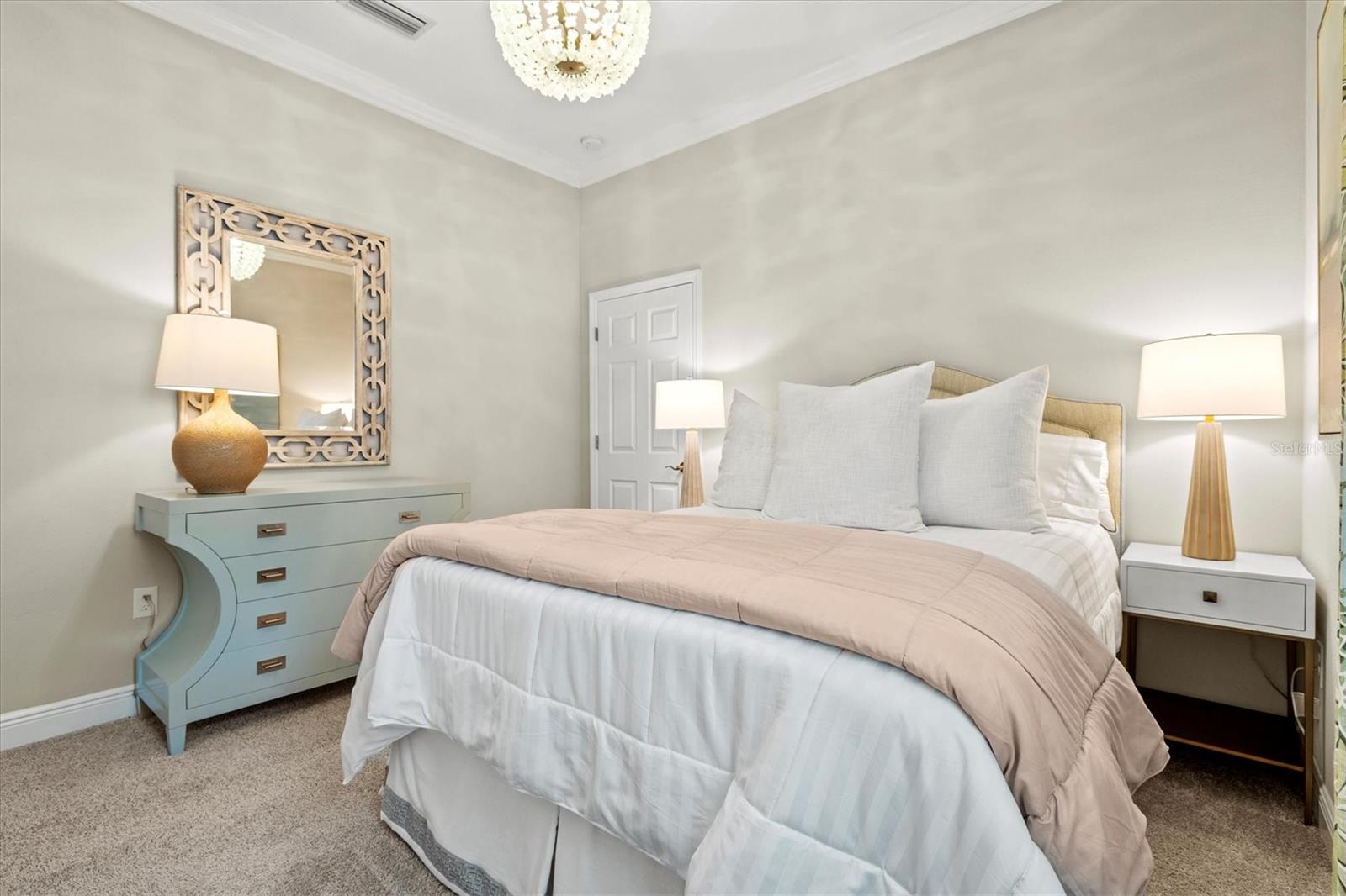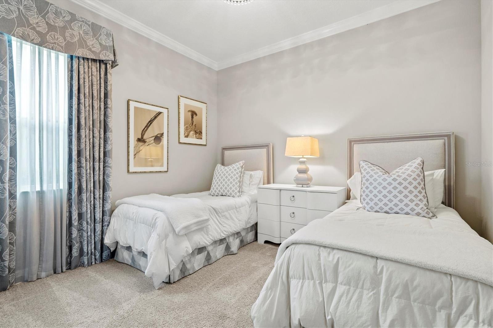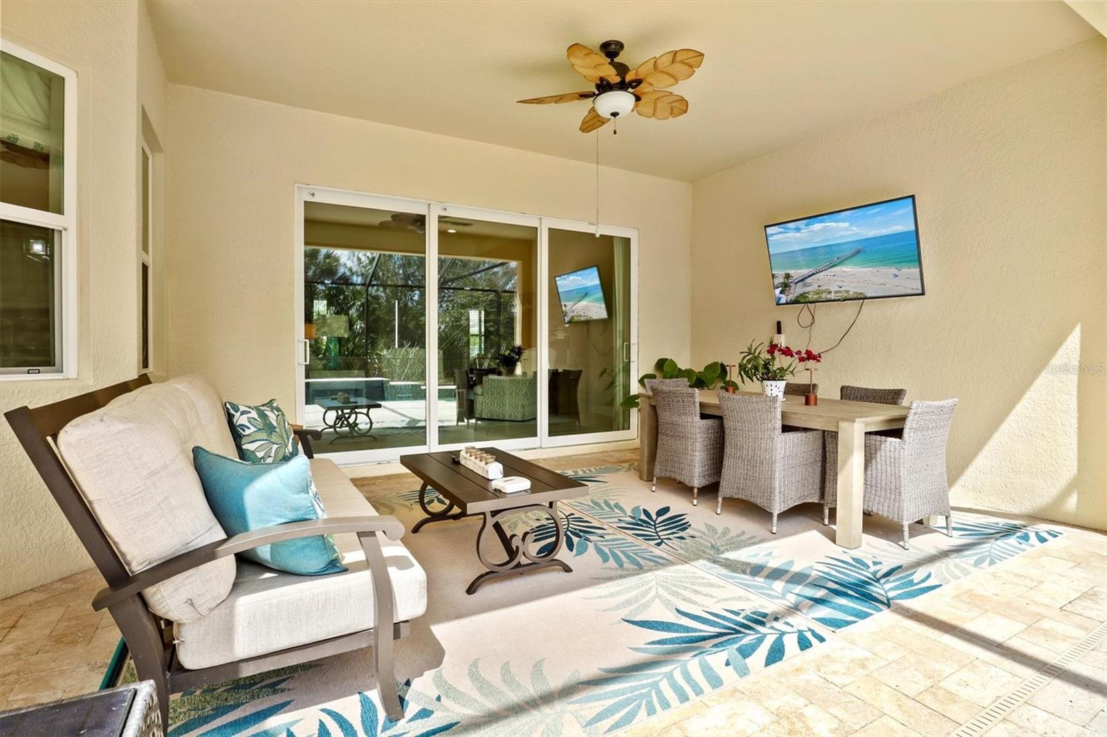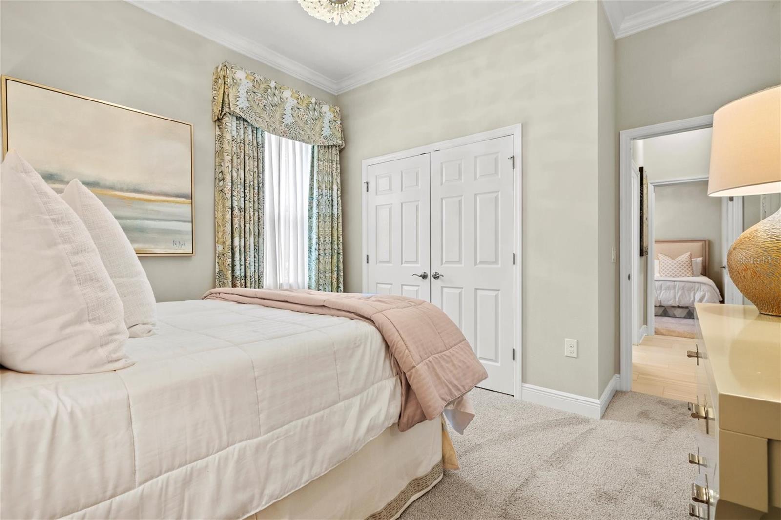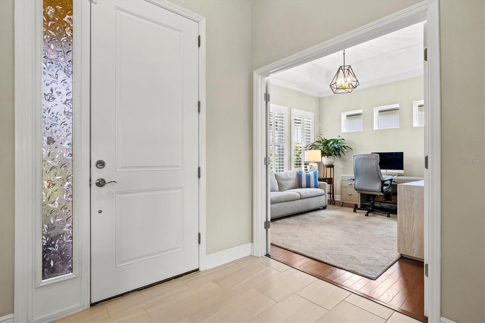 Nestled in the sought-after Oasis community within Wellen Park, this stunning executive home effortlessly combines elegance, luxury, and tranquility. As you approach 19832 Bridgetown Loop, the home's striking curb appeal immediately catches the eye, with a paver driveway and lead walk framed by lush tropical landscaping. Upon entering, the expansive great room greets you with soaring ceilings, oversized tile flooring, custom window treatments, and elegant baseboards and crown molding add the perfect finishing touches. Both the living room and dining room feature tray ceilings and large sliding glass doors open to an exceptional outdoor living space. The custom 37’x15’ saltwater pool and spa is large and luxurious, boasting three waterfalls, a sun shelf, two seating ledges, LED lighting, and an oversized spa with cascading aqua spouts. The covered lanai with outdoor kitchen prep and the full-length pool cage, all adorned with travertine stone pavers, offers ample space for relaxation. The gourmet kitchen, thoughtfully expanded by the current owners, is every chef's dream. Featuring high-end GE Profile appliances, including an induction cooktop, convection oven, convection microwave, and a quiet 45db dishwasher, the kitchen is designed to impress. A spacious LG French door refrigerator complements the extensive upgrades, which include expanded cabinetry with wine cooler, quartz countertops, custom lighting, pull-out shelves, a large corner pantry, and a beautiful new backsplash making it perfect for both everyday meals and entertaining guests. Every corner of this home showcases thoughtful custom details. The three private bedrooms offer a resort-like experience with elegant chandeliers, plush carpeting, and custom window treatments. The owner's suite is a true retreat, featuring a tray ceiling, dual walk-in closets with California Closet systems, and a spa-like bath with a frameless glass walk-in shower, dual vanities with pull-out shelves, new quartz countertops, and a linen closet. Two guest bedrooms each feature adjacent bathrooms, and the current owners thoughtfully added a door to one bedroom providing a convenient connection to the pool bath, creating an available en-suite for guests. This home offers a private den with engineered hardwood floors, French doors, a tray ceiling, and six windows that flood this space with natural light. An additional task room with custom built-ins can serve as a home office, homework station, craft room, or even a pet area. The laundry room is nicely upgraded with cabinets, a sink, and a washer and dryer surround. The spacious 3-car garage with epoxy floors and built-in shelving provides ample space for vehicles and storage. Rest easy knowing this home is equipped with impact glass windows and doors and sits above the high-risk floodplain. Oasis is an intimate, established community in the heart of Wellen Park, an active and thriving area. The neighborhood features 136 luxurious homes with wider lots and tile roofs, with exceptional amenities including a community pool, clubhouse, pickleball court, and private gated access to Blue Heron Park, offering two miles of walking trails and two dog parks. Located just minutes from Downtown Wellen Park, the Atlanta Braves Spring Training stadium, and a wide range of dining and shopping options, this location provides the perfect balance of convenience and luxury. Take a closer look at 19832 Bridgetown Loop – your personal “Oasis” in Wellen Park awaits!
