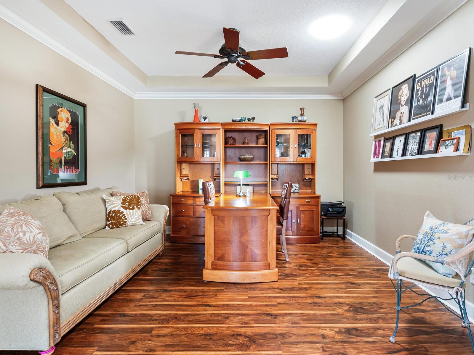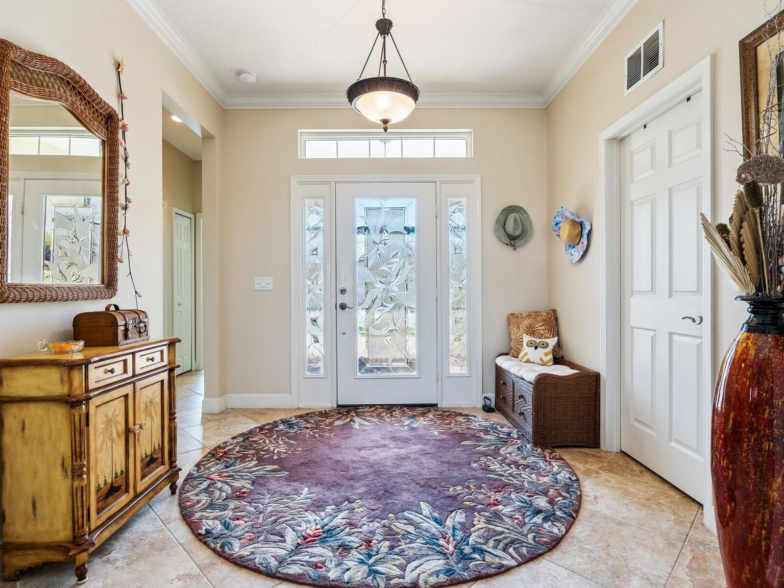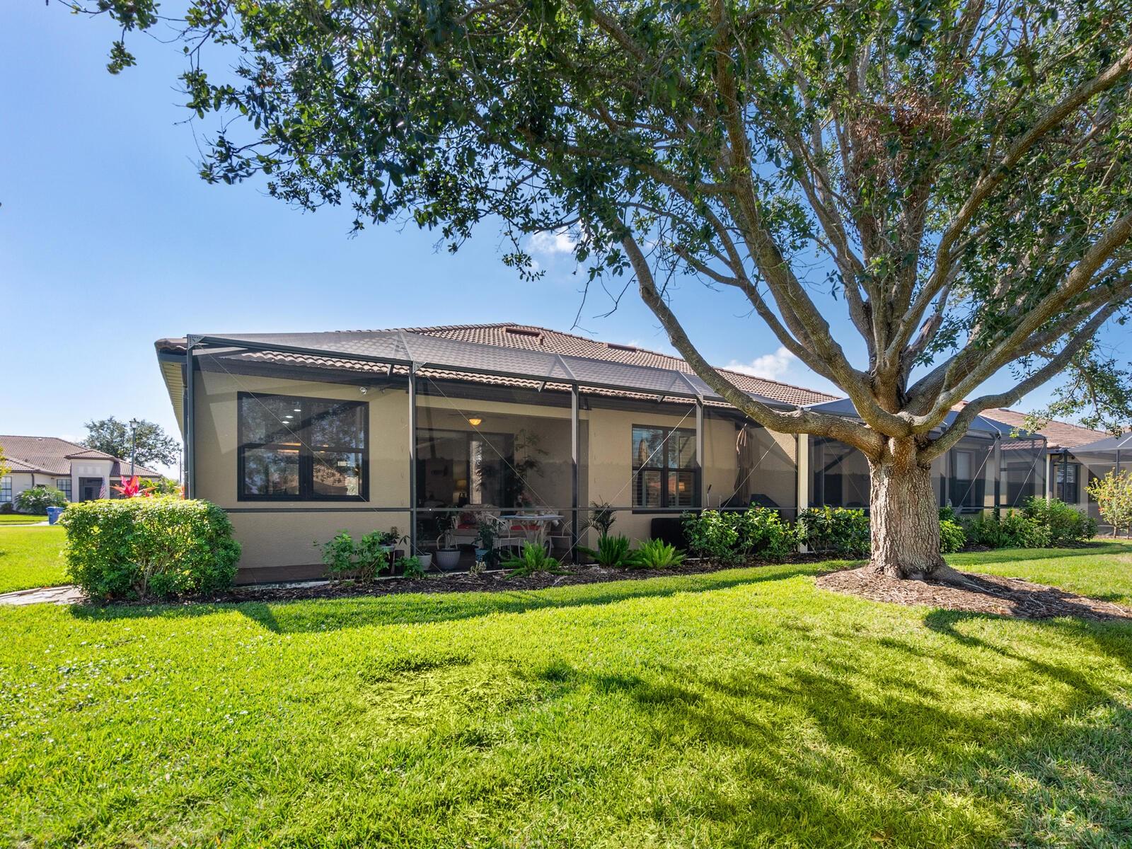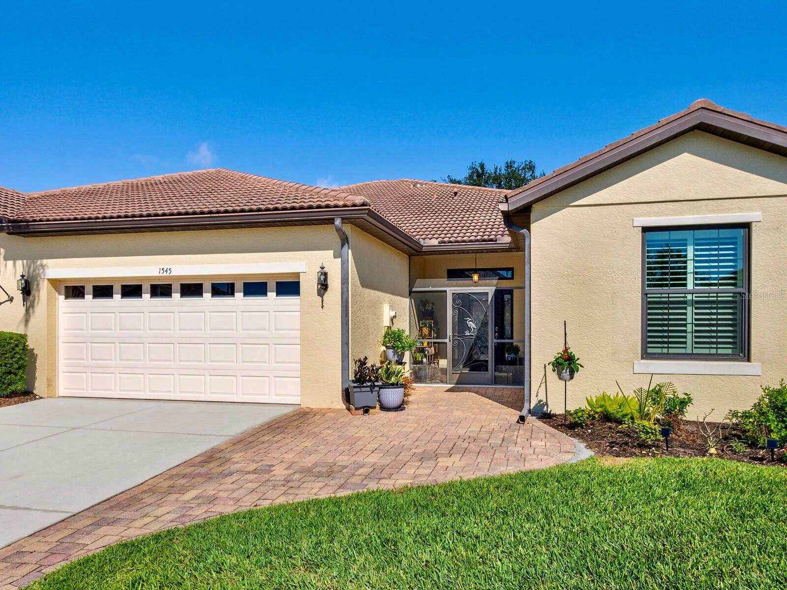 Rarely available SPACIOUS Giovanni floor plan! Enjoy LAKE VIEWS from this beautifully upgraded paired-villa in the premier 55+ community of Venetian Falls! Just minutes from sunny beaches, shopping, dining, and Venice’s historic district, this home offers both comfort and peace of mind with so many high-end features. Hurricane-rated, insulated ENERGY STAR IMPACT WINDOWS, 20” diagonal PORCELAIN TILE and wood laminate floors, a SCREENED AND TILED FRONT ENTRY, and an EXTENDED LANAI create a perfect blend of elegance and functionality. The beveled glass front door welcomes you with abundant natural light. High 9’ ceilings with CROWN MOLDING, PLANTATION SHUTTERS, ENHANCED BASEBOARDS, SOLAR TUBES in the living room and primary bathroom, FRENCH DOORS to the den for added privacy, an elegant TRAY CEILING in the living room, and a CENTRAL VACUUM system elevate the home’s appeal. The kitchen is both stylish and functional, featuring durable QUARTZ countertops, maple-finish cabinetry with trim and under-cabinet lighting, a walk-in pantry, and GE Profile stainless steel appliances, including a CONVECTION oven with an INDUCTION cooktop. A charming dinette, surrounded by windows, provides a bright and inviting space to enjoy your morning coffee with a view. The open, split floor plan provides flexibility in arranging the common areas to suit your preferences. The den can effortlessly be transformed into a third bedroom. Additional highlights include an expanded paver walkway, in-wall pest control, a leaf guard gutter system, and lush landscaping. For storm protection, easy-to-install HURRICANE STORM SHIELDS are included for the front entry and lanai, plus a reinforced garage door. Step outside to your private outdoor living area, perfect for grilling, dining, and relaxing while taking in serene lake views and the frequent visits from herons and other birds. Venetian Falls offers outstanding amenities, including a resort-style clubhouse with a heated lap pool and spa, a resistance-walking pool, a state-of-the-art fitness center, a billiard room, bocce courts, a full-time activity director, and on-site management. The reasonable HOA fee covers lawn maintenance, irrigation, roof pressure washing, exterior painting, and basic cable TV and internet. Don’t miss this incredible opportunity to enjoy resort-style living in a beautifully maintained home!