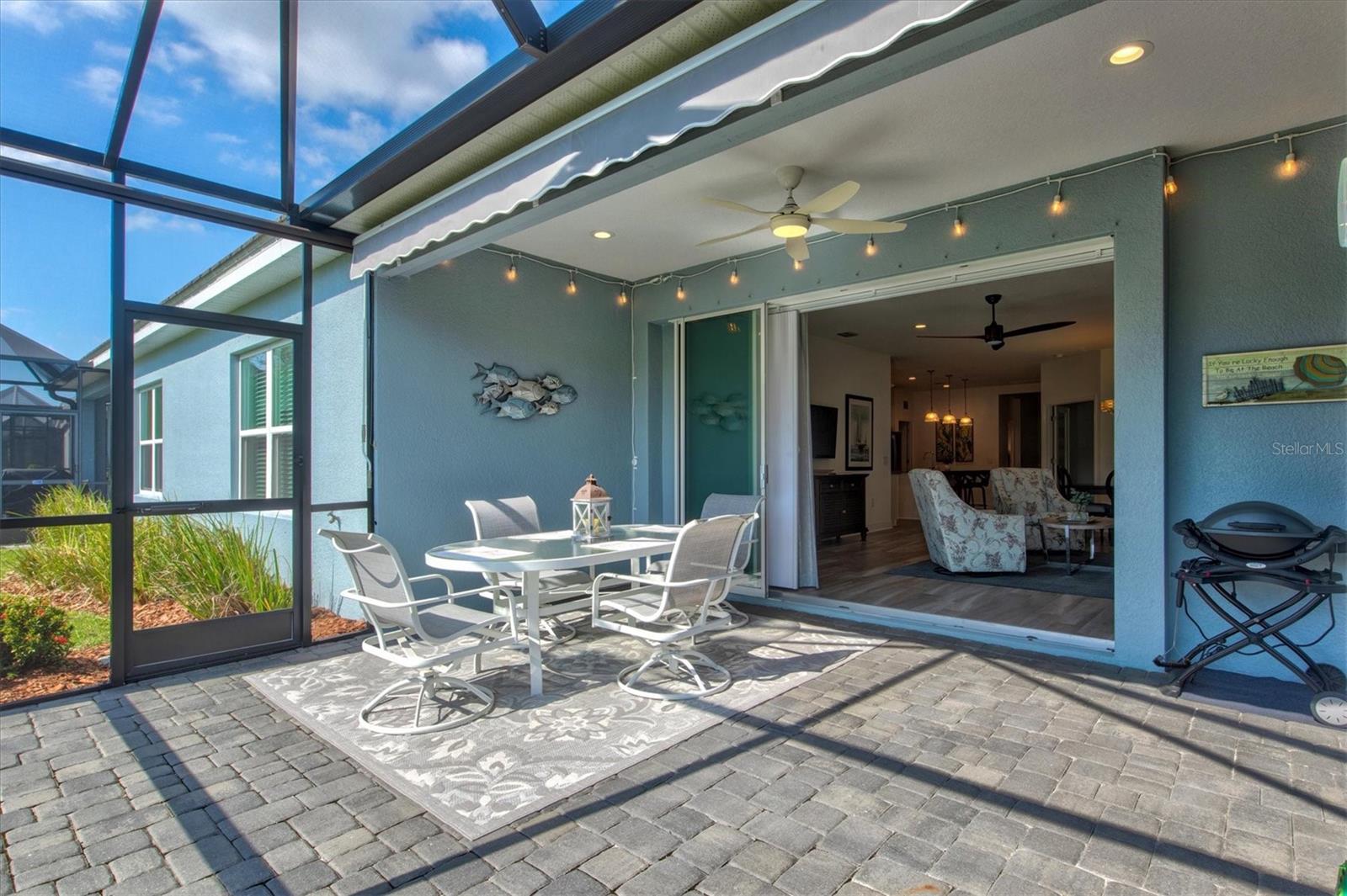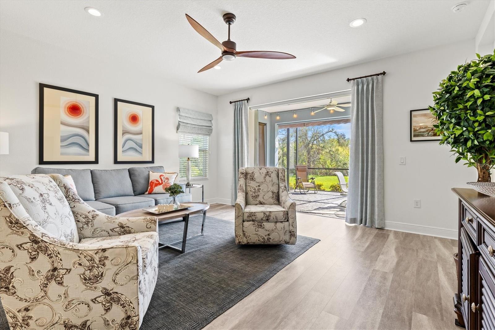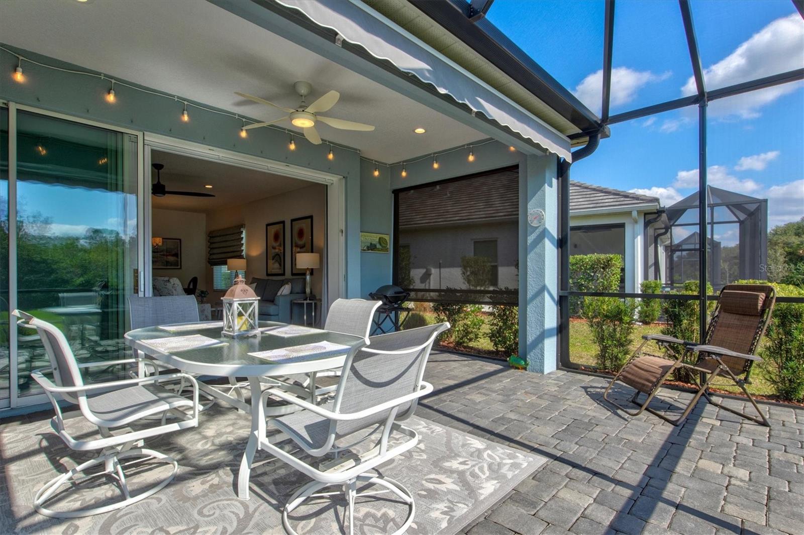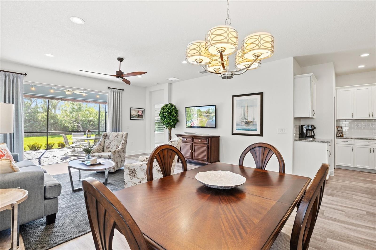 Welcome to this stunning 3-bedroom, 2-bathroom home with den / study located in the desirable community of Grand Palm in Venice! Built in 2022, this modern gem is immaculately presented, offering an open-concept floor plan with spacious living areas perfect for entertaining. The chef-inspired kitchen features beautiful granite countertops, sleek cabinetry, water filtration system, and stainless steel appliances. The master suite is a true retreat with two walk-in closets and an en-suite bath with dual vanities and a large shower. The home features multiple upgrades throughout including high end ceiling fans, upgraded pendant lighting, retractable screen door, epoxy flooring in the garage as well as a work bench and garage storage shelving. The home is being offered fully furnished making it completely move-in ready. Enjoy a beautiful, preserve view on the private extended lanai with the added benefits of a large retractable awning, privacy shades, and stylish string lights allowing you to enjoy the serene, peaceful setting throughout the day. Conveniently located close to the clubhouse and community pool, as well as shopping, dining and events in Wellen Park and downtown Venice, plus the pristine beaches, this home offers the perfect blend of comfort, style and convenience. Don’t miss the opportunity to make this property your own!