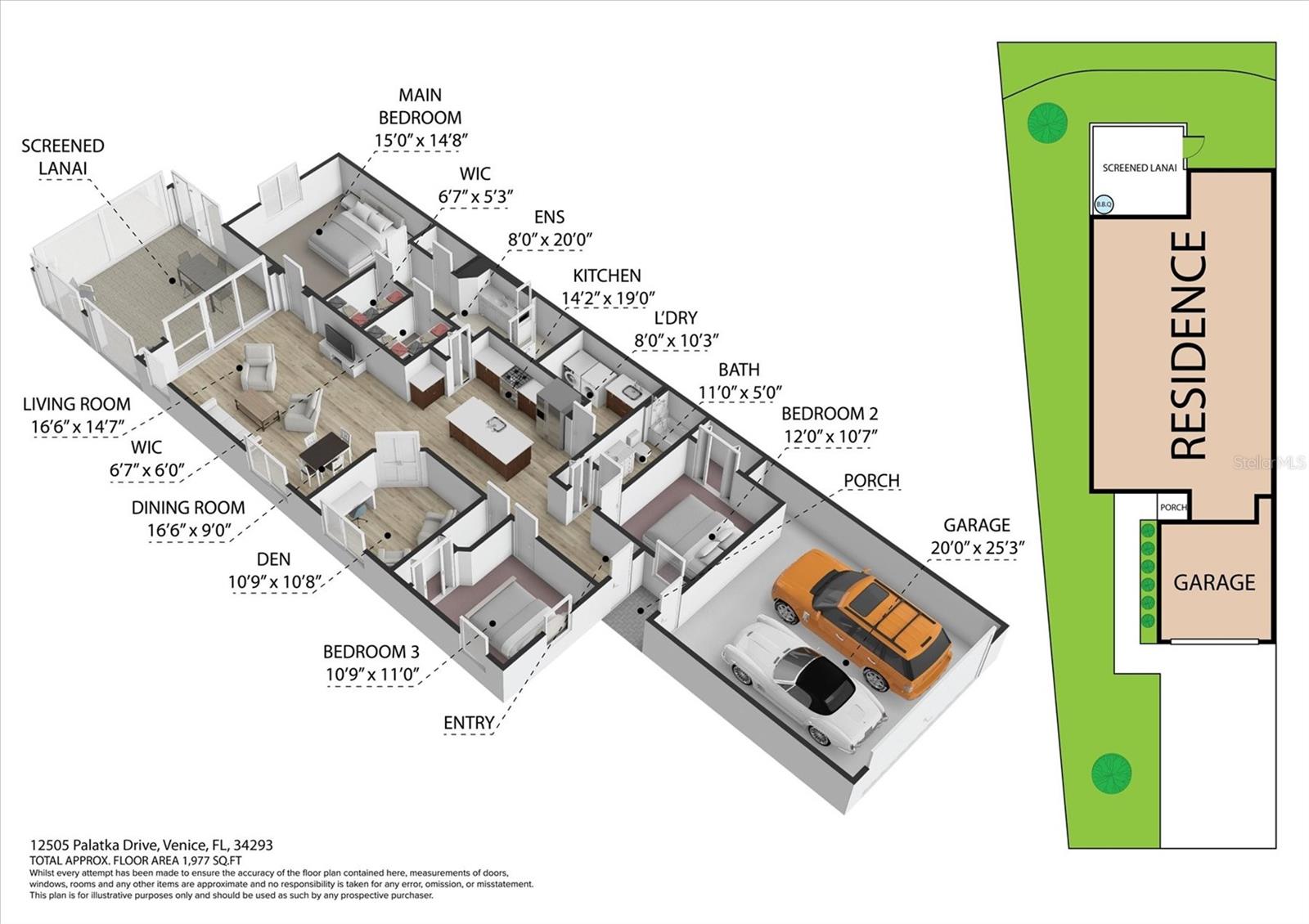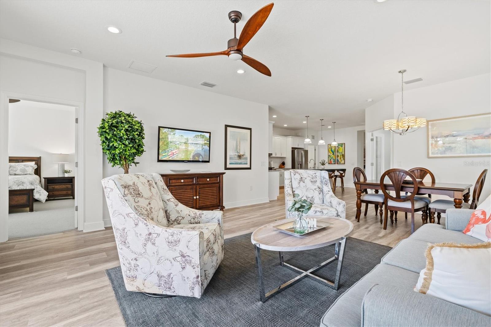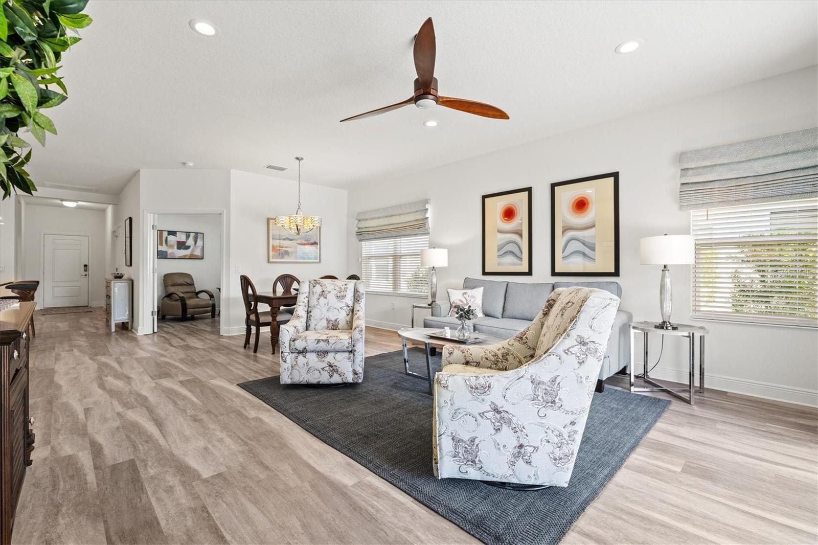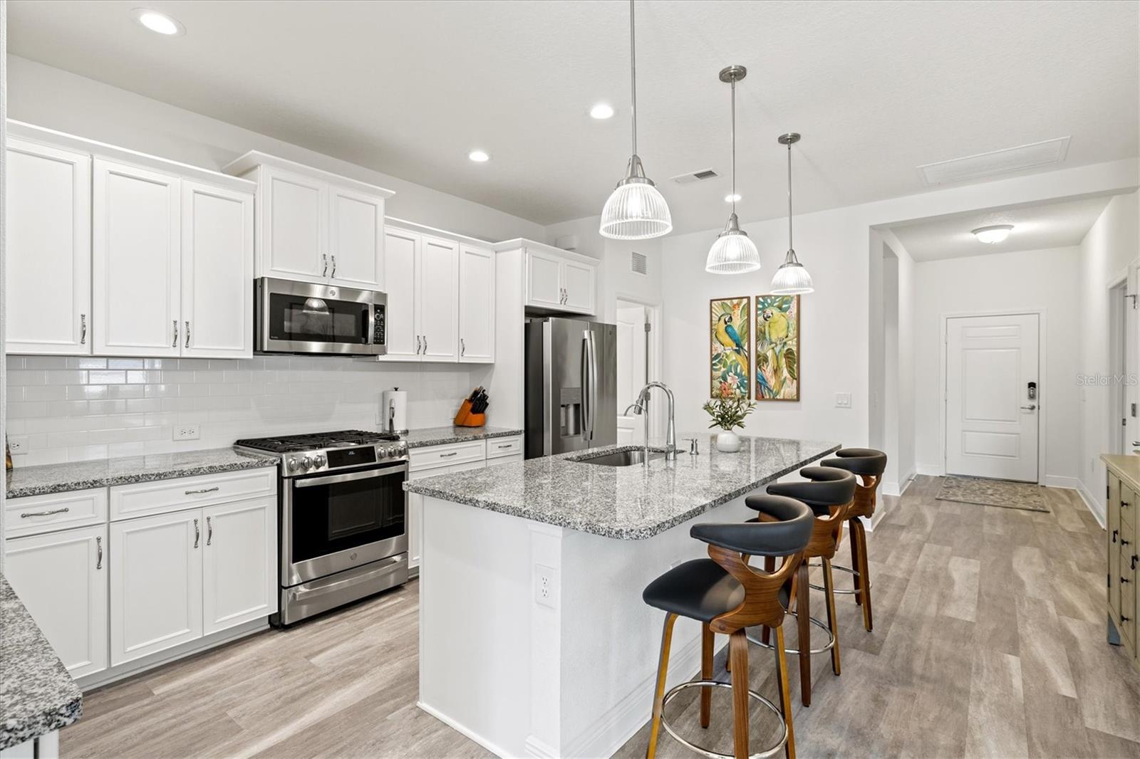 Welcome to this stunning 3-bedroom, 2-bathroom home with den / study located in the desirable community of Grand Palm in Venice! Built in 2022, this modern gem is immaculately presented, offering an open-concept floor plan with spacious living areas perfect for entertaining. The chef-inspired kitchen features beautiful granite countertops, sleek cabinetry, water filtration system, and stainless steel appliances. The master suite is a true retreat with two walk-in closets and an en-suite bath with dual vanities and a large shower. The home features multiple upgrades throughout including high end ceiling fans, upgraded pendant lighting, retractable screen door, epoxy flooring in the garage as well as a work bench and garage storage shelving. The home is being offered fully furnished making it completely move-in ready. Enjoy a beautiful, preserve view on the private extended lanai with the added benefits of a large retractable awning, privacy shades, and stylish string lights allowing you to enjoy the serene, peaceful setting throughout the day. Conveniently located close to the clubhouse and community pool, as well as shopping, dining and events in Wellen Park and downtown Venice, plus the pristine beaches, this home offers the perfect blend of comfort, style and convenience. Don’t miss the opportunity to make this property your own!
