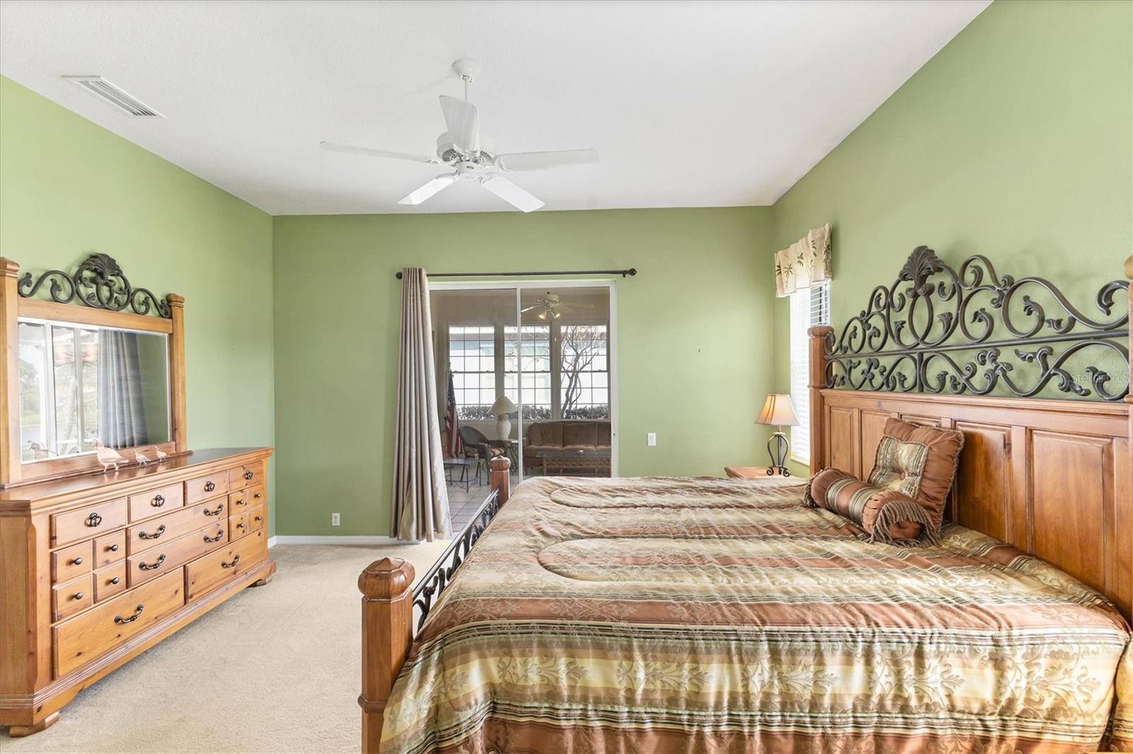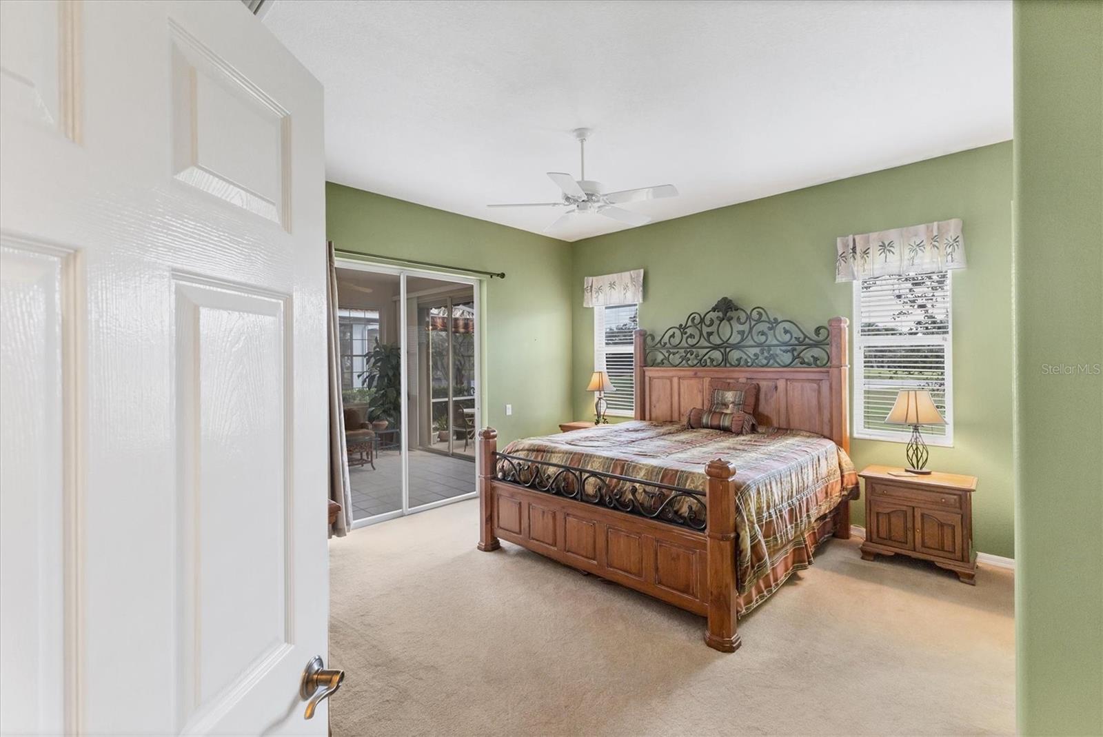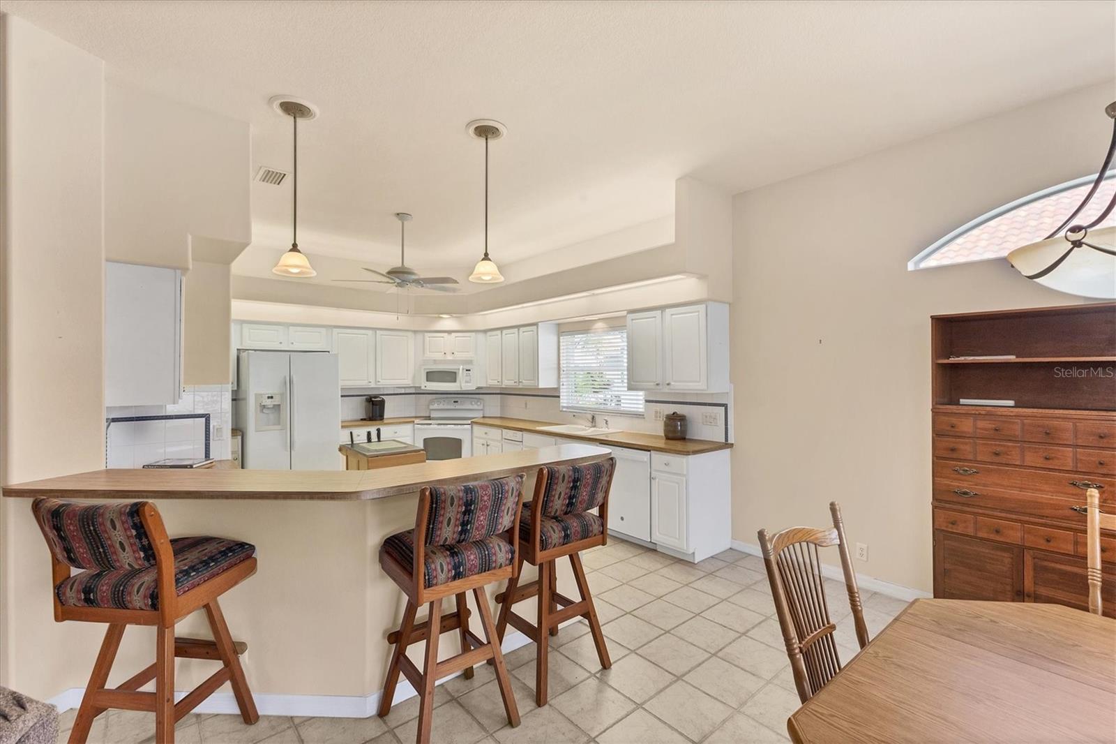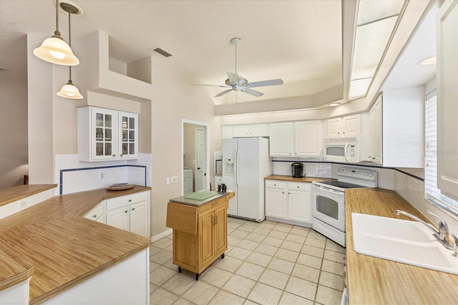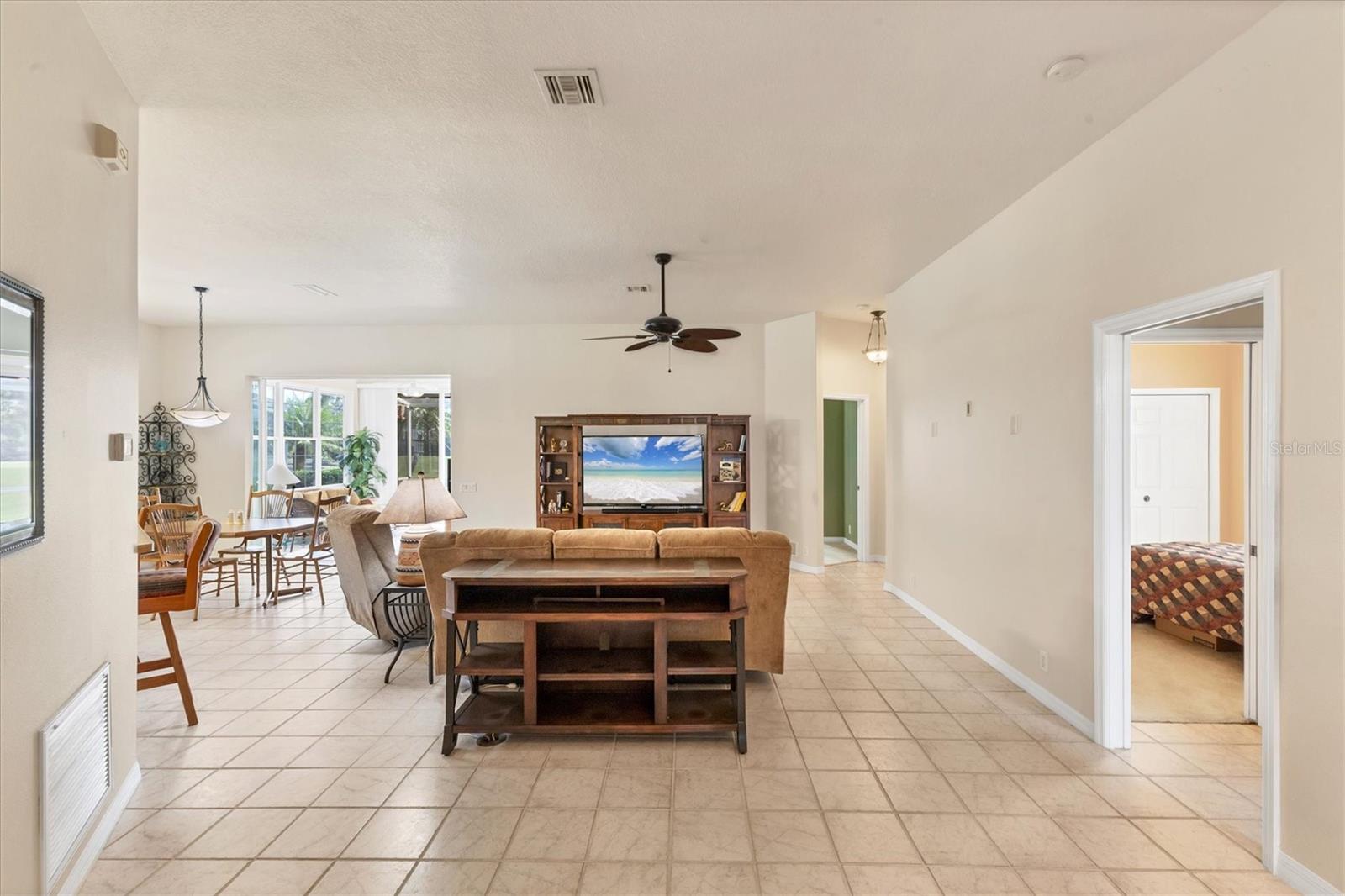 Don't miss out!! Bright and cheery home with Southern exposure overlooking golf course and lake. Open floor plan has tile flooring in main areas with carpets in bedrooms. Spacious kitchen with tons of counter space and movable island with stainless steel surface for food prep. Plenty of cabinets for all your kitchen wares. Tile backsplash. Overlooks dining area and great room. Huge Florida room with lots of windows and sliders to lanai make for a nice warm sunny place for an afternoon nap. Sit out on your screened lanai and watch the golfers on the 8th Fairway. Want to sit outside but not in the sun? Screened in front lanai should do the trick. Master bedroom with en suite bath offering dual sinks and walk in shower. Large walk in closet. Two guest bedrooms with guest bath in between. Guest bath has walk in shower with seat. Laundry room has storage cabinets and a wash sink. NEW ROOF. AC 2024. HURRICANE SHUTTERS. Pelican Pointe is Venice's Premier community offering resort style amenities including Clubhouse with bar/grill, card room/library, and banquet facilities. Heated pool with lap lanes for swimming, fitness center, tennis courts and pickle ball, tons of sidewalks for enjoying the weather throughout the community, and 27 holes of golf with Pro Shop. Tons of social opportunities for non golfers, including trivia night, special occasion activities, and huge Women's association. Golf is NOT mandatory. All of this Centrally located minutes to Venice Beach, Venice Downtown, shopping, theatres, restaurants, highways, airports, and so much more. Venice is the quaint gem you have been looking for on the West Coast. SEE IT TODAY!! TURNKEY FURNISHINGS NEGOTIABLE.