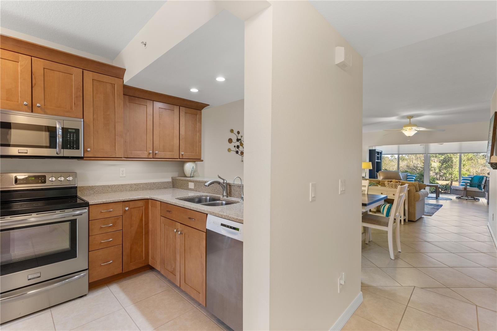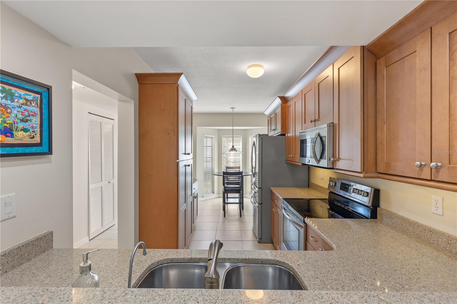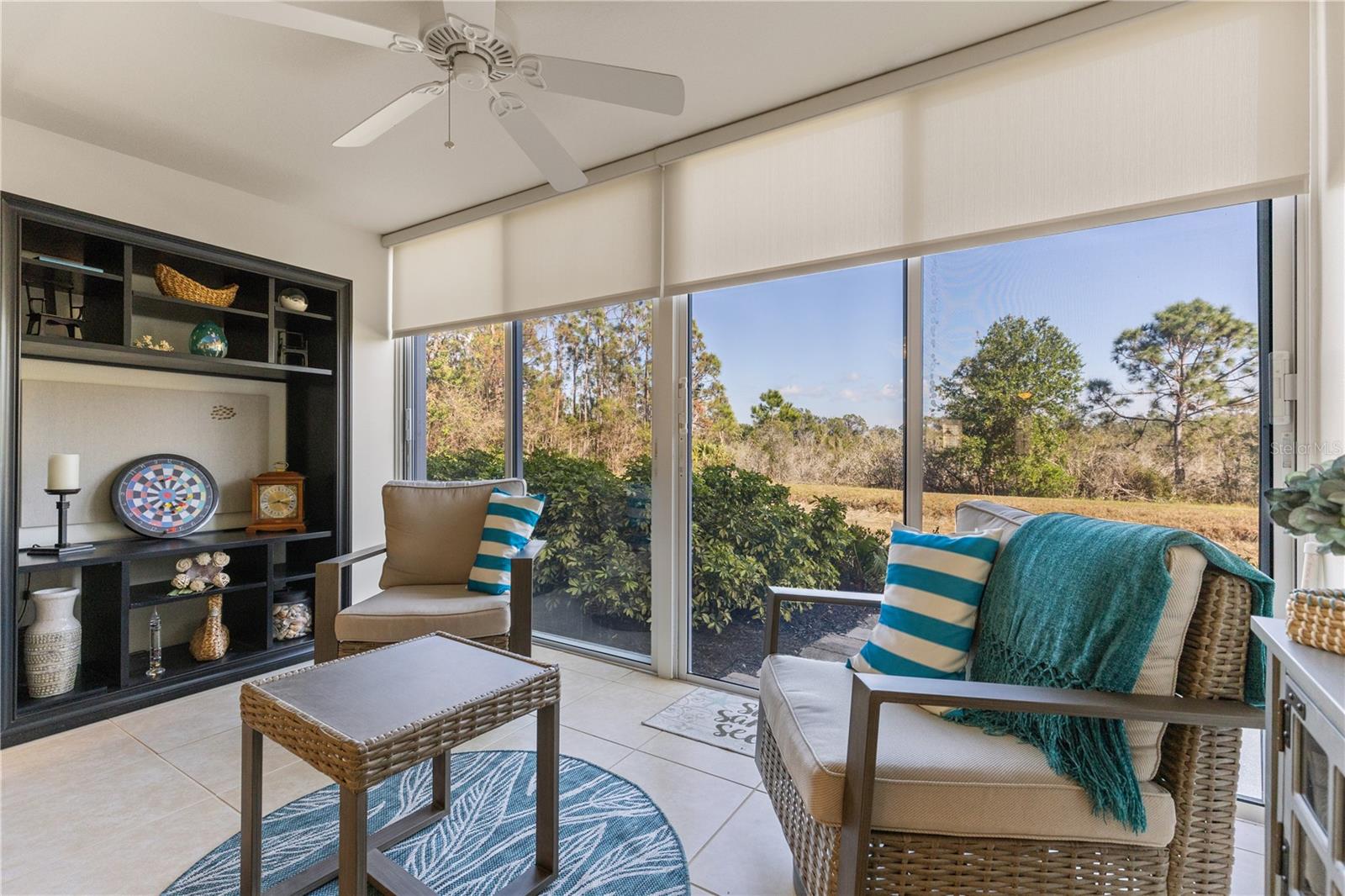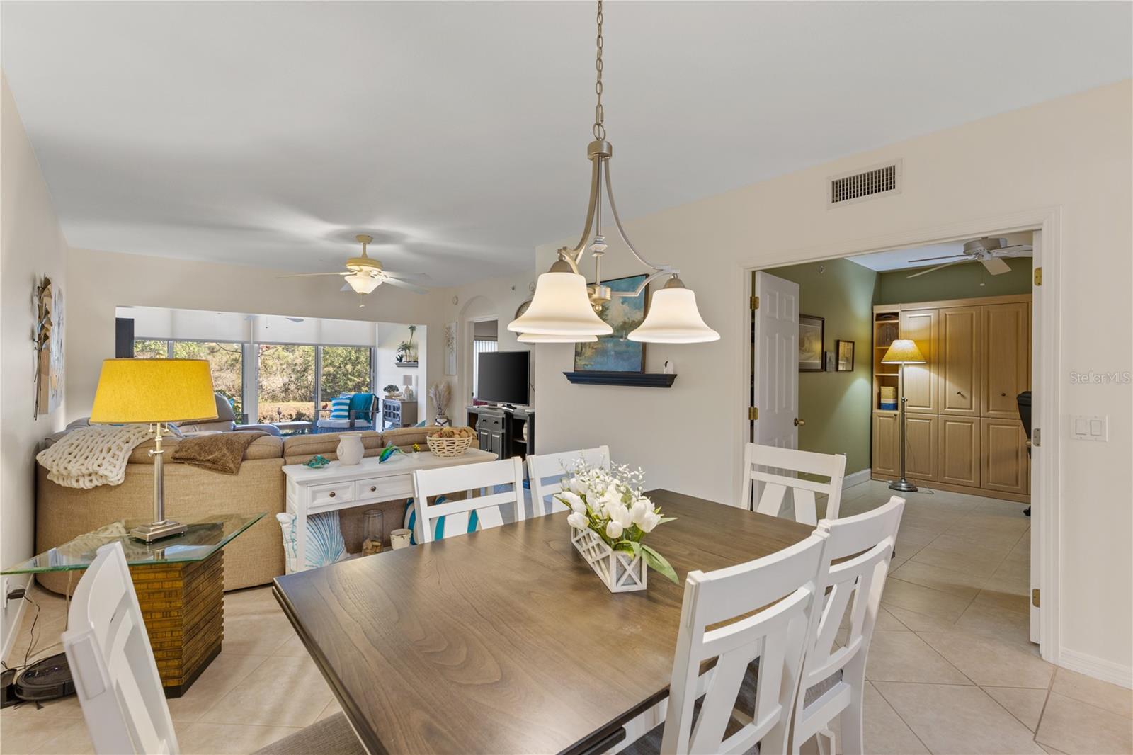 Beautifully Updated Condo in Waterside Village – Move-In Ready! Welcome to this stunning 2-bedroom, 2-bath condo with a den and a Florida room, offering serene pond and preserve views in the highly desirable Waterside Village of Venice, Florida. Thoughtfully renovated and meticulously maintained, this home is truly move-in ready. The updated kitchen features wood cabinets, granite countertops, and stainless steel appliances, along with a built-in pantry for ample storage and a convenient drinking water filter at the sink. The open floor plan with a great room concept creates a bright and airy space—ideal for entertaining. From the Florida room, sliding doors with motorized sunshades frame the beautiful pond view with a preserve as the backdrop. Step out to a sun patio, perfect for relaxing outdoors. The den is a versatile space with a Murphy bed and custom-built desk with storage, making it great for a home office or additional guest accommodations. The sunny ensuite is perfect for visitors, while the luxurious primary suite has been completely renovated to include double sinks, a walk-in shower, a built-in closet organizer, and an in-suite laundry area for ultimate convenience. This condo also includes a single carport and an outside storage unit. A whole-house surge protector has been installed for added security, and the roof was replaced less than two years ago. The condo is conveniently located directly across from the community pool, making it easy to enjoy a swim or relax by the water. Waterside Village offers exceptional amenities, including three pools, a clubhouse, pickleball, tennis, shuffleboard, bocce ball, and a variety of social activities such as a book club, line dancing, and card games. The HOA covers Hotwire TV, internet, water, and sewer, providing a low-maintenance lifestyle. Don't miss this opportunity to own a beautifully updated home in one of Venice’s most sought-after communities! Schedule your private showing today!