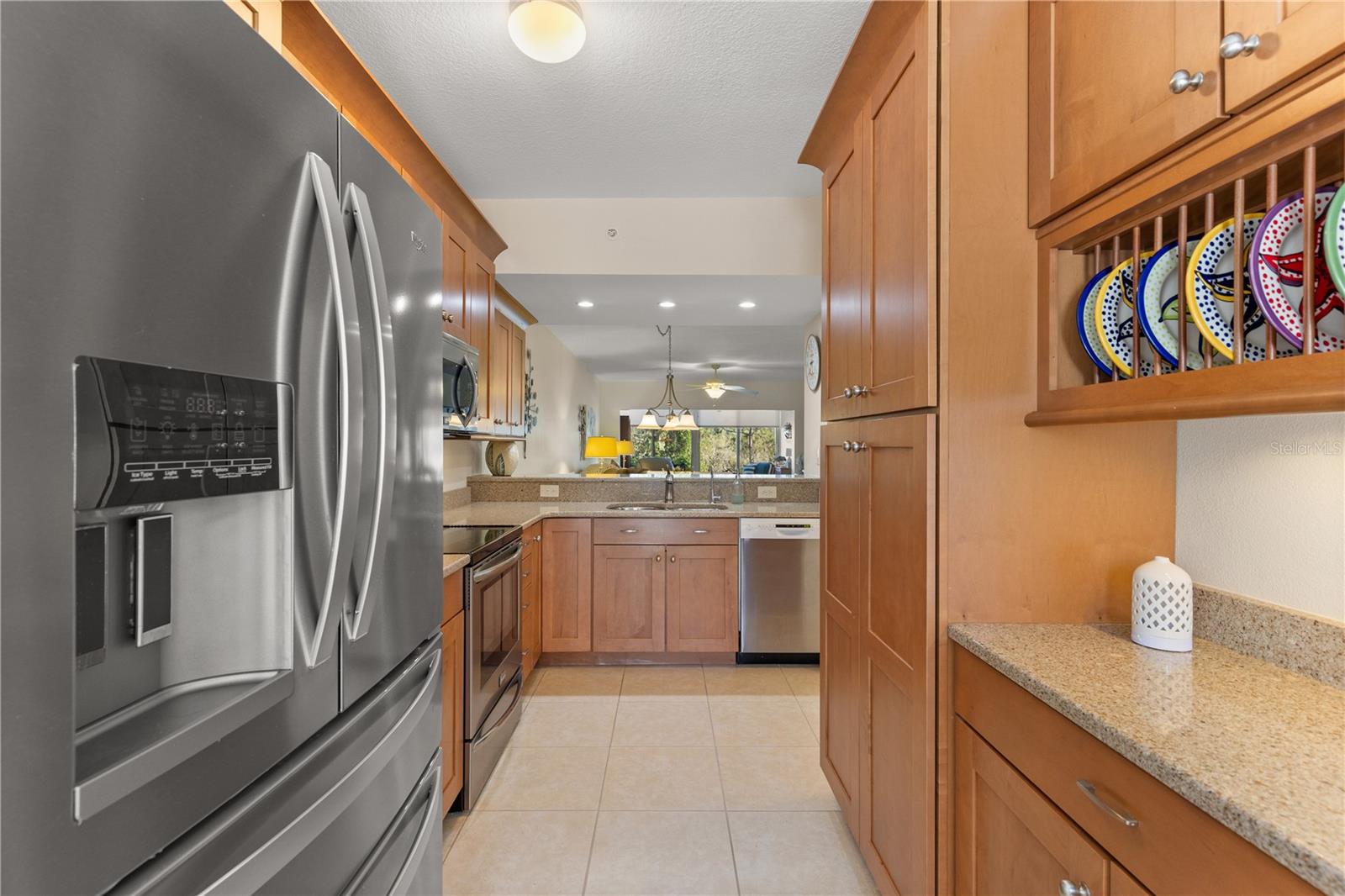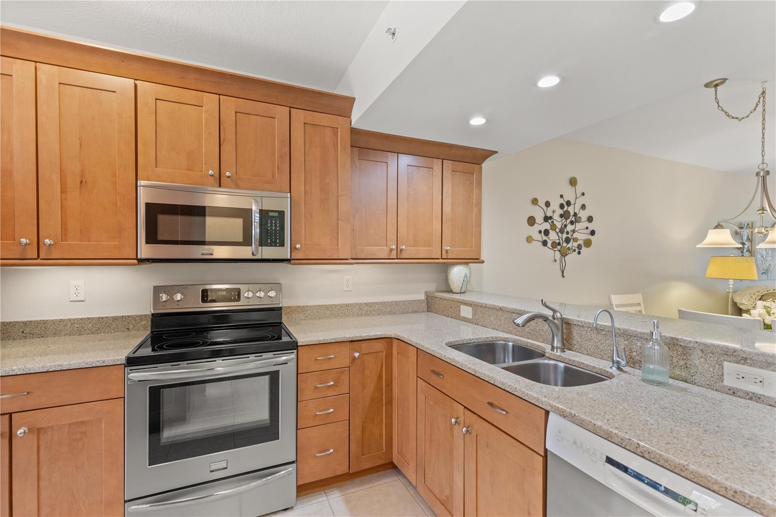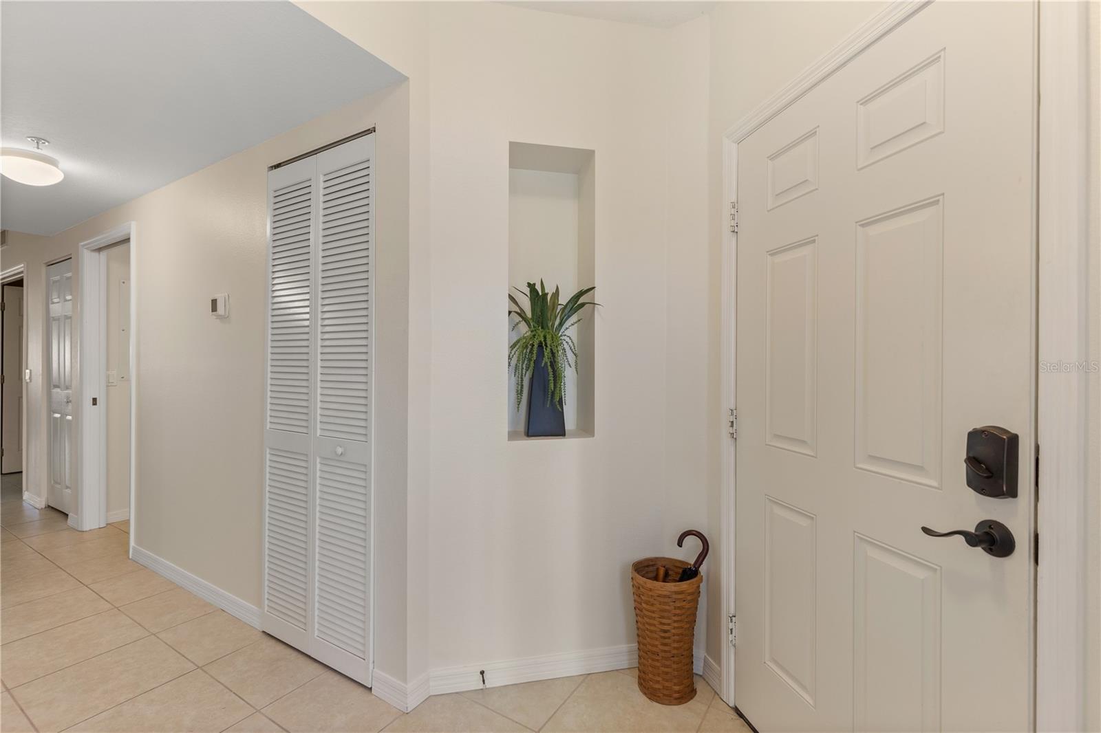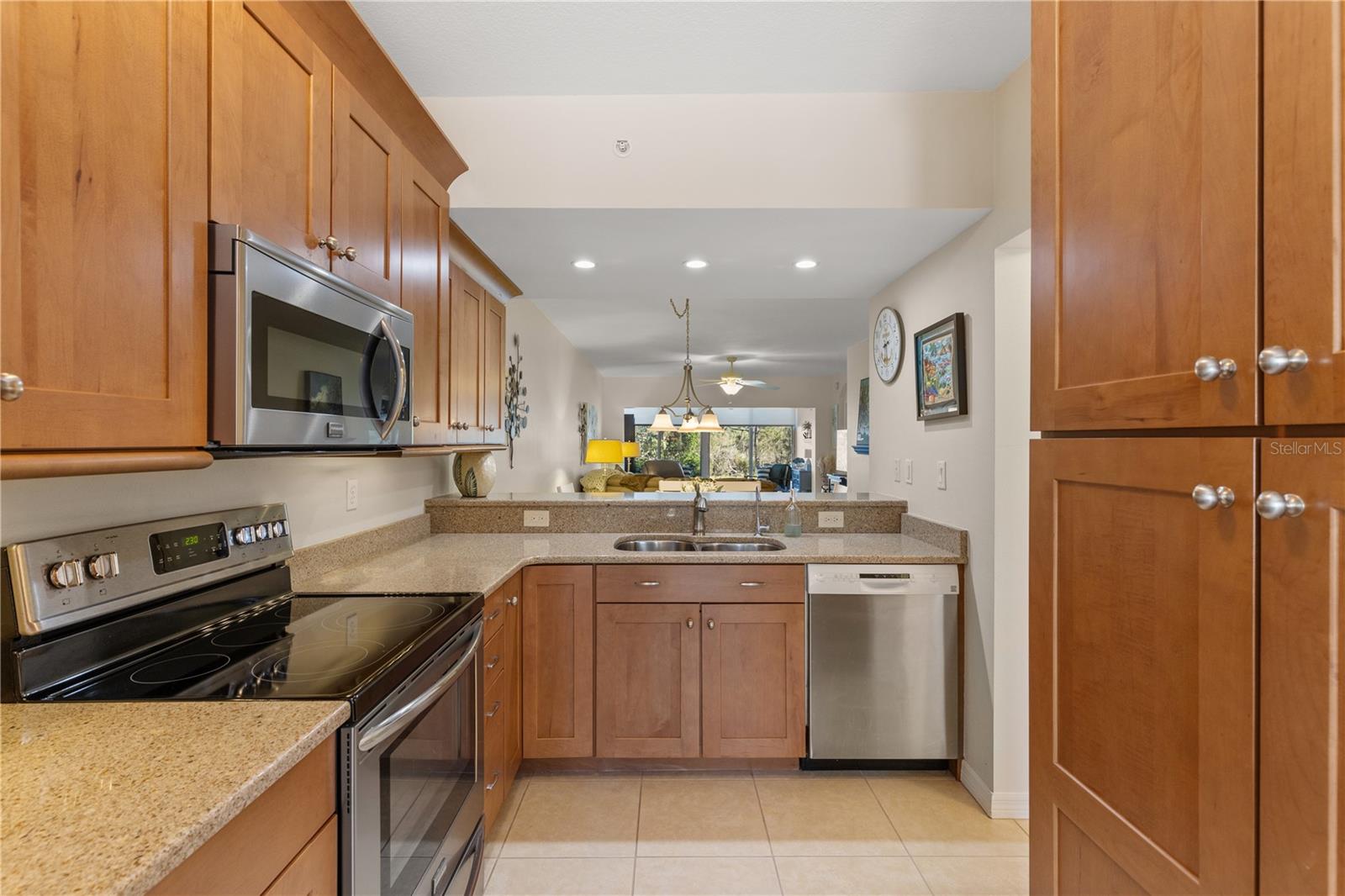 Beautifully Updated Condo in Waterside Village – Move-In Ready! Welcome to this stunning 2-bedroom, 2-bath condo with a den and a Florida room, offering serene pond and preserve views in the highly desirable Waterside Village of Venice, Florida. Thoughtfully renovated and meticulously maintained, this home is truly move-in ready. The updated kitchen features wood cabinets, granite countertops, and stainless steel appliances, along with a built-in pantry for ample storage and a convenient drinking water filter at the sink. The open floor plan with a great room concept creates a bright and airy space—ideal for entertaining. From the Florida room, sliding doors with motorized sunshades frame the beautiful pond view with a preserve as the backdrop. Step out to a sun patio, perfect for relaxing outdoors. The den is a versatile space with a Murphy bed and custom-built desk with storage, making it great for a home office or additional guest accommodations. The sunny ensuite is perfect for visitors, while the luxurious primary suite has been completely renovated to include double sinks, a walk-in shower, a built-in closet organizer, and an in-suite laundry area for ultimate convenience. This condo also includes a single carport and an outside storage unit. A whole-house surge protector has been installed for added security, and the roof was replaced less than two years ago. The condo is conveniently located directly across from the community pool, making it easy to enjoy a swim or relax by the water. Waterside Village offers exceptional amenities, including three pools, a clubhouse, pickleball, tennis, shuffleboard, bocce ball, and a variety of social activities such as a book club, line dancing, and card games. The HOA covers Hotwire TV, internet, water, and sewer, providing a low-maintenance lifestyle. Don't miss this opportunity to own a beautifully updated home in one of Venice’s most sought-after communities! Schedule your private showing today!