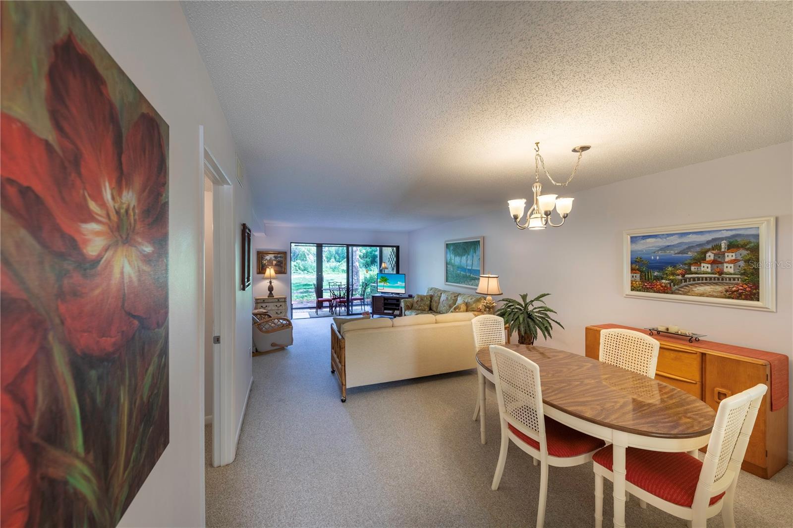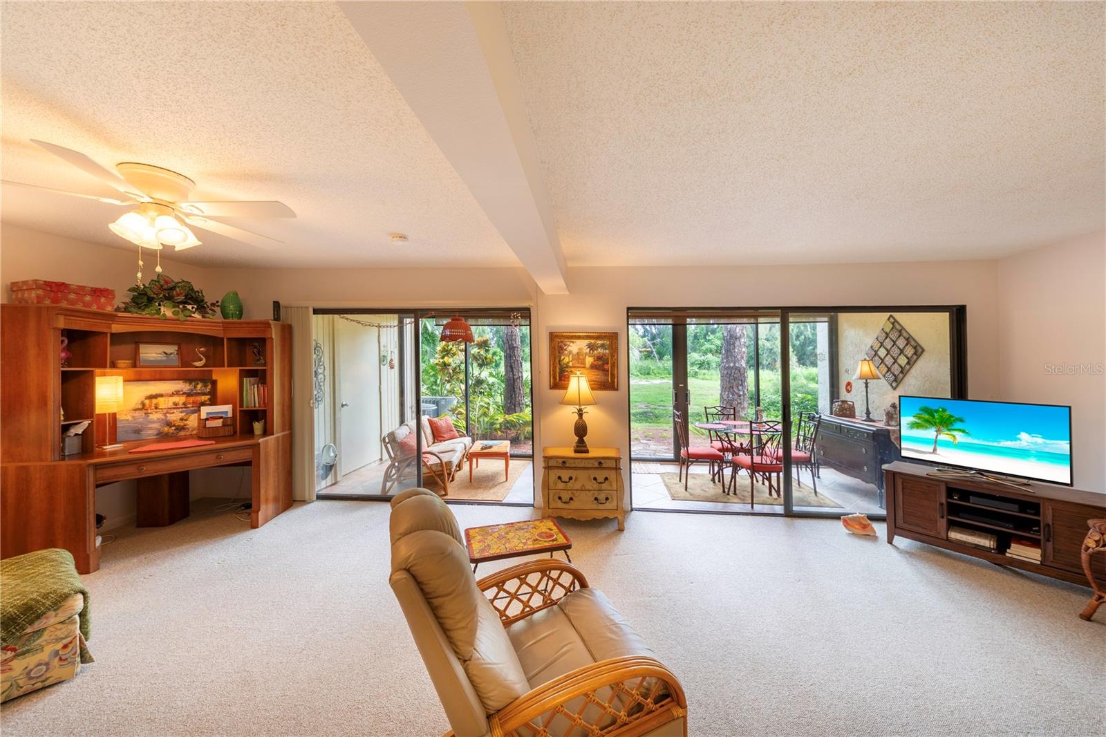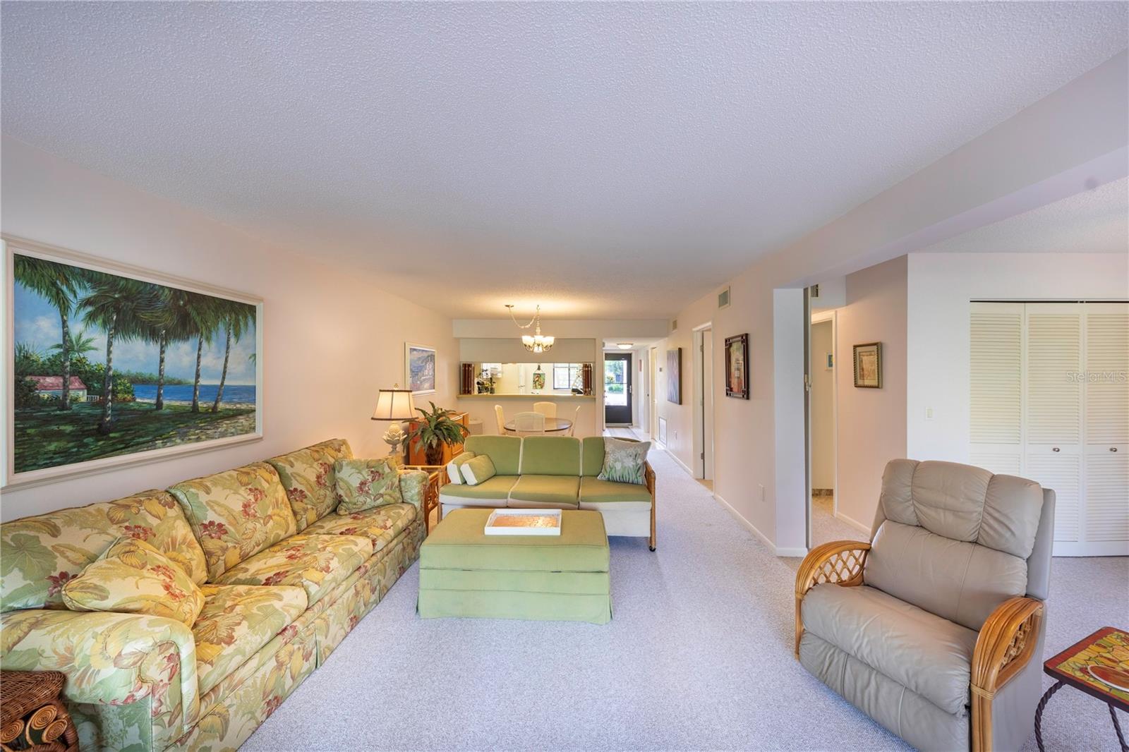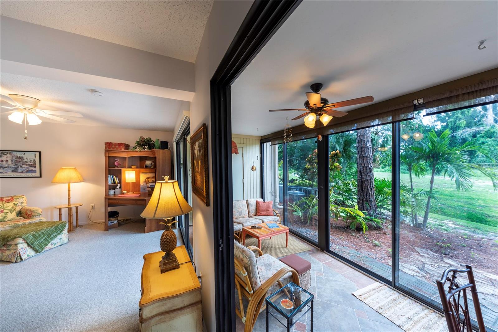 LOCATION, LOCATION, LOCATION! Beautiful Phase I Bird Bay Village GROUND FLOOR/TURNKEY well maintained 2-bedroom convertible 2 bath condo is looking for a new owner! This unit has a bright open floor plan with beautiful green space views. Brand new AC unit in May 2024! The primary bedroom has a walk in closest with an en-suite updated bathroom with a walk-in shower. The 2nd bedroom has a convertible accordion wall, allowing for this space to be used as a bedroom, office, or den. The updated 2nd bath has a tub / shower combo. The glass enclosed lanai lets in lots of natural light with an expansive beautiful tile flooring, and storage area. You can further enjoy the outdoor semi-private front patio with a shed that has new epoxy nonslip flooring with a brand-new washer/dryer and plenty of storage space for your bikes and beach chairs. There is also a covered carport, and plenty of guest parking. This unit is just steps from the gorgeous phase 1 pool. In addition, you have all of the fabulous amenities of Bird Bay with a community swimming pool, tennis courts, Bocce Ball, Pickle Ball, a fitness center, library, clubhouse with kitchen, and numerous clubs and social engagements. The HOA fee includes- basic cable, Exterior insurance, Exterior maintenance, On-site management, Pest control, Pool maintenance, Ground maintenance, Recreational facilities, Water, Trash, and Sewer. Conveniently located with easy access to the Legacy Trail and Historic downtown Venice, the shops, live entertainment, restaurants, and area beaches! Whether you're looking for an investment property, your seasonal retreat, or new full-time home, look no further Paradise has been found!