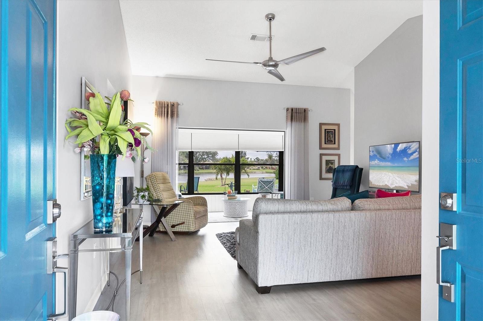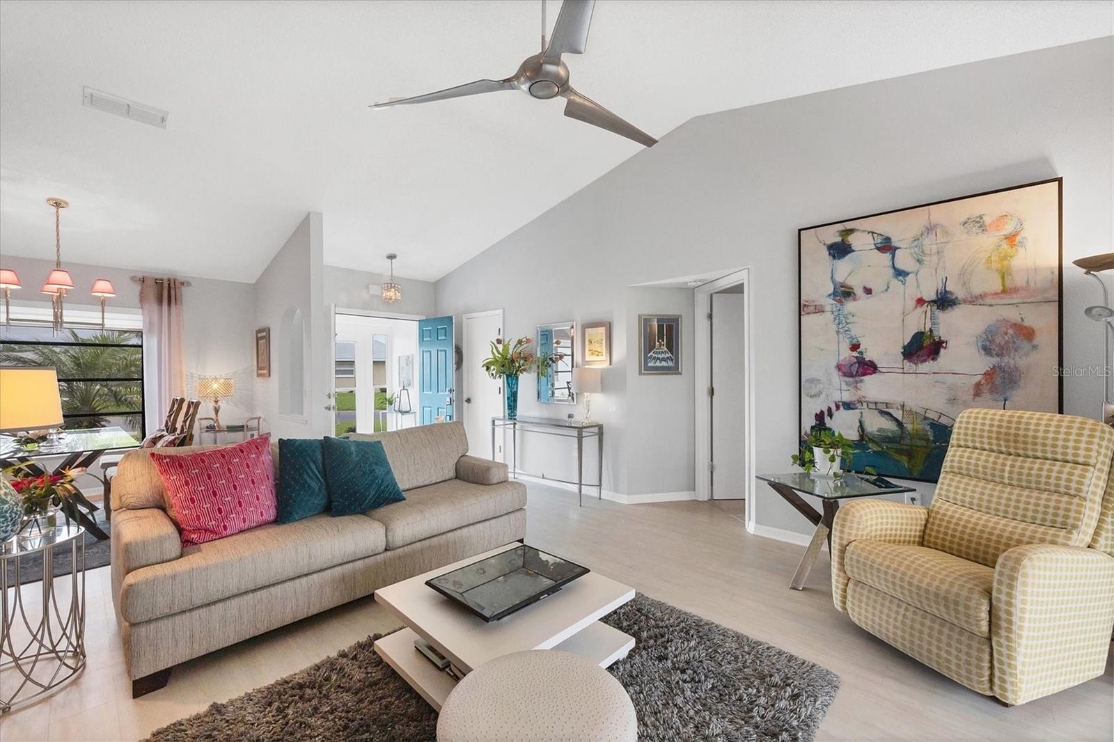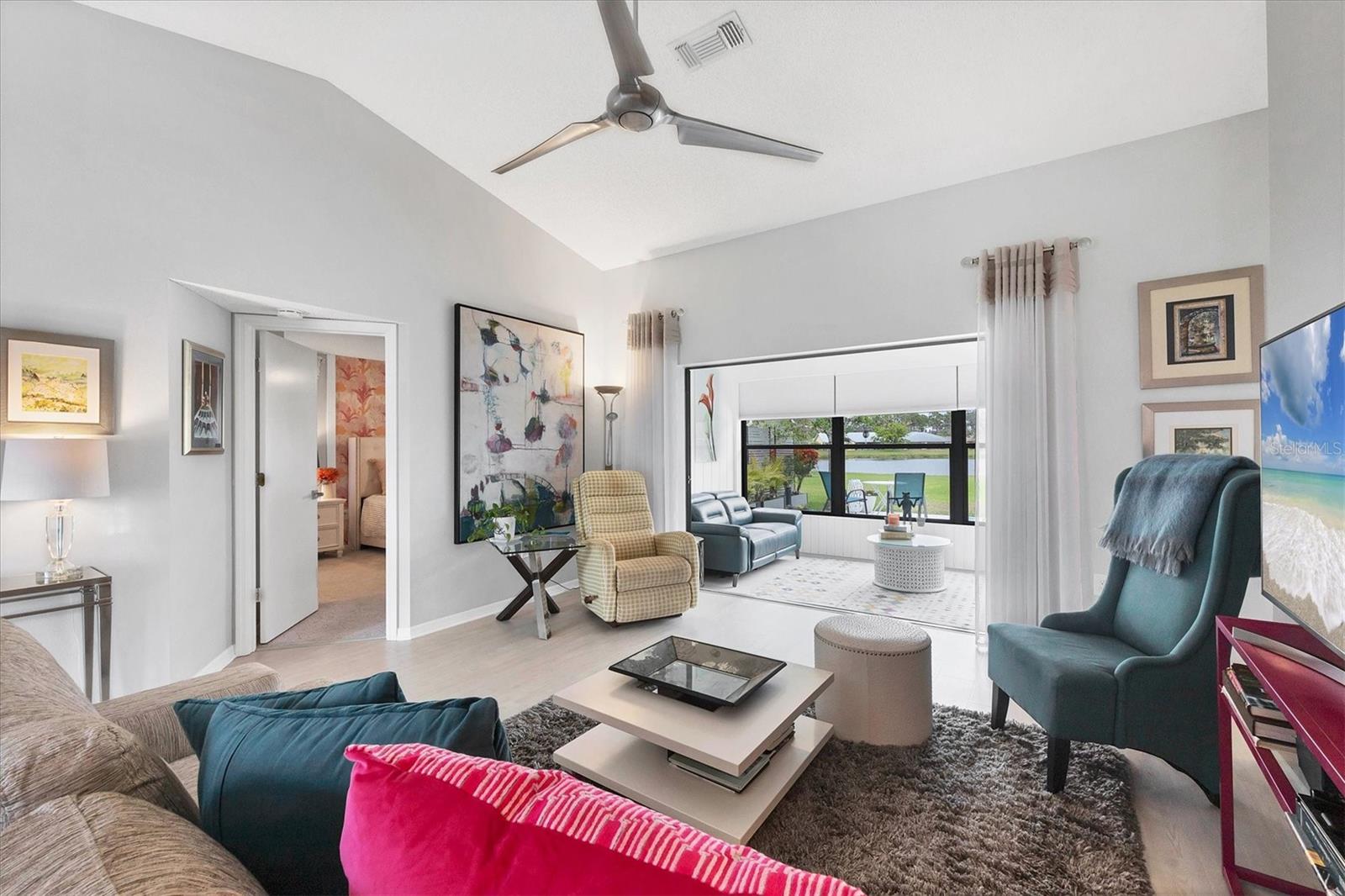 Look no further! You are going to fall in love with this beautifully updated, spacious 2 bedroom, 2 bathroom, lakeside home located in the highly sought after, DEED RESTRICTED Meadow Run at Jacaranda neighborhood. This corner lot property has been appointed with a designer’s touch including luxury plank flooring, modern kitchen, relaxing Florida room, open concept great room, freshly painted exterior and more! The perfect split floor plan provides privacy for owners and guests alike. This home is an entertainer’s dream that offers open living and dining areas as well as indoor/outdoor space. While relaxing in the sun filled bonus room or on the outside patio, you will be able to enjoy breathtaking picturesque lakeside views year round. Meadow Run at Jacaranda is a thriving community with LOW HOAs, public water & sewer and NO CDD. The community center offers pickleball and tennis courts, basketball courts, a pool & spa, fitness center and a clubhouse. Additionally, the property is located just a few short miles from historic downtown Venice where residents can explore a vibrant array of shops, restaurants, parks, and beaches. The central location of this home ensures easy access to I75, hospitals, shopping centers, emergency services, downtown Wellen Park and the CoolToday Park, home of the Braves’ spring training. A short drive takes you to the South Venice Beach Ferry ( 4.5 miles), Lemon Bay Preserve, Venice Fishing Pier ( 7 miles), Caspersen Beach (5.3 miles), Manasota Key Beach (6.3Miles) and Blind Pass Beach (10 miles) Don't miss the opportunity to call this modern haven your home, where luxury meets convenience in this gorgeous community. Schedule your private tour today and envision the lifestyle that awaits in this meticulously crafted residence.