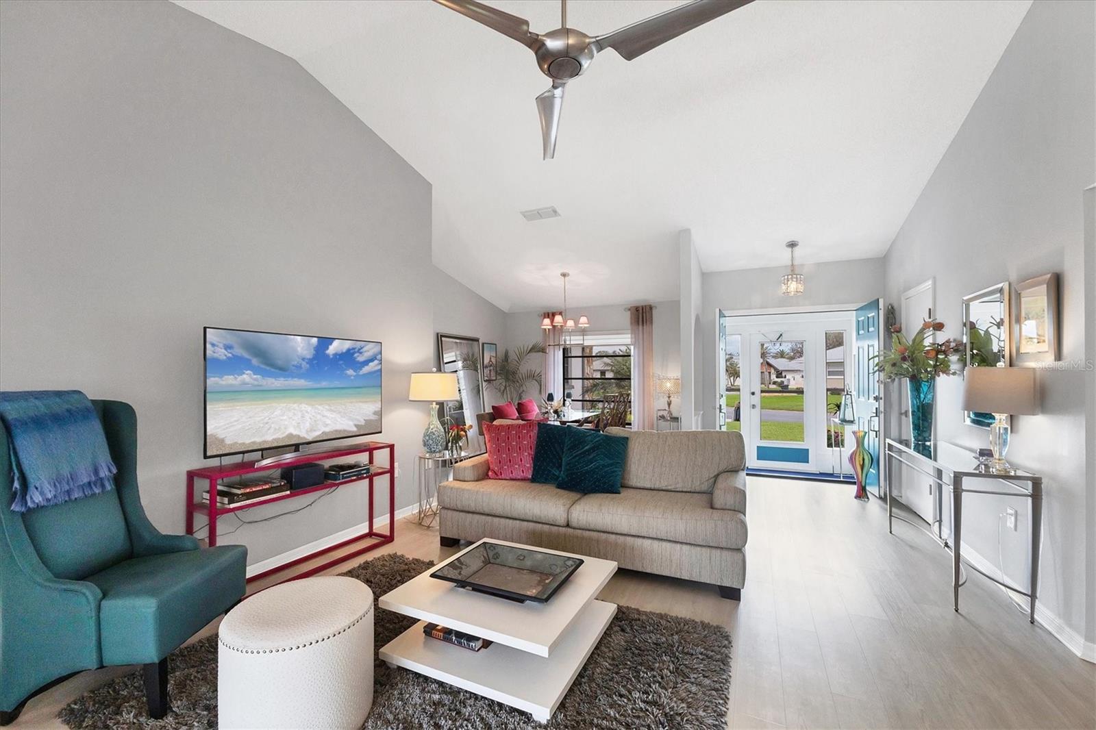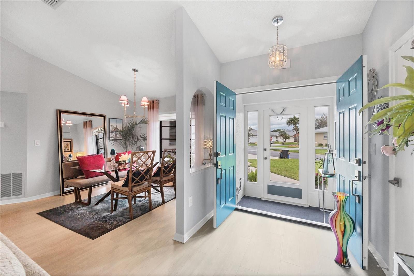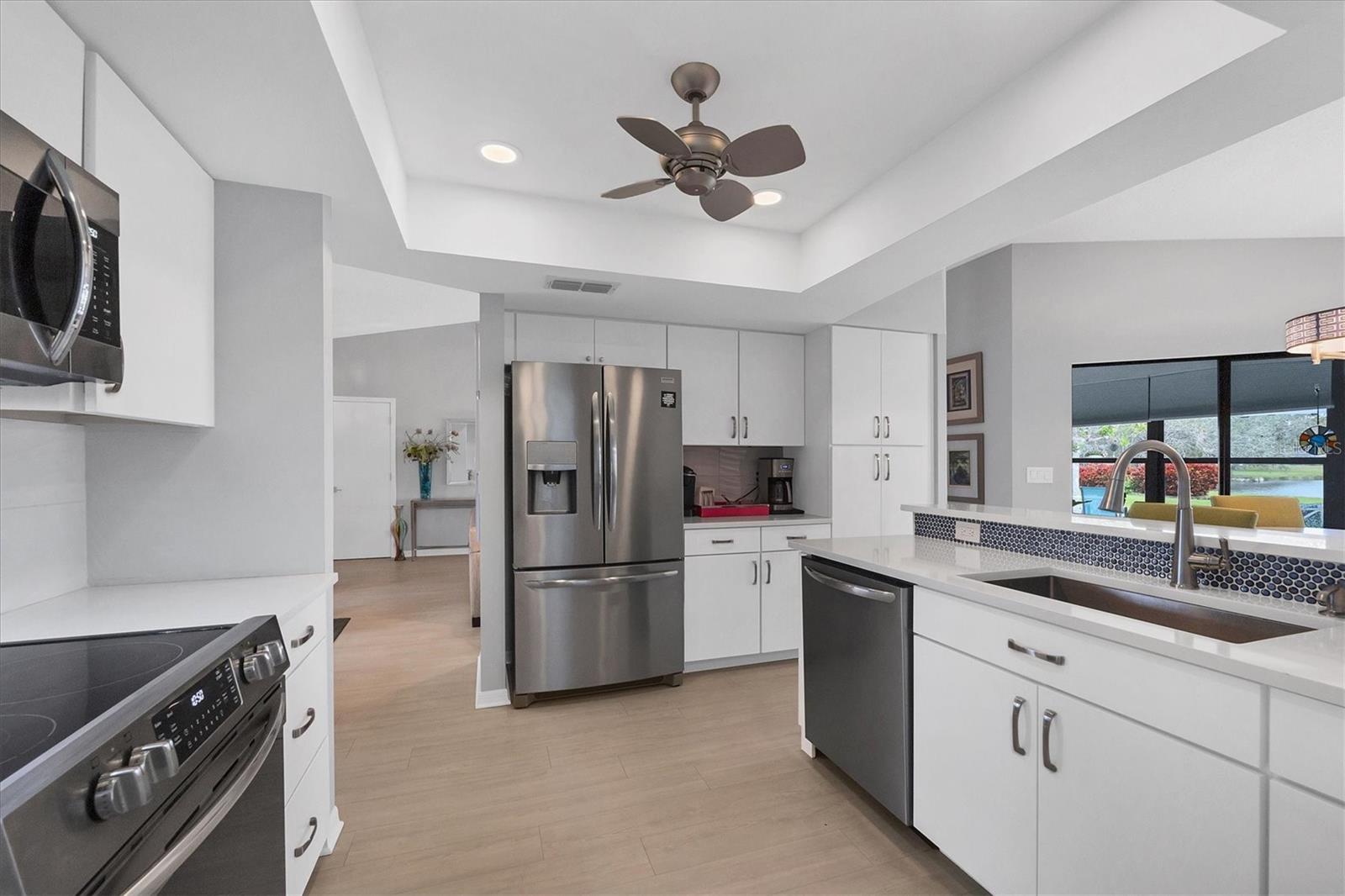 Look no further! You are going to fall in love with this beautifully updated, spacious 2 bedroom, 2 bathroom, lakeside home located in the highly sought after, DEED RESTRICTED Meadow Run at Jacaranda neighborhood. This corner lot property has been appointed with a designer’s touch including luxury plank flooring, modern kitchen, relaxing Florida room, open concept great room, freshly painted exterior and more! The perfect split floor plan provides privacy for owners and guests alike. This home is an entertainer’s dream that offers open living and dining areas as well as indoor/outdoor space. While relaxing in the sun filled bonus room or on the outside patio, you will be able to enjoy breathtaking picturesque lakeside views year round. Meadow Run at Jacaranda is a thriving community with LOW HOAs, public water & sewer and NO CDD. The community center offers pickleball and tennis courts, basketball courts, a pool & spa, fitness center and a clubhouse. Additionally, the property is located just a few short miles from historic downtown Venice where residents can explore a vibrant array of shops, restaurants, parks, and beaches. The central location of this home ensures easy access to I75, hospitals, shopping centers, emergency services, downtown Wellen Park and the CoolToday Park, home of the Braves’ spring training. A short drive takes you to the South Venice Beach Ferry ( 4.5 miles), Lemon Bay Preserve, Venice Fishing Pier ( 7 miles), Caspersen Beach (5.3 miles), Manasota Key Beach (6.3Miles) and Blind Pass Beach (10 miles) Don't miss the opportunity to call this modern haven your home, where luxury meets convenience in this gorgeous community. Schedule your private tour today and envision the lifestyle that awaits in this meticulously crafted residence.