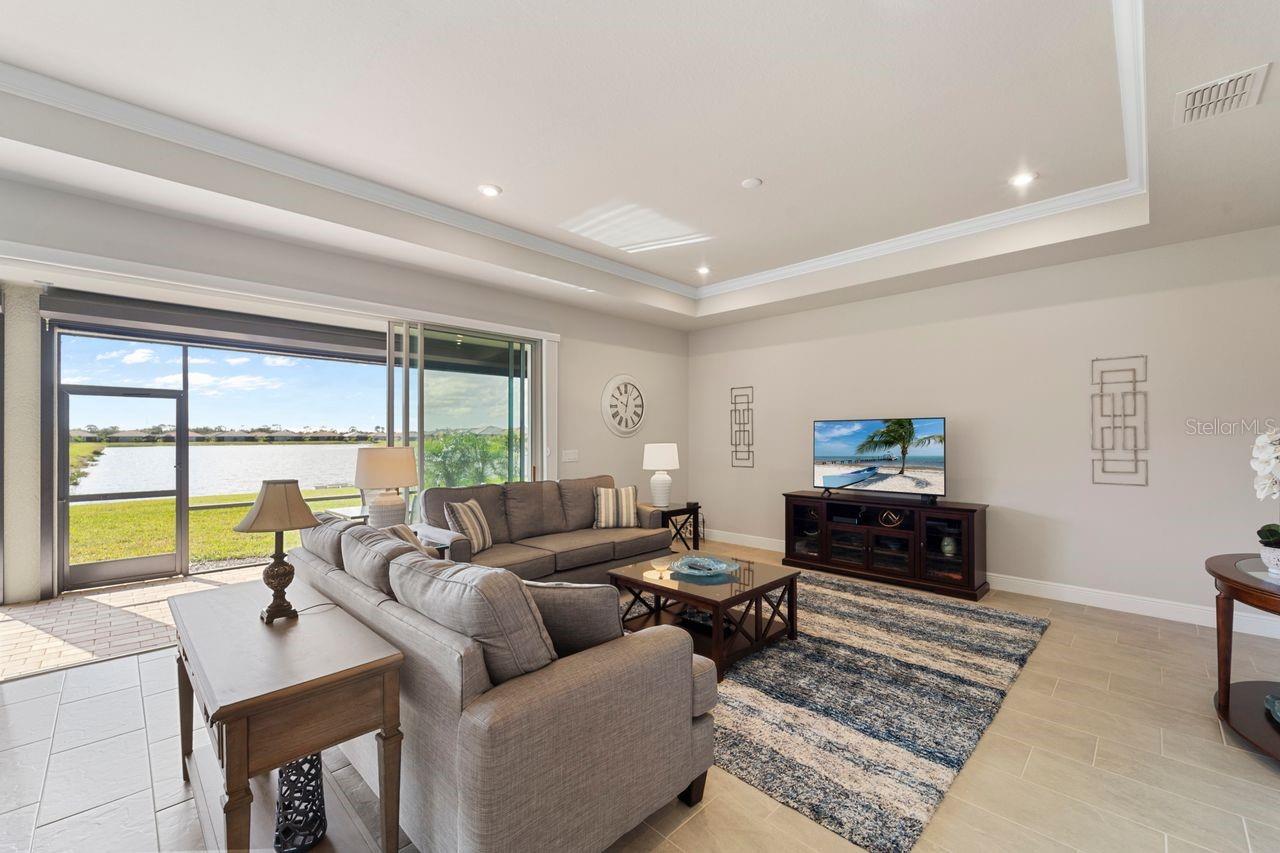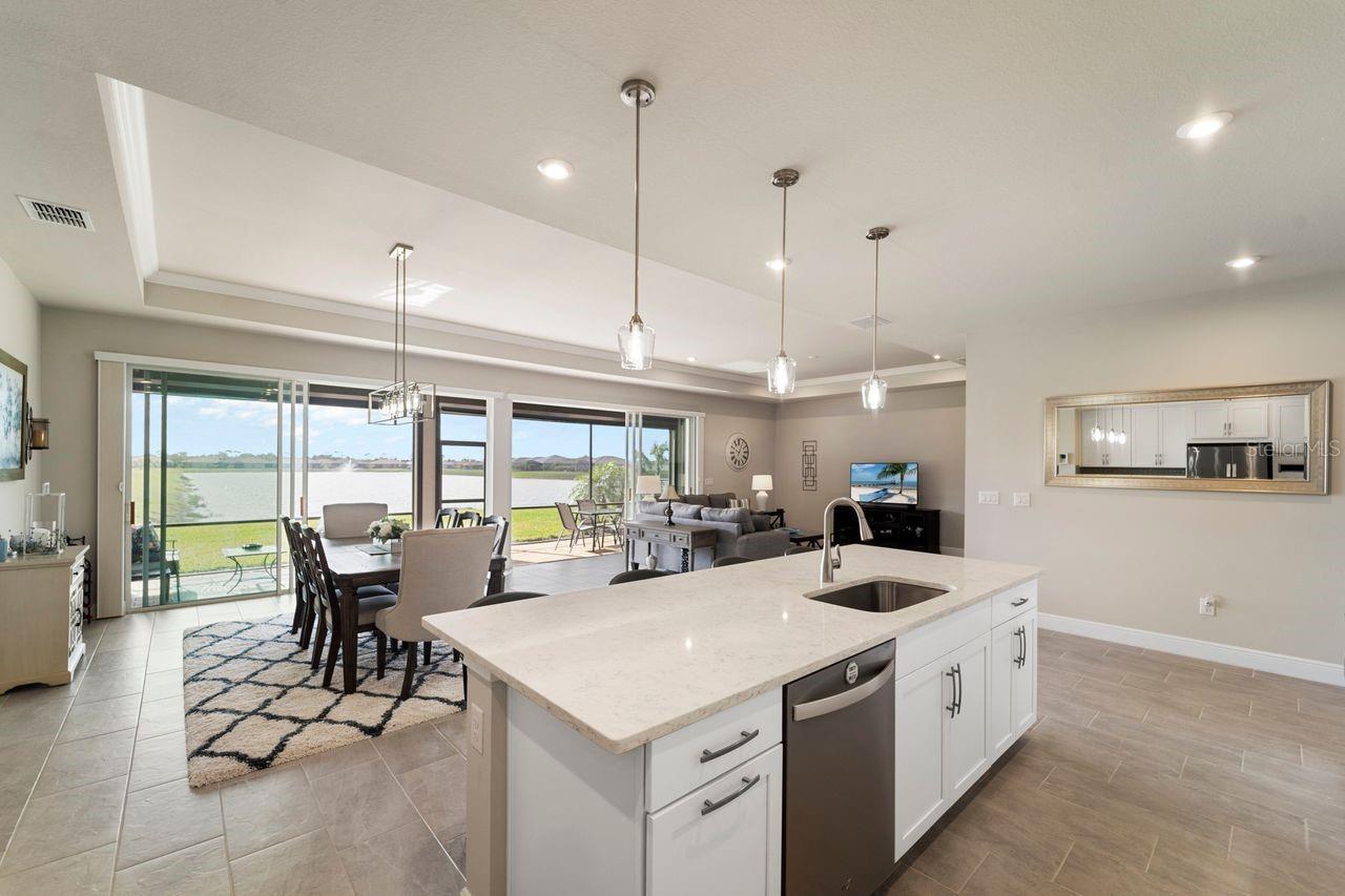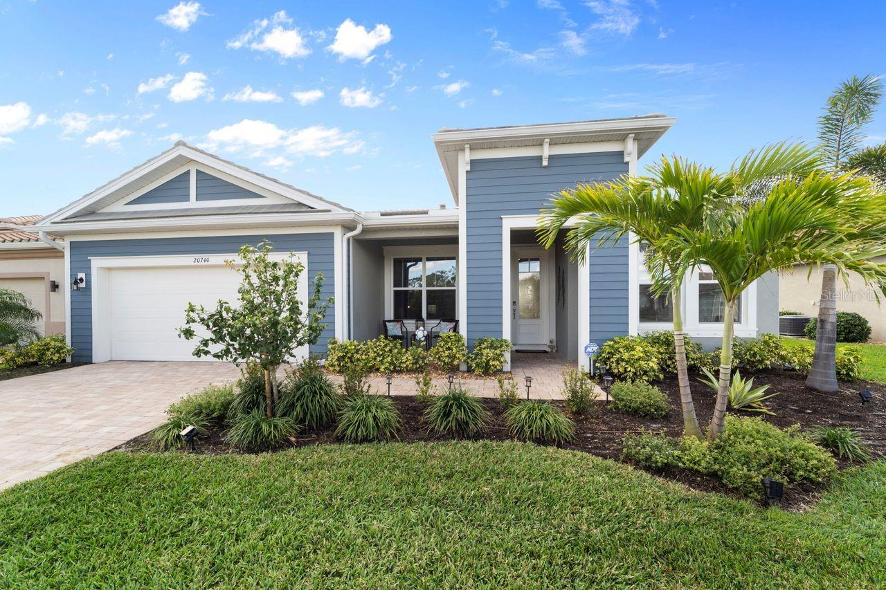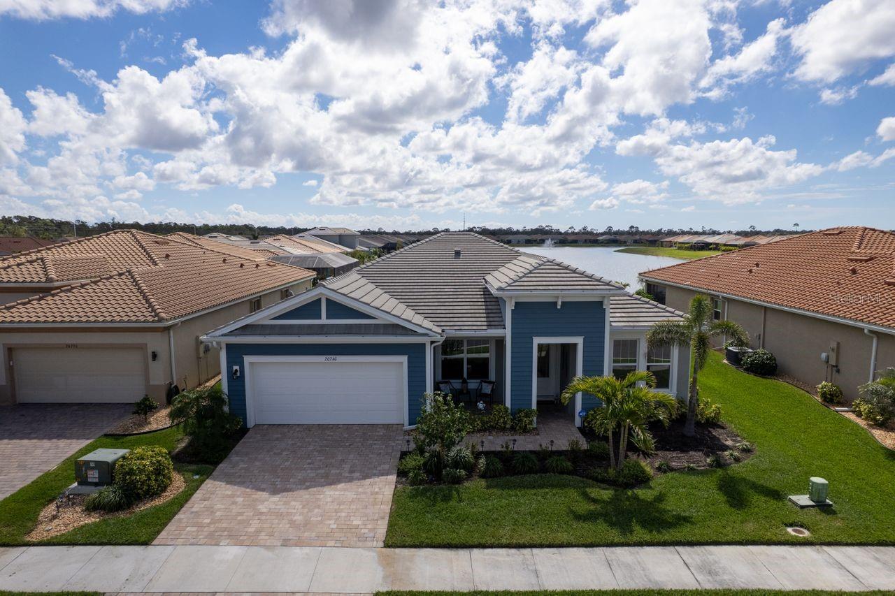 Don't miss this rare opportunity to own The Hampton II, one of the most popular models in Renaissance with breathtaking water view! This stunning 2,315 sq. ft. home with a Coastal elevation offers an expansive floor plan featuring 3 Bedrooms, 2 Bathrooms, a laundry room with custom cabinetry, a walk-in pantry, plus a flex room. The chef-inspired kitchen showcases quartz countertops, stainless steel appliances with a double oven, a large center island simply perfect for entertaining or enjoying quality time with loved ones. The spacious great room and dining area, with a beautiful tray ceiling, enhance the sense of luxury living. Double 12' lanai doors invite an abundance of natural light into the home with a large covered lanai offering breathtaking water views. . The luxurious owner’s suite offers a private retreat with a large en-suite bathroom and one of the most impressive walk-in showers you’ll find, plus a dream closet designed by Closets by Design. Additional upgrades include remote Kevlar Hurricane Shutters in the lanai and accordion shutters in the side windows for peace of mind, and a whole-house water softener for refreshing smooth skin. The spacious two-car garage is finished with epoxy flooring. Renaissance is a gated community offering resort-style amenities such as a resort pool, pickleball, tennis, a fitness center, bocce, and an activities director with a full monthly calendar of events. Located just minutes from Downtown Wellen Park, a rapidly growing master-planned community, you’ll have access to boutique shops, entertainment, restaurants, an 82-acre lake with kayak rentals, a beautiful fishing pier, and more. It’s also home to the Atlanta Braves spring training facility. Don’t miss out—schedule a tour today!