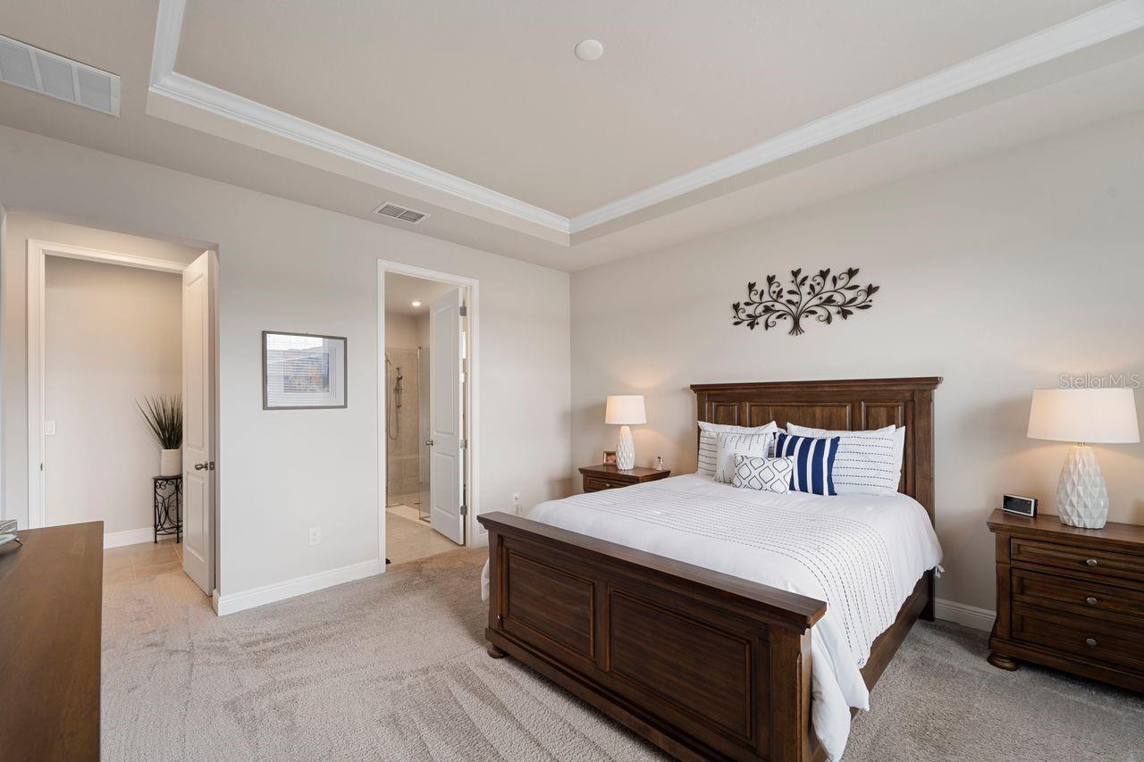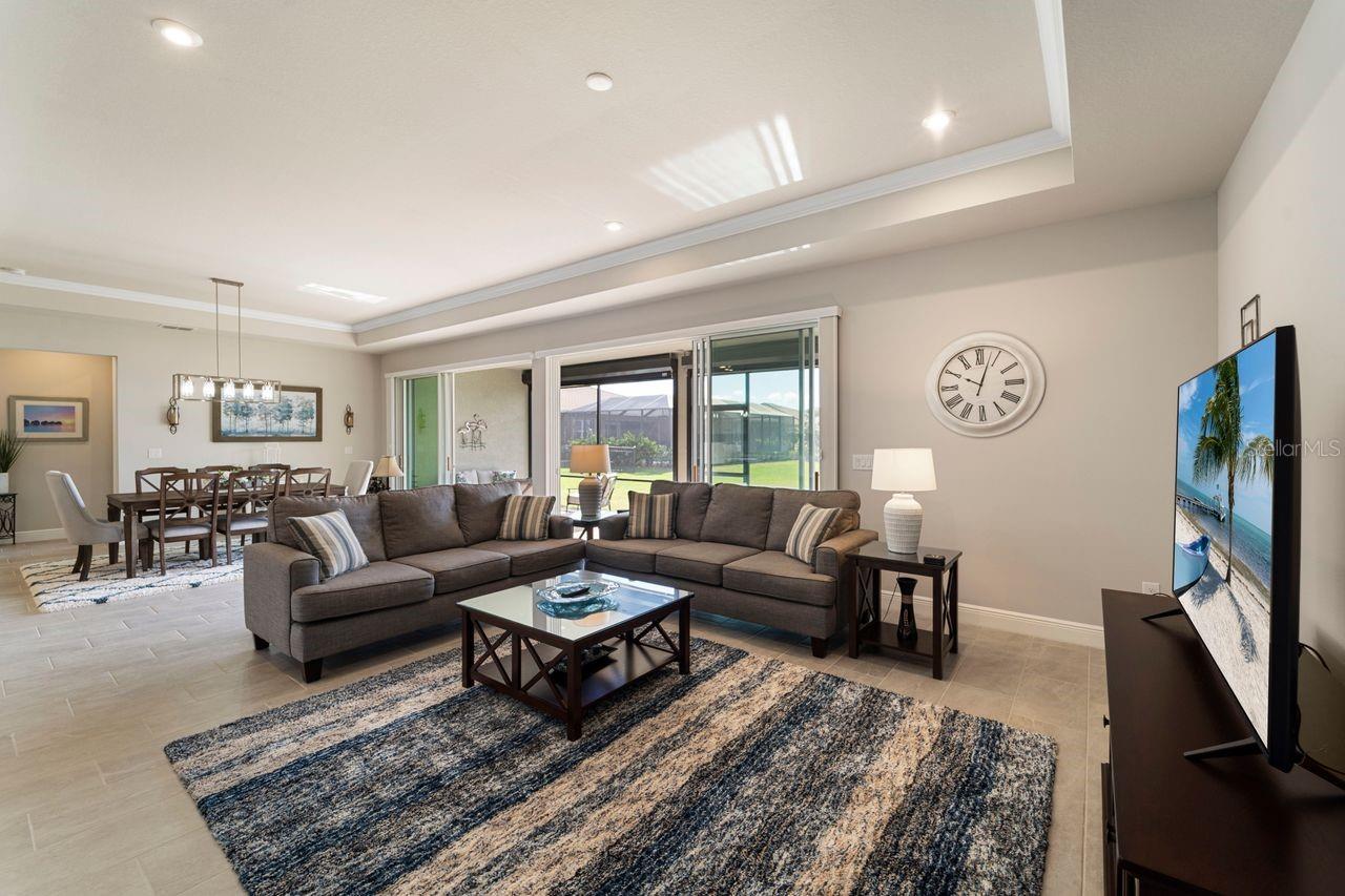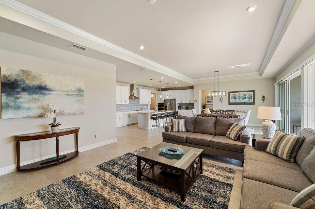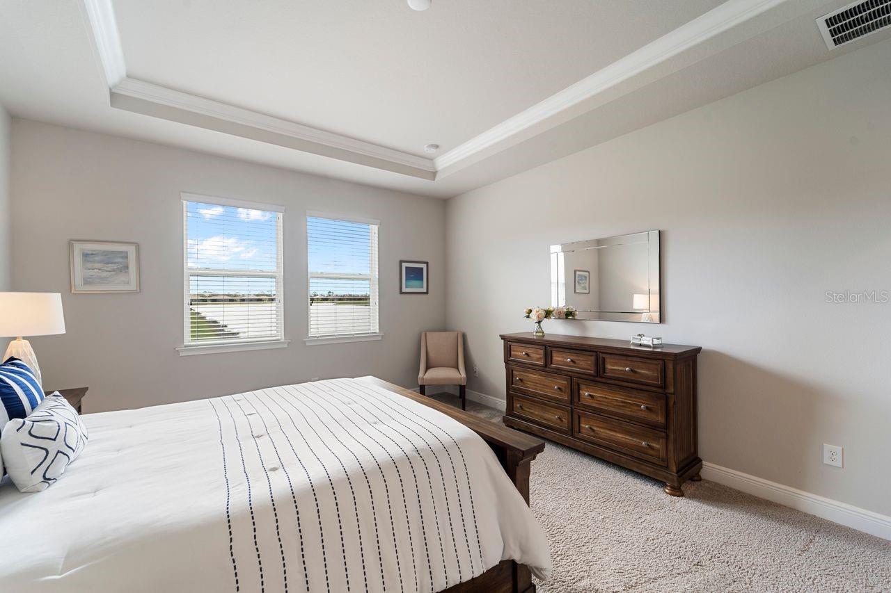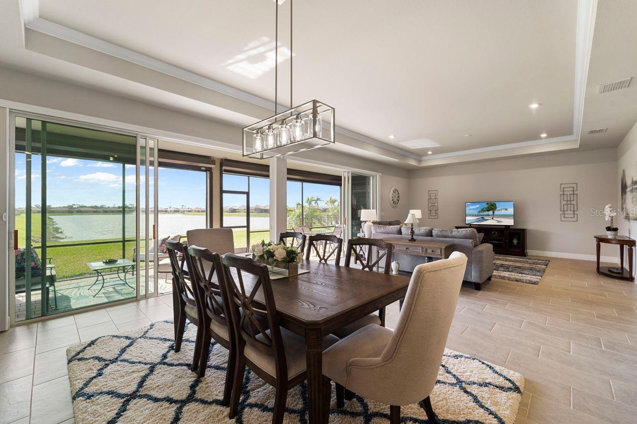 Don't miss this rare opportunity to own The Hampton II, one of the most popular models in Renaissance with breathtaking water view! This stunning 2,315 sq. ft. home with a Coastal elevation offers an expansive floor plan featuring 3 Bedrooms, 2 Bathrooms, a laundry room with custom cabinetry, a walk-in pantry, plus a flex room. The chef-inspired kitchen showcases quartz countertops, stainless steel appliances with a double oven, a large center island simply perfect for entertaining or enjoying quality time with loved ones. The spacious great room and dining area, with a beautiful tray ceiling, enhance the sense of luxury living. Double 12' lanai doors invite an abundance of natural light into the home with a large covered lanai offering breathtaking water views. . The luxurious owner’s suite offers a private retreat with a large en-suite bathroom and one of the most impressive walk-in showers you’ll find, plus a dream closet designed by Closets by Design. Additional upgrades include remote Kevlar Hurricane Shutters in the lanai and accordion shutters in the side windows for peace of mind, and a whole-house water softener for refreshing smooth skin. The spacious two-car garage is finished with epoxy flooring. Renaissance is a gated community offering resort-style amenities such as a resort pool, pickleball, tennis, a fitness center, bocce, and an activities director with a full monthly calendar of events. Located just minutes from Downtown Wellen Park, a rapidly growing master-planned community, you’ll have access to boutique shops, entertainment, restaurants, an 82-acre lake with kayak rentals, a beautiful fishing pier, and more. It’s also home to the Atlanta Braves spring training facility. Don’t miss out—schedule a tour today!