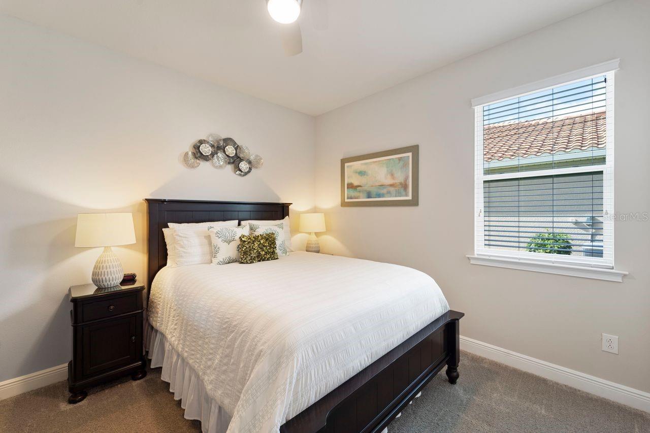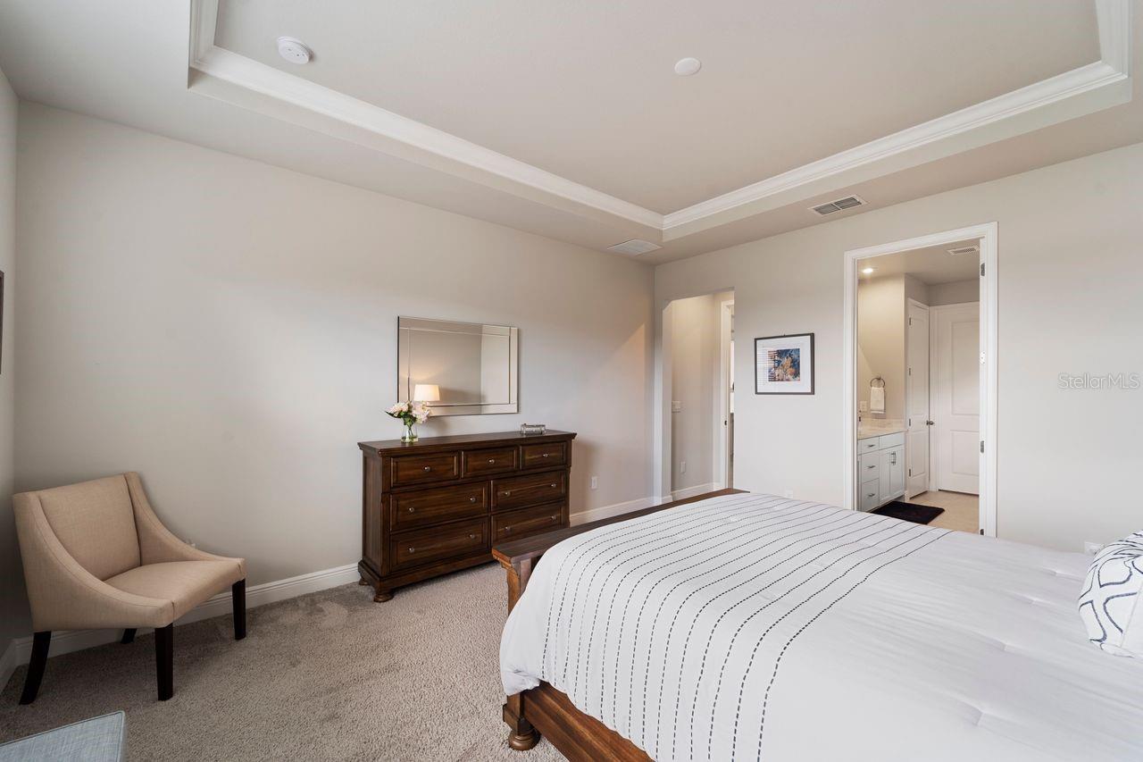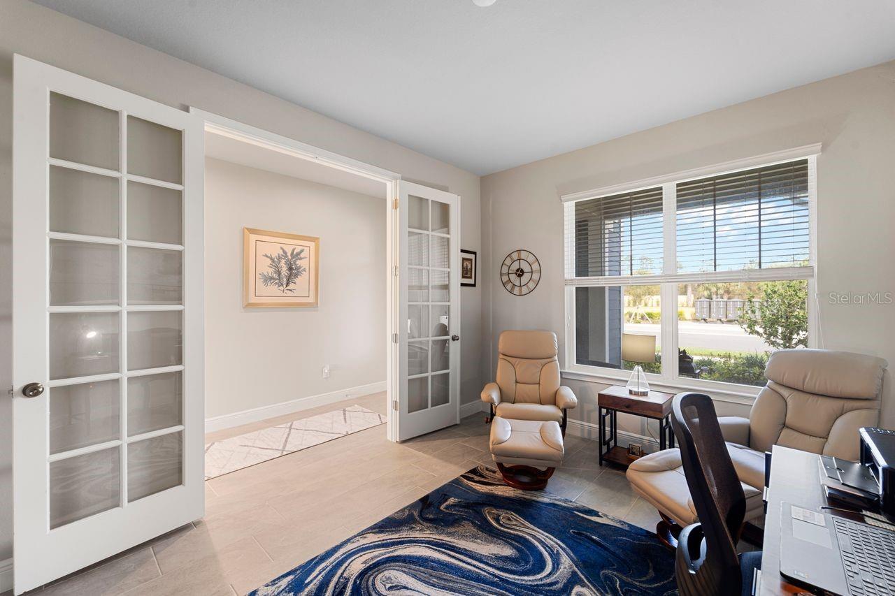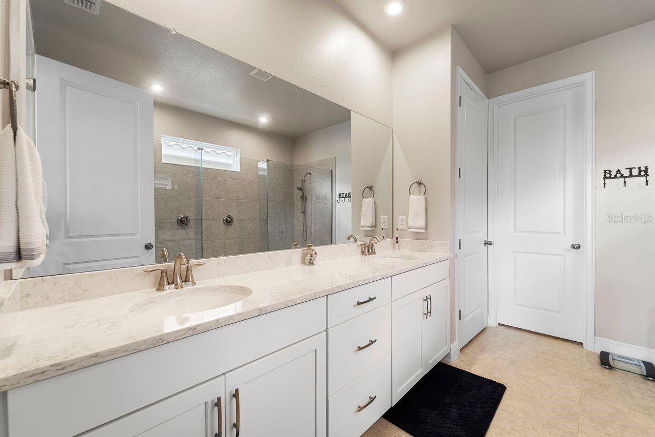 Don't miss this rare opportunity to own The Hampton II, one of the most popular models in Renaissance with breathtaking water view! This stunning 2,315 sq. ft. home with a Coastal elevation offers an expansive floor plan featuring 3 Bedrooms, 2 Bathrooms, a laundry room with custom cabinetry, a walk-in pantry, plus a flex room. The chef-inspired kitchen showcases quartz countertops, stainless steel appliances with a double oven, a large center island simply perfect for entertaining or enjoying quality time with loved ones. The spacious great room and dining area, with a beautiful tray ceiling, enhance the sense of luxury living. Double 12' lanai doors invite an abundance of natural light into the home with a large covered lanai offering breathtaking water views. . The luxurious owner’s suite offers a private retreat with a large en-suite bathroom and one of the most impressive walk-in showers you’ll find, plus a dream closet designed by Closets by Design. Additional upgrades include remote Kevlar Hurricane Shutters in the lanai and accordion shutters in the side windows for peace of mind, and a whole-house water softener for refreshing smooth skin. The spacious two-car garage is finished with epoxy flooring. Renaissance is a gated community offering resort-style amenities such as a resort pool, pickleball, tennis, a fitness center, bocce, and an activities director with a full monthly calendar of events. Located just minutes from Downtown Wellen Park, a rapidly growing master-planned community, you’ll have access to boutique shops, entertainment, restaurants, an 82-acre lake with kayak rentals, a beautiful fishing pier, and more. It’s also home to the Atlanta Braves spring training facility. Don’t miss out—schedule a tour today!