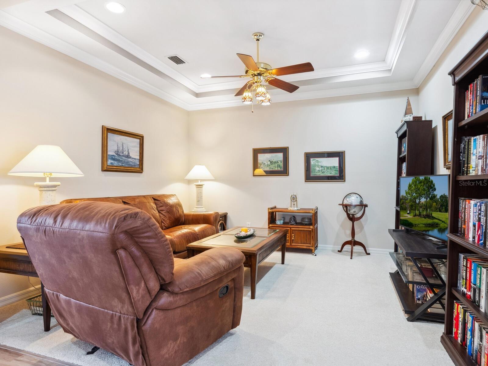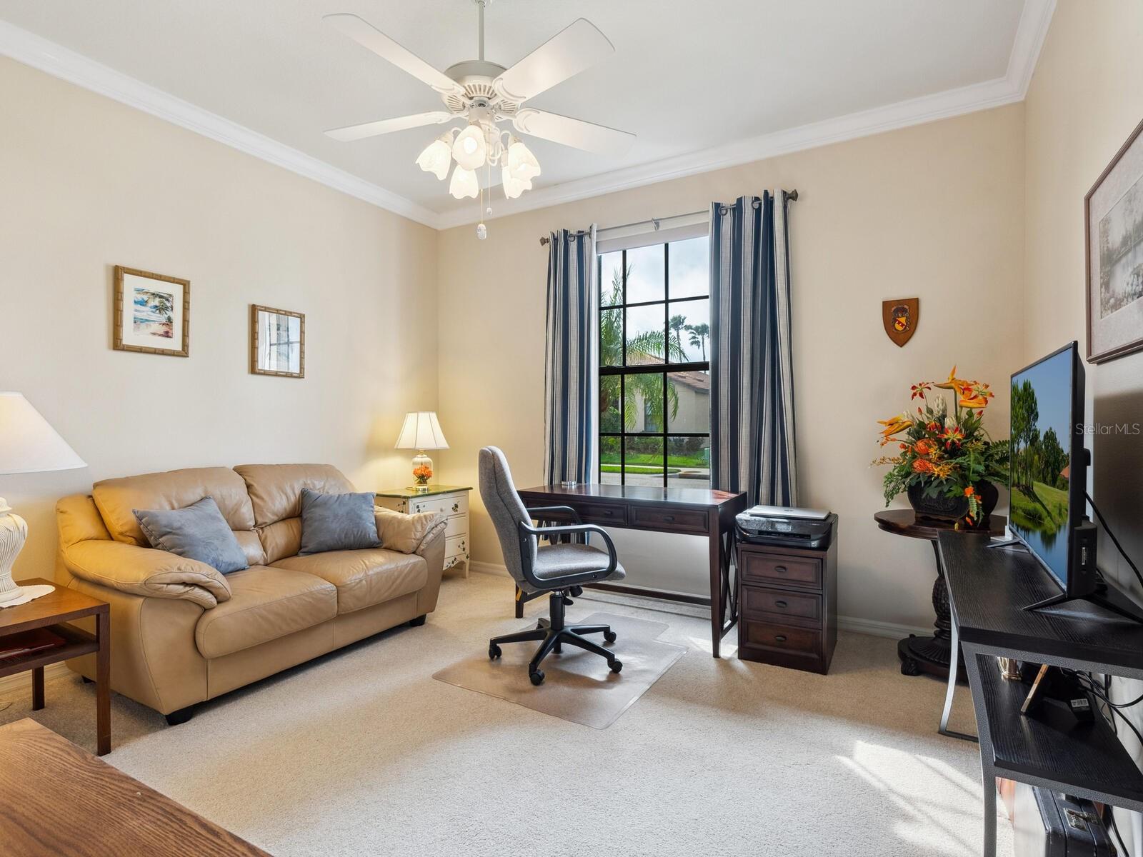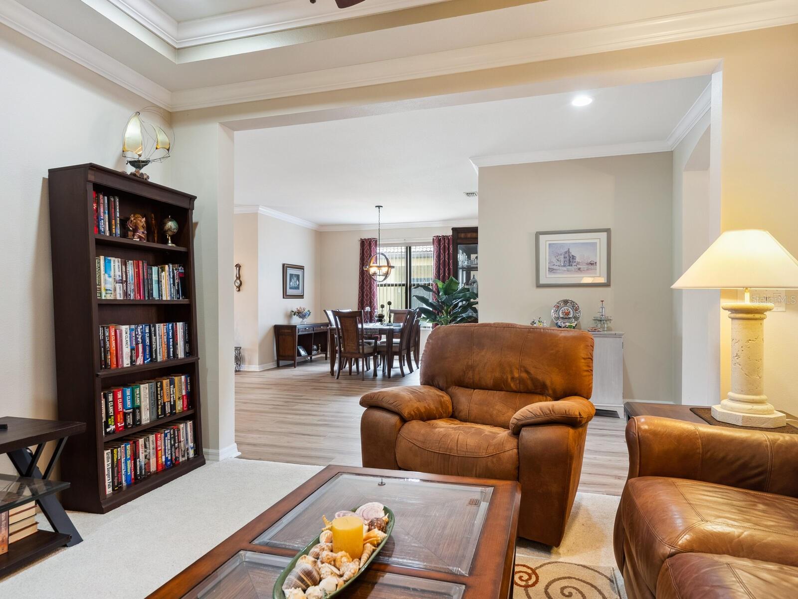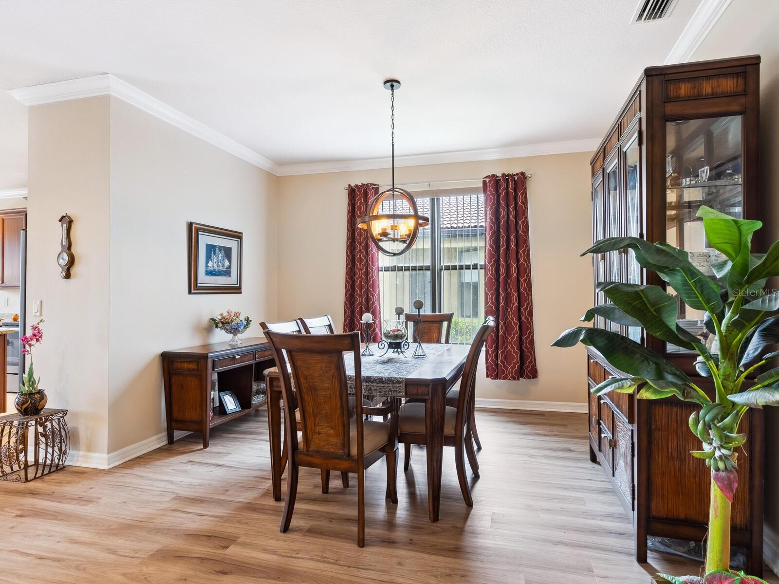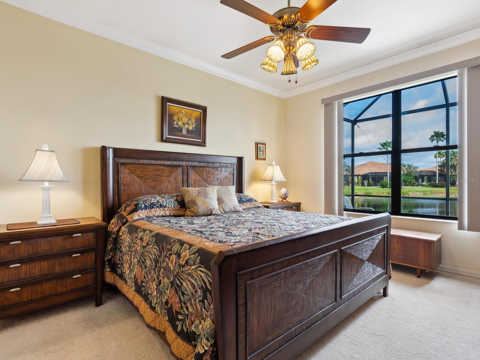 Experience lake views and hassle-free living in this beautifully updated paired-villa in the premier 55+ community of Venetian Falls. Conveniently located just minutes from sunny beaches, shopping, dining, and Venice's historic district, this home offers an unmatched lifestyle. This highly sought-after Giovanni floor plan boasts numerous upgrades, including convenient accordion storm shutters all around, whole-house surge protection, tray ceilings, and high-quality crown molding. Step through the screened front entry into a wide foyer illuminated by sidelights and an overhead transom window. The kitchen features granite countertops, solid wood cabinets with trim, stainless steel appliances, and a walk-in pantry offering ample storage space for staples, appliances, and platters. A bright dinette surrounded by three windows makes the most of the wonderful views. The primary suite, located at the rear of the home for added privacy, includes two customized closets (one a large walk-in) and a spacious bathroom with dual vanities, a private water closet, a linen closet, and a walk-in shower. At the front of the home, two guest bedrooms and bathroom offer a private retreat for visitors. Enjoy the outdoors on the lanai, just perfect for grilling, dining, and lounging while soaking in lake views and observing local birdlife. Additional conveniences include a well-appointed laundry room with storage cabinets and a utility sink, and a 2-car garage finished off with a durable and easy-to-clean, polyaspartic floor coating. Venetian Falls offers exceptional community amenities, including a resort-style clubhouse with a heated lap pool and spa, resistance-walking pool, state-of-the-art fitness center, billiards room, bocce courts, full-time activity director, and on-site management. The reasonable HOA fee includes lawn maintenance, irrigation, roof pressure washing, exterior paint, basic cable, and internet, with no CDD fee. Don’t miss the chance to make this remarkable home your own! Some furniture for sale under separate contract.