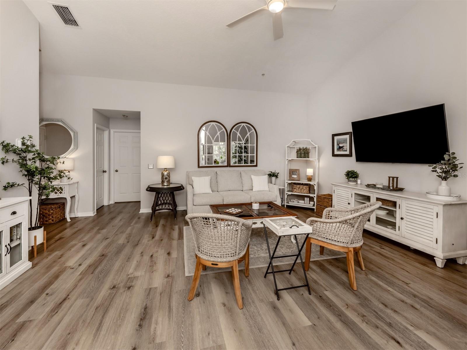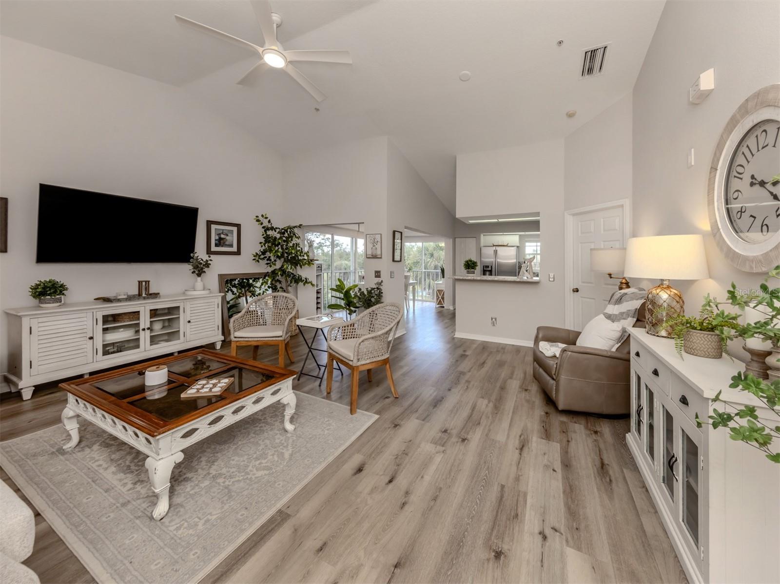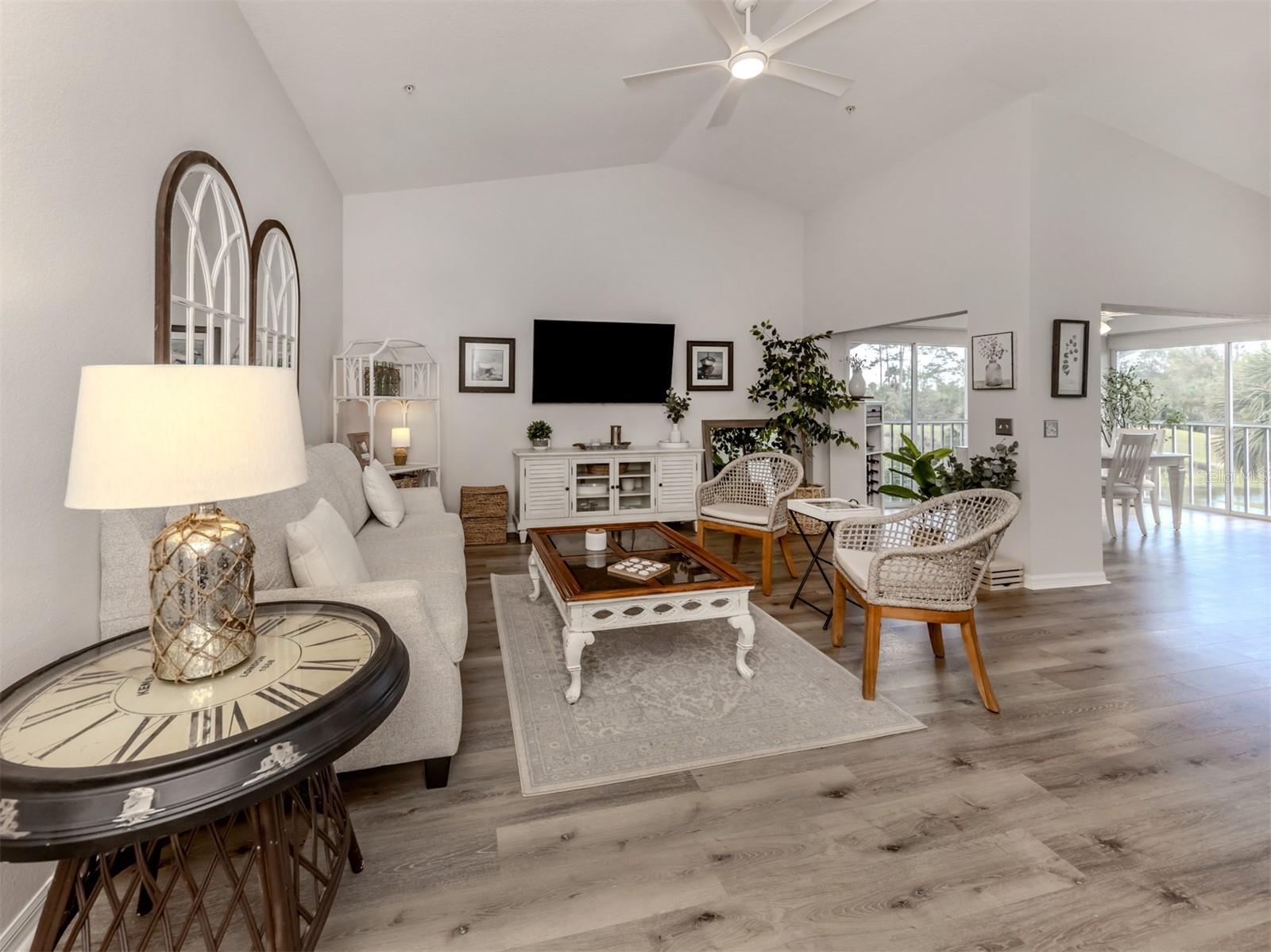 Priced to Sell!!!!! Motivated seller!!! Most furniture included, move in ready!! 2nd-Floor Condo with Stunning Golf Course Views in Plantation Golf & Country Club. This exquisite condo offers the perfect blend of style and functional living, featuring 2 spacious bedrooms and 2 bathrooms. The well-designed split-bedroom floor plan ensures privacy for every resident, creating individual retreats within the home. With soaring cathedral ceilings and luxury vinyl floors throughout and featuring thoughtful upgrades that create an open and inviting atmosphere. A full-size laundry room adds convenience, while the well-appointed kitchen, complete with a breakfast bar, is perfect for both cooking and entertaining. The Florida room, currently used as a dining area, is filled with natural light from sliding glass doors with attached privacy shades. This cozy space offers panoramic views of the picturesque 15th fairway on the renowned Bobcat course, making it the perfect spot to unwind. Embrace the vibrant community lifestyle with easy access to the nearby pool and clubhouse ideal for social gatherings with friends and neighbors. For those looking to elevate their lifestyle, optional membership to the private country club is available. Your dream home on the fairway is waiting, don’t miss out on this exceptional opportunity!