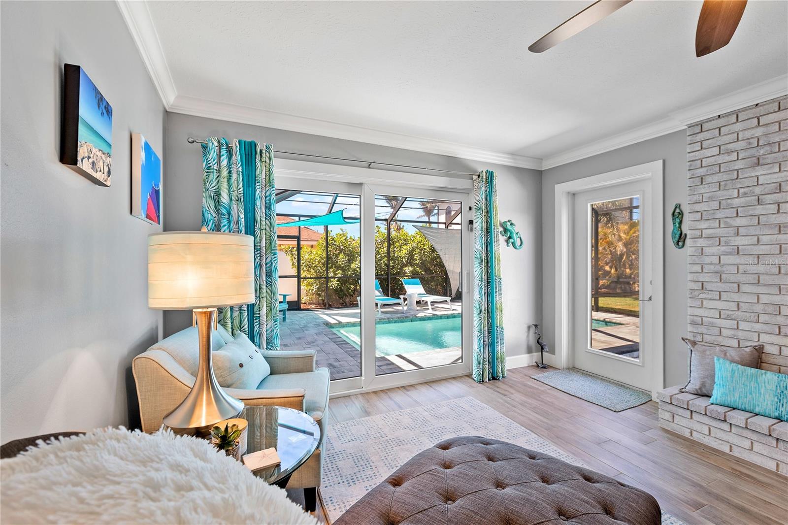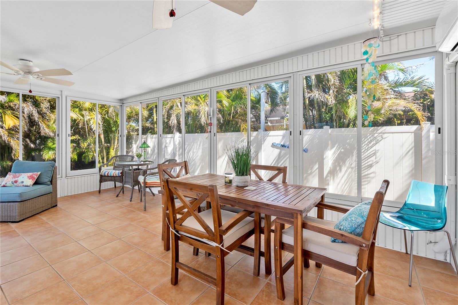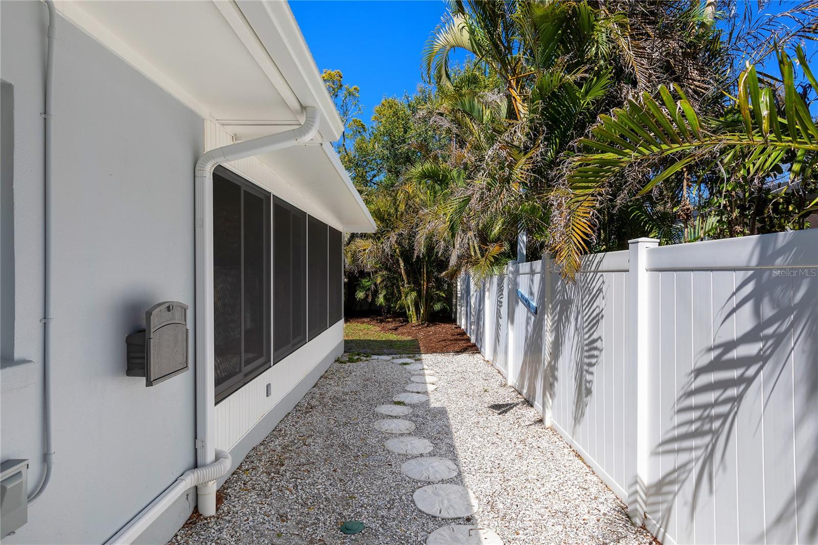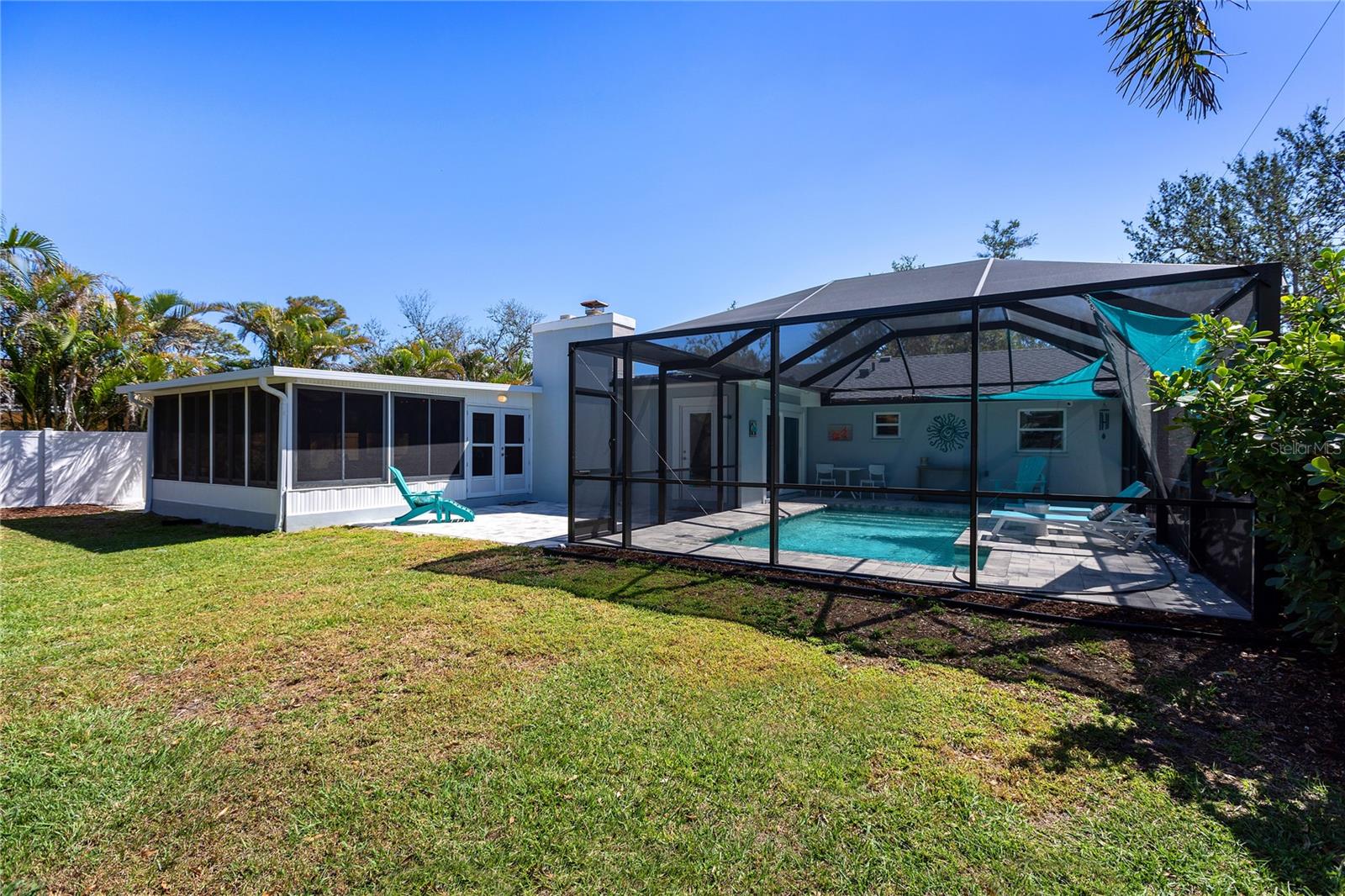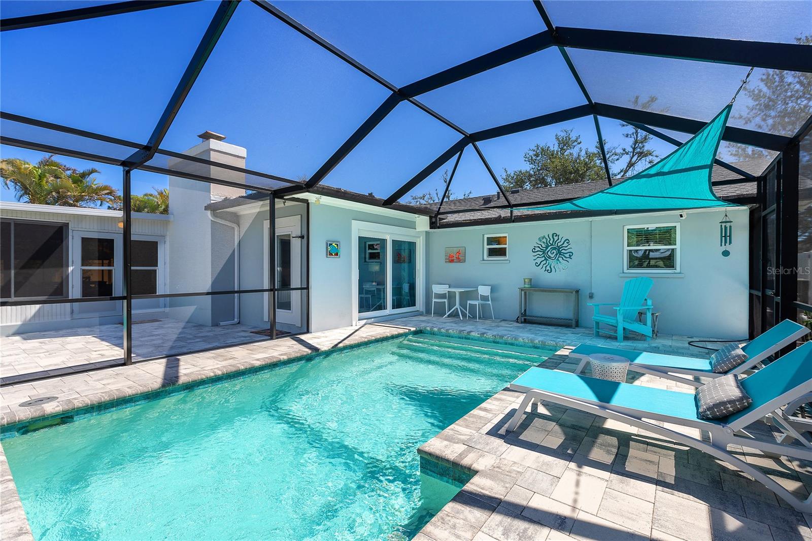 Welcome to 150 Fiesole, an impeccable, fully renovated and turnkey ready beach home located on the highly sought-after Venice Island. This fully furnished three-bedroom, two-bathroom residence features a completely redesigned floor plan that seamlessly blends functionality and comfort. Recent structural upgrades include hurricane impact windows and doors installed in 2018, a brand-new Timberline GAF roof completed in 2025, and re-plumbed PEX hot and cold-water lines for long-term durability and peace of mind. Additionally, the cast iron sewer line has been replaced with PVC for enhanced reliability. Upon entering, you’ll be welcomed by a beautifully remodeled kitchen, featuring solid wood cabinetry with custom built-ins, soft-close drawers, elegant granite countertops, stainless steel appliances, and a gas range—ideal for the culinary enthusiast. The home’s contemporary design continues throughout, highlighted by porcelain wood-look plank-style tile flooring, custom crown molding, and a stylish built-in dry bar. Plenty of custom closet storage offers a neat, organized living space, while the Florida sunroom extends the living area, providing an ideal spot for relaxation or entertaining while enjoying the peaceful surroundings. Programmable, remote thermostat to manage your heating and cooling cost from any location. Step outside into your private oasis: a meticulously landscaped, fenced backyard with a new saltwater swimming pool, installed in 2022, complete with a protective screen enclosure. After a day at the beach, unwind in the luxury of the outdoor shower. An oversized one-car garage is equipped with a hurricane-rated door, installed in 2012, adding an extra layer of security. Located in the desirable Flood Zone X. This exceptional beach retreat combines timeless charm, modern upgrades, and the perfect location for those seeking a serene escape on Venice Island. Don’t miss the opportunity to make this remarkable home yours.