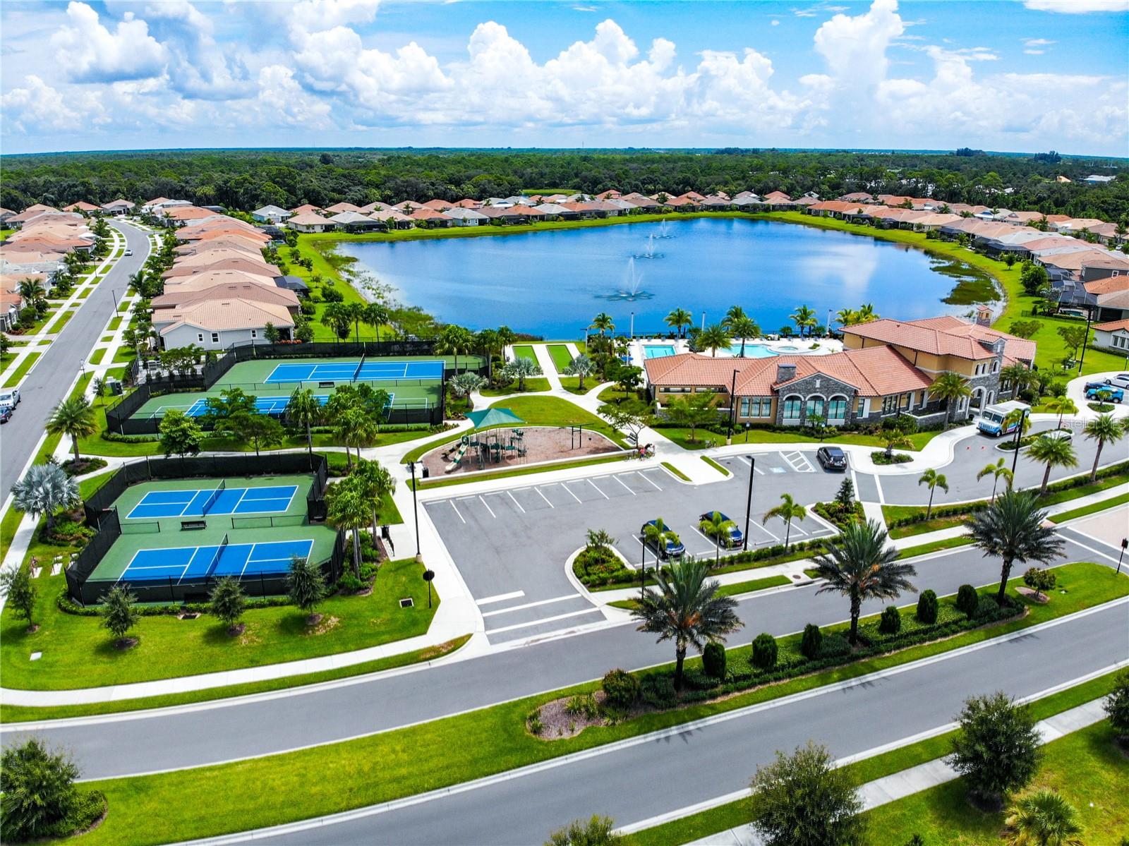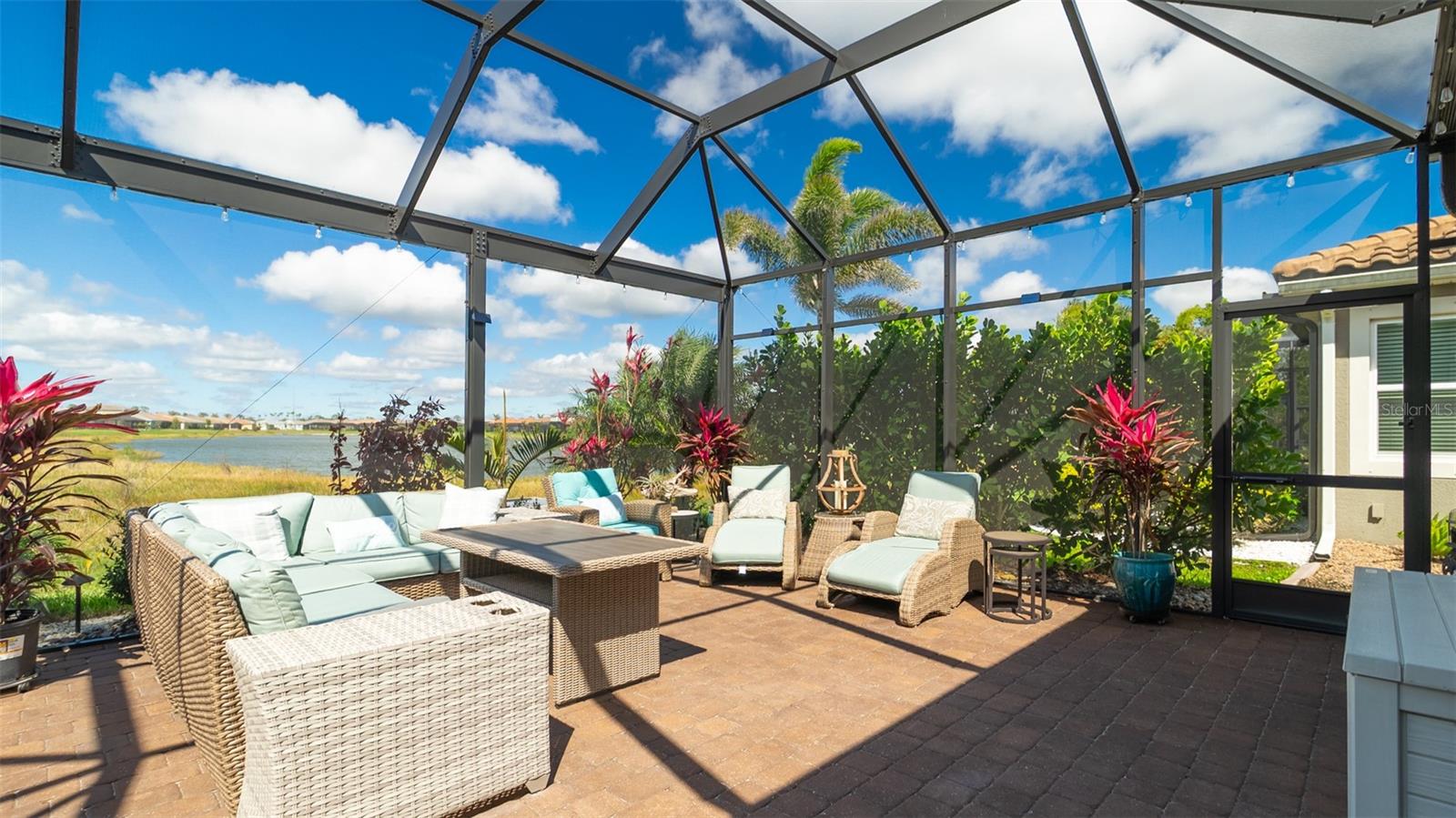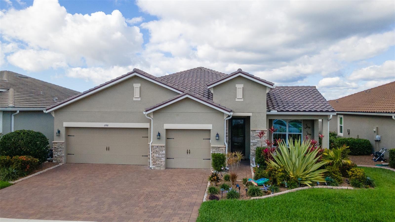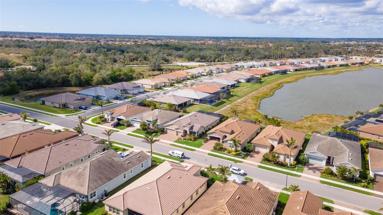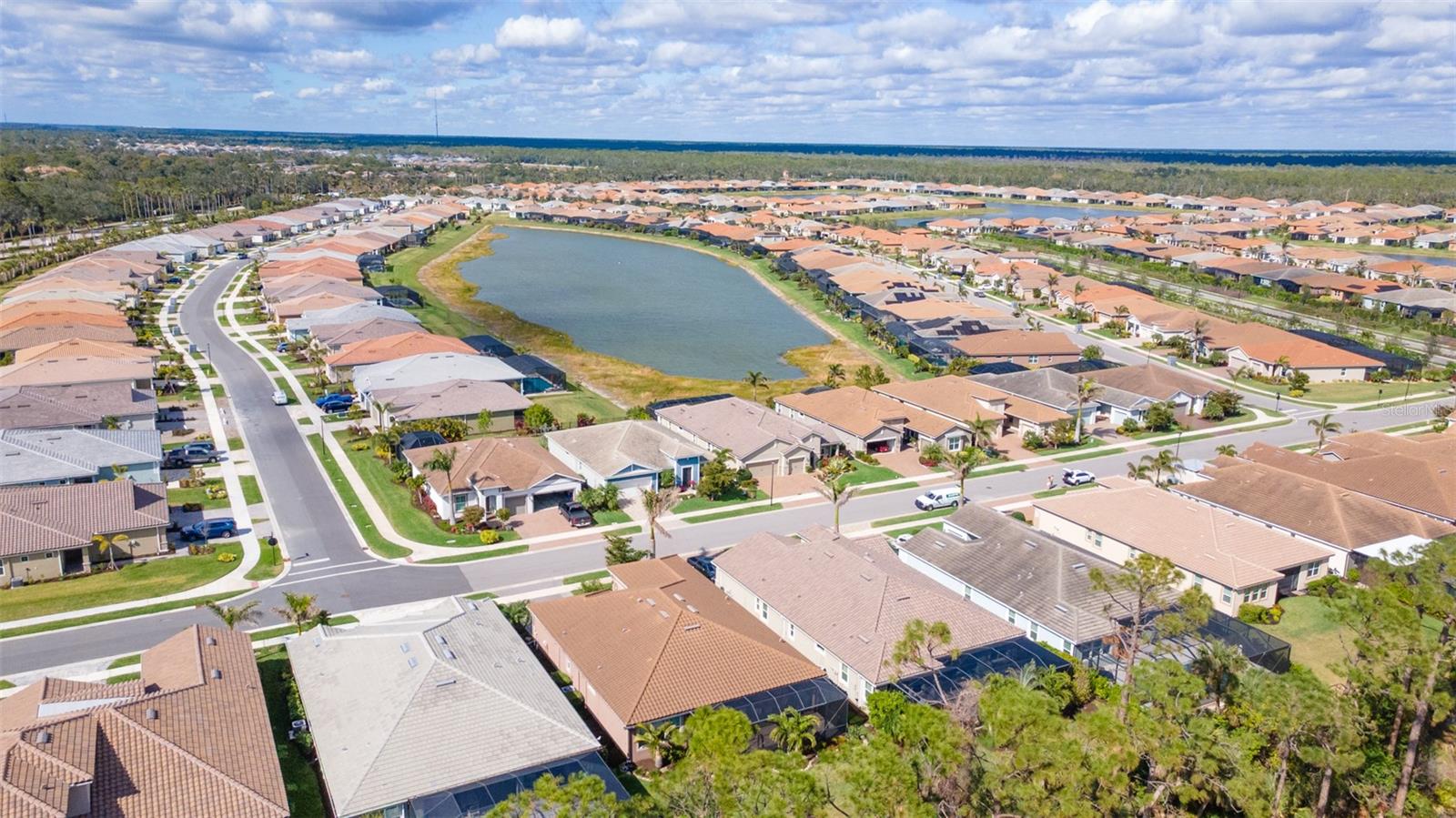 Welcome to your dream home in the Renaissance subdivision of Wellen Park! This stunning 4-bedroom, 3.5-bath masterpiece is the largest model offered in the community, boasting high-end updates and a spacious layout perfect for a large family. Nestled along a serene lake view, this residence combines luxury and comfort with breathtaking scenery. Step inside and be greeted by an abundance of natural light pouring through skylights in the main living area, creating a bright and inviting atmosphere. The gourmet kitchen flows seamlessly into the dining room, where you'll find a stylish built-in bar and storage area—ideal for entertaining guests or enjoying family dinners. The office, featuring elegant glass French doors, offers a perfect space for work or study. Outside, the expansive lanai is an entertainer’s paradise, complete with a sink and refrigerator for effortless outdoor living. Overlooking the tranquil lake, this space is perfect for relaxing or hosting gatherings. Car enthusiasts and storage seekers will appreciate the generous 3-car garage, providing ample room for vehicles, toys, or a workshop. Located in vibrant Wellen Park, you’ll enjoy access to new restaurants, shopping, lively bars, and the Atlanta Braves spring training facility—all just moments away. With generous living spaces, premium finishes, and thoughtful design throughout, this home is a rare find. Whether you're unwinding in one of the expansive bedrooms, sipping a drink on the lanai with lakefront views, or exploring the exciting amenities of Wellen Park, every detail has been crafted for modern family living at its finest. Don’t miss your chance to own this exceptional property in the Renaissance community!