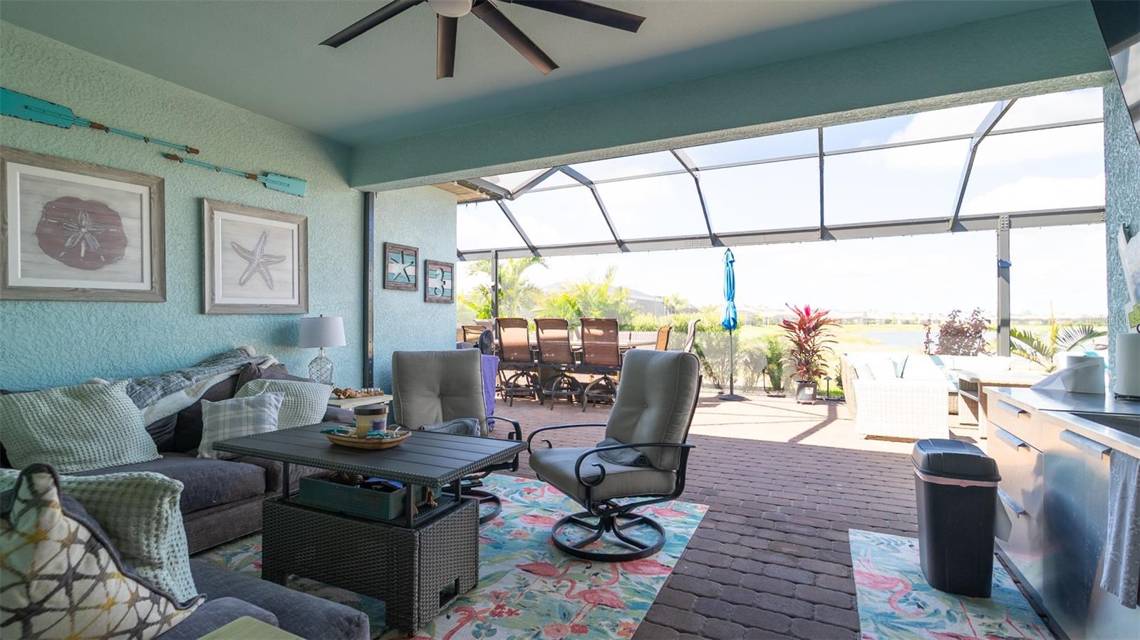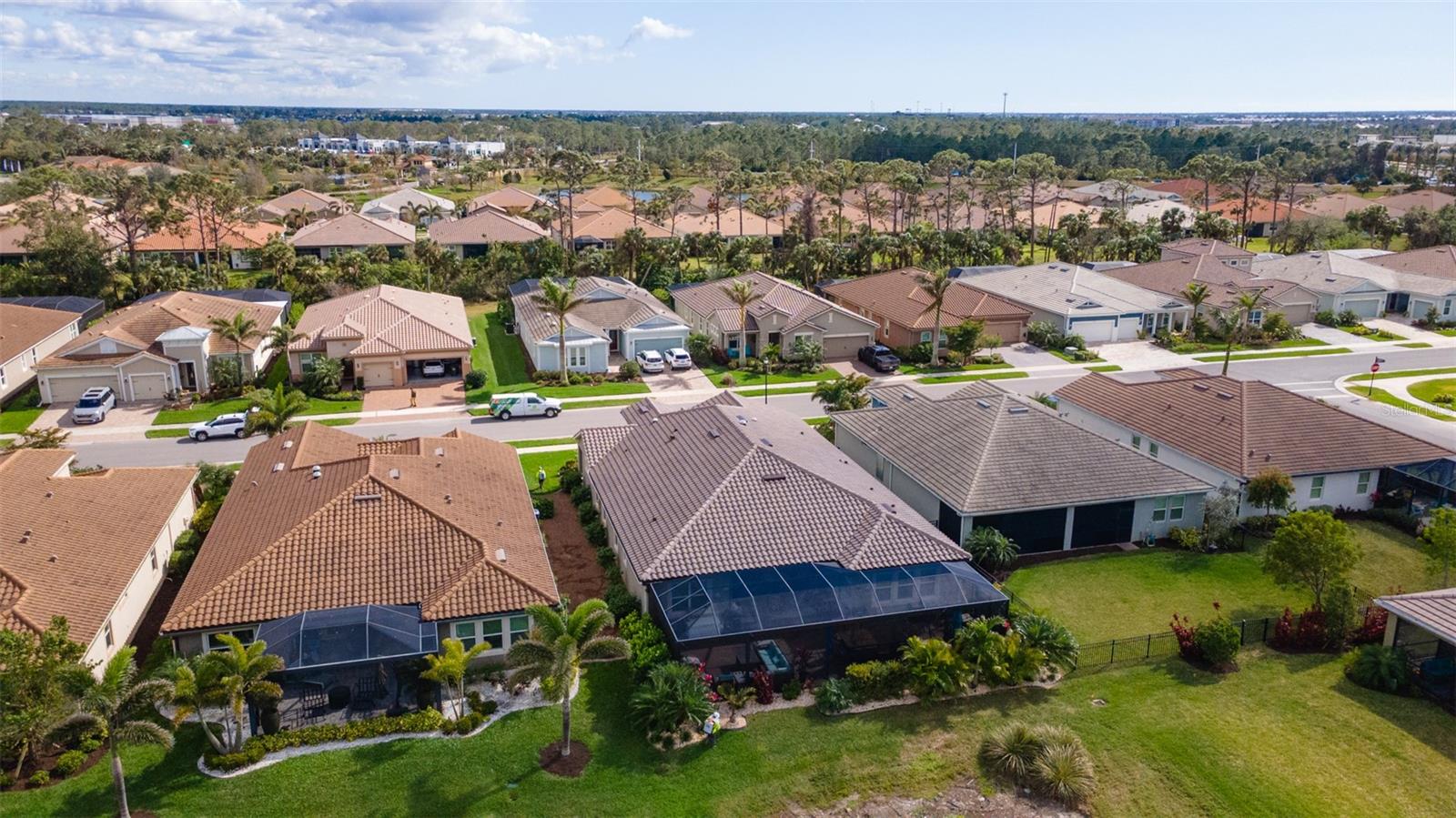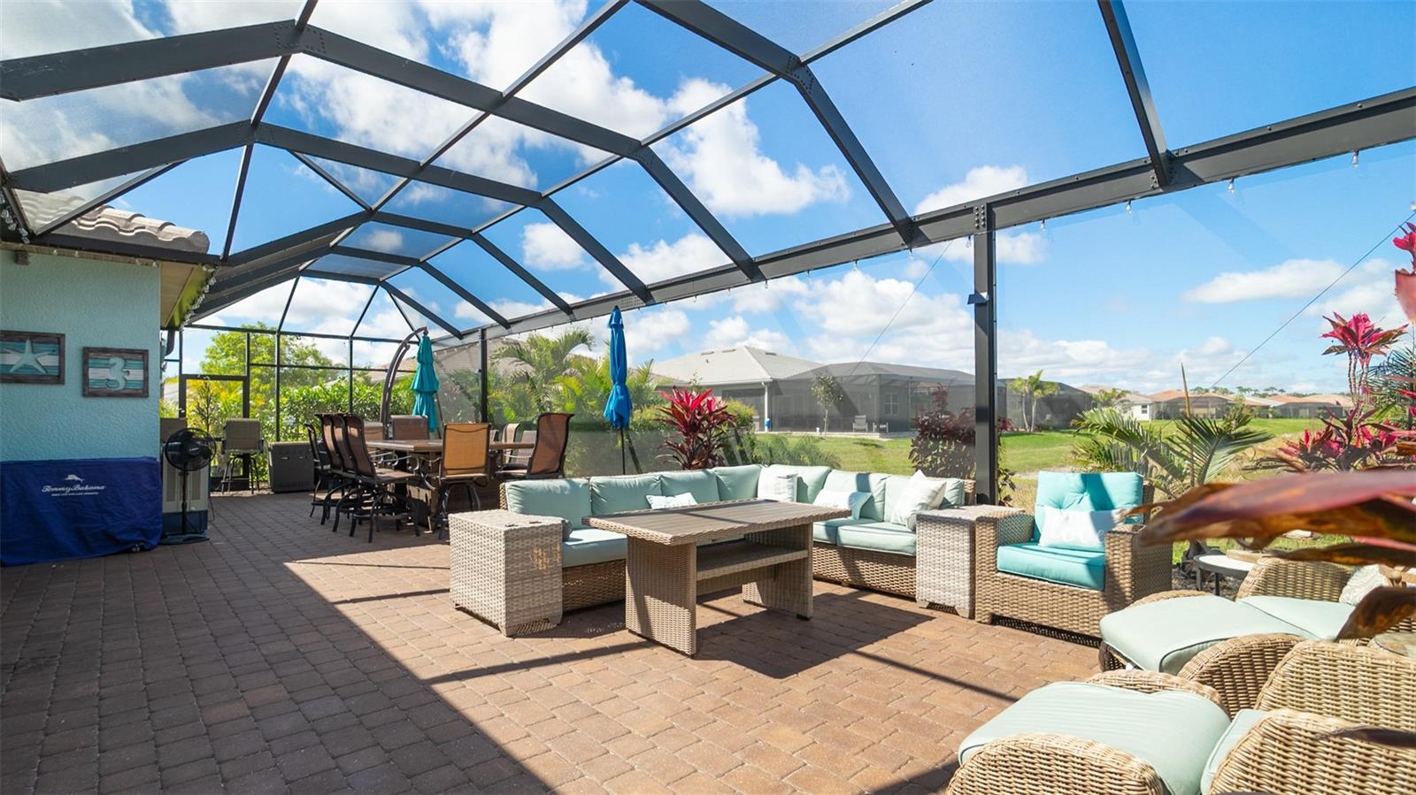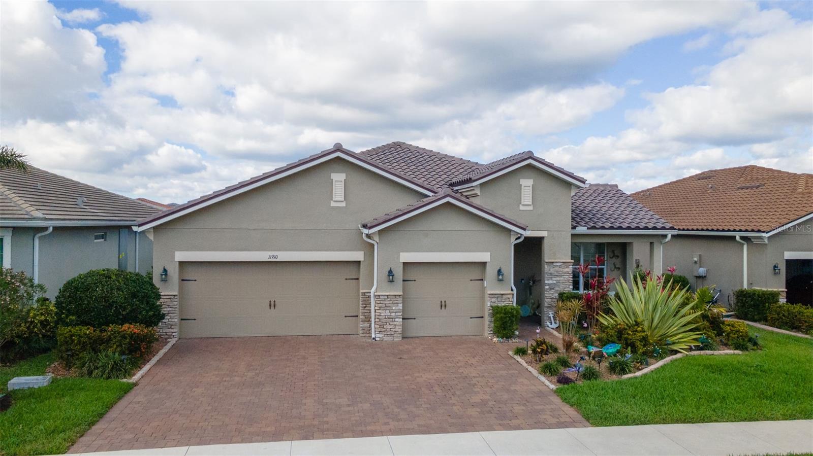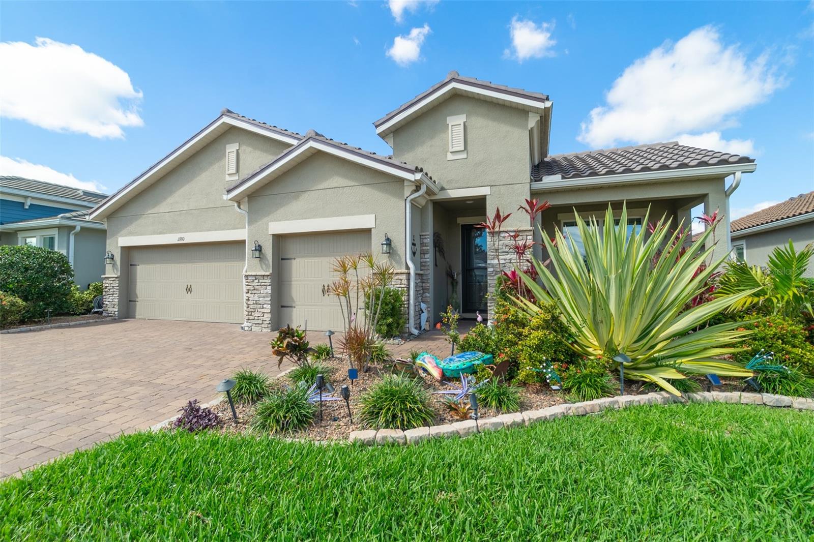Welcome to your dream home in the Renaissance subdivision of Wellen Park! This stunning 4-bedroom, 3.5-bath masterpiece is the largest model offered in the community, boasting high-end updates and a spacious layout perfect for a large family. Nestled along a serene lake view, this residence combines luxury and comfort with breathtaking scenery. Step inside and be greeted by an abundance of natural light pouring through skylights in the main living area, creating a bright and inviting atmosphere. The gourmet kitchen flows seamlessly into the dining room, where you'll find a stylish built-in bar and storage area—ideal for entertaining guests or enjoying family dinners. The office, featuring elegant glass French doors, offers a perfect space for work or study. Outside, the expansive lanai is an entertainer’s paradise, complete with a sink and refrigerator for effortless outdoor living. Overlooking the tranquil lake, this space is perfect for relaxing or hosting gatherings. Car enthusiasts and storage seekers will appreciate the generous 3-car garage, providing ample room for vehicles, toys, or a workshop. Located in vibrant Wellen Park, you’ll enjoy access to new restaurants, shopping, lively bars, and the Atlanta Braves spring training facility—all just moments away. With generous living spaces, premium finishes, and thoughtful design throughout, this home is a rare find. Whether you're unwinding in one of the expansive bedrooms, sipping a drink on the lanai with lakefront views, or exploring the exciting amenities of Wellen Park, every detail has been crafted for modern family living at its finest. Don’t miss your chance to own this exceptional property in the Renaissance community!