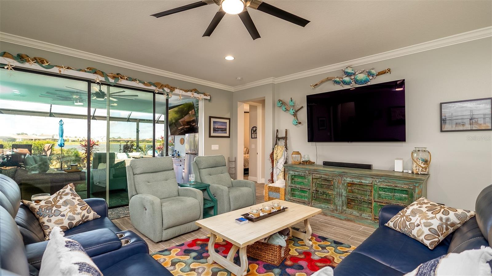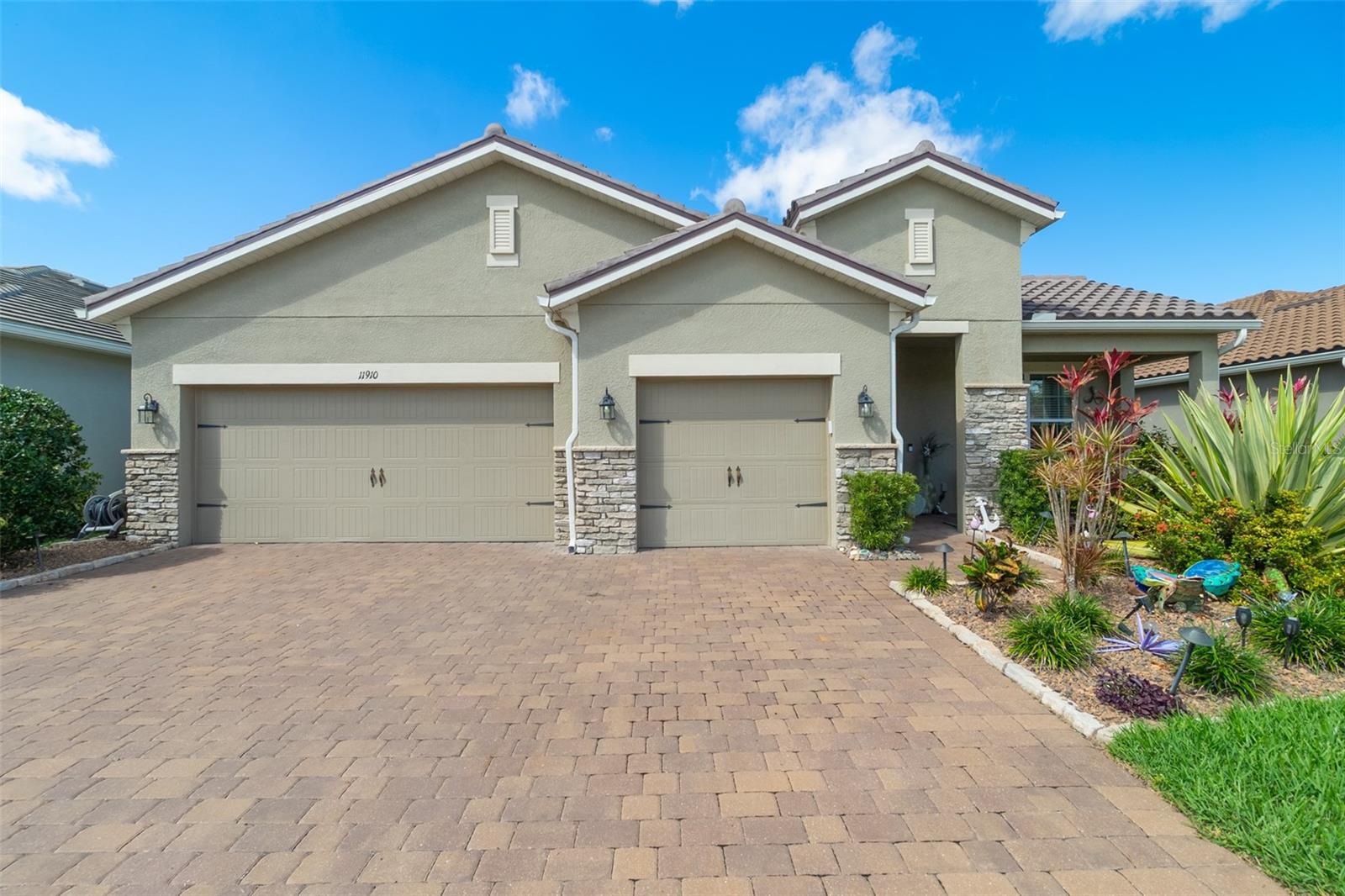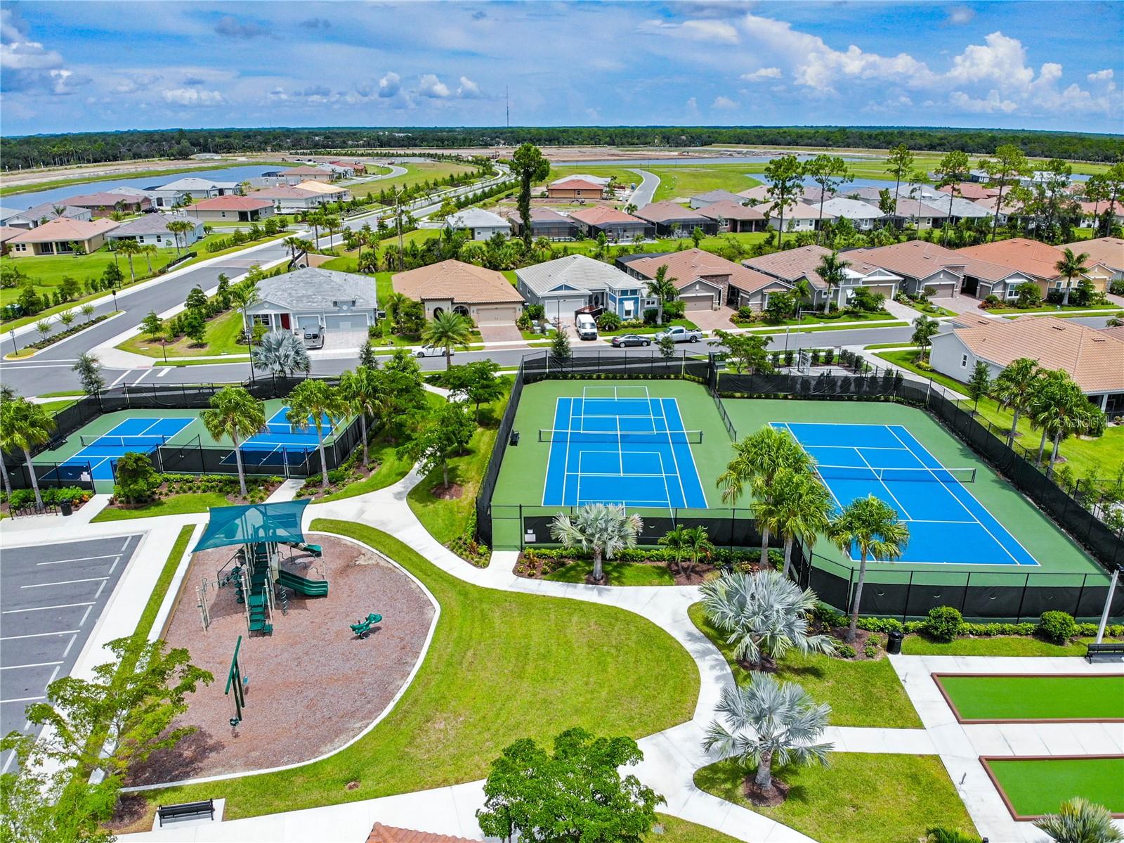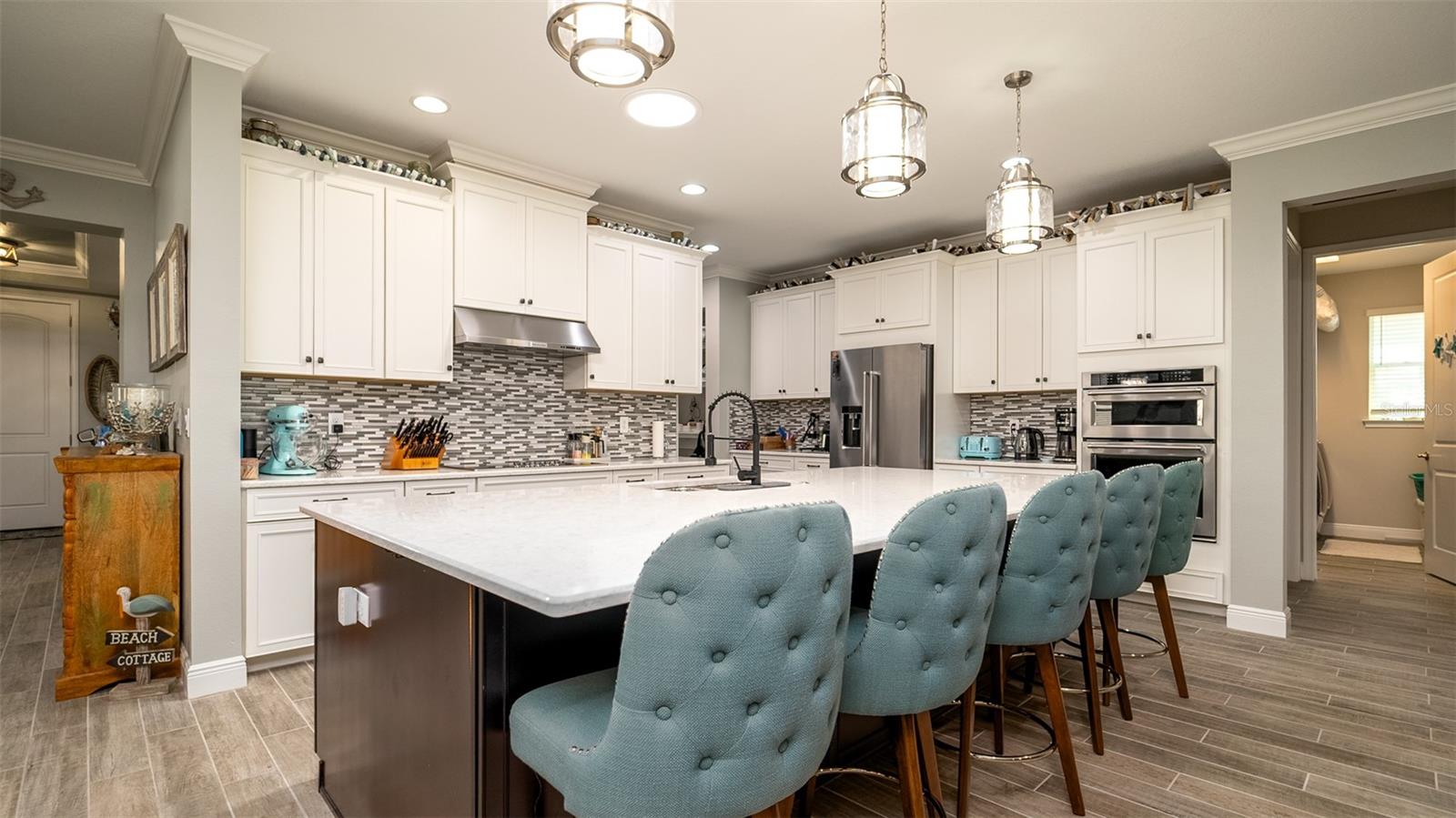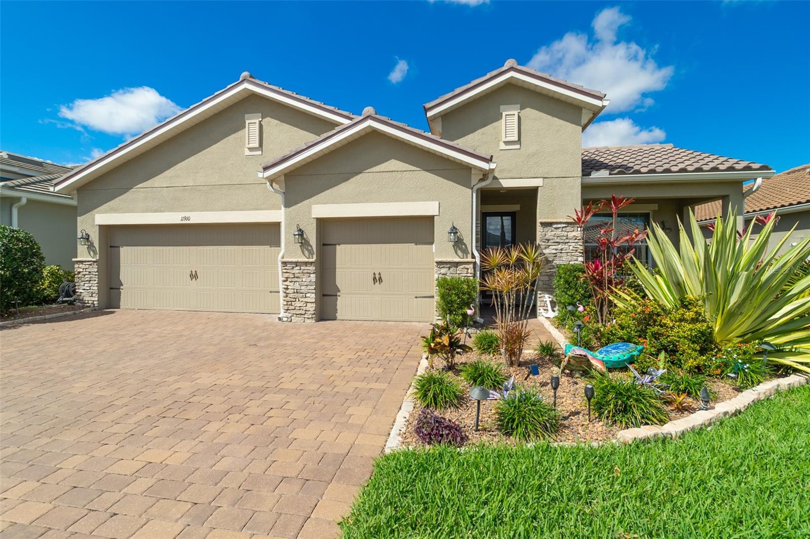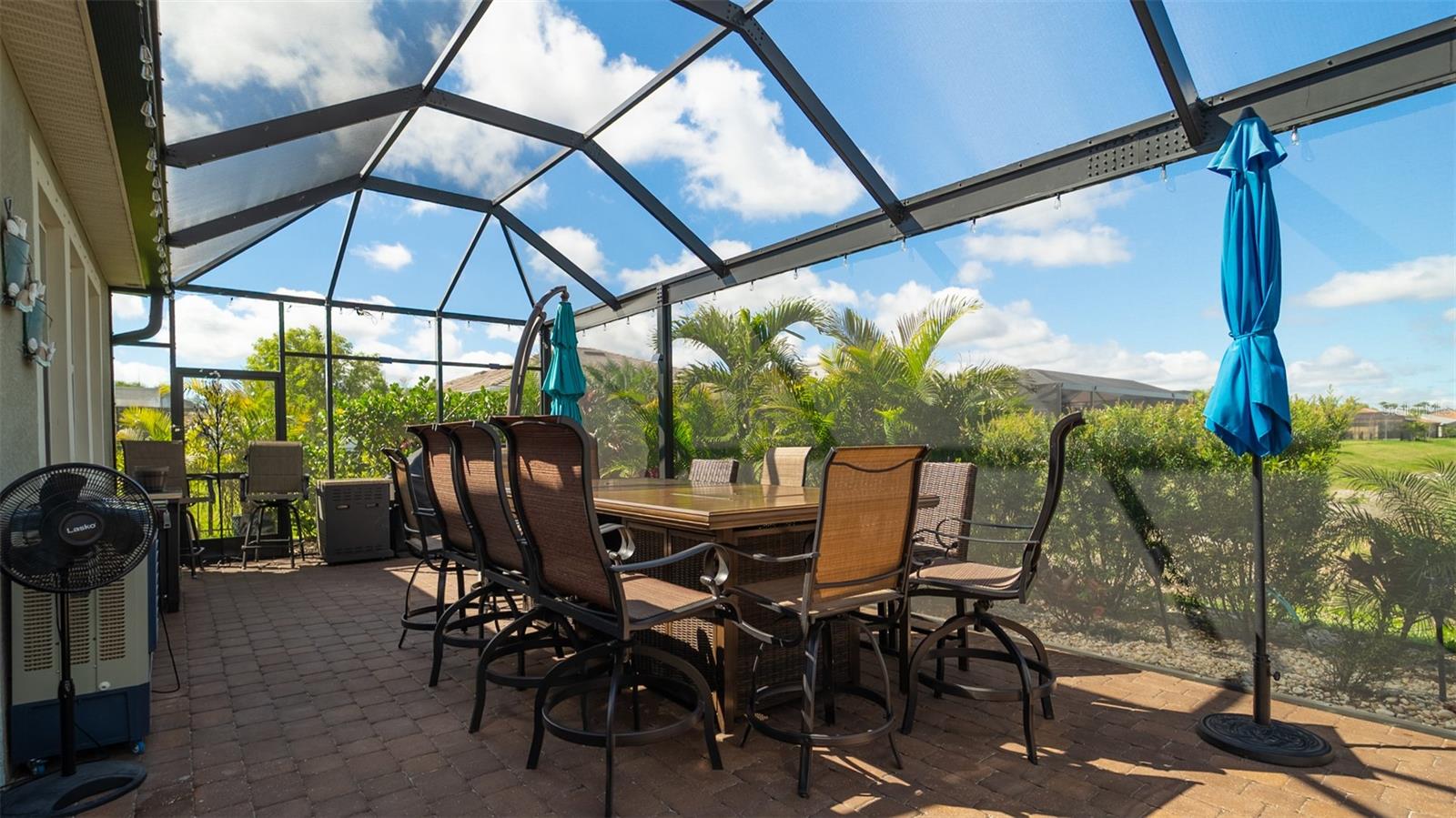 Welcome to your dream home in the Renaissance subdivision of Wellen Park! This stunning 4-bedroom, 3.5-bath masterpiece is the largest model offered in the community, boasting high-end updates and a spacious layout perfect for a large family. Nestled along a serene lake view, this residence combines luxury and comfort with breathtaking scenery. Step inside and be greeted by an abundance of natural light pouring through skylights in the main living area, creating a bright and inviting atmosphere. The gourmet kitchen flows seamlessly into the dining room, where you'll find a stylish built-in bar and storage area—ideal for entertaining guests or enjoying family dinners. The office, featuring elegant glass French doors, offers a perfect space for work or study. Outside, the expansive lanai is an entertainer’s paradise, complete with a sink and refrigerator for effortless outdoor living. Overlooking the tranquil lake, this space is perfect for relaxing or hosting gatherings. Car enthusiasts and storage seekers will appreciate the generous 3-car garage, providing ample room for vehicles, toys, or a workshop. Located in vibrant Wellen Park, you’ll enjoy access to new restaurants, shopping, lively bars, and the Atlanta Braves spring training facility—all just moments away. With generous living spaces, premium finishes, and thoughtful design throughout, this home is a rare find. Whether you're unwinding in one of the expansive bedrooms, sipping a drink on the lanai with lakefront views, or exploring the exciting amenities of Wellen Park, every detail has been crafted for modern family living at its finest. Don’t miss your chance to own this exceptional property in the Renaissance community!
