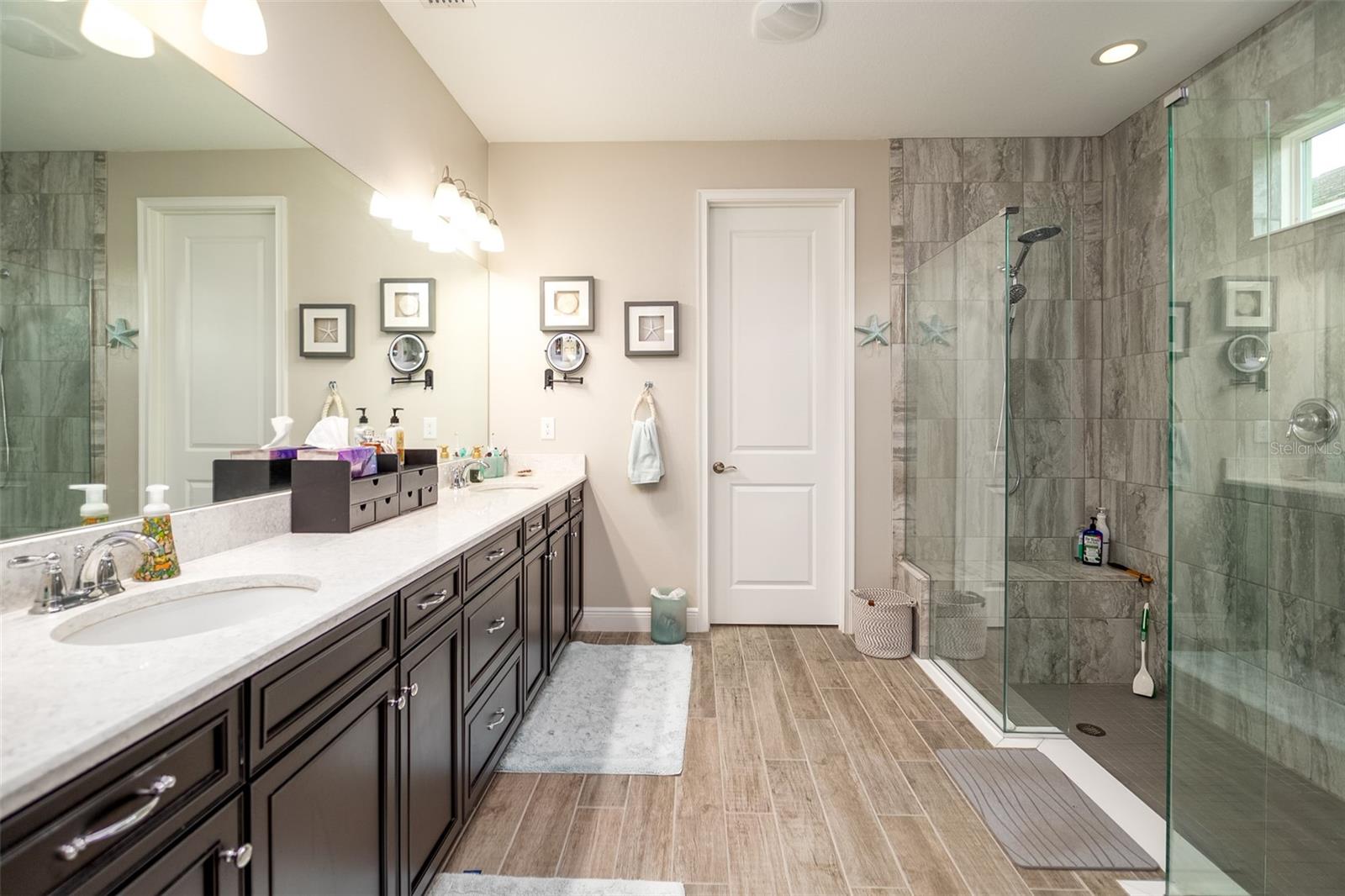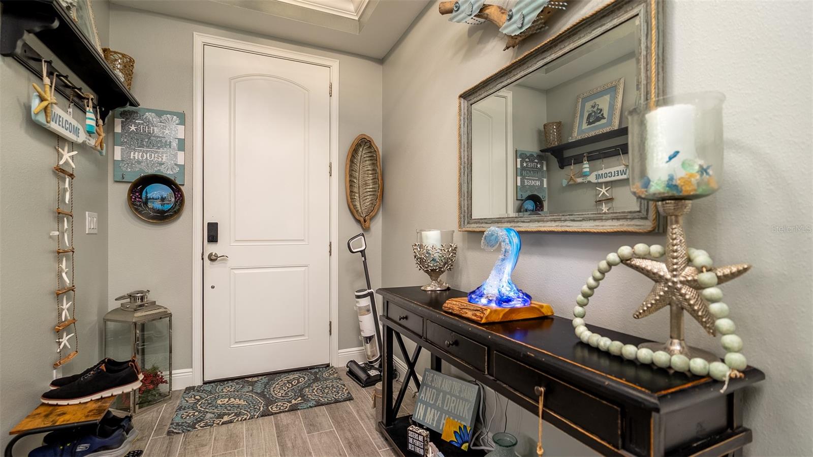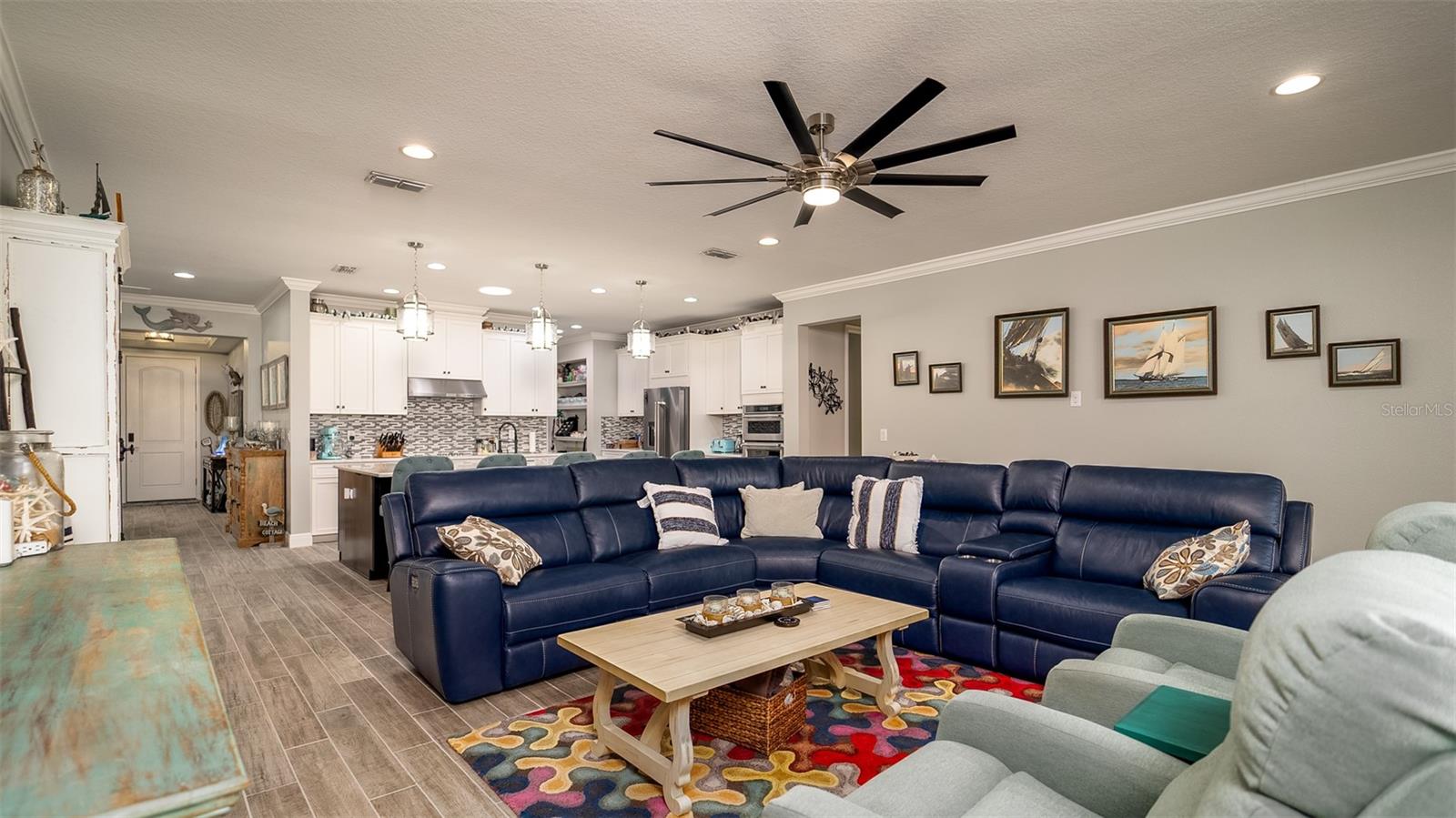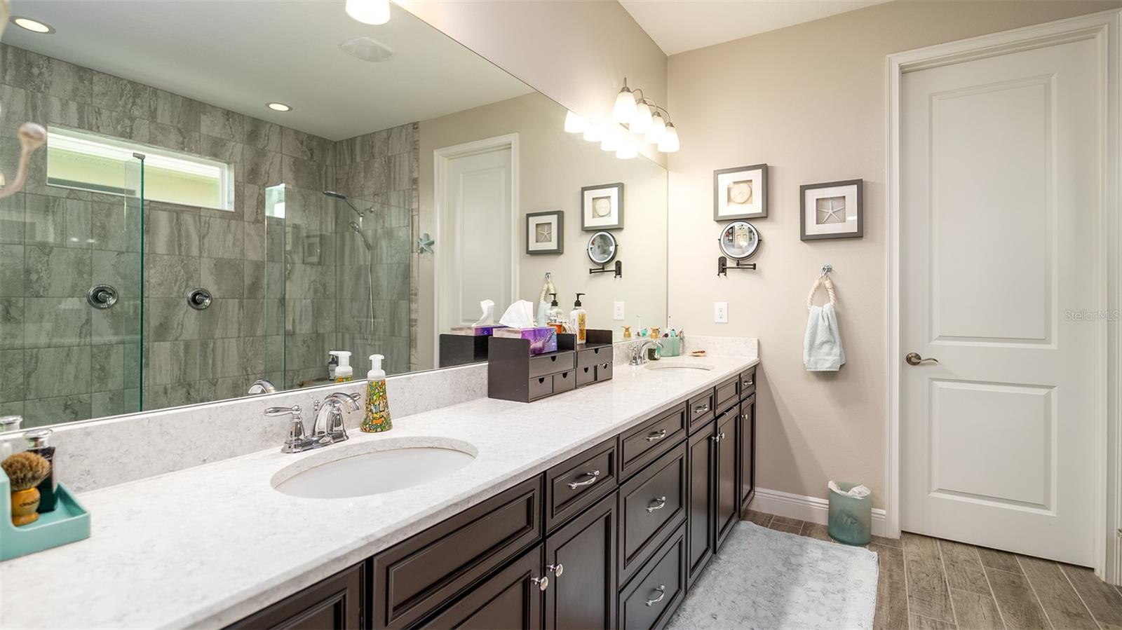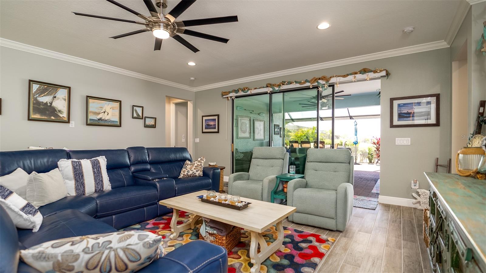 Welcome to your dream home in the Renaissance subdivision of Wellen Park! This stunning 4-bedroom, 3.5-bath masterpiece is the largest model offered in the community, boasting high-end updates and a spacious layout perfect for a large family. Nestled along a serene lake view, this residence combines luxury and comfort with breathtaking scenery. Step inside and be greeted by an abundance of natural light pouring through skylights in the main living area, creating a bright and inviting atmosphere. The gourmet kitchen flows seamlessly into the dining room, where you'll find a stylish built-in bar and storage area—ideal for entertaining guests or enjoying family dinners. The office, featuring elegant glass French doors, offers a perfect space for work or study. Outside, the expansive lanai is an entertainer’s paradise, complete with a sink and refrigerator for effortless outdoor living. Overlooking the tranquil lake, this space is perfect for relaxing or hosting gatherings. Car enthusiasts and storage seekers will appreciate the generous 3-car garage, providing ample room for vehicles, toys, or a workshop. Located in vibrant Wellen Park, you’ll enjoy access to new restaurants, shopping, lively bars, and the Atlanta Braves spring training facility—all just moments away. With generous living spaces, premium finishes, and thoughtful design throughout, this home is a rare find. Whether you're unwinding in one of the expansive bedrooms, sipping a drink on the lanai with lakefront views, or exploring the exciting amenities of Wellen Park, every detail has been crafted for modern family living at its finest. Don’t miss your chance to own this exceptional property in the Renaissance community!