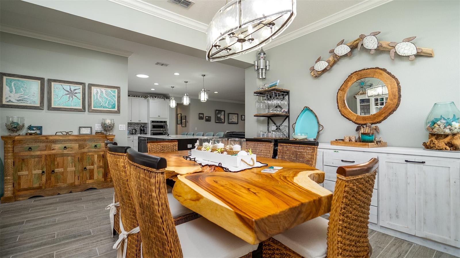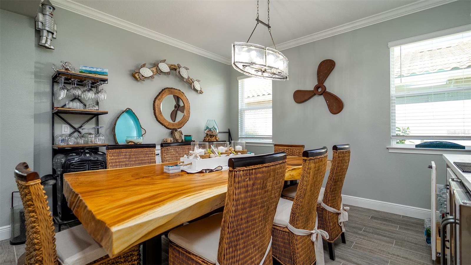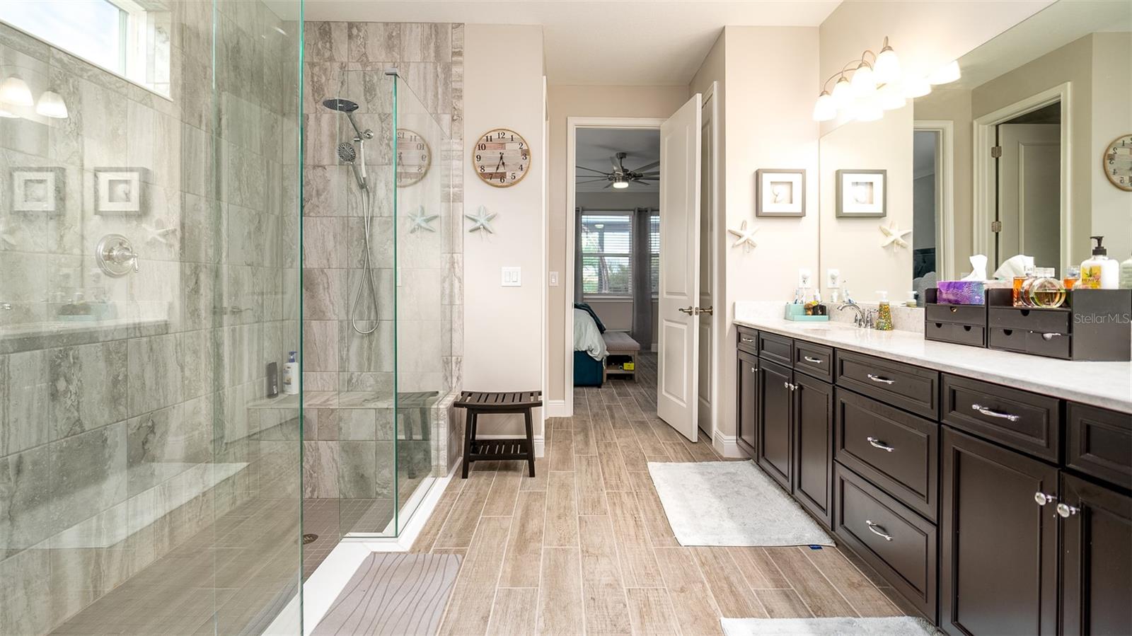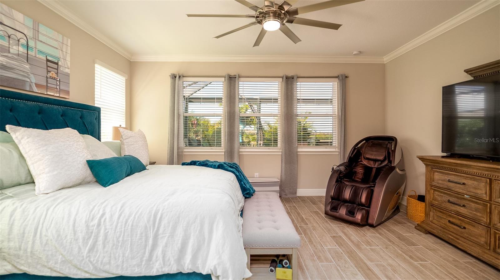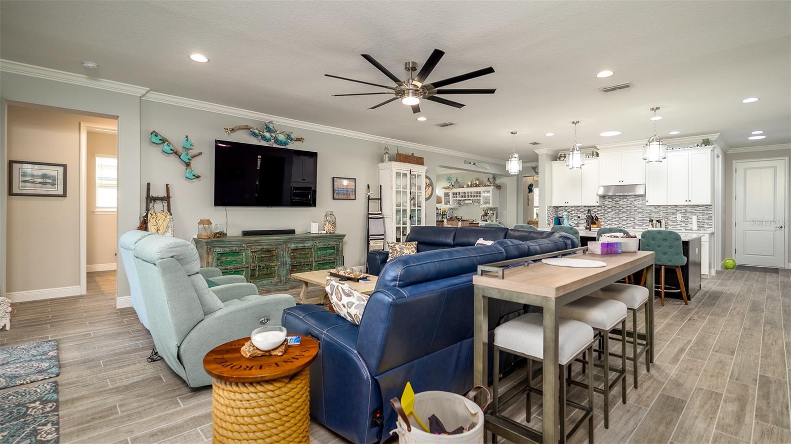 Welcome to your dream home in the Renaissance subdivision of Wellen Park! This stunning 4-bedroom, 3.5-bath masterpiece is the largest model offered in the community, boasting high-end updates and a spacious layout perfect for a large family. Nestled along a serene lake view, this residence combines luxury and comfort with breathtaking scenery. Step inside and be greeted by an abundance of natural light pouring through skylights in the main living area, creating a bright and inviting atmosphere. The gourmet kitchen flows seamlessly into the dining room, where you'll find a stylish built-in bar and storage area—ideal for entertaining guests or enjoying family dinners. The office, featuring elegant glass French doors, offers a perfect space for work or study. Outside, the expansive lanai is an entertainer’s paradise, complete with a sink and refrigerator for effortless outdoor living. Overlooking the tranquil lake, this space is perfect for relaxing or hosting gatherings. Car enthusiasts and storage seekers will appreciate the generous 3-car garage, providing ample room for vehicles, toys, or a workshop. Located in vibrant Wellen Park, you’ll enjoy access to new restaurants, shopping, lively bars, and the Atlanta Braves spring training facility—all just moments away. With generous living spaces, premium finishes, and thoughtful design throughout, this home is a rare find. Whether you're unwinding in one of the expansive bedrooms, sipping a drink on the lanai with lakefront views, or exploring the exciting amenities of Wellen Park, every detail has been crafted for modern family living at its finest. Don’t miss your chance to own this exceptional property in the Renaissance community!