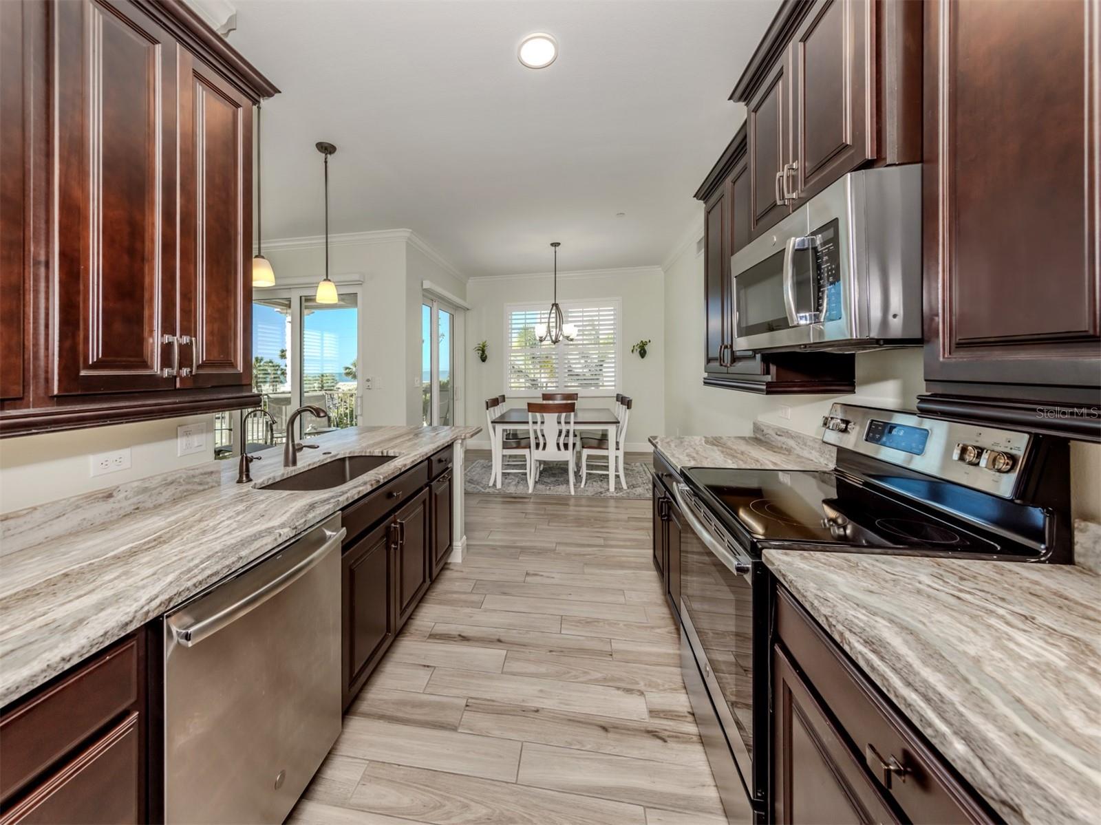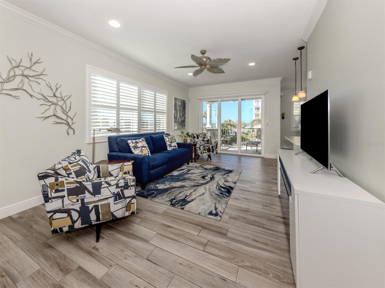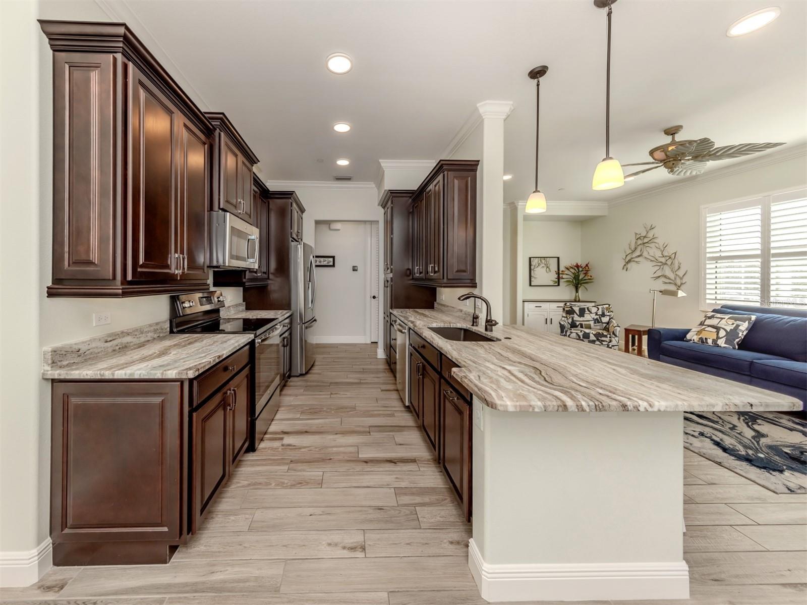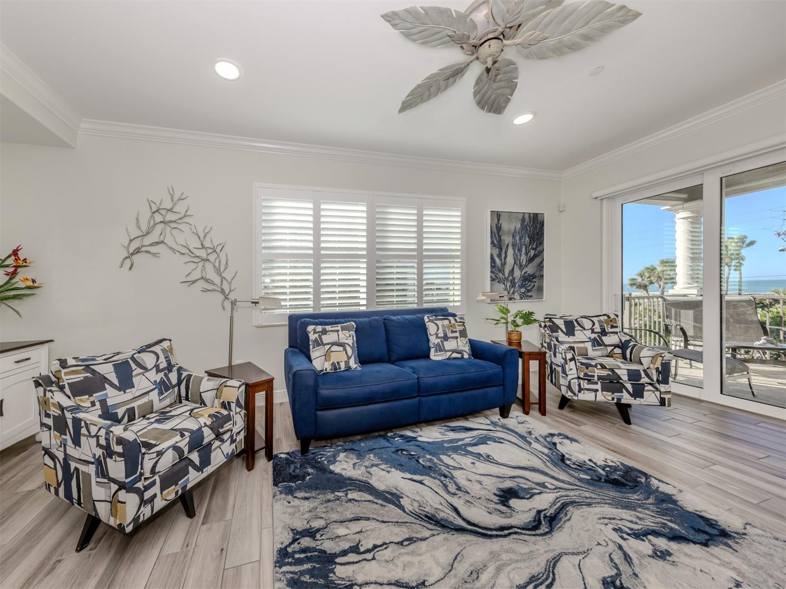 Enjoy the Florida beach lifestyle at its finest in this unique, spacious corner unit property in the premier community of Che Vista. From your private balcony you will be treated to breathtaking beach views and magnificent Gulf of Mexico sunsets. Upon entering, you will fall in love with the abundance of light that fills the open great room, kitchen and dining floorplan. This spacious unit offers flexible living spaces. In addition to two bedrooms and two baths there are two additional rooms. The additional rooms provide ample space for comfort, sleeping and flexibility to suit your own personal needs, one of which is equipped with a Murphy bed. This condominium has many wonderful features and upgrades including high-end touches such as crown molding, deep baseboards, wood-like tile, gorgeous countertops, custom shelving in kitchen with pullout shelves, a Murphy bed, electric blinds on sliders, two primary custom walk-in closets, guest custom closet, custom utility closet, retractable screen on front door, shutters throughout, blackout shades in bedrooms, niches to display art, and a two-car garage with an epoxy floor with custom cabinetry. Che Vista is one of the newer developments on Venice Island across from accessible beach access, ideal for beach walks. It offers a large private community pool for soaking and socializing. This beautiful gem will provide an ideal Florida lifestyle! It is a short bike ride to downtown Venice, arts, culture, fine dining and shopping. Don’t let this opportunity slip away. Schedule your private showing today.