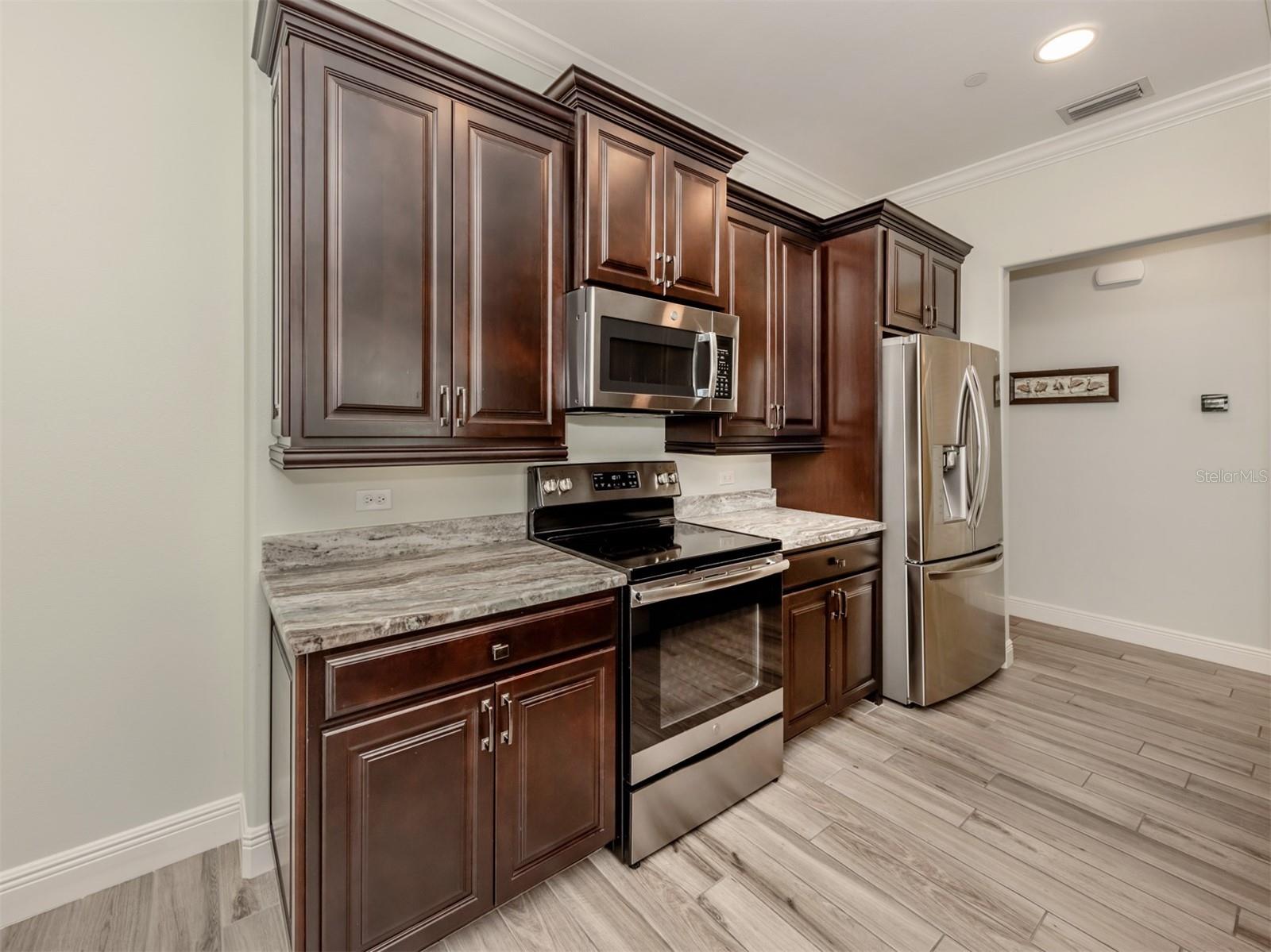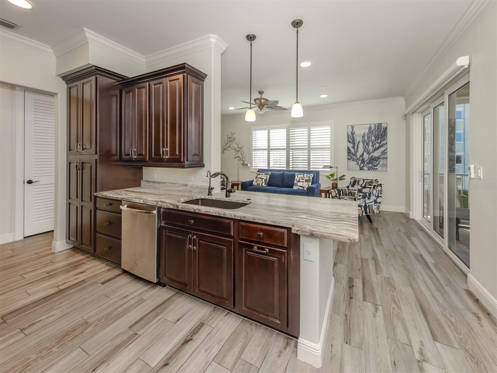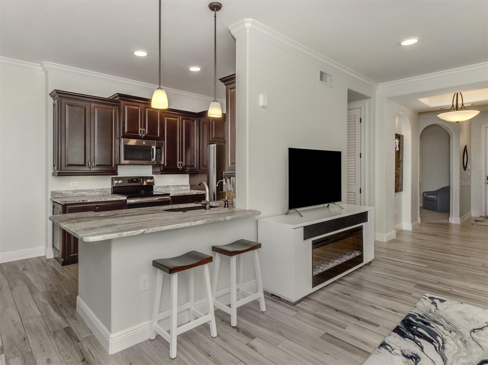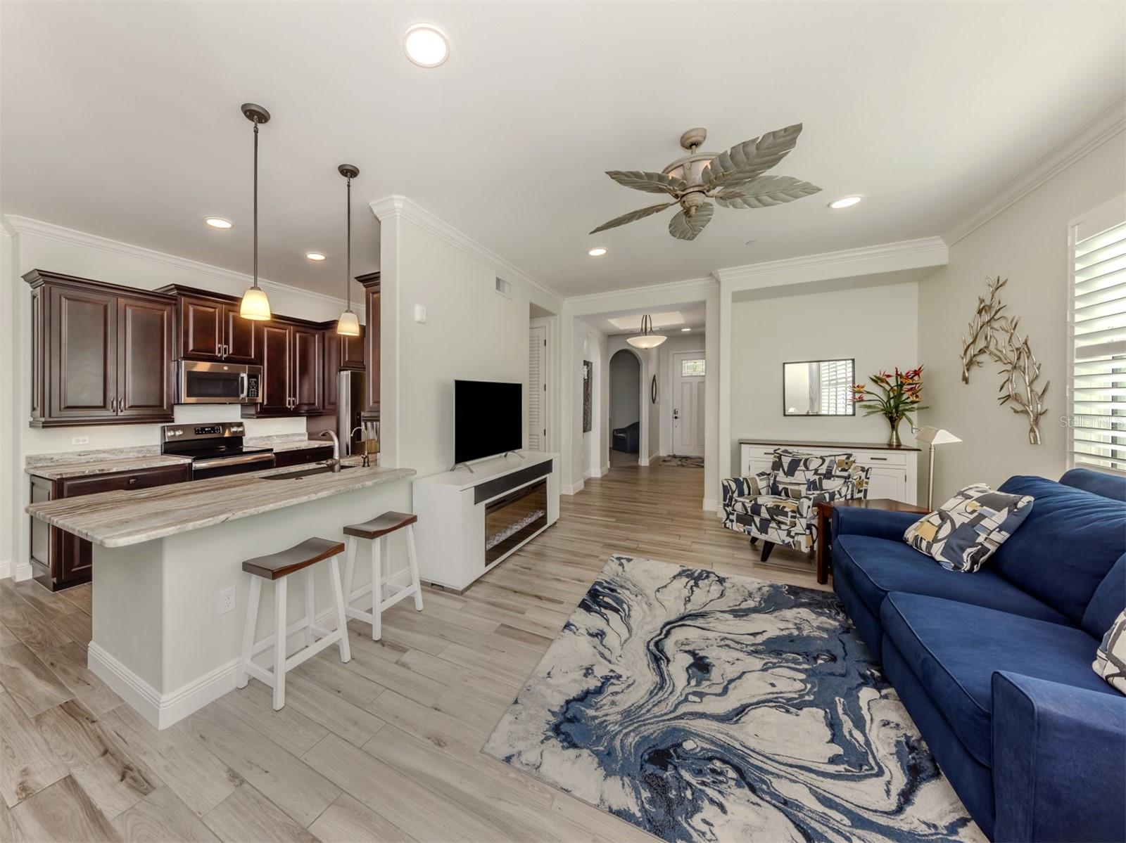 Enjoy the Florida beach lifestyle at its finest in this unique, spacious corner unit property in the premier community of Che Vista. From your private balcony you will be treated to breathtaking beach views and magnificent Gulf of Mexico sunsets. Upon entering, you will fall in love with the abundance of light that fills the open great room, kitchen and dining floorplan. This spacious unit offers flexible living spaces. In addition to two bedrooms and two baths there are two additional rooms. The additional rooms provide ample space for comfort, sleeping and flexibility to suit your own personal needs, one of which is equipped with a Murphy bed. This condominium has many wonderful features and upgrades including high-end touches such as crown molding, deep baseboards, wood-like tile, gorgeous countertops, custom shelving in kitchen with pullout shelves, a Murphy bed, electric blinds on sliders, two primary custom walk-in closets, guest custom closet, custom utility closet, retractable screen on front door, shutters throughout, blackout shades in bedrooms, niches to display art, and a two-car garage with an epoxy floor with custom cabinetry. Che Vista is one of the newer developments on Venice Island across from accessible beach access, ideal for beach walks. It offers a large private community pool for soaking and socializing. This beautiful gem will provide an ideal Florida lifestyle! It is a short bike ride to downtown Venice, arts, culture, fine dining and shopping. Don’t let this opportunity slip away. Schedule your private showing today.