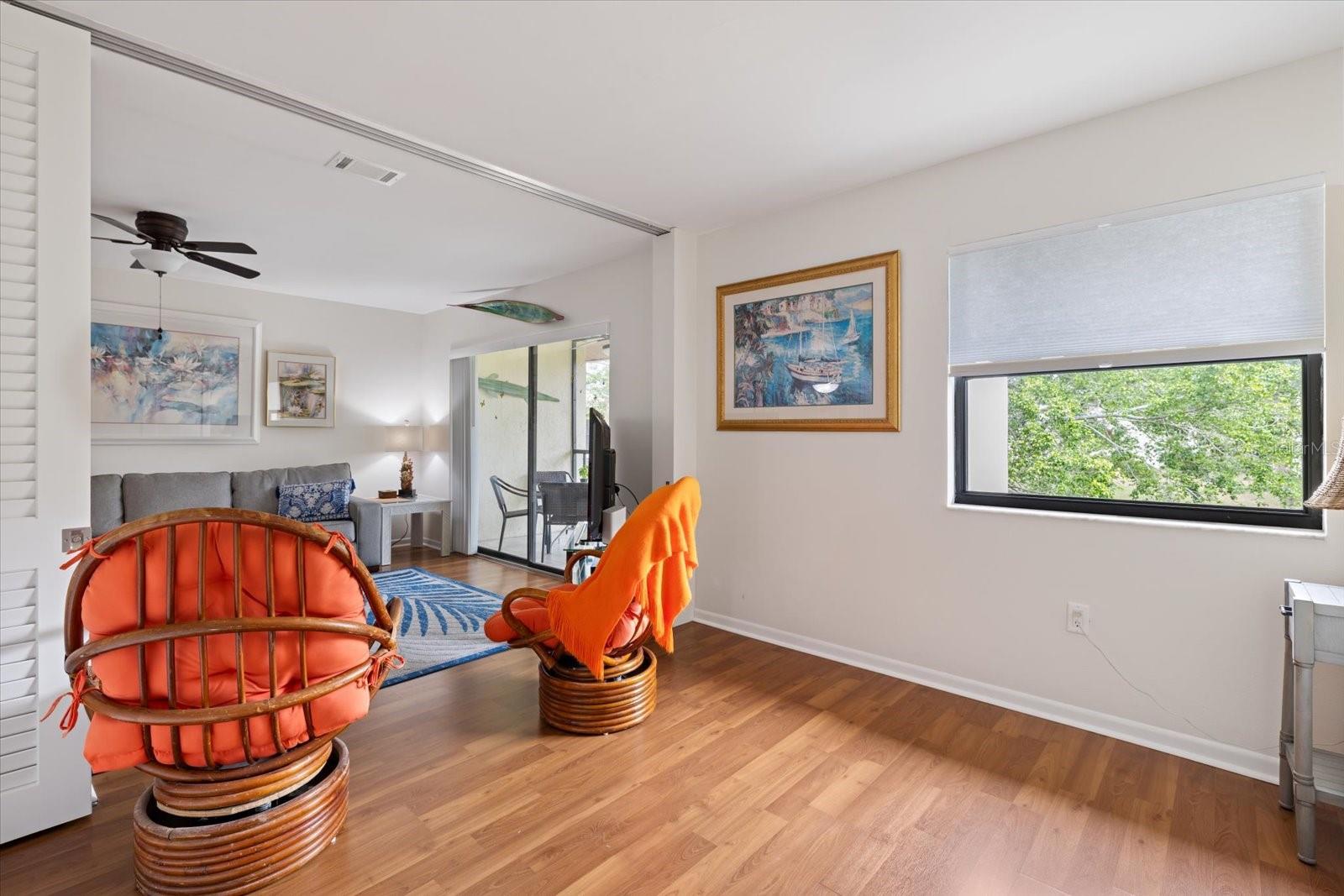 This beautifully maintained and upgraded turnkey-furnished condo is the perfect blend of modern style and coastal charm. Step into the open kitchen, where sleek quartz countertops, matching white appliances, and a custom backsplash create a bright and inviting space. The spacious primary suite offers a private retreat, complete with a walk-in closet, an upgraded en-suite bathroom with a modern walk-in shower and vanity, and direct access to a lanai overlooking a serene pond and the Phase IV pool. A standout feature of this condo is the versatile second bedroom, enhanced by a stylish pocket door design that seamlessly opens or closes to suit your lifestyle. The living area boasts beautiful laminate flooring, which transitions effortlessly into tasteful ceramic tile in the primary suite, lanais, kitchen, and bathrooms. Nestled in the sought-after Bird Bay Village, this community is rich in resort-style amenities, including a heated Junior Olympic pool, an additional Phase pool, tennis and pickleball courts, a fitness center, shuffleboard, and an active clubhouse. The HOA covers an impressive range of services—water, sewer, trash, basic cable, pest control, exterior insurance, and grounds maintenance—ensuring a stress-free lifestyle. Beyond the community, you’ll find yourself just minutes from world-class beaches, top-tier shopping and dining, and the scenic Legacy Trail—perfect for outdoor enthusiasts. Whether you’re looking for a seasonal retreat, a permanent home, or a lucrative investment opportunity, this condo checks every box. Don’t miss your chance to experience the ultimate Florida lifestyle—Paradise Awaits!