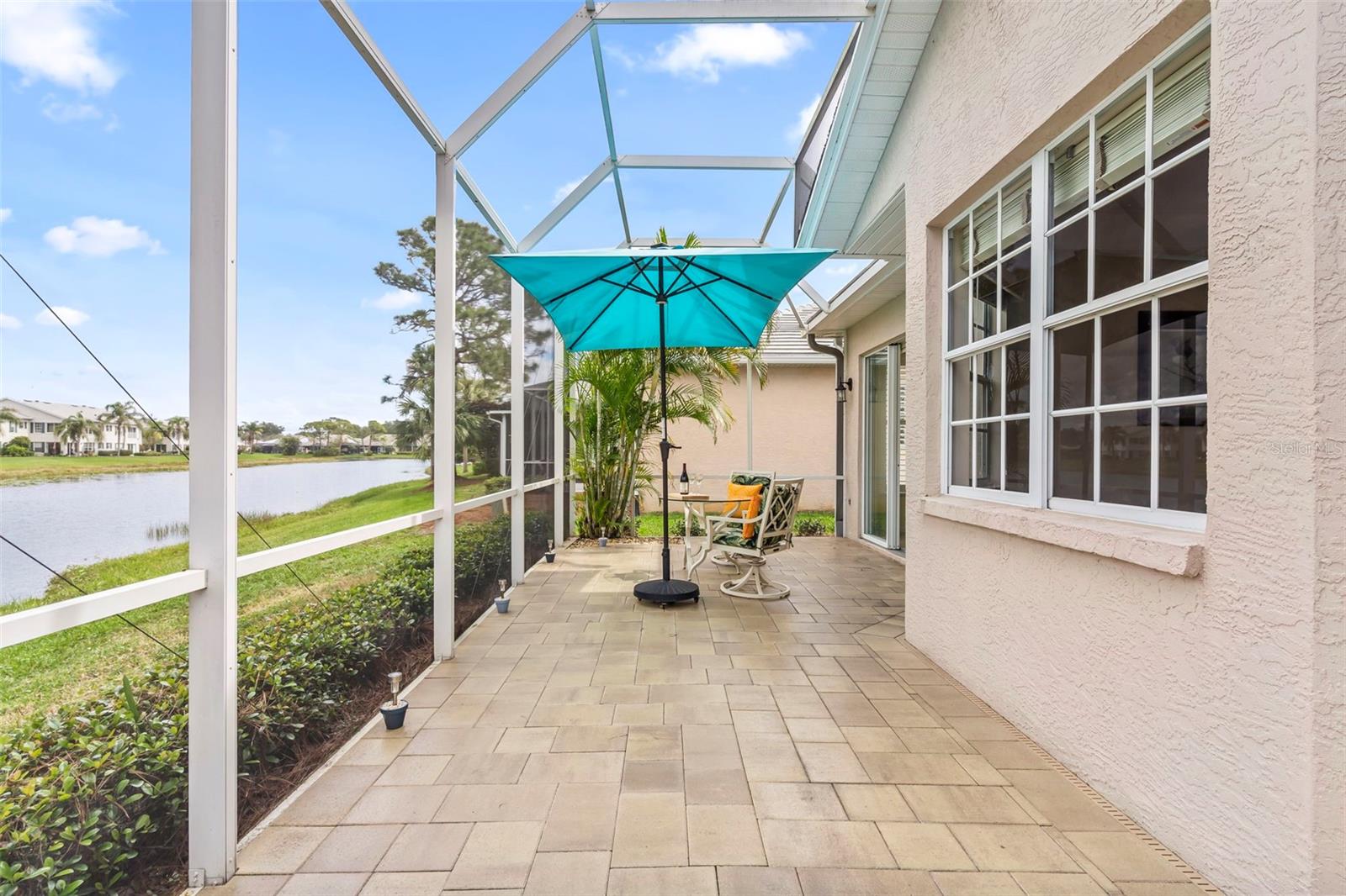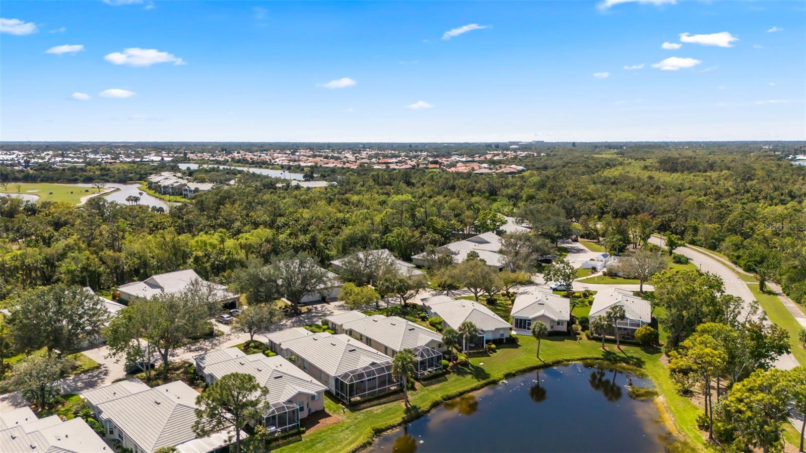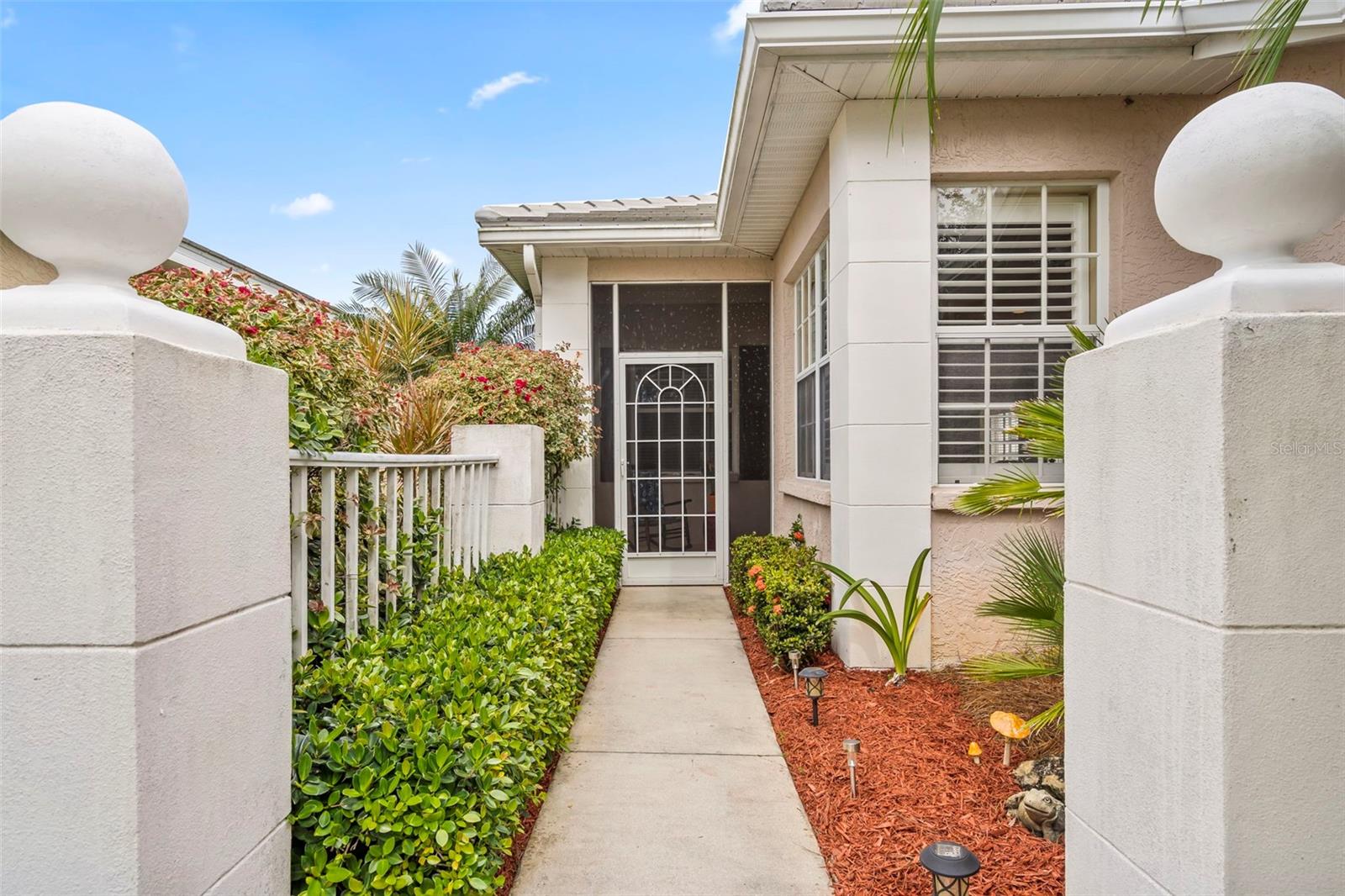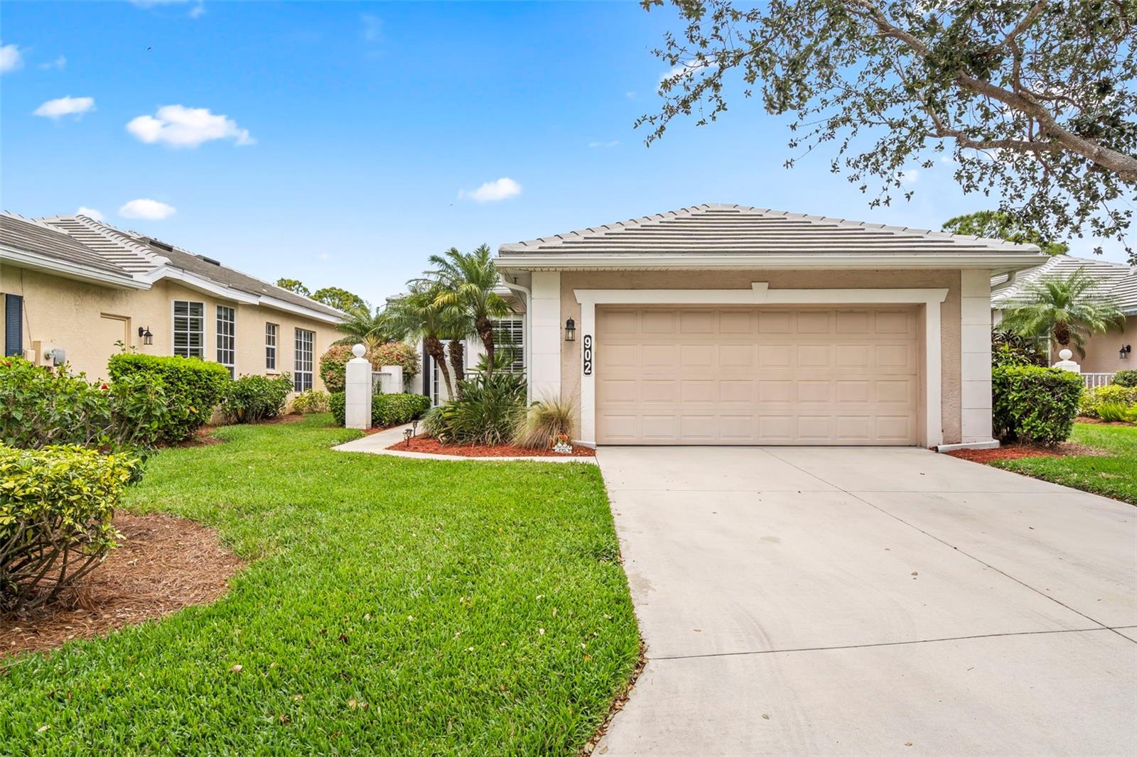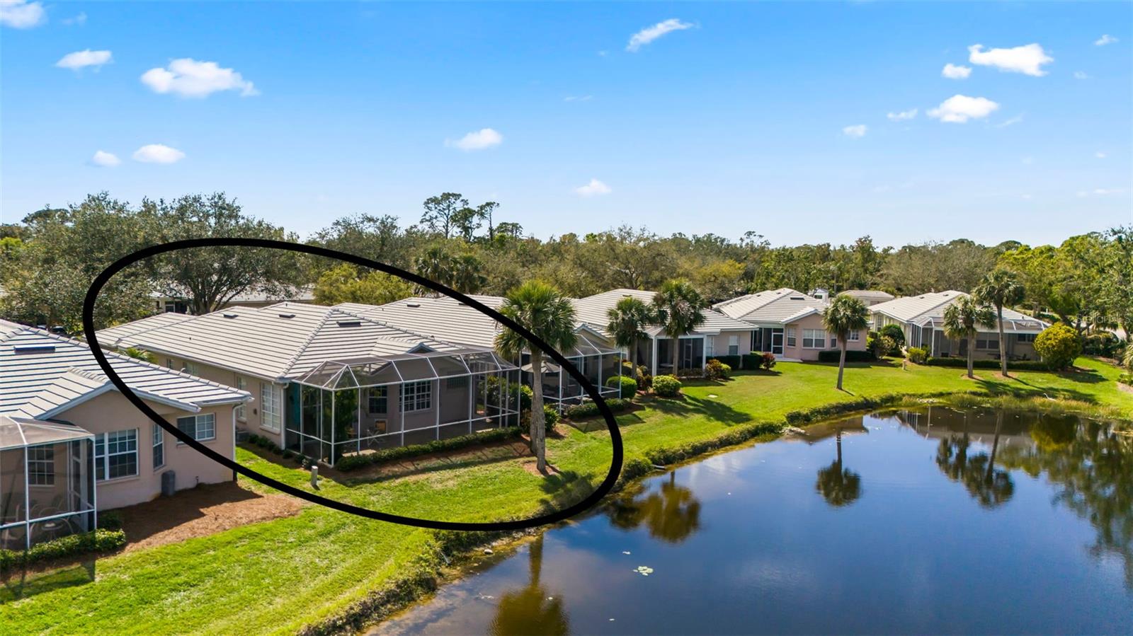 SWEEPING WATER VIEWS and oak-lined streets, all with convenient condo living! Nestled in the sought-after Villas II of St. Andrews Park at Plantation, this elegant single-family detached condo offers the perfect blend of Florida charm, privacy, and modern convenience. Offered partially furnished, featuring 3 bedrooms, 2.5 bathrooms, and over nearly 2000 sq. ft. of light-filled living space, this home is designed for both comfort and style. A new roof (2023) and new AC (2023) provide peace of mind, while abundant upgrades elevate its appeal. Step inside to find a bright and airy interior, where oversized windows welcome a flood of natural light. You'll also notice high ceilings, crown molding and plantation shutters in main living areas. All bedrooms are finished with luxury vinyl plank flooring—complemented by tile throughout the rest of the home for seamless, carpet-free living. One bedroom is perfect as a spacious den or home office, featuring space-saving, built-in cabinetry and desk. The screened front porch invites you to enjoy morning coffee, while the extended rear lanai showcases breathtaking lake views, perfect for unwinding, entertaining, or viewing abundant wildlife from your backyard. The primary suite is a true retreat, with a large bay window overlooking the water, massive walk-in closet, and a spa-like en suite bathroom featuring a soaking tub, walk-in shower with frameless glass door, and double vanity. The guest suite offers an additional walk-in closet and shares a convenient Jack & Jill bathroom with an attached half bath, making it ideal for guests. A versatile bonus room serves as a cozy reading nook, music room, or creative space. The choice is yours! The ergonomic chef’s kitchen is beautifully appointed with Noir stainless steel appliances, granite countertops, glass tile backsplash, sliding cabinet shelves, spacious closet pantry, and both a breakfast bar and a charming breakfast nook with bay window. The laundry room is equally impressive, featuring an upgraded washer and dryer, additional cabinetry, utility sink, and granite countertop. The two-car garage features an epoxied floor for a polished look and space for cabinets or storage on all three walls. Bedroom closets, storage nooks throughout the house, and spacious front hall closet meet additional storage needs. Living in this maintenance-free community means enjoying the quiet and privacy of a detached home with condo ownership that covers roof replacement reserves, structural insurance, exterior painting, full lawn care, and irrigation. Residents also have access to three St. Andrews Park community pools for relaxation and socializing. Two pools are within a short walking distance. The Villas II of St. Andrews Park at Plantation is nestled in the heart of Plantation Golf & Country Club, where OPTIONAL club membership levels are available, allowing you to take advantage of golf, additional pool, fitness center, pickleball / tennis, dining, and social opportunities if desired! Plantation G&CC features two 18-hole championship golf courses, 13 Har-Tru tennis courts, 6 pickleball courts, fitness center, Jr. Olympic pool, and exceptional dining / social activities. Tranquility meets convenience, as this serene neighborhood is just minutes from beaches, dining, shopping, Atlanta Braves stadium, and bustling Downtown Wellen Park. Take advantage of the best of Venice! Call today for your showing! (One or more photos may be virtually staged)