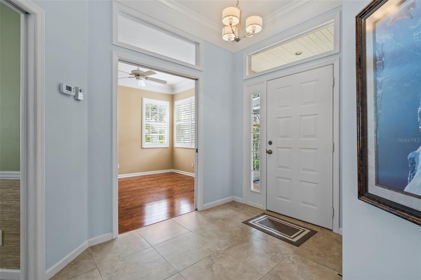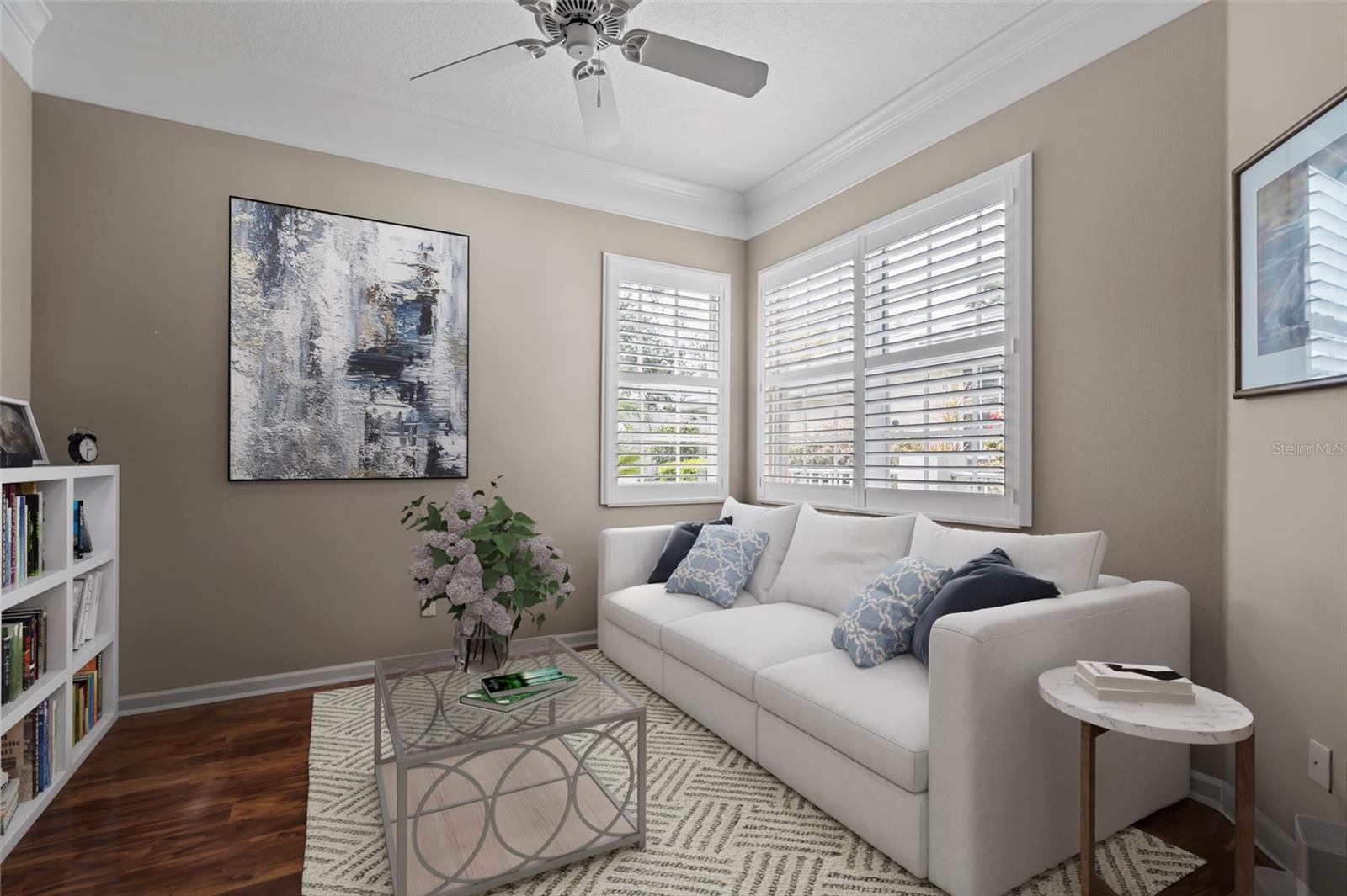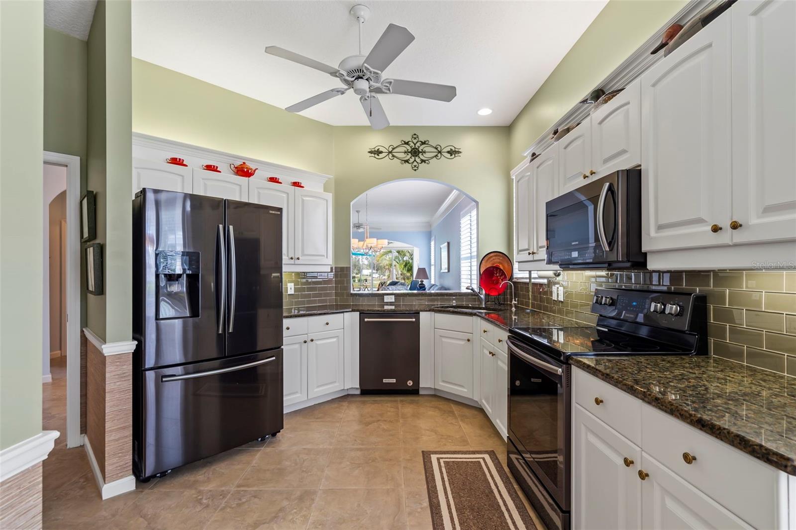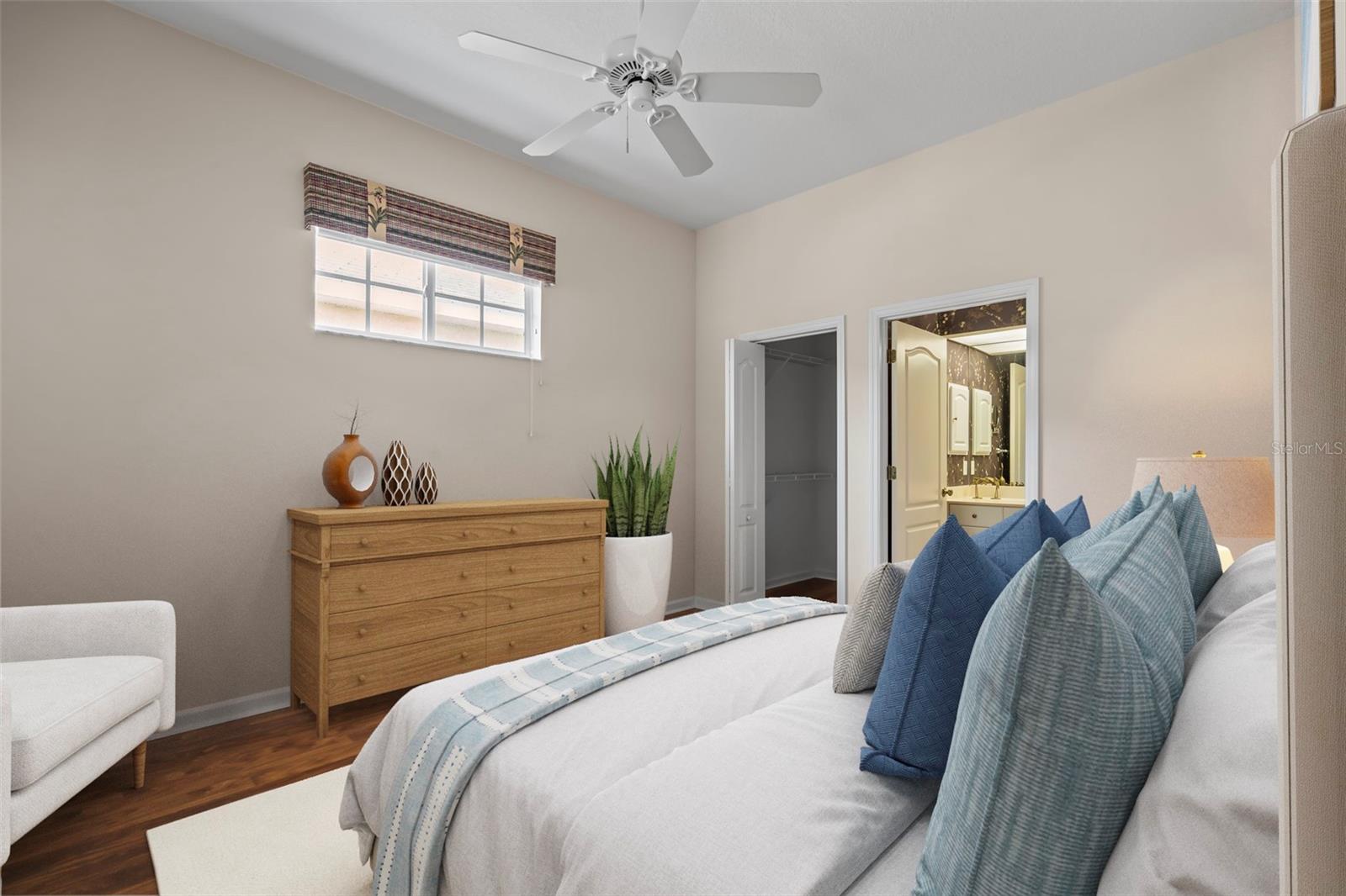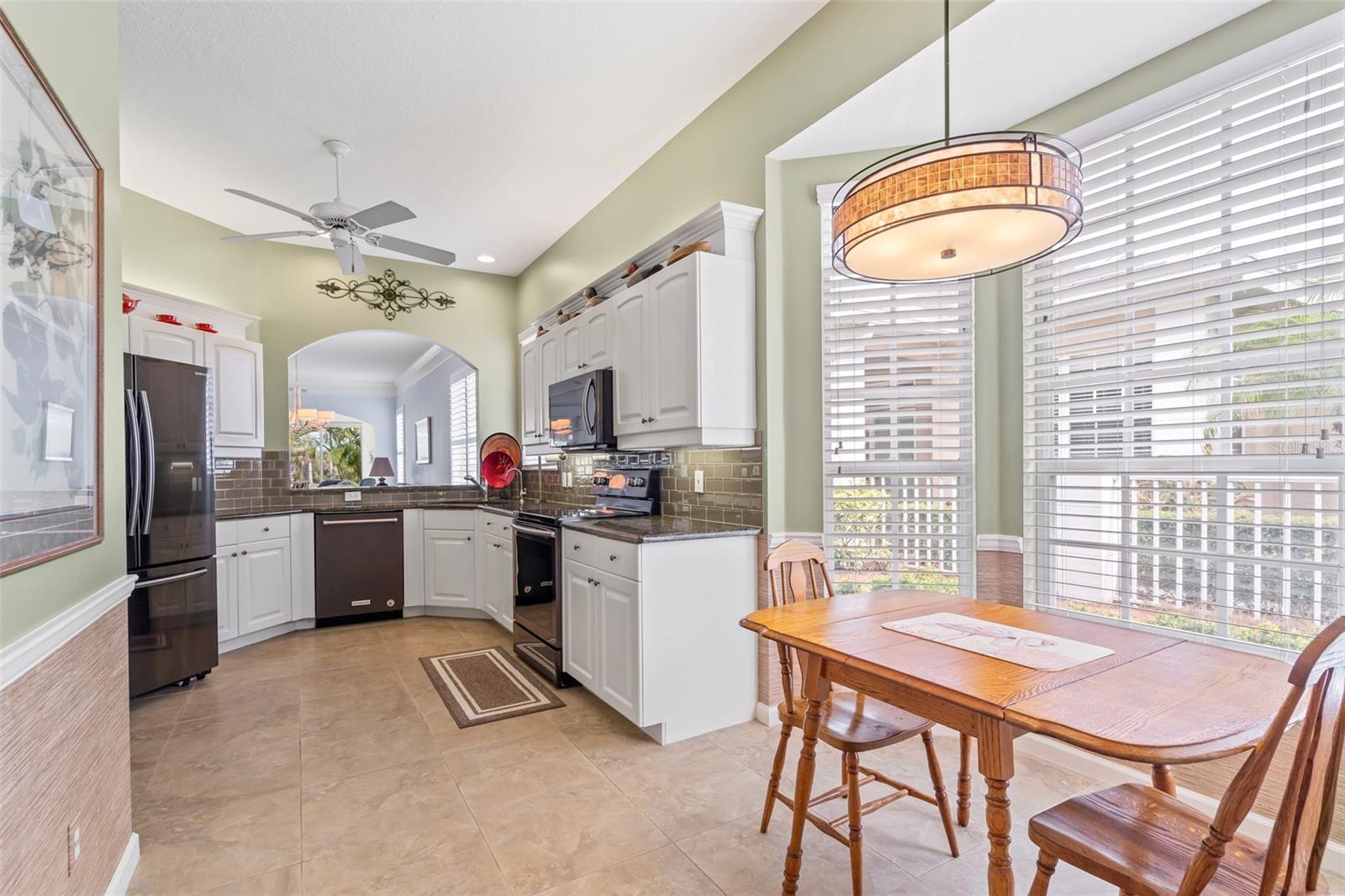 SWEEPING WATER VIEWS and oak-lined streets, all with convenient condo living! Nestled in the sought-after Villas II of St. Andrews Park at Plantation, this elegant single-family detached condo offers the perfect blend of Florida charm, privacy, and modern convenience. Offered partially furnished, featuring 3 bedrooms, 2.5 bathrooms, and over nearly 2000 sq. ft. of light-filled living space, this home is designed for both comfort and style. A new roof (2023) and new AC (2023) provide peace of mind, while abundant upgrades elevate its appeal. Step inside to find a bright and airy interior, where oversized windows welcome a flood of natural light. You'll also notice high ceilings, crown molding and plantation shutters in main living areas. All bedrooms are finished with luxury vinyl plank flooring—complemented by tile throughout the rest of the home for seamless, carpet-free living. One bedroom is perfect as a spacious den or home office, featuring space-saving, built-in cabinetry and desk. The screened front porch invites you to enjoy morning coffee, while the extended rear lanai showcases breathtaking lake views, perfect for unwinding, entertaining, or viewing abundant wildlife from your backyard. The primary suite is a true retreat, with a large bay window overlooking the water, massive walk-in closet, and a spa-like en suite bathroom featuring a soaking tub, walk-in shower with frameless glass door, and double vanity. The guest suite offers an additional walk-in closet and shares a convenient Jack & Jill bathroom with an attached half bath, making it ideal for guests. A versatile bonus room serves as a cozy reading nook, music room, or creative space. The choice is yours! The ergonomic chef’s kitchen is beautifully appointed with Noir stainless steel appliances, granite countertops, glass tile backsplash, sliding cabinet shelves, spacious closet pantry, and both a breakfast bar and a charming breakfast nook with bay window. The laundry room is equally impressive, featuring an upgraded washer and dryer, additional cabinetry, utility sink, and granite countertop. The two-car garage features an epoxied floor for a polished look and space for cabinets or storage on all three walls. Bedroom closets, storage nooks throughout the house, and spacious front hall closet meet additional storage needs. Living in this maintenance-free community means enjoying the quiet and privacy of a detached home with condo ownership that covers roof replacement reserves, structural insurance, exterior painting, full lawn care, and irrigation. Residents also have access to three St. Andrews Park community pools for relaxation and socializing. Two pools are within a short walking distance. The Villas II of St. Andrews Park at Plantation is nestled in the heart of Plantation Golf & Country Club, where OPTIONAL club membership levels are available, allowing you to take advantage of golf, additional pool, fitness center, pickleball / tennis, dining, and social opportunities if desired! Plantation G&CC features two 18-hole championship golf courses, 13 Har-Tru tennis courts, 6 pickleball courts, fitness center, Jr. Olympic pool, and exceptional dining / social activities. Tranquility meets convenience, as this serene neighborhood is just minutes from beaches, dining, shopping, Atlanta Braves stadium, and bustling Downtown Wellen Park. Take advantage of the best of Venice! Call today for your showing! (One or more photos may be virtually staged)