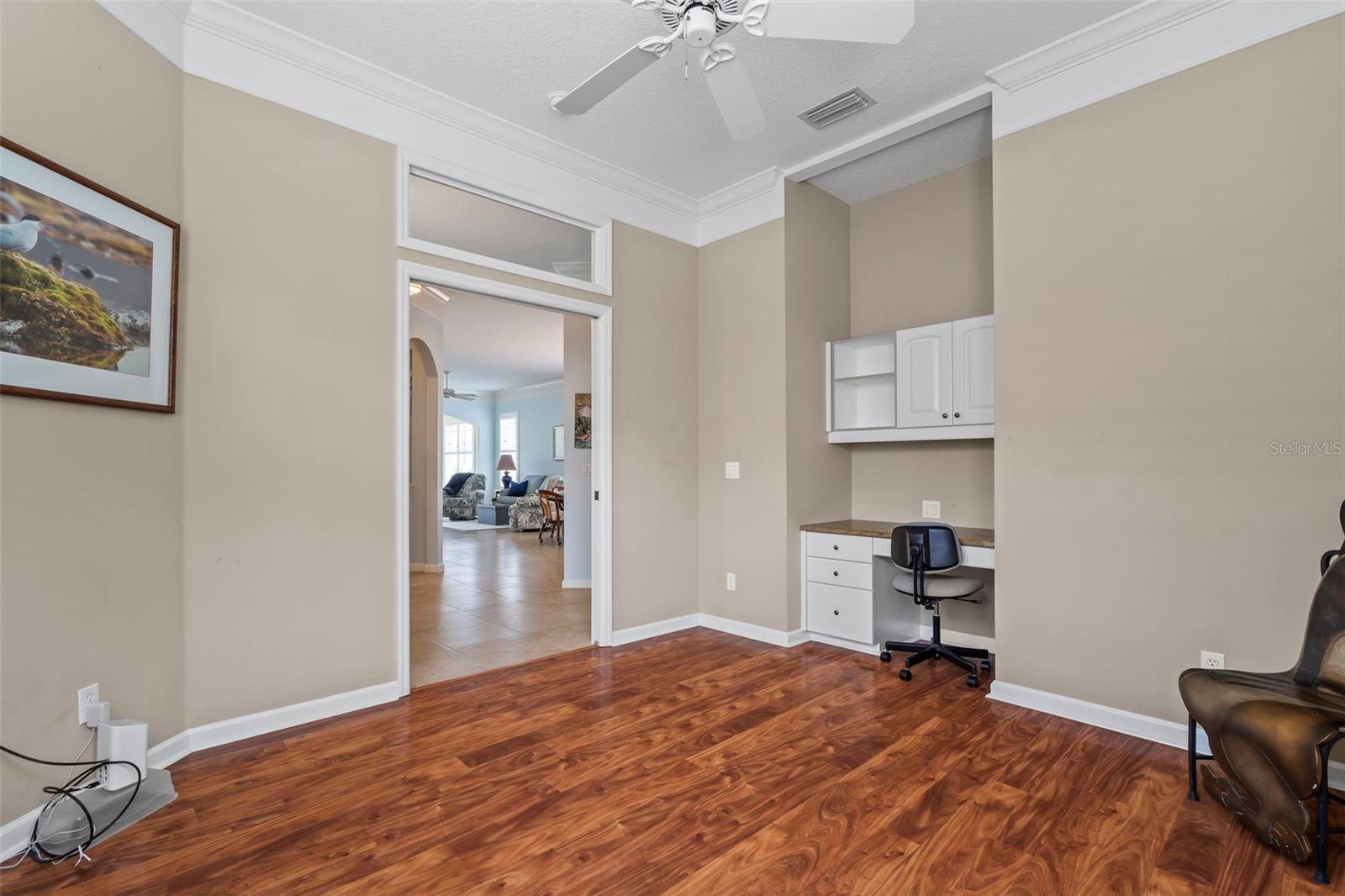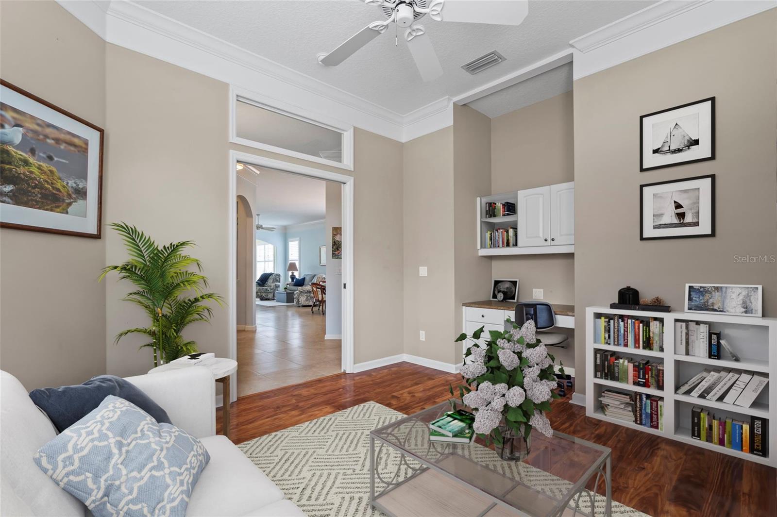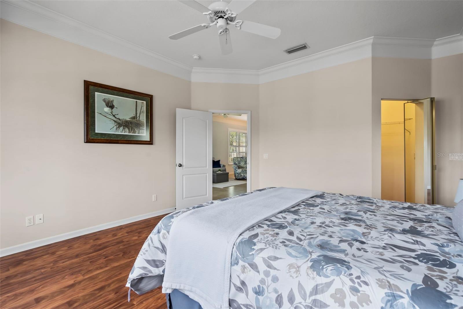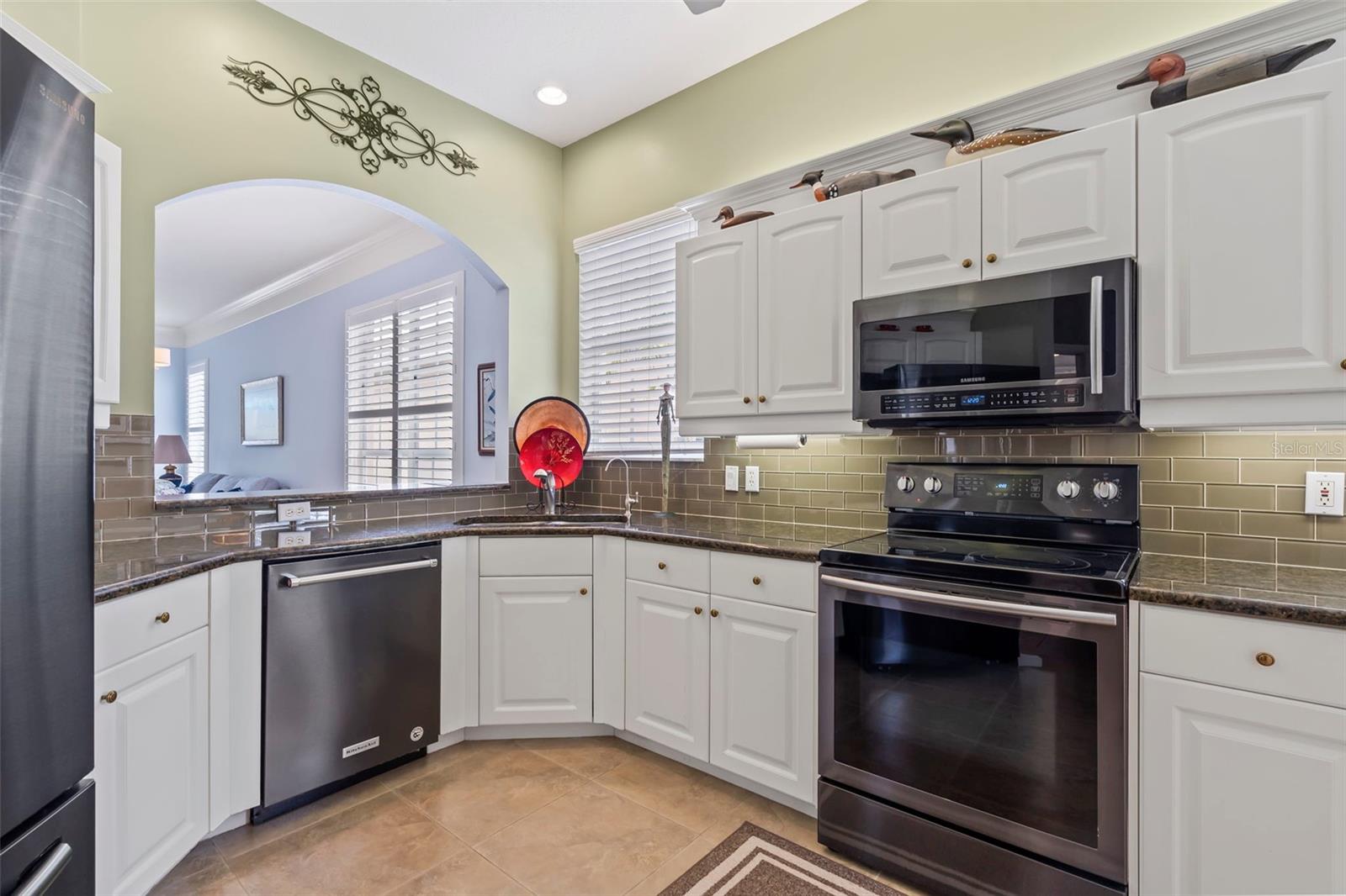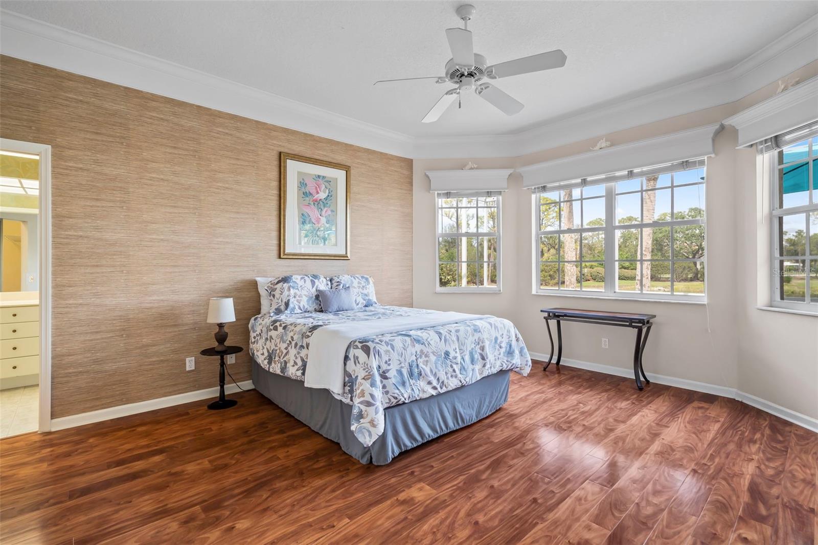 SWEEPING WATER VIEWS and oak-lined streets, all with convenient condo living! Nestled in the sought-after Villas II of St. Andrews Park at Plantation, this elegant single-family detached condo offers the perfect blend of Florida charm, privacy, and modern convenience. Offered partially furnished, featuring 3 bedrooms, 2.5 bathrooms, and over nearly 2000 sq. ft. of light-filled living space, this home is designed for both comfort and style. A new roof (2023) and new AC (2023) provide peace of mind, while abundant upgrades elevate its appeal. Step inside to find a bright and airy interior, where oversized windows welcome a flood of natural light. You'll also notice high ceilings, crown molding and plantation shutters in main living areas. All bedrooms are finished with luxury vinyl plank flooring—complemented by tile throughout the rest of the home for seamless, carpet-free living. One bedroom is perfect as a spacious den or home office, featuring space-saving, built-in cabinetry and desk. The screened front porch invites you to enjoy morning coffee, while the extended rear lanai showcases breathtaking lake views, perfect for unwinding, entertaining, or viewing abundant wildlife from your backyard. The primary suite is a true retreat, with a large bay window overlooking the water, massive walk-in closet, and a spa-like en suite bathroom featuring a soaking tub, walk-in shower with frameless glass door, and double vanity. The guest suite offers an additional walk-in closet and shares a convenient Jack & Jill bathroom with an attached half bath, making it ideal for guests. A versatile bonus room serves as a cozy reading nook, music room, or creative space. The choice is yours! The ergonomic chef’s kitchen is beautifully appointed with Noir stainless steel appliances, granite countertops, glass tile backsplash, sliding cabinet shelves, spacious closet pantry, and both a breakfast bar and a charming breakfast nook with bay window. The laundry room is equally impressive, featuring an upgraded washer and dryer, additional cabinetry, utility sink, and granite countertop. The two-car garage features an epoxied floor for a polished look and space for cabinets or storage on all three walls. Bedroom closets, storage nooks throughout the house, and spacious front hall closet meet additional storage needs. Living in this maintenance-free community means enjoying the quiet and privacy of a detached home with condo ownership that covers roof replacement reserves, structural insurance, exterior painting, full lawn care, and irrigation. Residents also have access to three St. Andrews Park community pools for relaxation and socializing. Two pools are within a short walking distance. The Villas II of St. Andrews Park at Plantation is nestled in the heart of Plantation Golf & Country Club, where OPTIONAL club membership levels are available, allowing you to take advantage of golf, additional pool, fitness center, pickleball / tennis, dining, and social opportunities if desired! Plantation G&CC features two 18-hole championship golf courses, 13 Har-Tru tennis courts, 6 pickleball courts, fitness center, Jr. Olympic pool, and exceptional dining / social activities. Tranquility meets convenience, as this serene neighborhood is just minutes from beaches, dining, shopping, Atlanta Braves stadium, and bustling Downtown Wellen Park. Take advantage of the best of Venice! Call today for your showing! (One or more photos may be virtually staged)