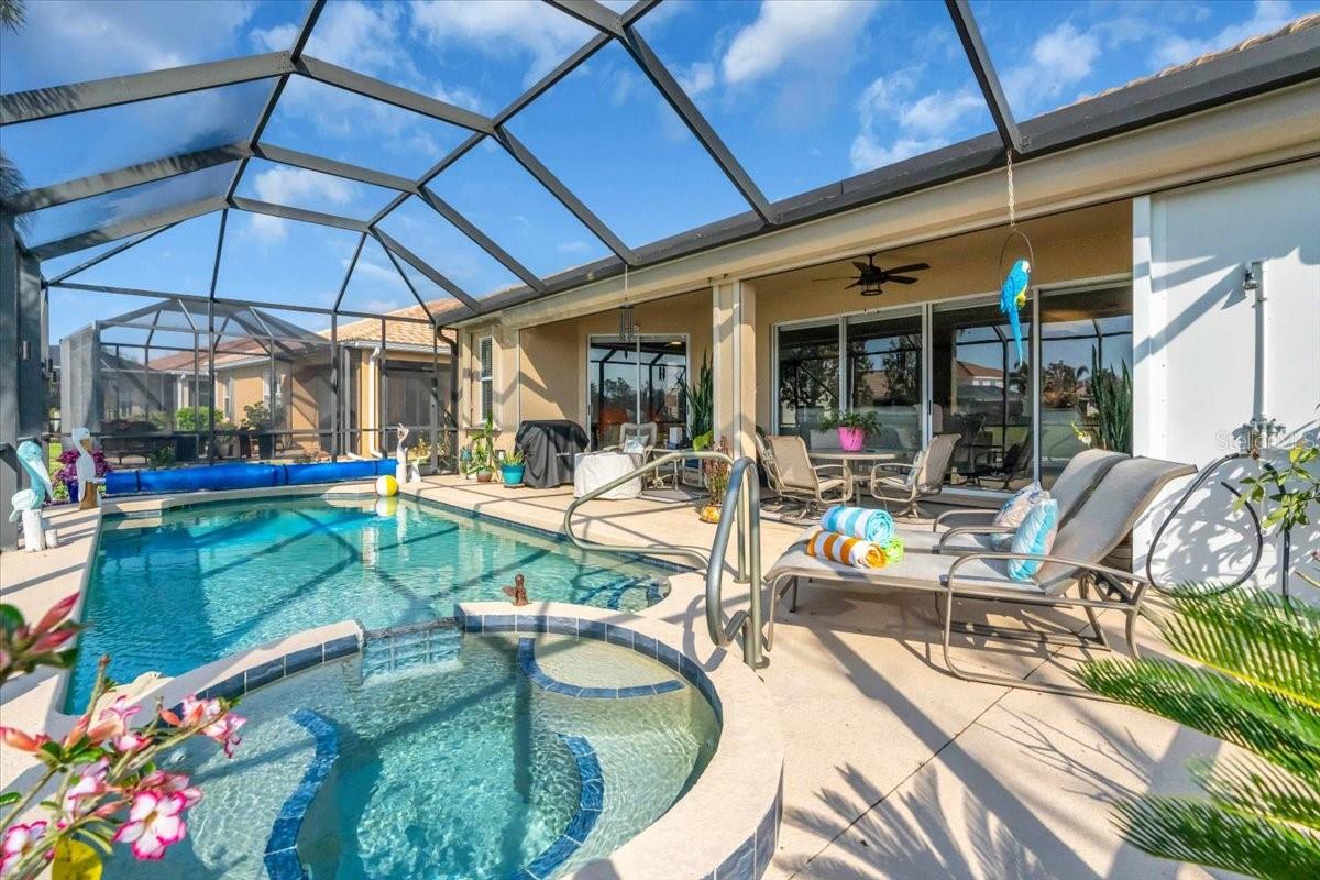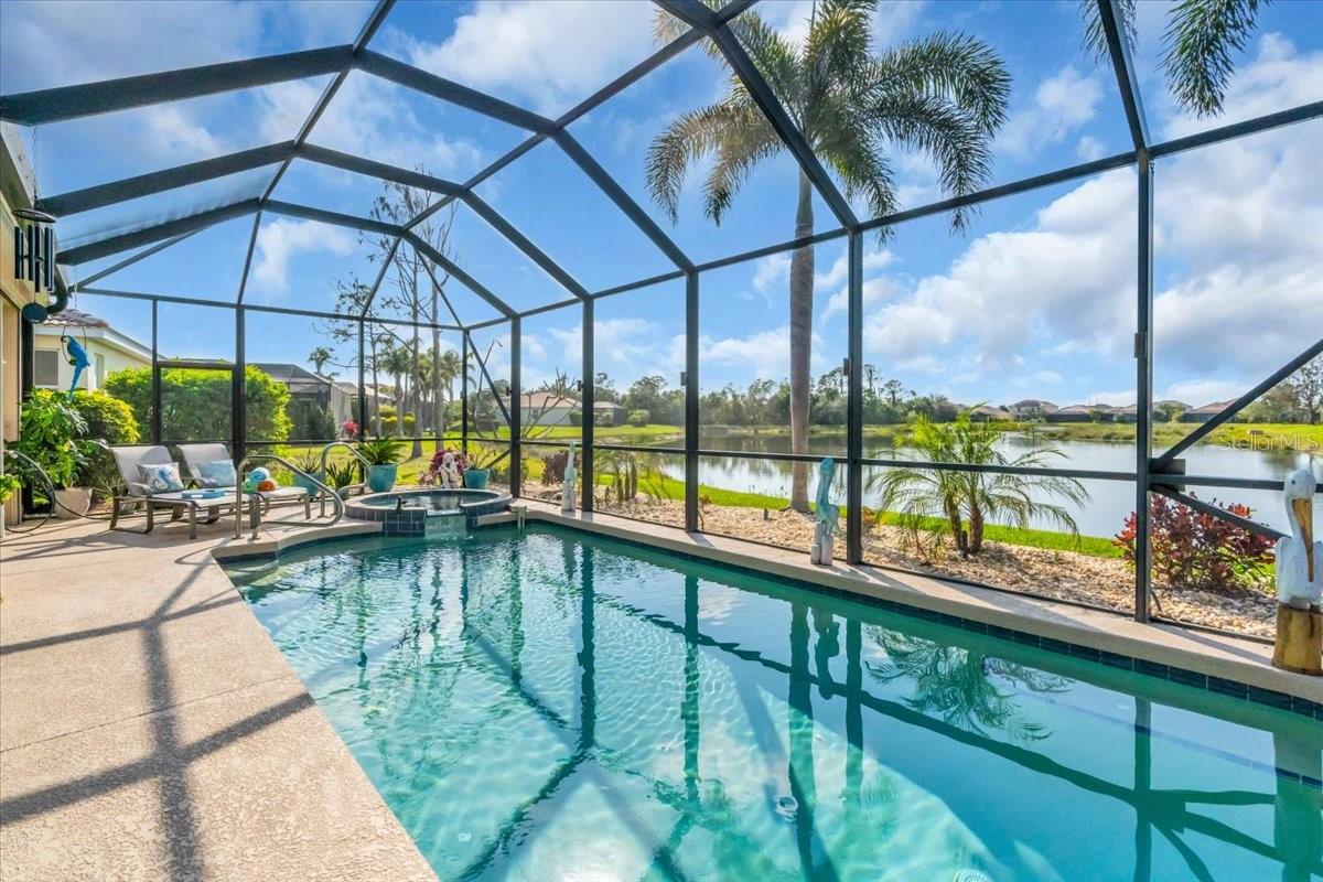 Welcome to this beautiful 3-bedroom, 2-bathroom home in the highly desirable Stoneybrook at Venice, offering a tranquil pond view and a sparkling saltwater pool and spa. With its ideal combination of indoor comfort and outdoor relaxation, this property is designed to impress. Step inside and discover a thoughtfully updated space featuring modern upgrades throughout. The kitchen boasts appliances installed in 2020, while the AC and pool pump were also replaced in the same year, ensuring optimal efficiency and comfort. The home is equipped with a whole-house water filtration system and a central vacuum, providing convenience and peace of mind. California Closets have been added to the primary bedroom, offering customized storage solutions to keep everything organized. The primary suite is a true retreat, complete with motorized power blinds for ultimate light control and privacy. The en-suite bath provides a spa-like atmosphere with modern finishes. Two additional spacious bedrooms are perfect for family or guests. Outside, enjoy your own private oasis with a saltwater pool and an outdoor shower for ultimate relaxation after a swim. The pool room, offering ample storage or the perfect space for a changing room, is a unique feature that adds both practicality and charm to this home. The lush backyard and peaceful pond view create an inviting setting for outdoor gatherings or quiet relaxation. For added peace of mind, this home features motorized hurricane shutters and a new generator plug, ensuring you’re prepared for any situation. The home is equipped with ATT home security and a perimeter camera. The exterior was freshly painted in 2022, and the garage is equipped with shelving to help keep your space tidy. Stoneybrook at Venice is a fantastic community offering a wealth of amenities, including tennis courts, basketball courts, volleyball, pool, splash pad, playground, baseball field, clubhouse and is just a short drive away from shopping, dining, and pristine beaches. Don’t miss the chance to own this exceptional home where comfort, style, and functionality come together in perfect harmony!