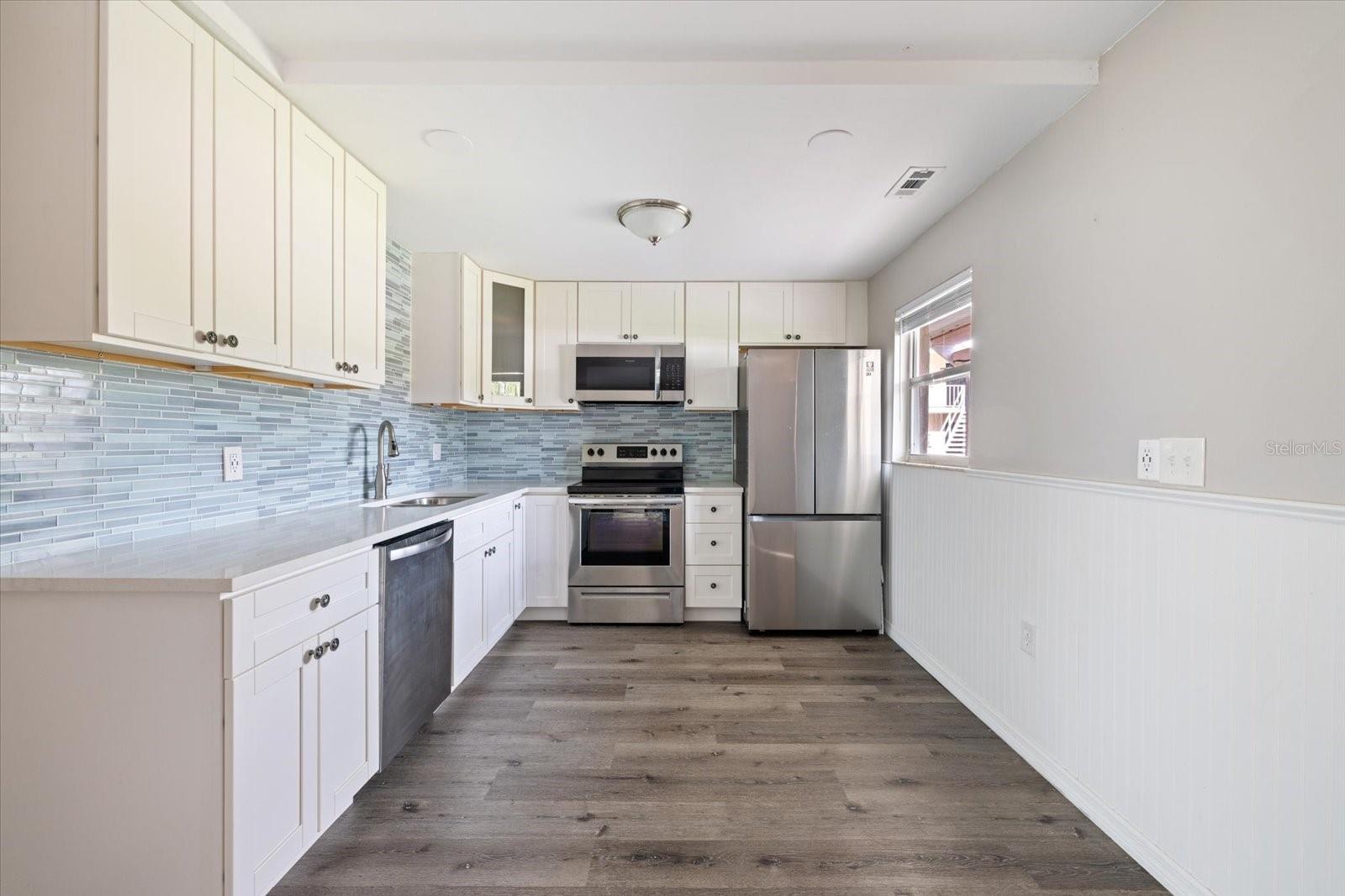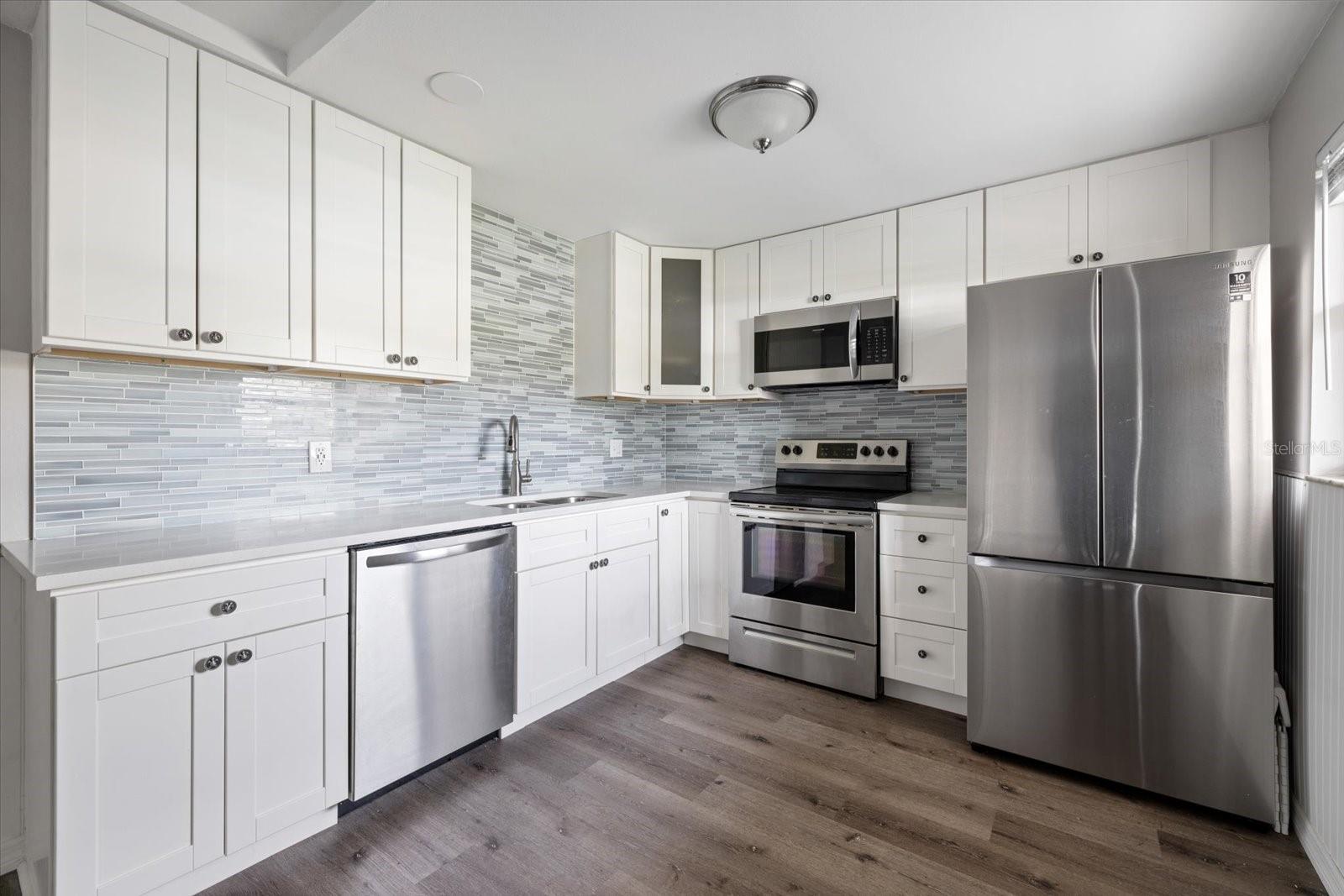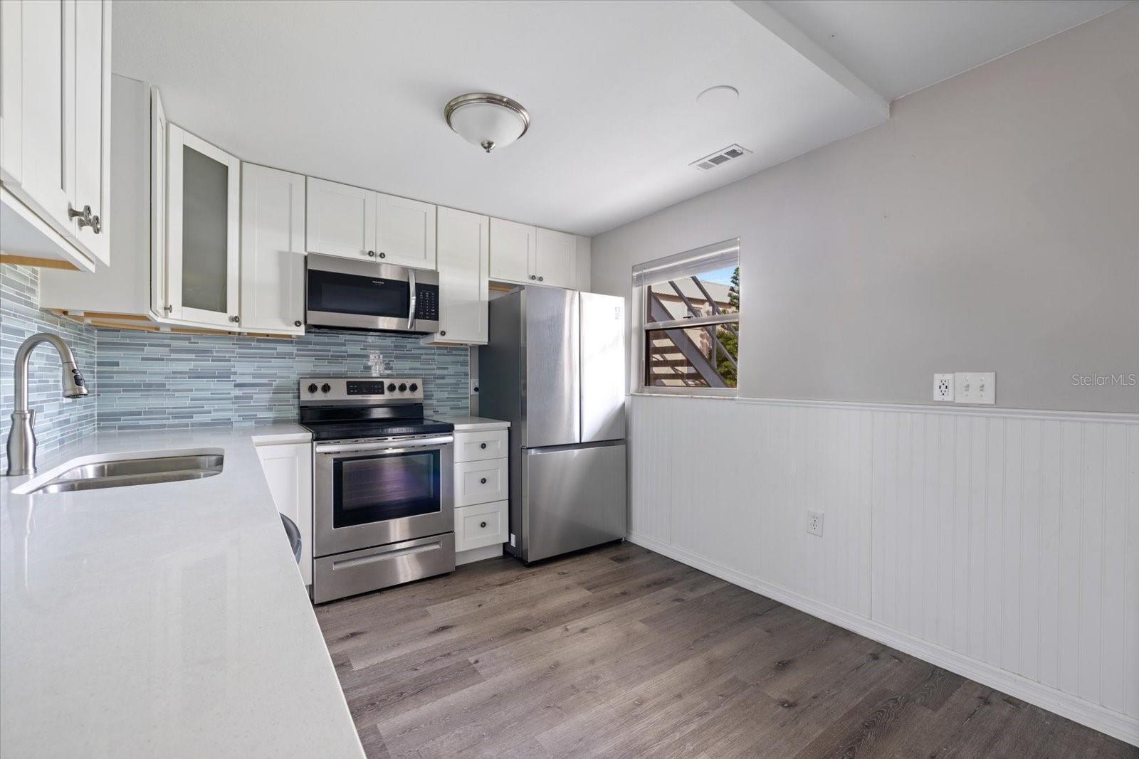 Fully renovated Venice Island condo!! This cozy condo has been renovated extensively. The kitchen is equipped with newer stainless steel appliances, quartz countertops, and custom cabinetry. The kitchen is opened up and connects your spacious living room which has access to your lanai. The bedrooms are both very spacious and can accommodate a king bed and night stands. The primary bedroom has an en-suite bathroom with walk-in shower with glass doors, and a walk-in closet. The second bath is also fully renovated and features another custom walk-in shower with glass doors and upgraded fixtures. This stunningly renovated condo is also just a short walk or bike ride to Venice Beach, Sharkey's, and Historic Downtown Venice. This is a great opportunity to own your own piece of Paradise on Venice Island! The island lifestyle awaits!