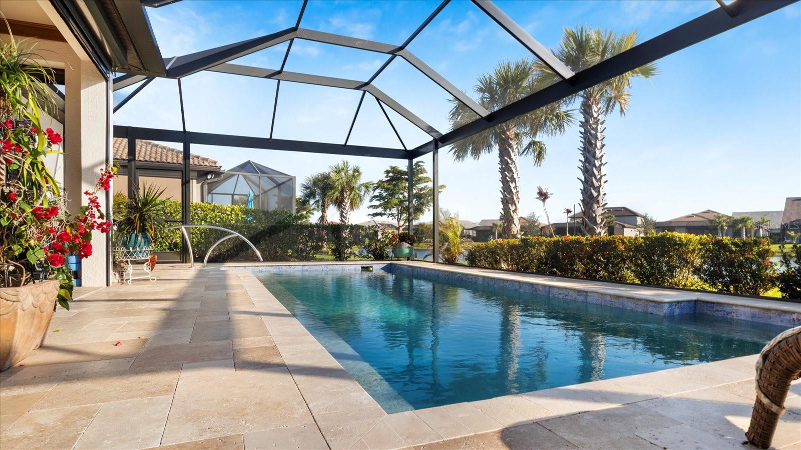 PRICE JUST REDUCED , GREAT VLAUE!! Discover your dream home in the sought-after Summerwood model located at IslandWalk of Venice, Florida. This stunning property combines modern elegance with the ultimate Florida lifestyle, offering 3 bedrooms, 2 bathrooms, and a 2-car garage. Nestled in a premium lake location, this home is designed for those who appreciate luxury, comfort, and breathtaking views. Spacious and thoughtfully designed, the bedrooms provide privacy and comfort, while the bonus room offers flexibility for a home office, gym or entertainment space. The luxurious master suite with an en-suite bathroom with double sinks , featuring modern fixtures, a walk-in shower, and a large walk-in closet. The Garage offers Ample space for vehicles, storage and hobbies with extra storage in the garage ceiling for boxes. The Garage floor has Epoxy flooring for durability and has been insulated for energy efficiency. The stunning living room zero corner sliding doors open fully seamlessly blending indoor and outdoor living revealing a TRAVERTINE CLEAR VIEW covered lanai enclosing a HEATED salt water POOL surrounded by the tranquil beauty of the lake. Wake up every day to picturesque views of the lanai and the lake, creating a peaceful and private retreat. The upgrades are too numerous to mention and include Plantation shutters, Hurricane power blinds around the Lanai, cypress wood accents, custom front door with art glass, prewired for speakers in the lanai and living room, tiled back splash in the kitchen, crown molding throughout the home, wooden shelving in pantry , extended paver driveway, laundry room with Sink and soft close custom cabinets and 8 ft doors throughout the home. IslandWalk Community amenities include 2 resort-style pools , one lap pool and 2 clubhouses for social gatherings and one event center staffed by a full time activities director. State-of-the-art fitness center, 8 tennis courts, 12 pickle ball courts ,miles of walking and biking trails, venetian bridges, lush green spaces, 24 hour security and a dog park. A vibrant calendar of activities, clubs, and events fostering a strong sense of community. Located minutes from Venice Beach, known for its shark-tooth hunting and stunning sunsets. Explore historic downtown Venice with its boutique shops, fine dining, and cultural attractions like the Venice Theatre.Close to top-rated golf courses, healthcare facilities, and Sarasota’s arts and entertainment scene.Easy access to I-75 and Sarasota-Bradenton International Airport. Whether you’re looking for a permanent residence, a vacation home, or an investment property, this home offers everything you need to live your best life in paradise. Located in Flood Zone X and has low monthly HOA fees. Click on the 3D TOUR link