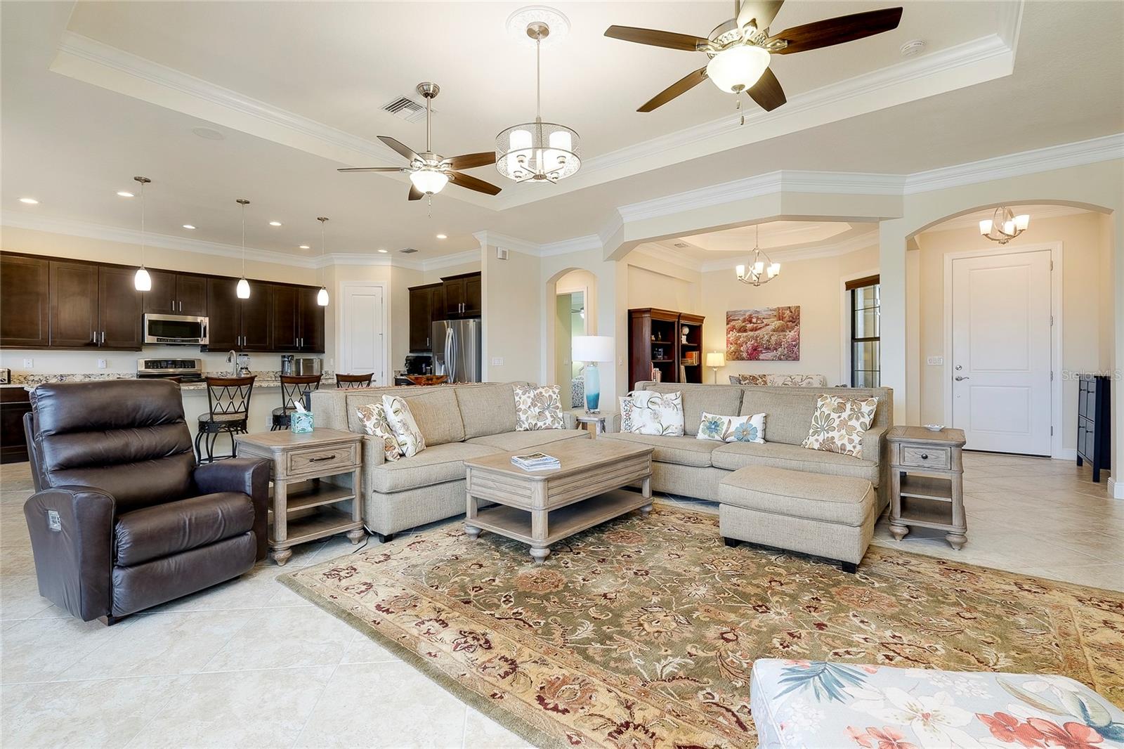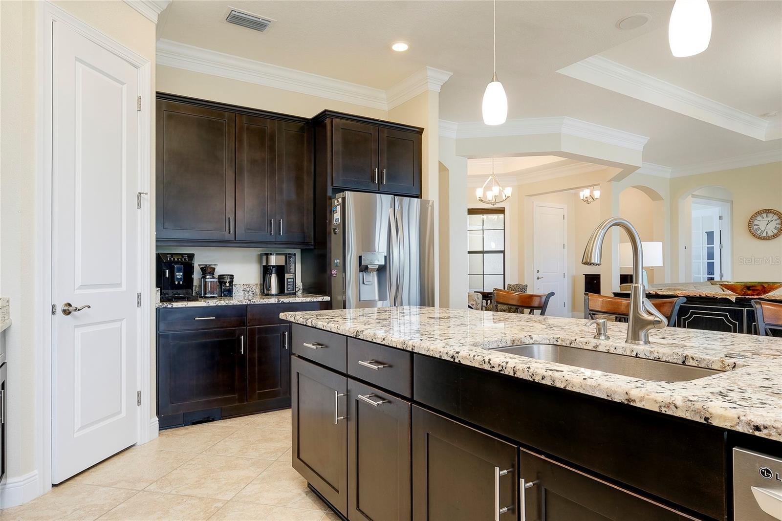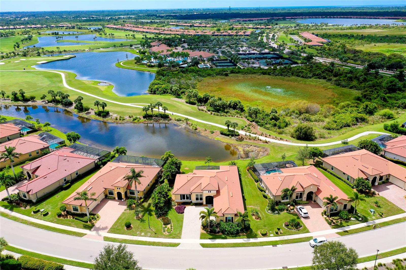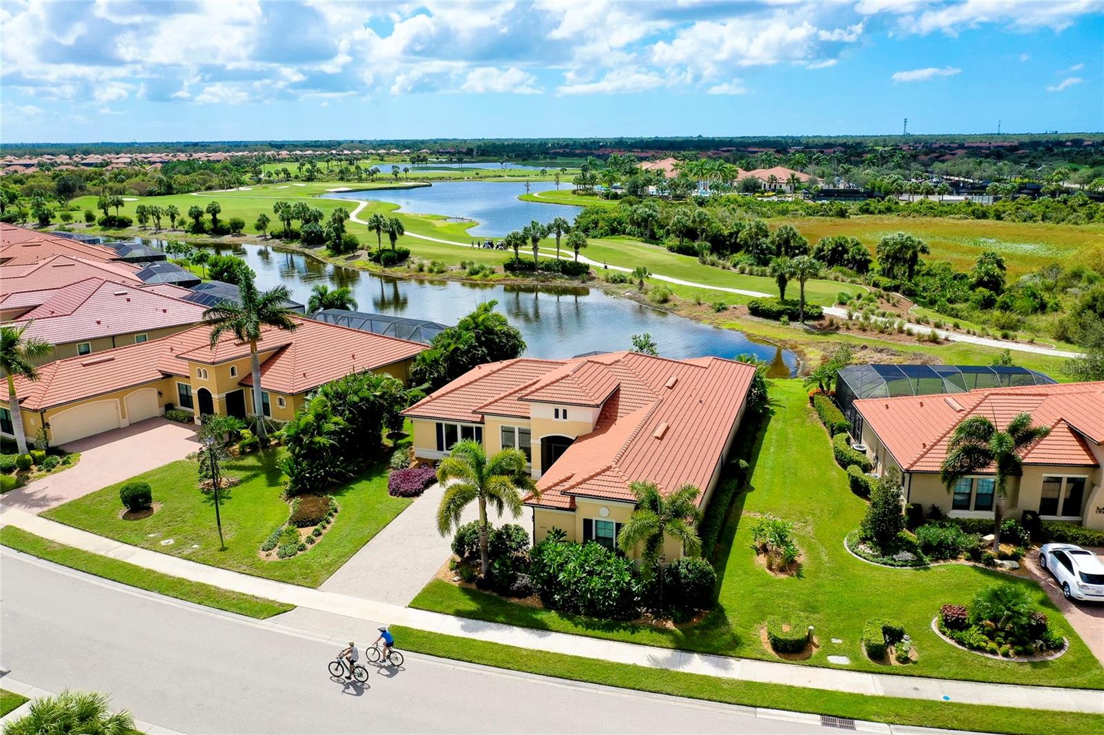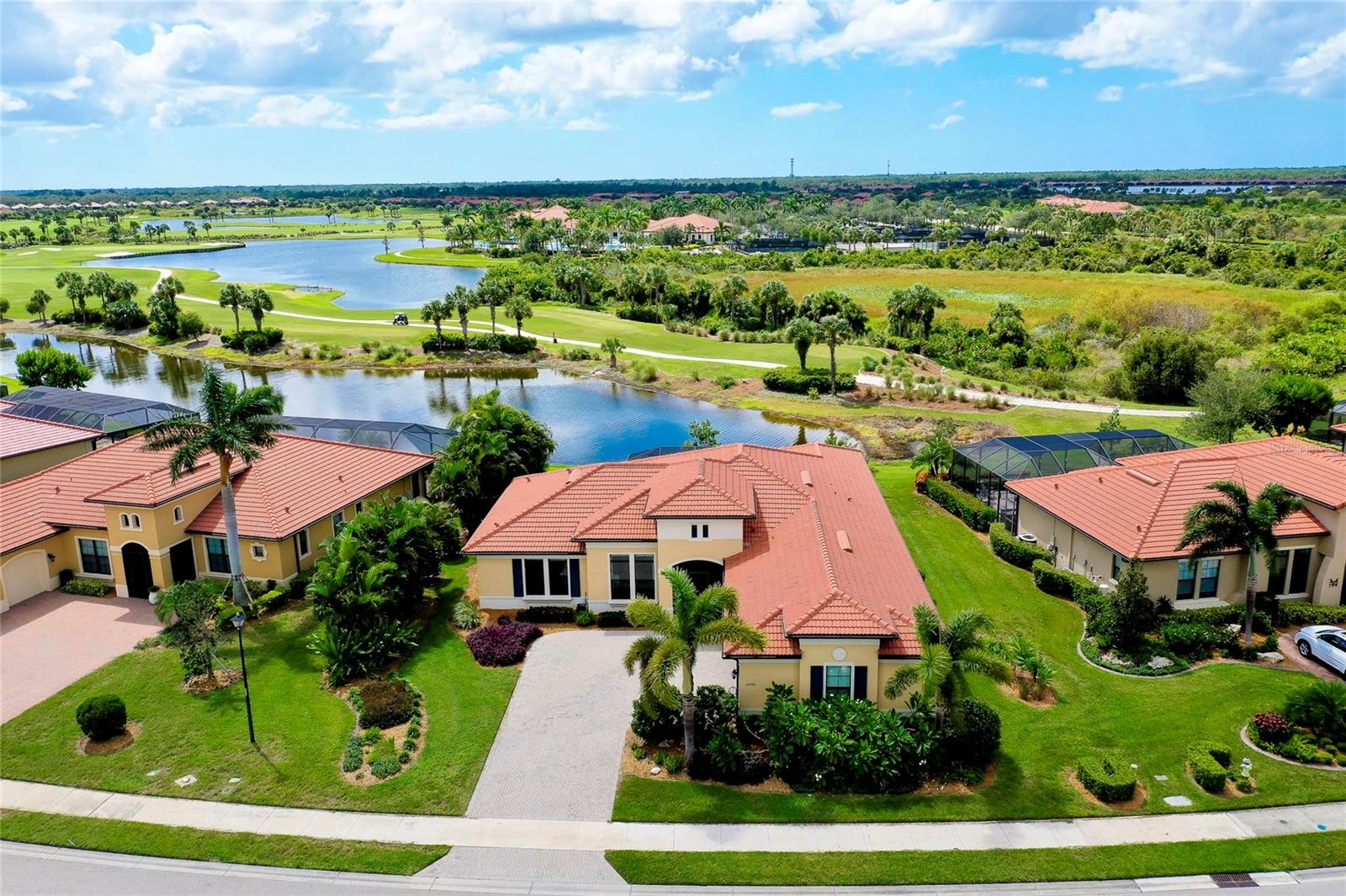PRICE IMPROVEMENT! WELCOME HOME to your very own Private PARADISE!! This STUNNING GOLF ESTATE HOME is located in the highly desirable, guard-gated community of SARASOTA NATIONAL in Historic Venice, Florida! This Exceptional & Original WCI built home offers the finest in Florida indoor and outdoor living and is perfectly designed to be versatile for casual or formal entertaining and includes a Golf Membership for two (2). This meticulously maintained Muirfield Model features 3 Bedrooms plus Bonus Room/Den/Office, 3 Bathrooms, 3 Car, side-loaded, insulated Garage and Attic with plenty of storage space, whole-house insulated for sound proofing, in-wall pest control, central vacuuming system as well as whole house water filtration system. From the Pavered Driveway, walk through the covered, screened entryway & step through the front door into this lovely home. You will be amazed at the expansive & open view of the 18th hole of the Golf Course. To your right is a separate Sitting or Dining Room that offers a private area to entertain guests. Just ahead is the Beautiful Chef's Gourmet Kitchen with upgraded Stainless Steel appliances, Convection Microwave, Induction Range, French Door Refrigerator, Granite Countertops, oversized Bar/Island with Sink & Dishwasher on one side and plenty of seating on the opposite side; solid wood Cabinetry with slide-out, soft close drawers & walk-in Pantry. Just to the side of the Kitchen there is an extra roomy, Dining area with a large Slider that opens on to the Lanai. This quality built home exceeds all expectations including stacking, pocket sliding glass doors across the entire back that opens onto the extended, pavered Lanai with wired speakers, plumbed for an Outdoor Kitchen and Spectacular Lake and Golf views; the perfect spot to enjoy your morning coffee or entertain friends in the evening for cocktails!! Split Bedrooms with the generous sized Owner's Suite ideally located for privacy with massive Walk-in Closet, Linen Closet, en-suite Bathroom with dual Vanities & Walk-in Shower. The Family & Guest accommodations are warm & welcoming; one Bedroom also features an en-suite Bathroom/combo tub & shower and a large Bonus Room with gorgeous French Doors which is currently being used as an Office. On the other side of the home is another Bedroom with an adjacent Bathroom. The Laundry room is in a convenient location near the front of the home with a sink & lots of additional wood cabinetry for storage. 10 foot volume ceilings, Surround Sound and Porcelain flooring. high impact glass, shaded windows throughout which finishes out this exquisite home in the fantastic, amenity-rich community that includes an 18-hole championship golf course, Clubhouse with Bar & Dining facilities, zero-entry heated resort style Pool, outdoor Tiki Bar, Tennis, Bocce & Pickleball courts, Fitness center, Coffee Cafe, Playground, Dog Park & so much more. This incredible Home is just minutes to nearby Beaches, Atlanta Braves Spring Training Stadium, Wellen Park's downtown center as well as Historic Downtown Venice. Furniture Optional! This is a MUST SEE; schedule a Showing today!!
