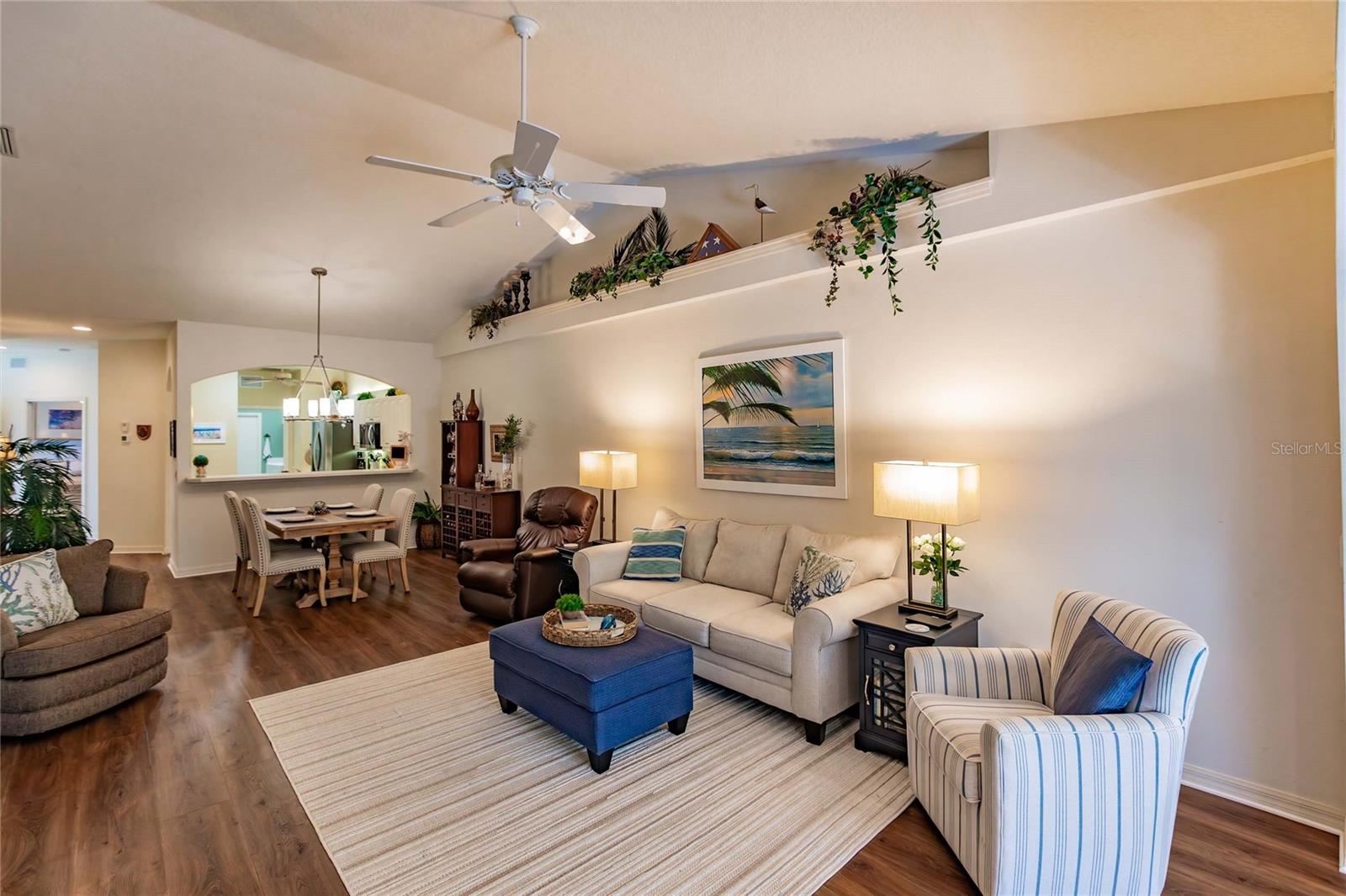 Why have Venice as a destination when you can make it your home? Come experience enticing privacy and maintenance free living within the sought-after Villas of St. Andrews at Plantation Golf and Country Club. Equipped with hurricane shutters this property sustained all storms in 2024 with no damage. It has an open floor plan showcasing three bedrooms and two baths situated on a peaceful dead-end street. Enjoy culinary delights in the oversized eat-in kitchen with new sink/faucet and oven (2024), and a brand-new refrigerator (2025). New flooring throughout the living/dining rooms and all bedrooms (2023), enhances the luxurious feel of this home for you and your guests. Featuring soaring ceilings and a spacious open floor plan.The split floor plan allows for complete privacy for you and your guests. The spacious primary bedroom located in the back of the Villa includes two closets, dual sinks, soaking tub and a separate shower recently remodeled (2024). Plantation shutters frame a tapestry of trees, blue sky and gentle breeze. A small hallway and pocket door toward the front of the Villa truly makes one of the guest quarters an en-suite. In unit laundry complete with a washer and dryer provides a comfortable place to work. Looking to entertain outside? Enjoy a cocktail on the extended paver patio (2023) that features a panoramic Florida preserve view and adjustable awning. It is nothing short of magical. Don’t forget you are just steps away from the tranquil community pool. This home offers amazing value with an HOA that covers all exterior maintenance (new roof in 2023) and landscaping, water/sewer, insurance for the structure, cable TV, and pool. The A/C and water heater are also newer. Various optional memberships to the Country Club are available. Prime location, close to Wellen Park and downtown Venice with its pristine beaches (only 10 minutes away) and outstanding restaurants. Everything you need or want is close by and ready for you to enjoy the Florida lifestyle.