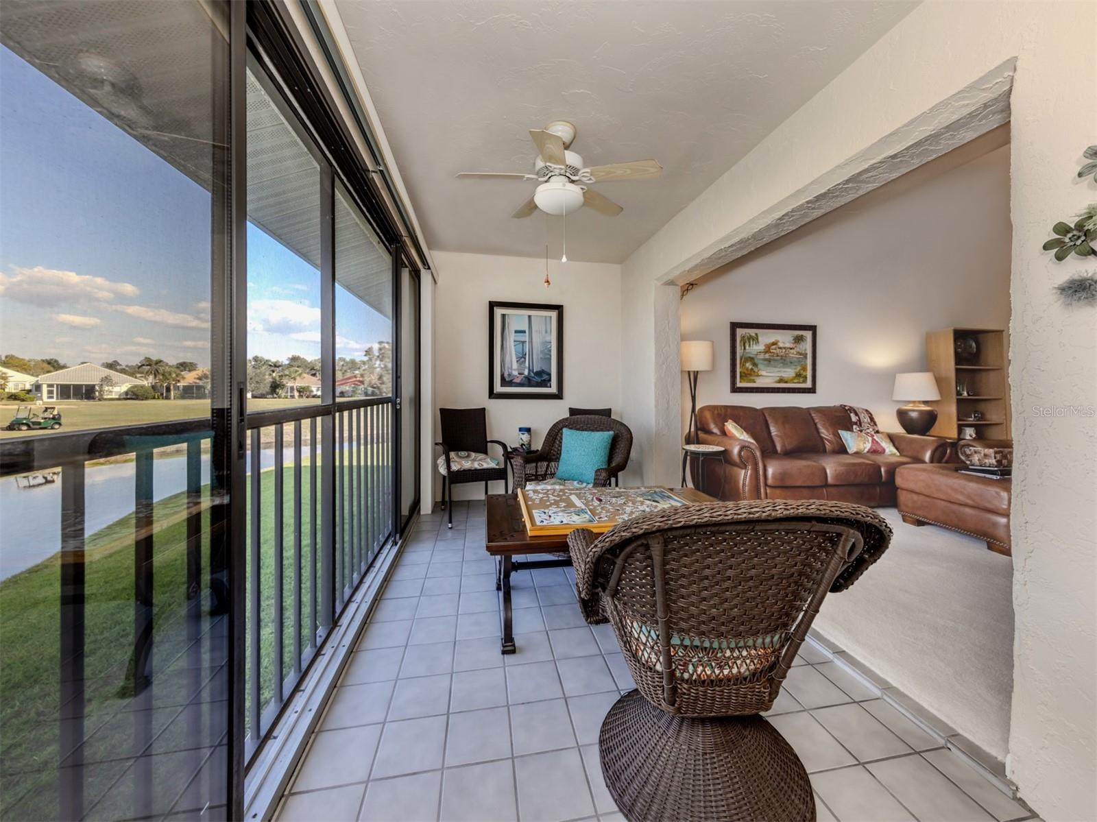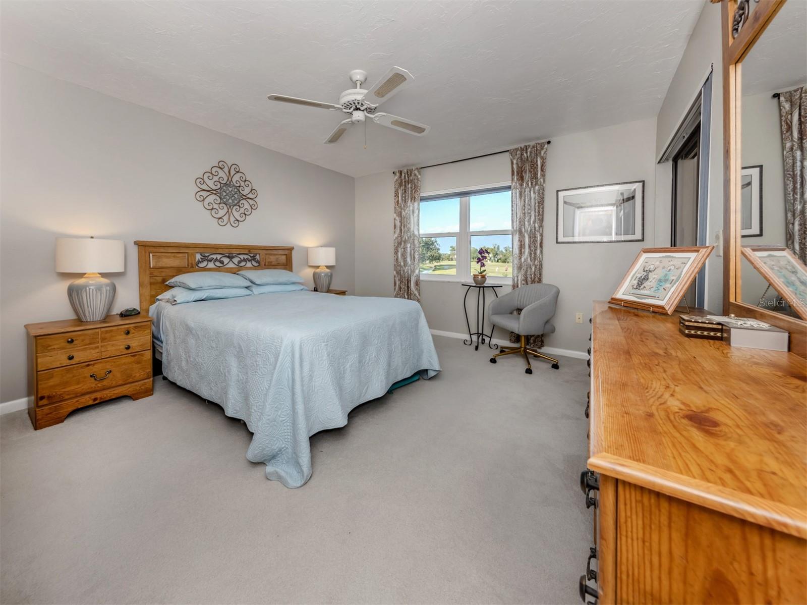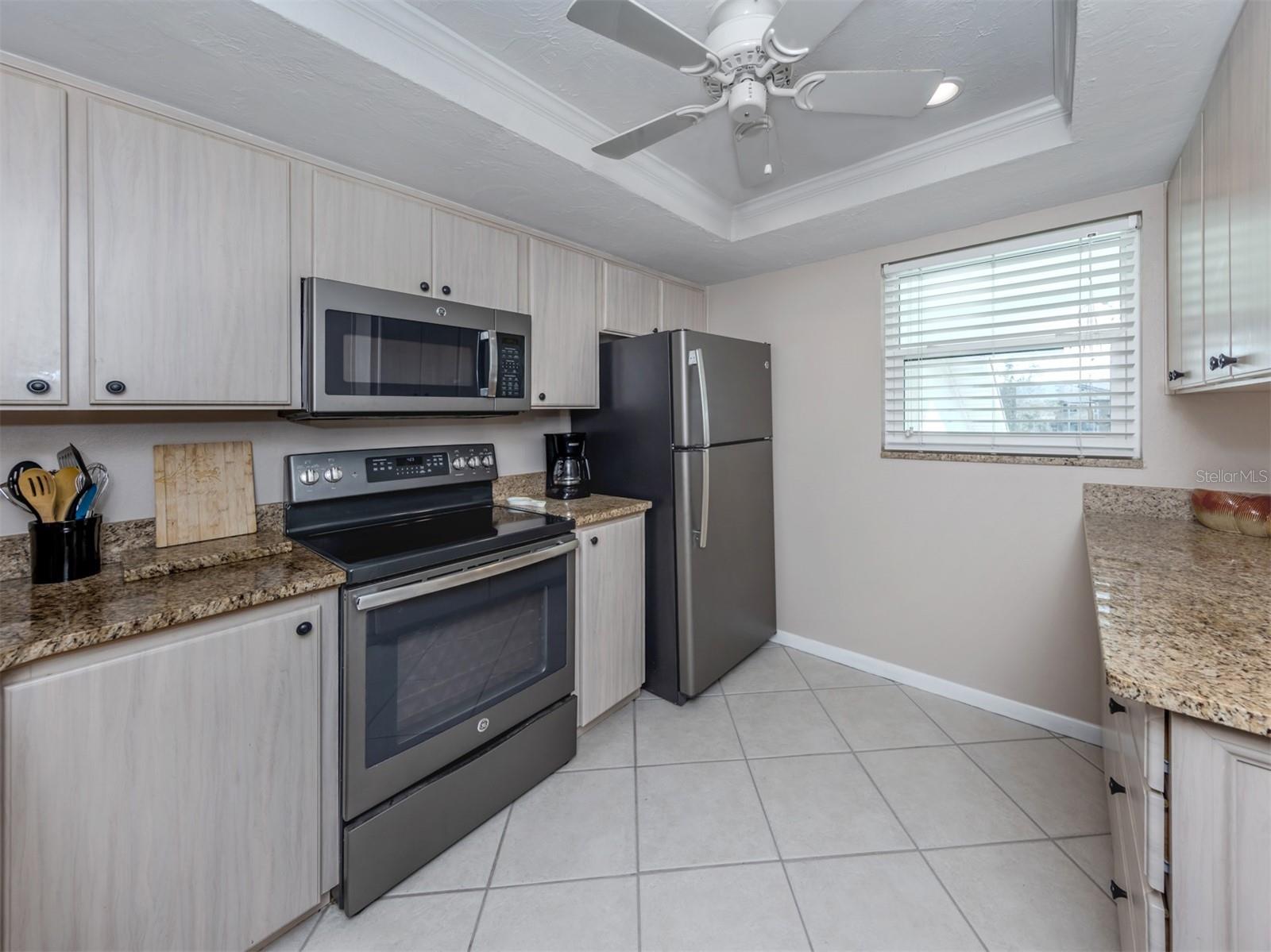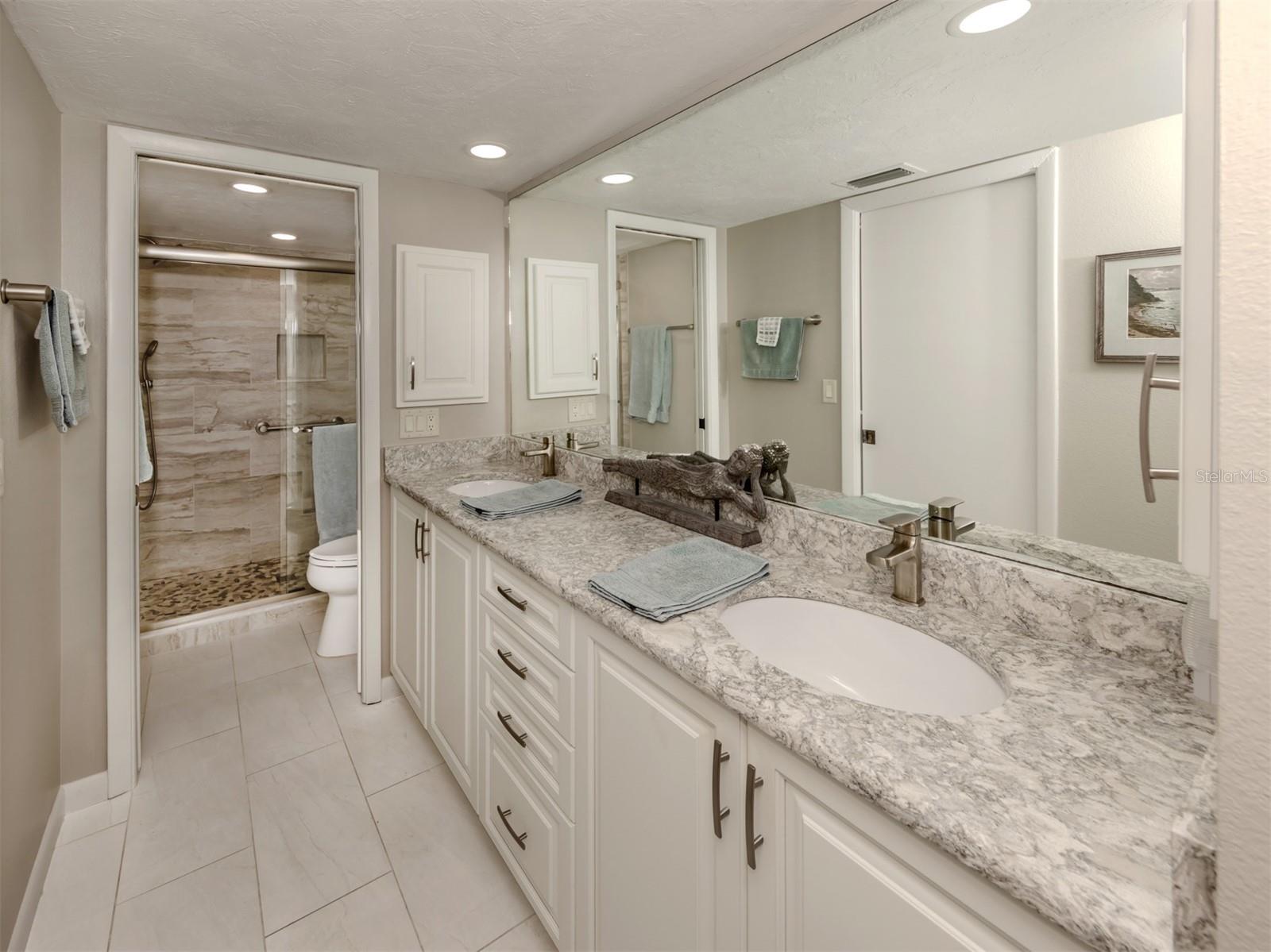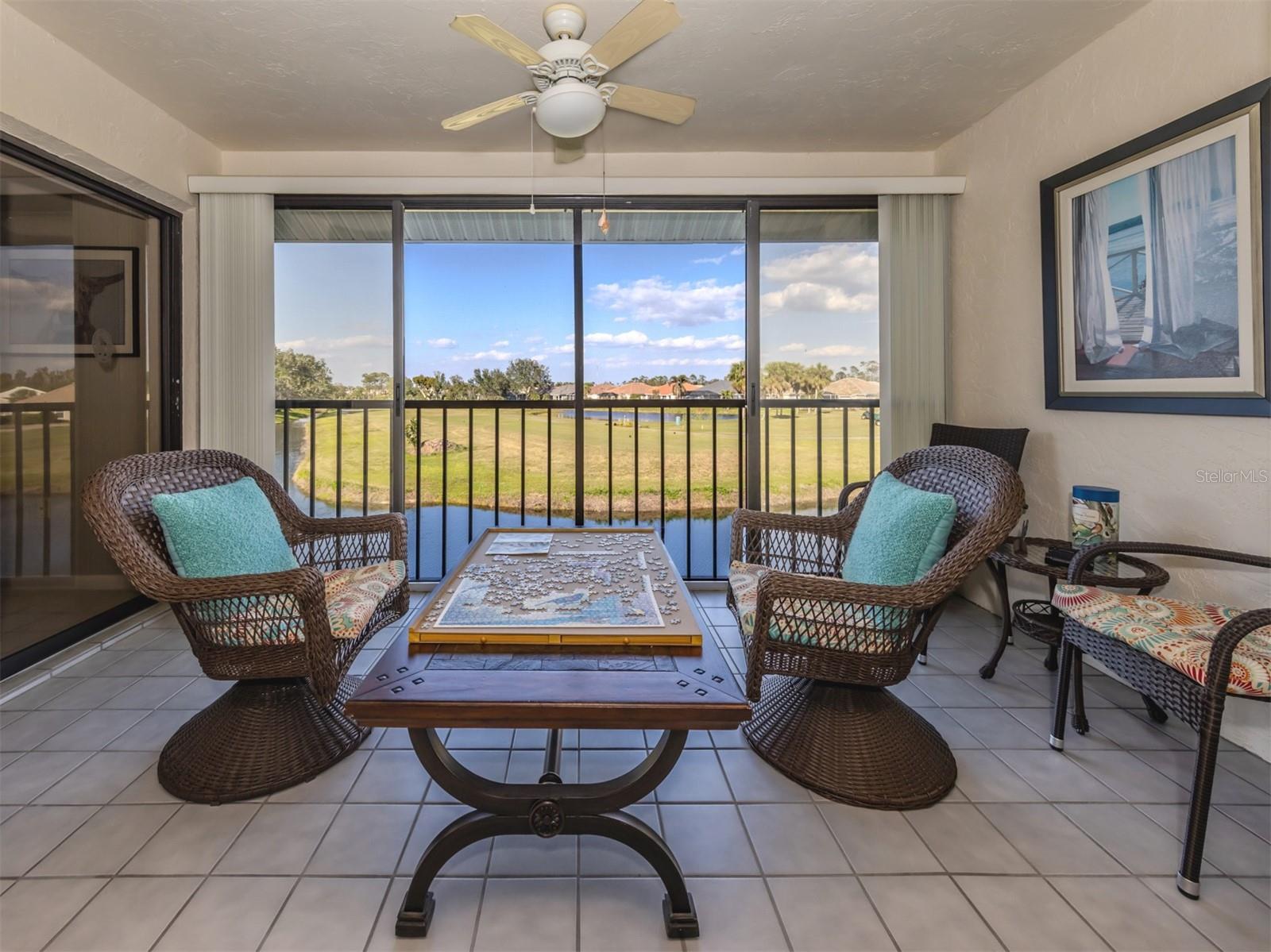 See this outstanding, updated condo with long views of a lake and golf course. Nothing left to do here but enjoy the Florida lifestyle, turnkey furnishings included. Kitchen and baths have been stylishly redone, newer flooring is in place, Euro-style Bosch stack washer and dryer is included, all windows replaced and condo roof recently replaced. Both baths have converted step-in showers with designer tile surround and multiple head faucets. Storage is no issue here, where the primary suite has a walk-in closet and linen closet, and there's another walk-in closet in the hallway. The kitchen has gleaming counters of granite on 3 sides, and more than ample cupboard space. HVAC is equipped with built-in humidistat. Each unit also has their own storage space on-site. Lakes of Capri is a friendly and well-managed community with a large, popular pool and recently updated clubhouse, manicured grounds and newer carports.