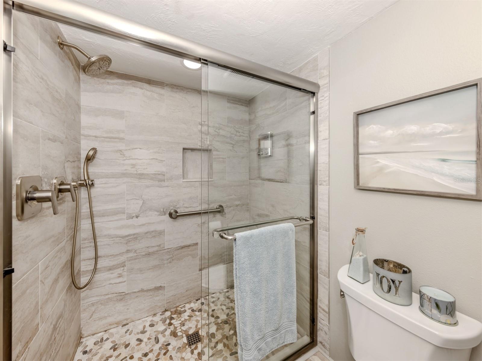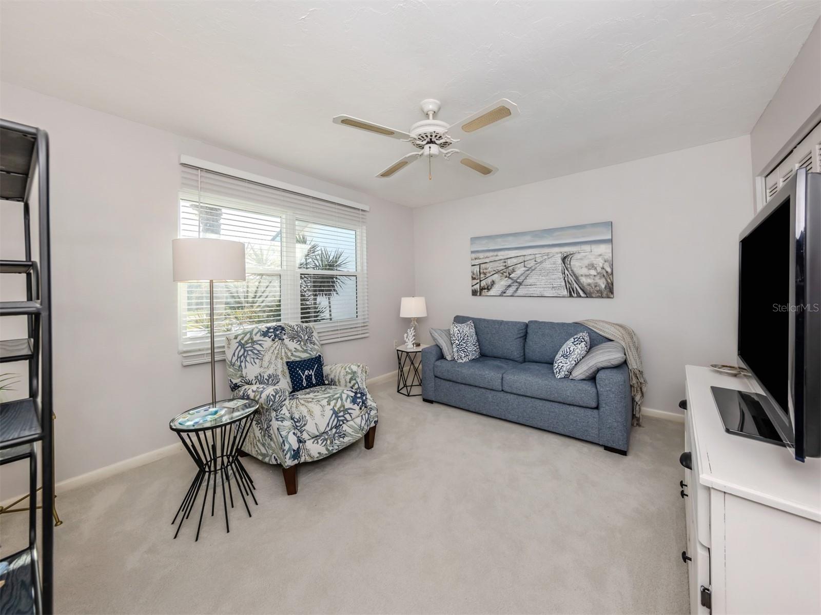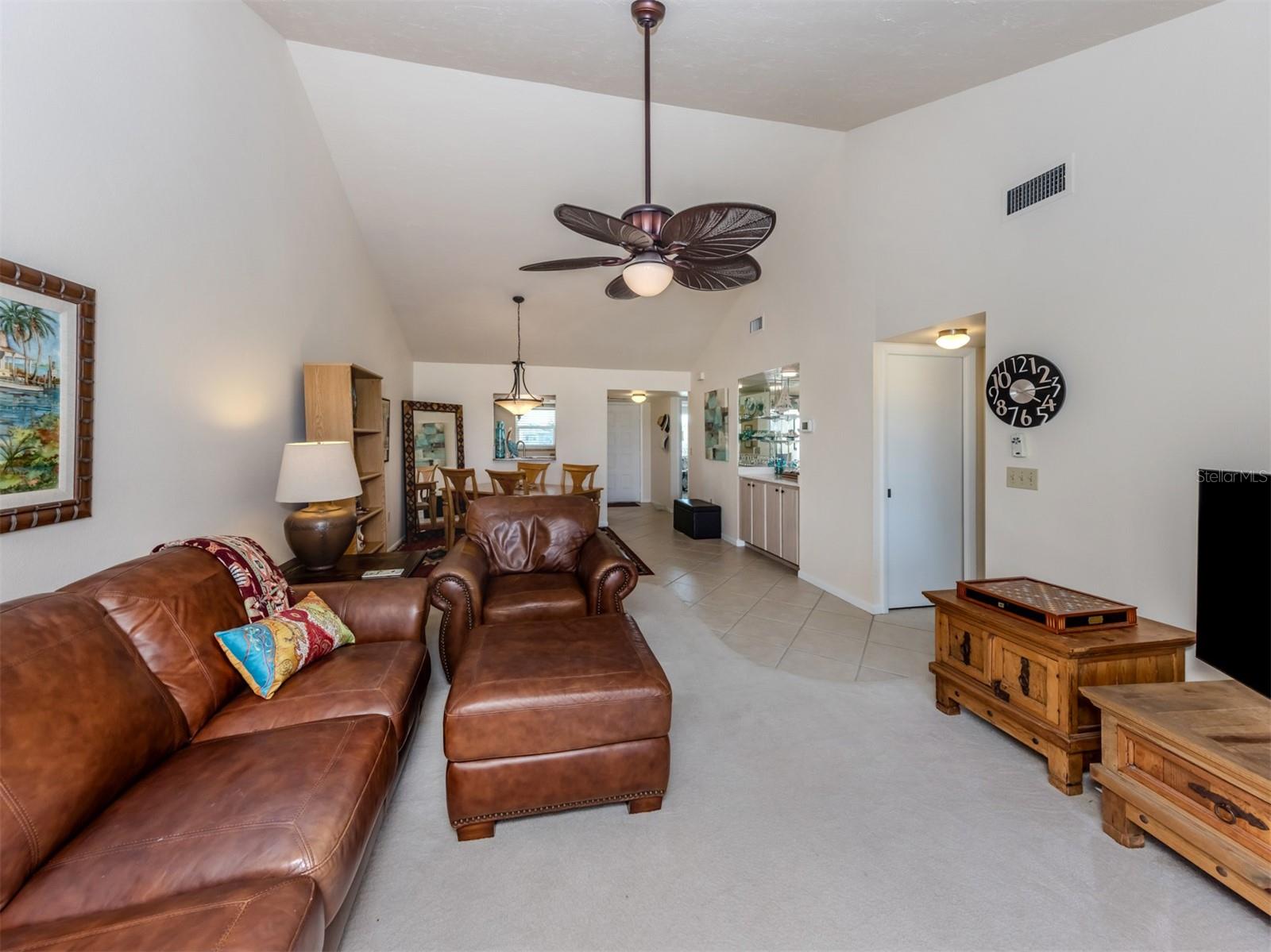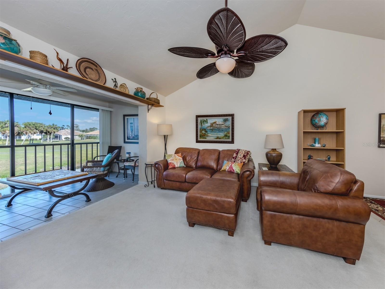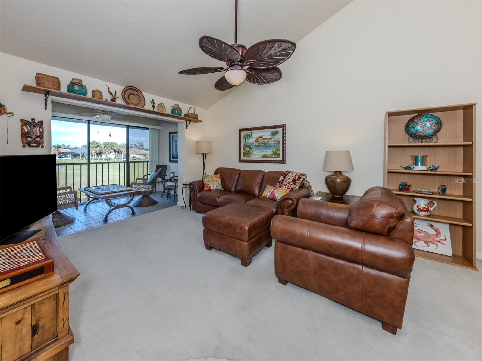 See this outstanding, updated condo with long views of a lake and golf course. Nothing left to do here but enjoy the Florida lifestyle, turnkey furnishings included. Kitchen and baths have been stylishly redone, newer flooring is in place, Euro-style Bosch stack washer and dryer is included, all windows replaced and condo roof recently replaced. Both baths have converted step-in showers with designer tile surround and multiple head faucets. Storage is no issue here, where the primary suite has a walk-in closet and linen closet, and there's another walk-in closet in the hallway. The kitchen has gleaming counters of granite on 3 sides, and more than ample cupboard space. HVAC is equipped with built-in humidistat. Each unit also has their own storage space on-site. Lakes of Capri is a friendly and well-managed community with a large, popular pool and recently updated clubhouse, manicured grounds and newer carports.