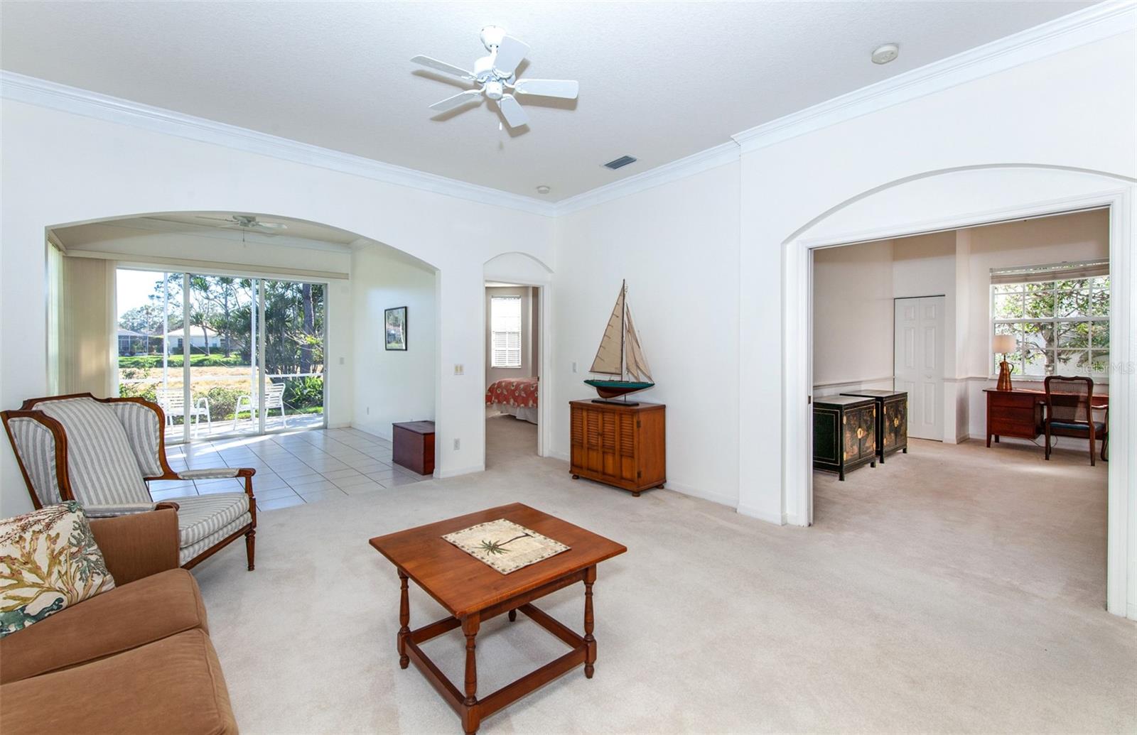 BIG PRICE REDUCTION!!! $161 per SQ FT!!! Welcome to the paradise of a maintenance-free stand-alone villa in St Andrews Park at Plantation Golf and Country Club! Your new home is perfect for the comfort of you and your guests. Located in a quiet shaded neighborhood and boasts an open space living area of living/dining room, 3 bedrooms, 2 bath, a Florida room and 2 car garage. The split bedroom layout with the primary bedroom that has walk-in closet, ensuite bath with double vanity, soaking tub and separate shower. The guest bedroom also has a walk-in closet. The second bath features a comfortable tub with shower. The 3rd bedroom is currently used as den and office. The lighting fixtures have updated throughout and the interior is freshly painted!! The Air Conditioning System was replaced in January (2025) and the Roof in 2022. Short walk to the large community pool and clubhouse where you can make new friends and enjoy the Florida sunshine. Plantation Golf & Country Club is available for membership with several optional levels which includes 2 18-hole Championship Golf Courses, 13 Tennis Courts, 6 Pickleball Courts, Bocce, Junior Olympic Swimming Pool with Tiki Bar, Full service Restaurant and many member activities throughout the year. A short drive to historic downtown Venice shops and restaurants, restaurants, Venice Theatre, Community Center, library, Wellen Park Town Center, Venice Beach, and the Atlanta Braves Spring Training Facility. Call for your personal showing.