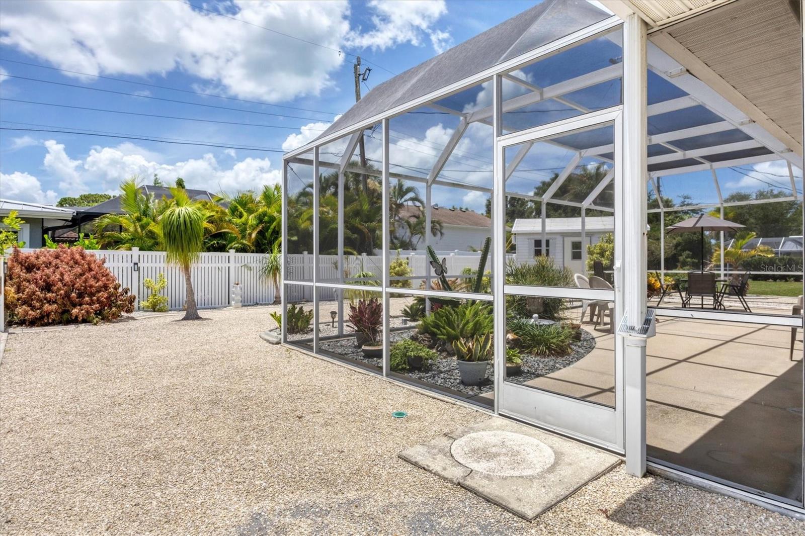 Welcome to this beautifully single-family home on Venice Island, where comfort meets coastal charm***The recently updated roof in 2023 ensures peace of mind, and its prime location offers proximity to the turquoise waters of the Gulf of Mexico and historic downtown Venice with its excellent restaurants, cafes, shopping and much more***This lovely home was extensively and tastefully renovated featuring spacious and bright bedrooms, a well-sized kitchen and a fabulous family room with sliding doors that open to the very large screened-in lanai perfect for entertaining***Park in the driveway and appreciate the clean look of the landscaped front yard laid out with shells for easy maintenance***Inside, discover a large casual living room with a cozy sitting area overlooking the front yard, providing a warm welcome to residents and guests alike***The split bedroom design ensures privacy for both guests and owners***Both suites are oversized. The primary bedroom features a comfortable en-suite bath and pocket doors that open to a walk-in closet***The two other guest bedroom has great space and a large closet***At the heart of this home is the perfectly sized kitchen with ample cabinetry with a sink and breakfast bar overlooking the spacious dining room. Whether having a coffee indoors or enjoying a book outdoors, the open sliding doors seamlessly connect the interior to the serene outdoor area***Embrace the coastal lifestyle in the thoughtfully designed lanai and backyard***To the right find a very private outdoor shower with hot and cold; just what you need after a day at the beach***A large shed with electricity and working bench, offers versatile space while the oversized under air one-car garage, equipped with a refrigerator, ample storage space, complements the property's functionality. This home has been meticulously maintained and loved***Pride in ownership and attention to detail is at the essence of this property***Located on a quiet street, you may ride your bike to the beach or walk downtown for shopping, a show in the Venice theater or fabulous eating in one of Venice's restaurants***HOME TO BE CONVEYED TURN KEY***